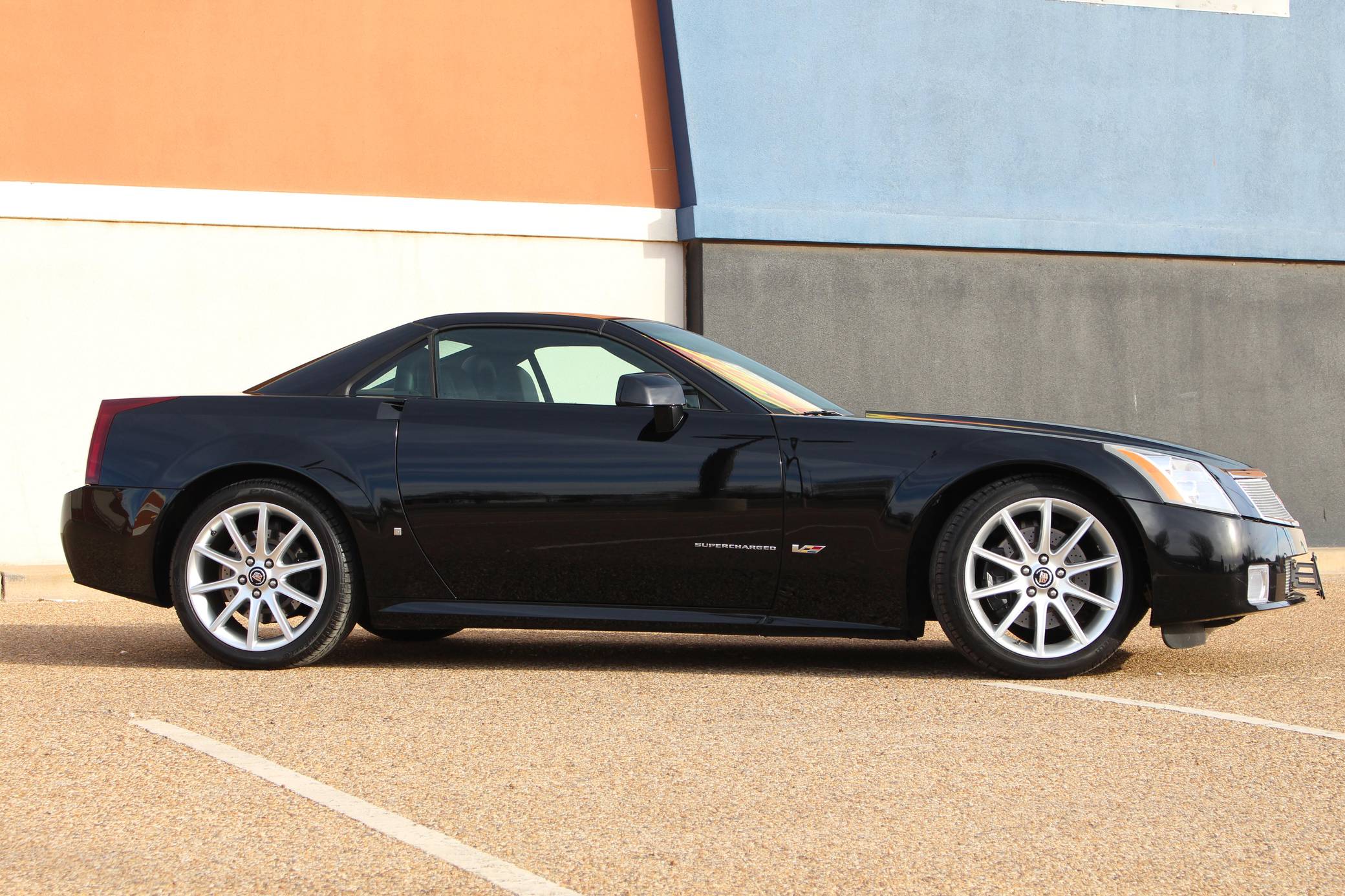 THIS. . . is a 2008 Cadillac XLR-V, finished in Black Raven with a black interior. This convertible's odometer displays about 4,200 miles. It also shows that this car has been Texas-owned since it was new. Factory equipment includes 19-inch wheels, Magnetic Ride Control technology, HID headlights with a curve-assist function, a power-folding hardtop, wood interior trim, heated, ventilated, and power-adjustable front seats, and a 9-speaker Bose sound system. The only modification reported by the seller is clear paint protection film applied to the front bumper, the hood, the fenders, and the door mirror caps. Released for 2003, the XLR brought Cadillac back to the roadster segment after a long hiatus. It was related to the sixth-generation Chevrolet Corvette, and the two models were built in the same facility, but it arrived as a more cruising-oriented drop-top with a power-folding hardtop and a "Northstar" V8 engine related to the unit that powered the STS. The range-topping V-badged model benefitted from a supercharged V8, a performance-tuned suspension system, and a specific exterior design, among other changes. Production ended in 2009, and Cadillac has steered clear of the convertible segment since. Power comes from a 4. 4-liter supercharged "Northstar" V8, rated at 443 horsepower and 414 lb-ft of torque. It spins the rear wheels via a 6-speed automatic transmission.