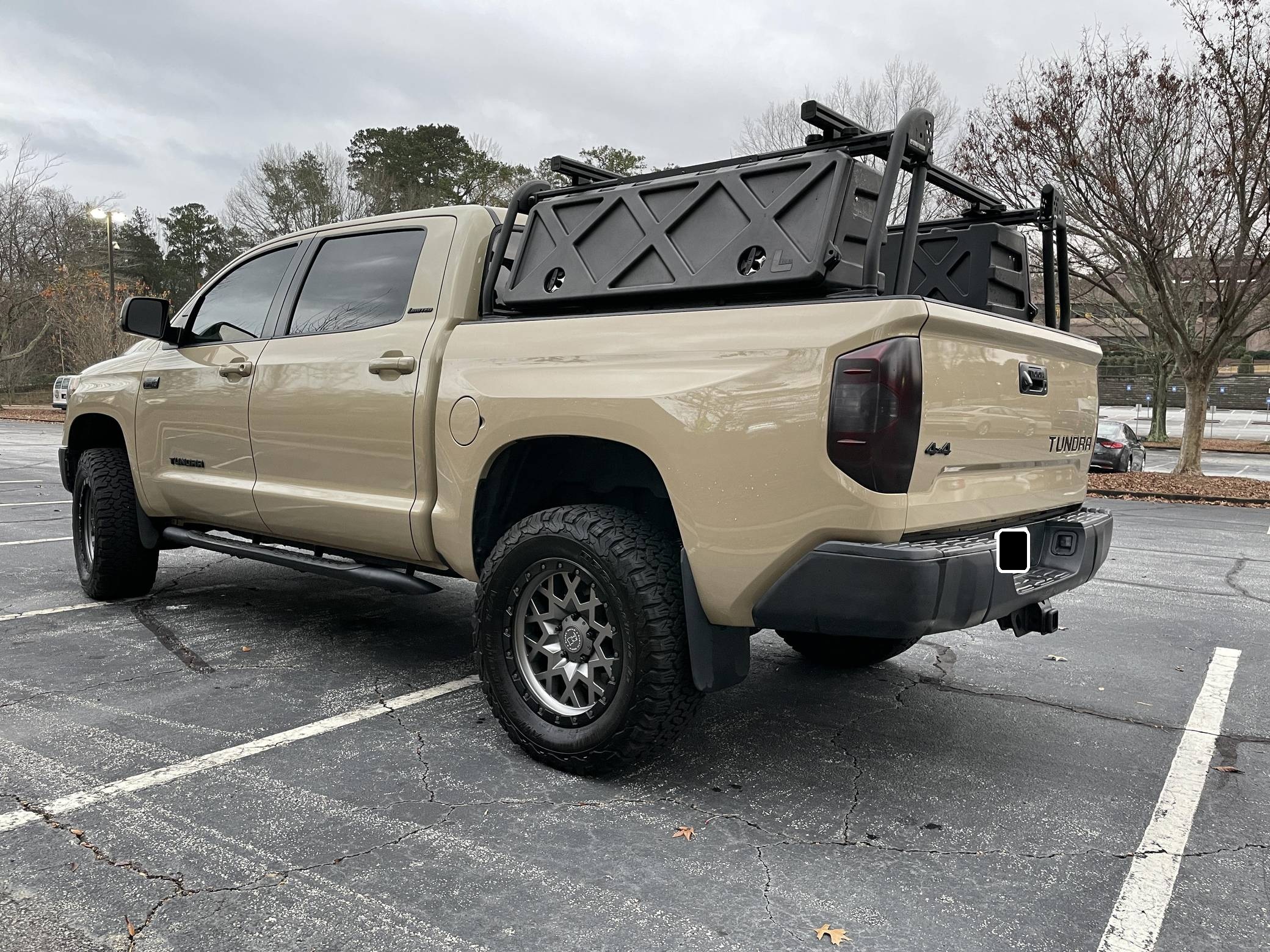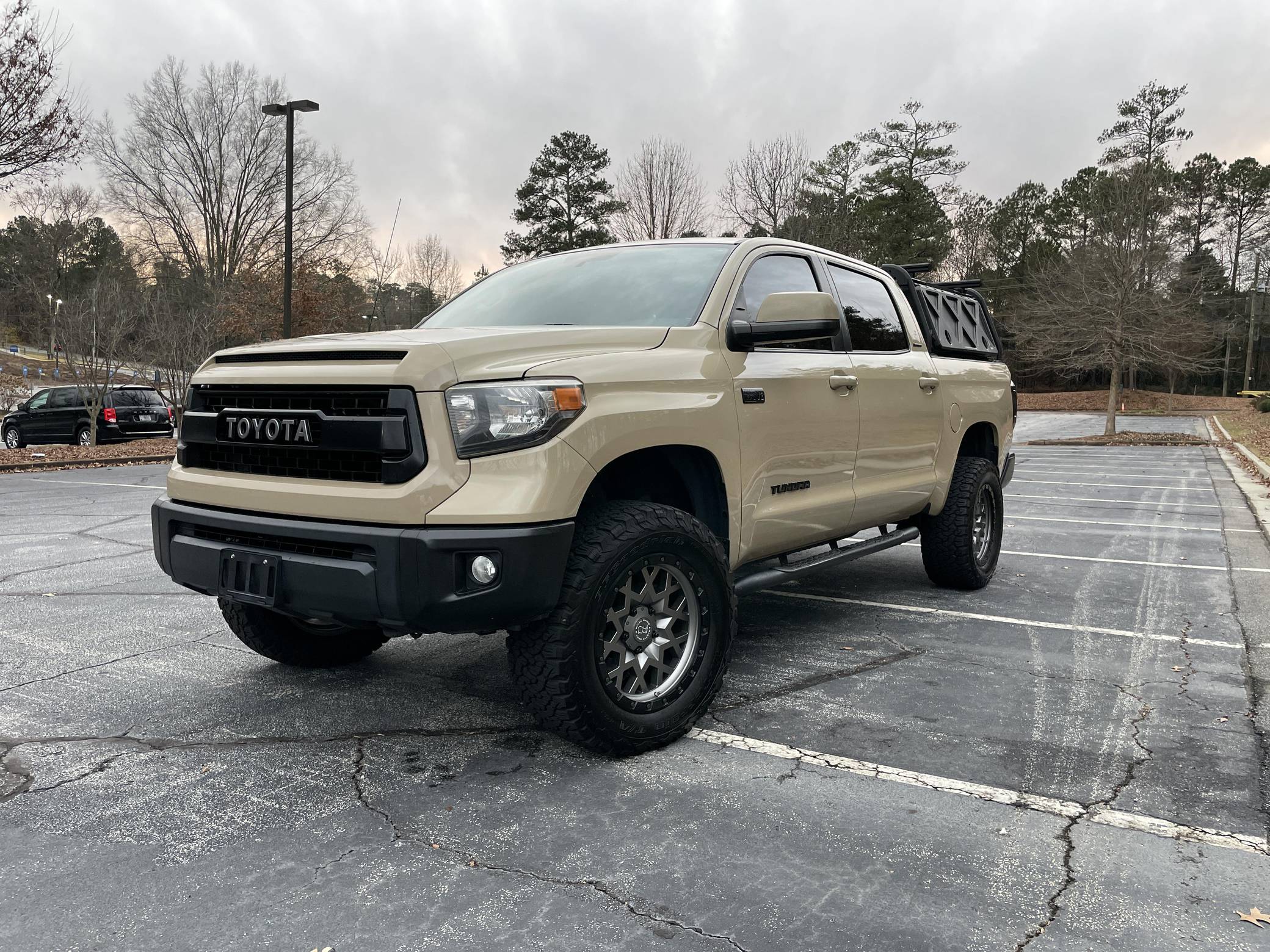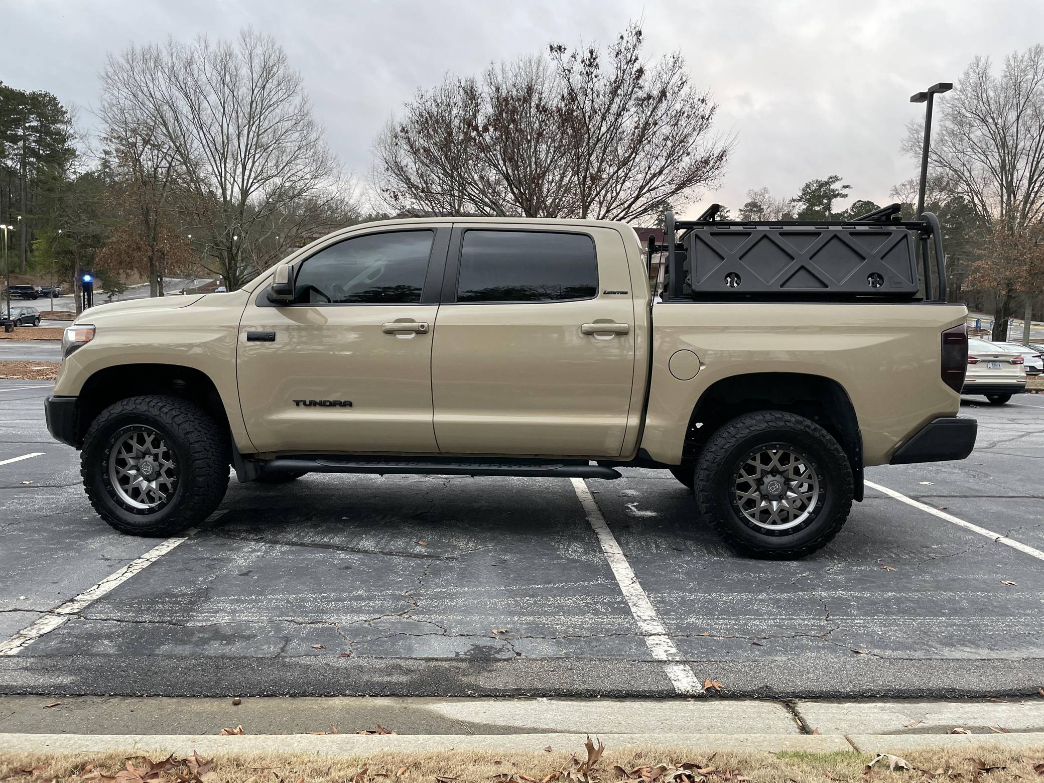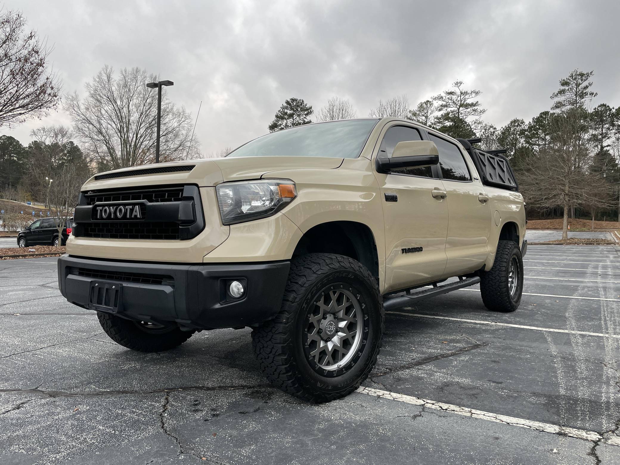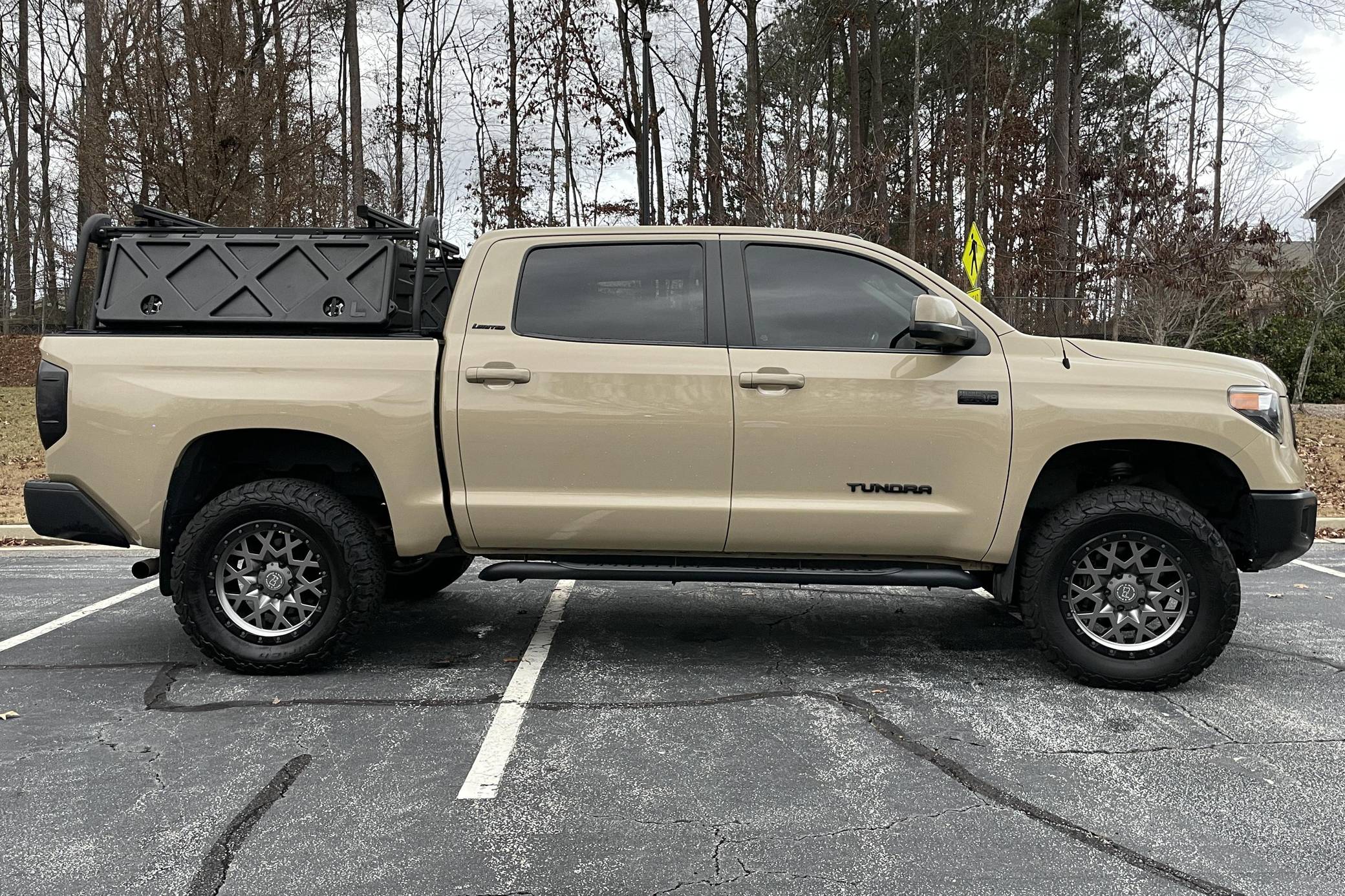 2017 Toyota Tundra CrewMax Limited 4x4, finished in Quicksand with a black interior. Factory equipment includes the Tow Package (trailer brake controller, trailer sway control system, receiver hitch, 4. 30 rear axle ratio, engine and transmission coolers), leather upholstery, power-adjustable heated front seats, dual-zone automatic climate control, a 7-inch infotainment touchscreen, an Entune JBL premium sound system, navigation system, and more as detailed below. Modifications reported by the seller include a 3-inch suspension lift kit from Toytec, Coachbuilder rear shackles, Toytec leaf springs, 20-inch Black Rhino Sprocket wheels shod in BFGoodrich All-Terrain tires, a Leitner Designs active cargo system, and more as listed below. Toyota released the "XK50"-generation Tundra for the 2007 model year. Designed in America for Americans and built in Texas, the second-generation Tundra was much bigger and brawnier than its predecessor to take the fight directly to Detroit's Big Three. It was available in a wide selection of configurations until production ended in 2021. Power comes from a 5. 7-liter V8, rated at 381 horsepower and 401 lb-ft of torque. Output is directed to the rear or all four wheels through a 6-speed automatic transmission and a 2-speed transfer case.