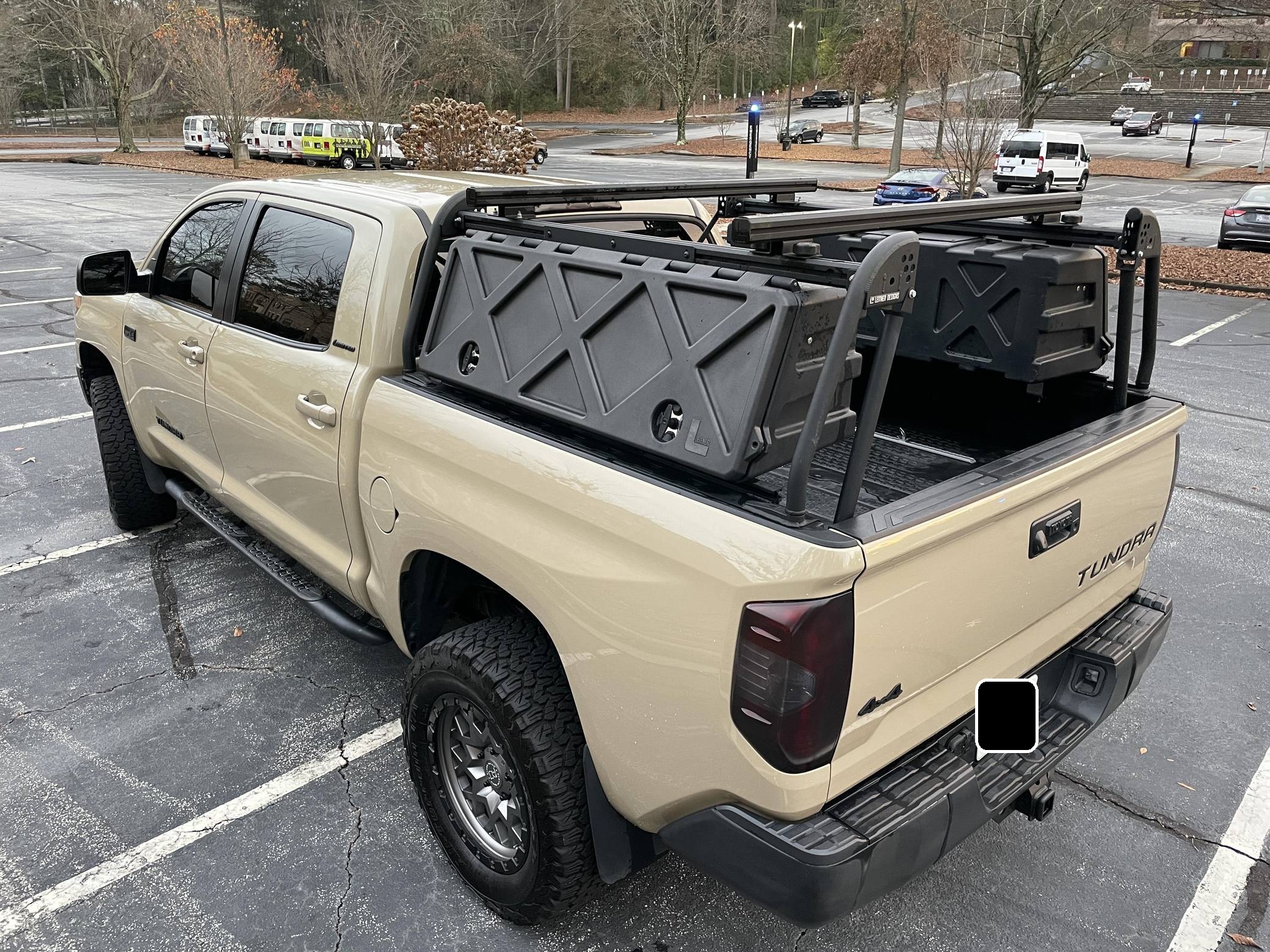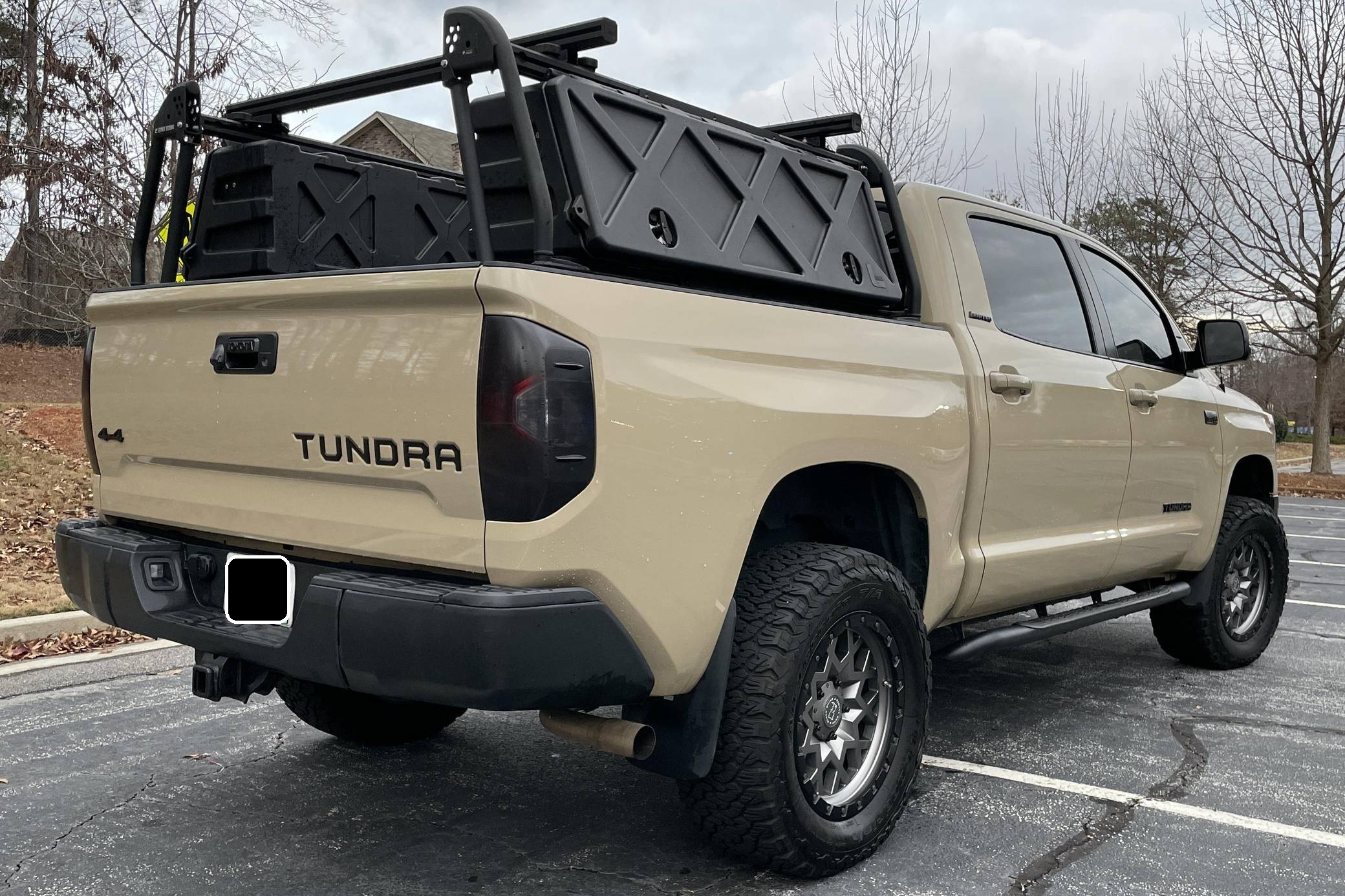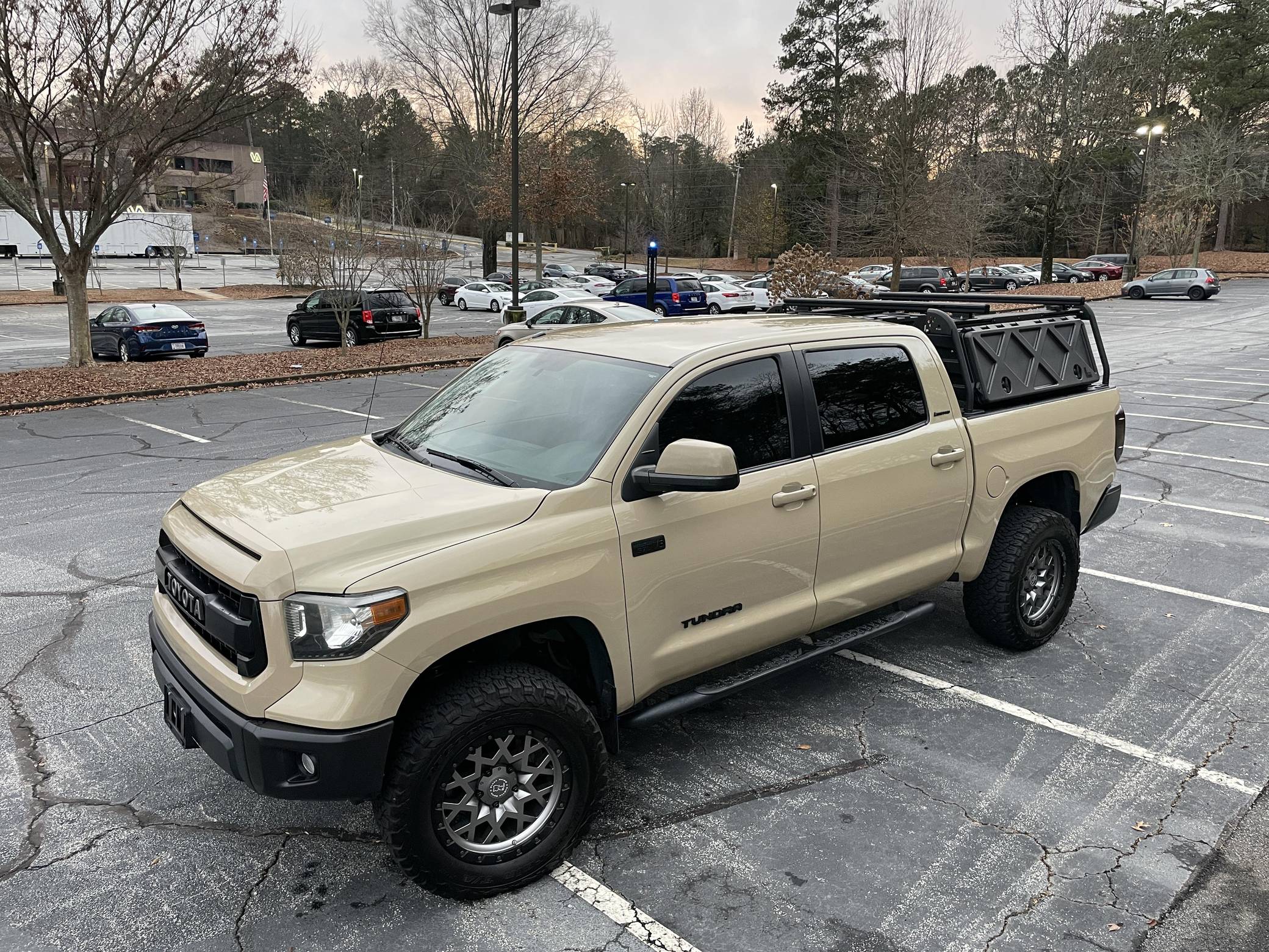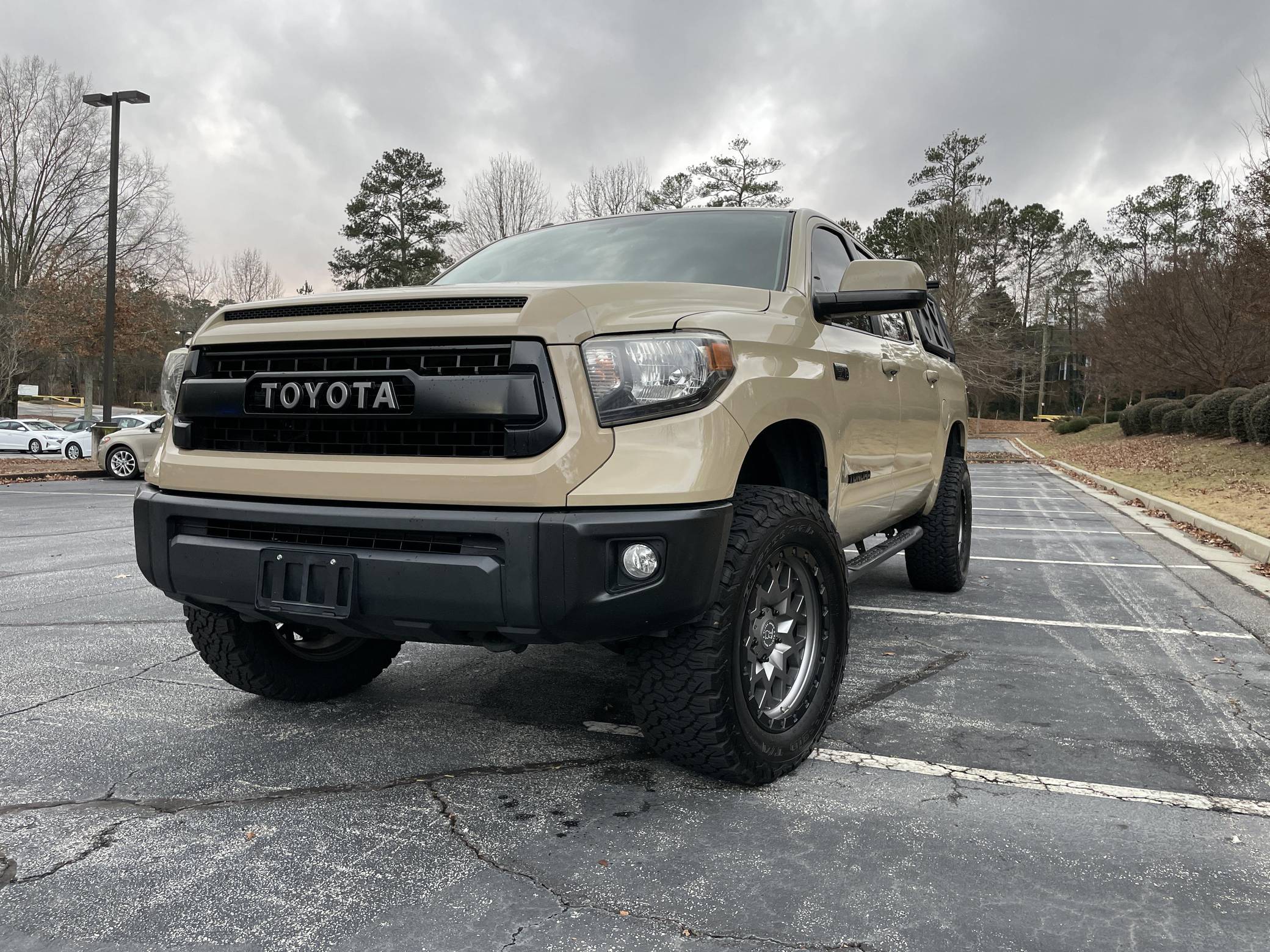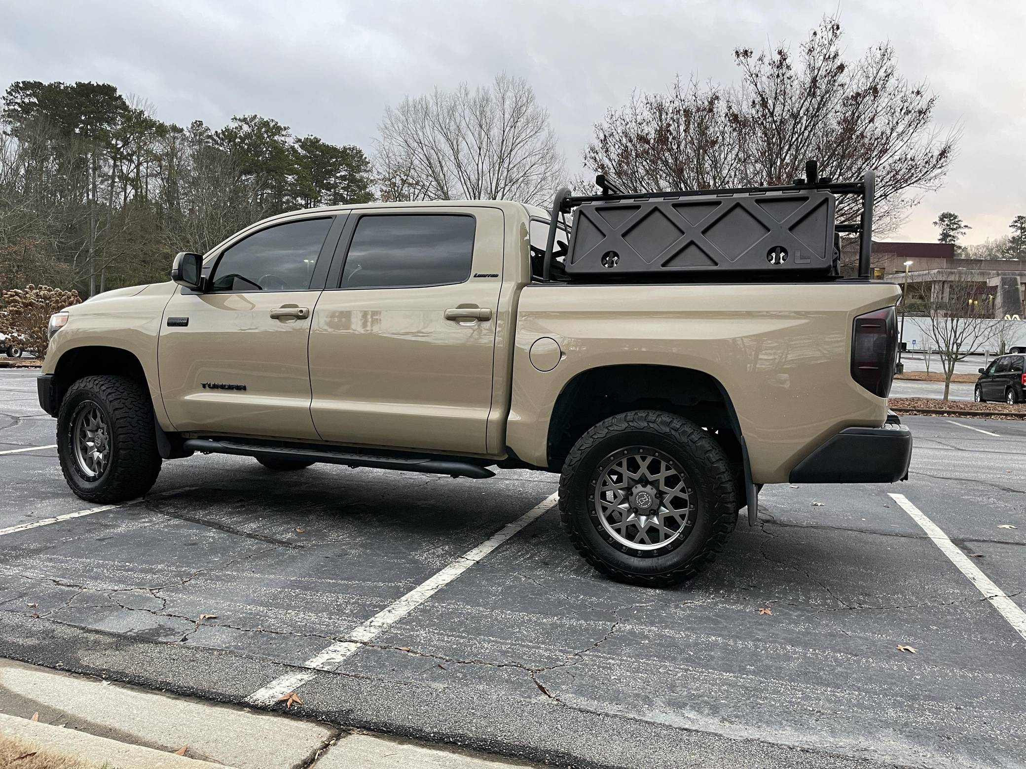2017 Toyota Tundra CrewMax Limited 4x4, finished in Quicksand with a black interior. Factory equipment includes the Tow Package (trailer brake controller, trailer sway control system, receiver hitch, 4. 30 rear axle ratio, engine and transmission coolers), leather upholstery, power-adjustable heated front seats, dual-zone automatic climate control, a 7-inch infotainment touchscreen, an Entune JBL premium sound system, navigation system, and more as detailed below. Modifications reported by the seller include a 3-inch suspension lift kit from Toytec, Coachbuilder rear shackles, Toytec leaf springs, 20-inch Black Rhino Sprocket wheels shod in BFGoodrich All-Terrain tires, a Leitner Designs active cargo system, and more as listed below. Toyota released the "XK50"-generation Tundra for the 2007 model year. Designed in America for Americans and built in Texas, the second-generation Tundra was much bigger and brawnier than its predecessor to take the fight directly to Detroit's Big Three. It was available in a wide selection of configurations until production ended in 2021. Power comes from a 5. 7-liter V8, rated at 381 horsepower and 401 lb-ft of torque. Output is directed to the rear or all four wheels through a 6-speed automatic transmission and a 2-speed transfer case.