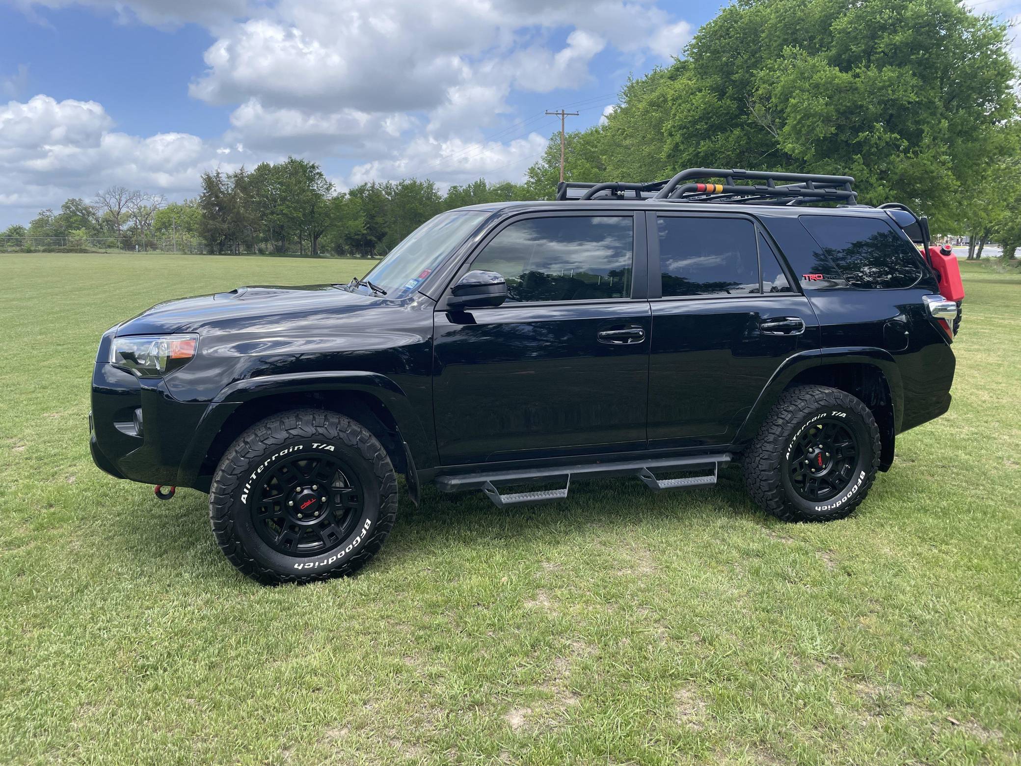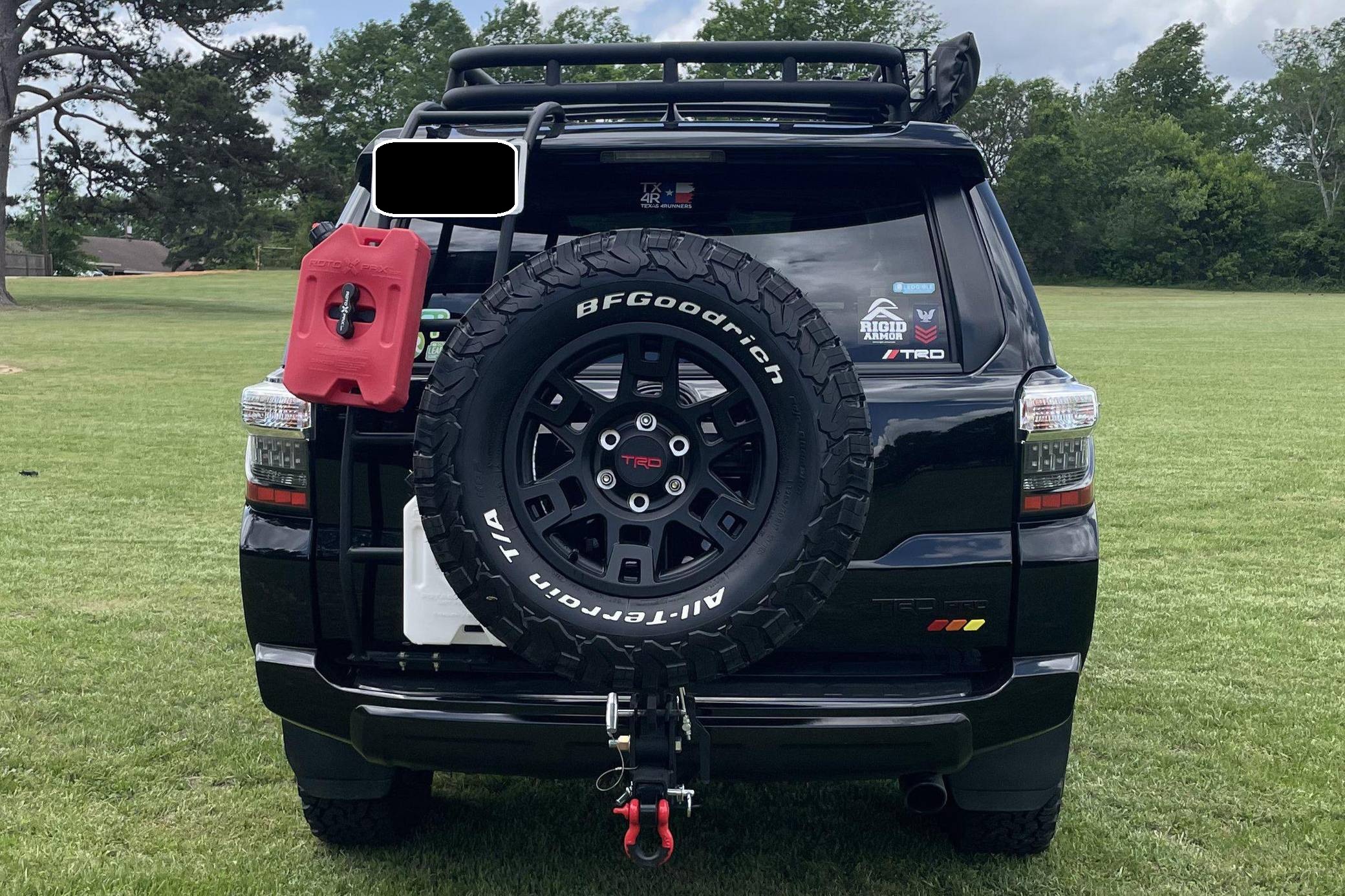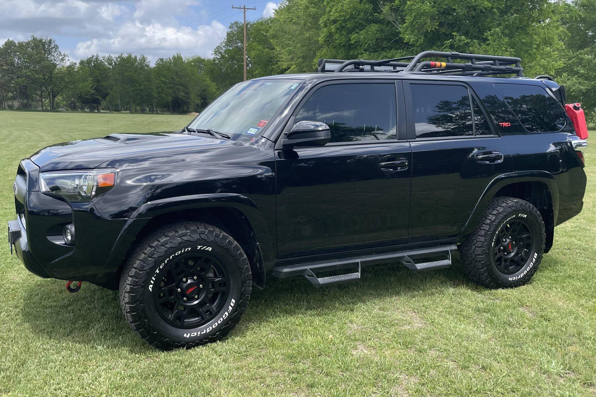 THIS. . . is a 2019 Toyota 4Runner TRD Pro, finished in Midnight Black Metallic with a black interior. Factory equipment includes a locking rear differential, TRD-tuned Fox shocks and springs, a 1/4-inch skid plate with red TRD lettering, a TRD roof rack, 17-inch matte black wheels, SofTex upholstery, a 6. 1-inch touchscreen with Apple CarPlay, a trailer hitch, a power sliding rear window, and more as detailed below. The seller reports that modifications made to this TRD Pro include a CVT 55-inch awning, a BajaRack rear ladder, two RotopaX 1-gallon cans, a Rigid Armor rear hitch spare tire carrier, tinted windows, and paint protection film on the lower edge of the doors. The full list of modifications can be seen below. Toyota introduced the 5th and current generation of the 4Runner for the 2010 model year. While many of its rivals moved to a unibody architecture, the 4Runner kept its body-on-frame layout and continued to offer exceptional off-road prowess. It's capable out of the box, but many owners laud it as a blank canvas for adventure-focused modifications. 2015 brought the TRD Pro model, which was aimed at buyers who wanted even greater all-terrain capability without turning to the aftermarket; it's still available in 2022. Power comes from a 4. 0-liter V6 engine, rated at 270 horsepower and 278 lb-ft of torque. Output is sent to the rear wheels or all four via a 5-speed automatic transmission and 2-speed transfer case.