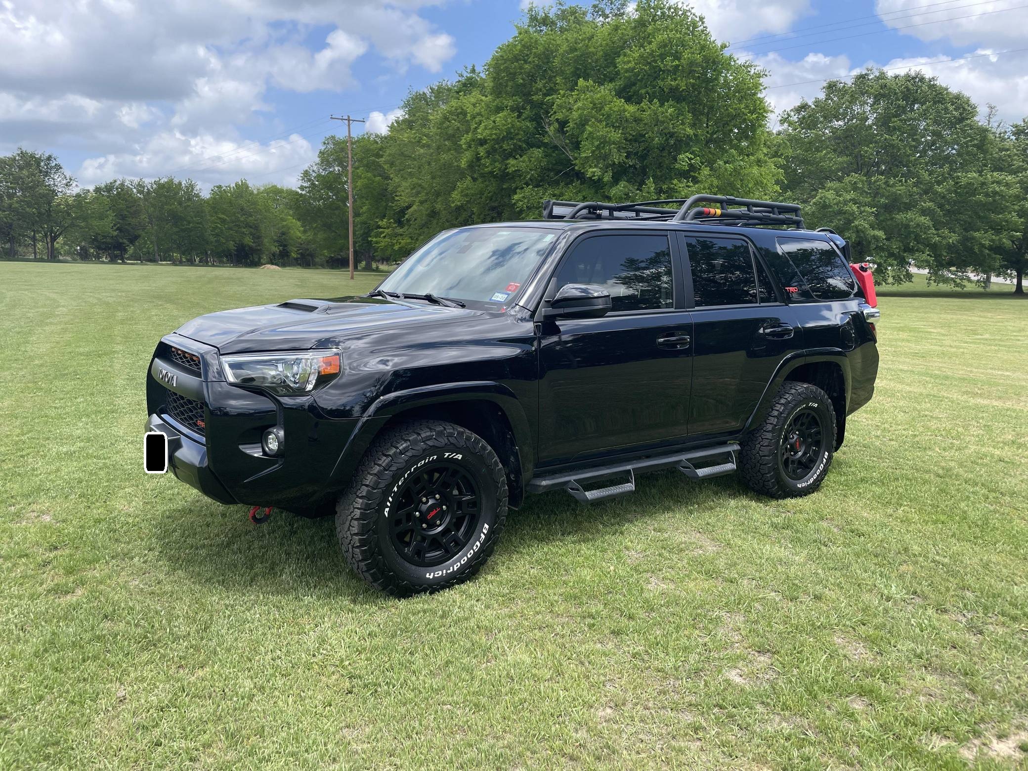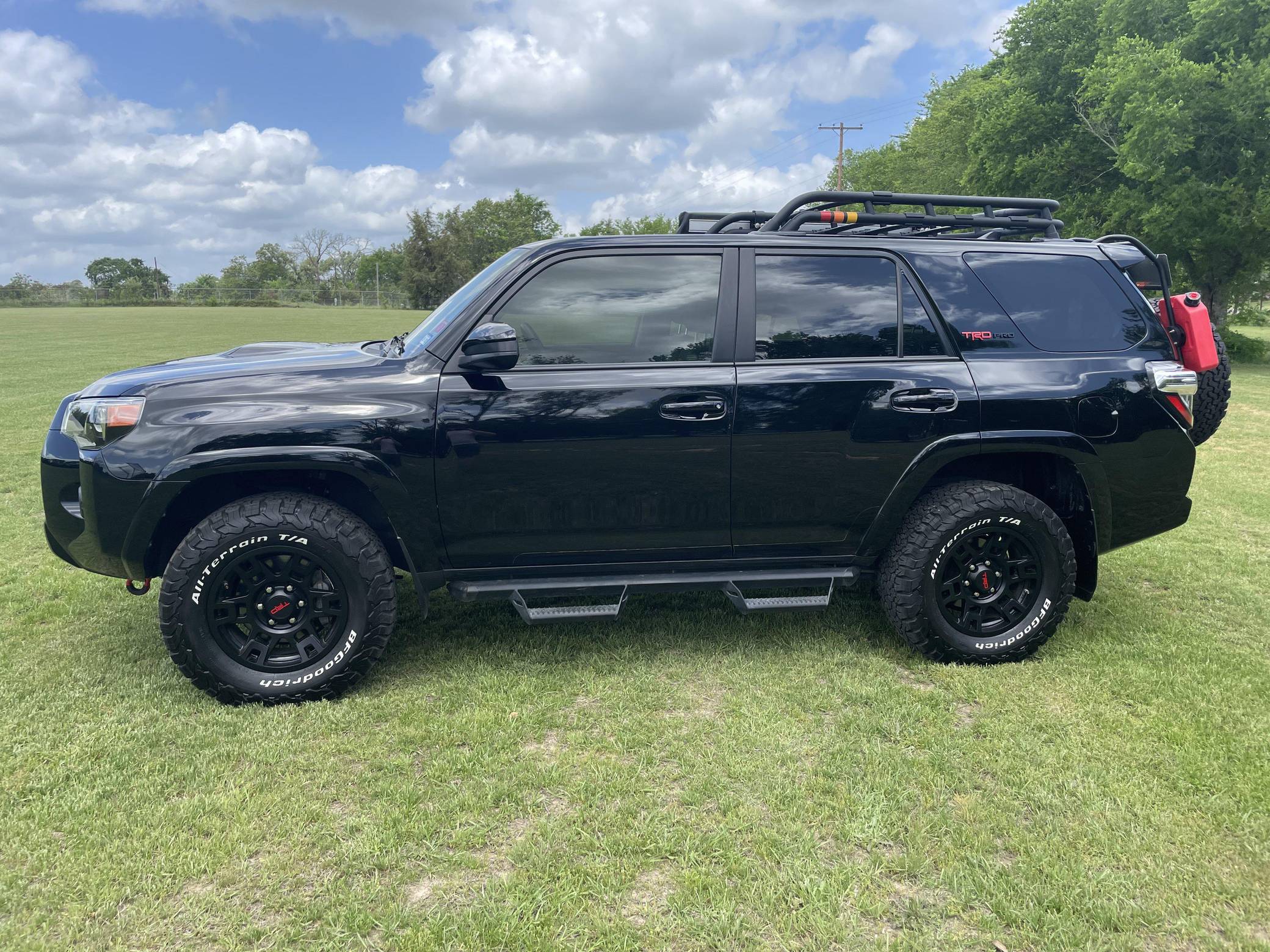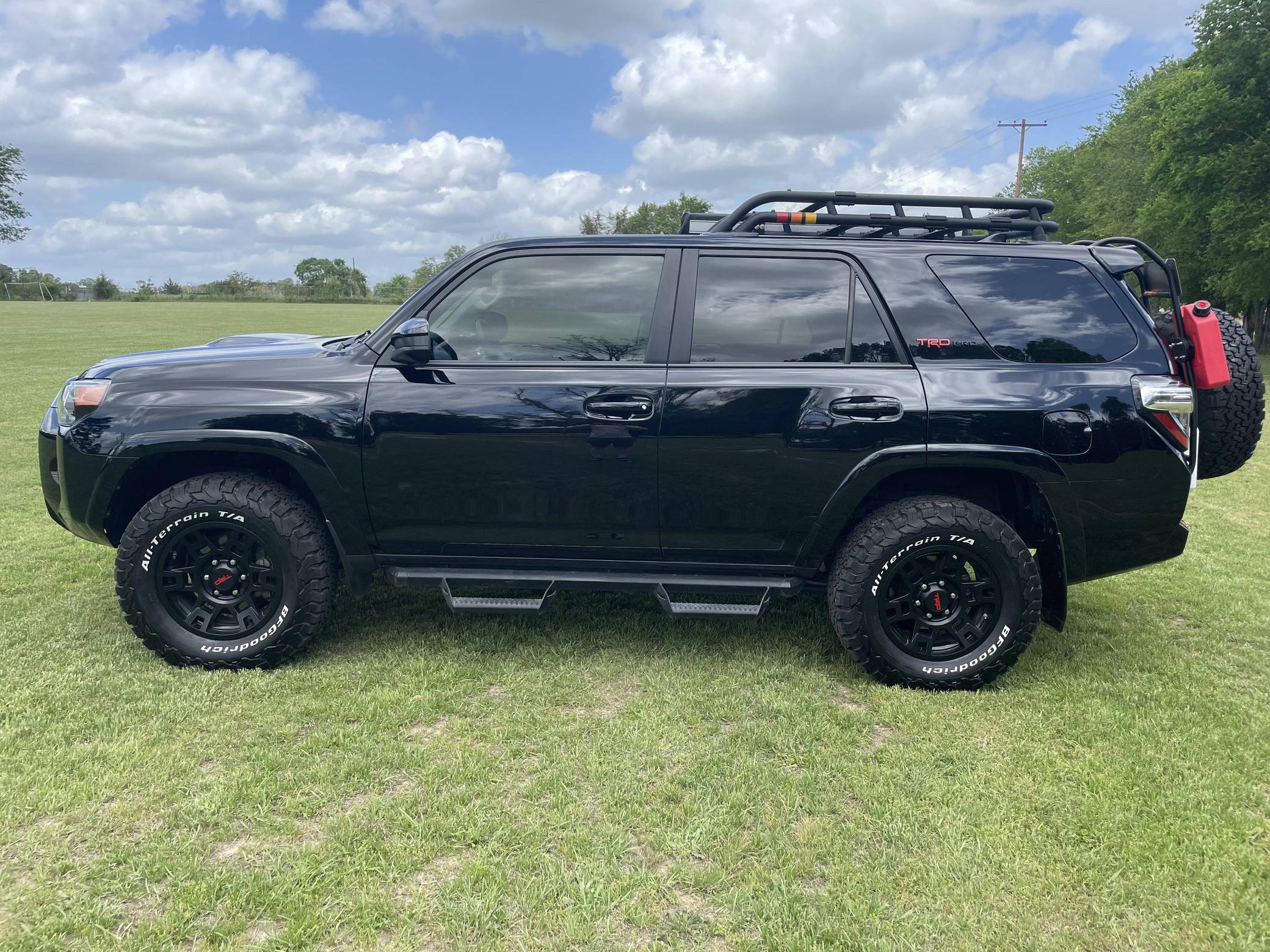 THIS. . . is a 2019 Toyota 4Runner TRD Pro, finished in Midnight Black Metallic with a black interior. Factory equipment includes a locking rear differential, TRD-tuned Fox shocks and springs, a 1/4-inch skid plate with red TRD lettering, a TRD roof rack, 17-inch matte black wheels, SofTex upholstery, a 6. 1-inch touchscreen with Apple CarPlay, a trailer hitch, a power sliding rear window, and more as detailed below. The seller reports that modifications made to this TRD Pro include a CVT 55-inch awning, a BajaRack rear ladder, two RotopaX 1-gallon cans, a Rigid Armor rear hitch spare tire carrier, tinted windows, and paint protection film on the lower edge of the doors. The full list of modifications can be seen below. Toyota introduced the 5th and current generation of the 4Runner for the 2010 model year. While many of its rivals moved to a unibody architecture, the 4Runner kept its body-on-frame layout and continued to offer exceptional off-road prowess. It's capable out of the box, but many owners laud it as a blank canvas for adventure-focused modifications. 2015 brought the TRD Pro model, which was aimed at buyers who wanted even greater all-terrain capability without turning to the aftermarket; it's still available in 2022. Power comes from a 4. 0-liter V6 engine, rated at 270 horsepower and 278 lb-ft of torque. Output is sent to the rear wheels or all four via a 5-speed automatic transmission and 2-speed transfer case.