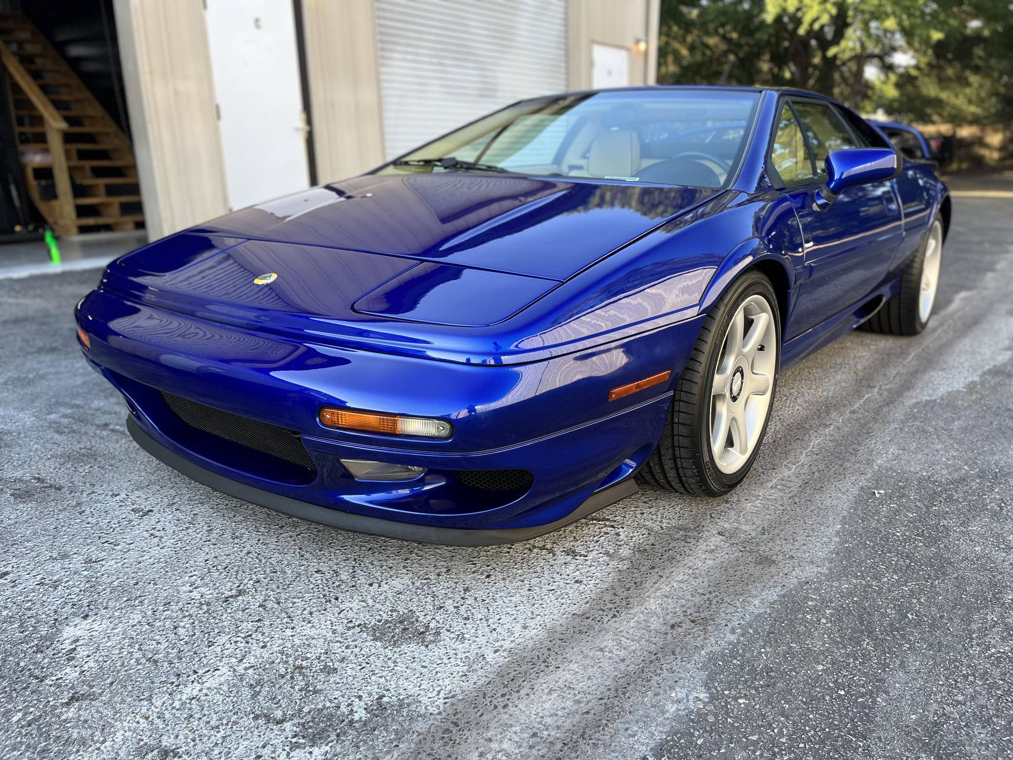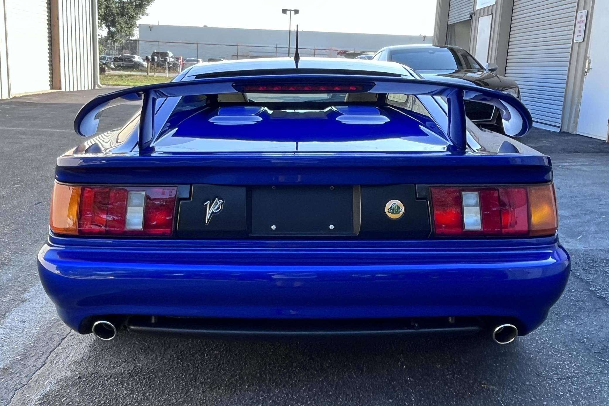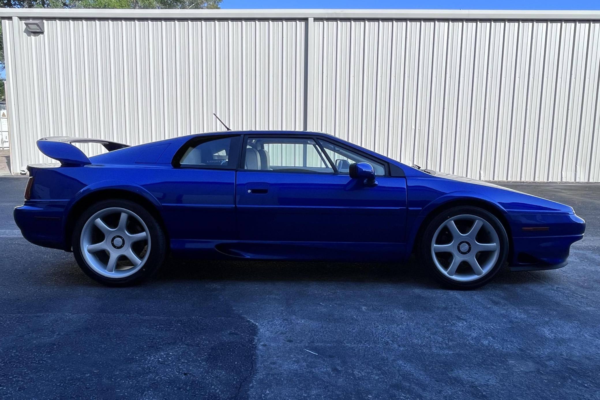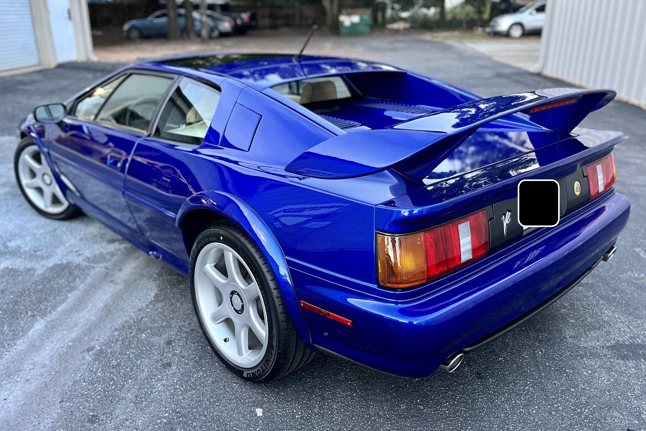 THIS. . . is a 1999 Lotus Esprit V8, finished in blue with a beige interior. Factory equipment includes 17-inch front and 18-inch rear wheels, dual fuel tanks, pop-up headlights, a rear wing, a glass roof panel, leather upholstery, blue piping on the seats, and air conditioning. The only modifications reported by the seller are a Wizard Cooling aluminum radiator and that the mufflers have been removed from the exhaust system. Lotus released the Esprit in 1976 and made numerous design and mechanical updates to the model over the next 28 years. Peter Stevens gave it a less angular exterior design in 1988, power steering became standard in 1994, and the 1997 model year brought a twin-turbocharged V8 (the first in the Esprit's history) designed in-house. Production ended in 2004 and only a small handful were sold in America. Power comes from a 3. 5-liter twin-turbocharged V8, rated at 350 horsepower and 295 lb-ft of torque. Mid-mounted, it spins the rear wheels via a 5-speed manual transmission.
