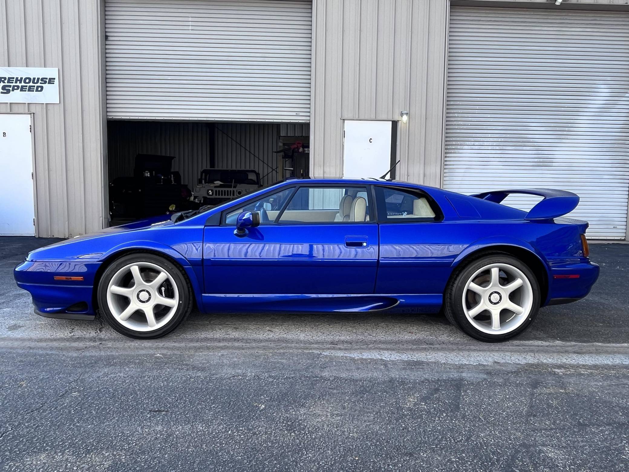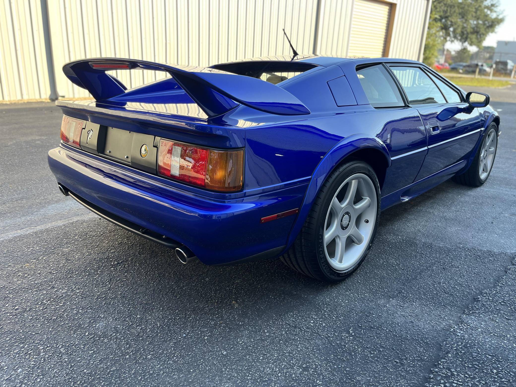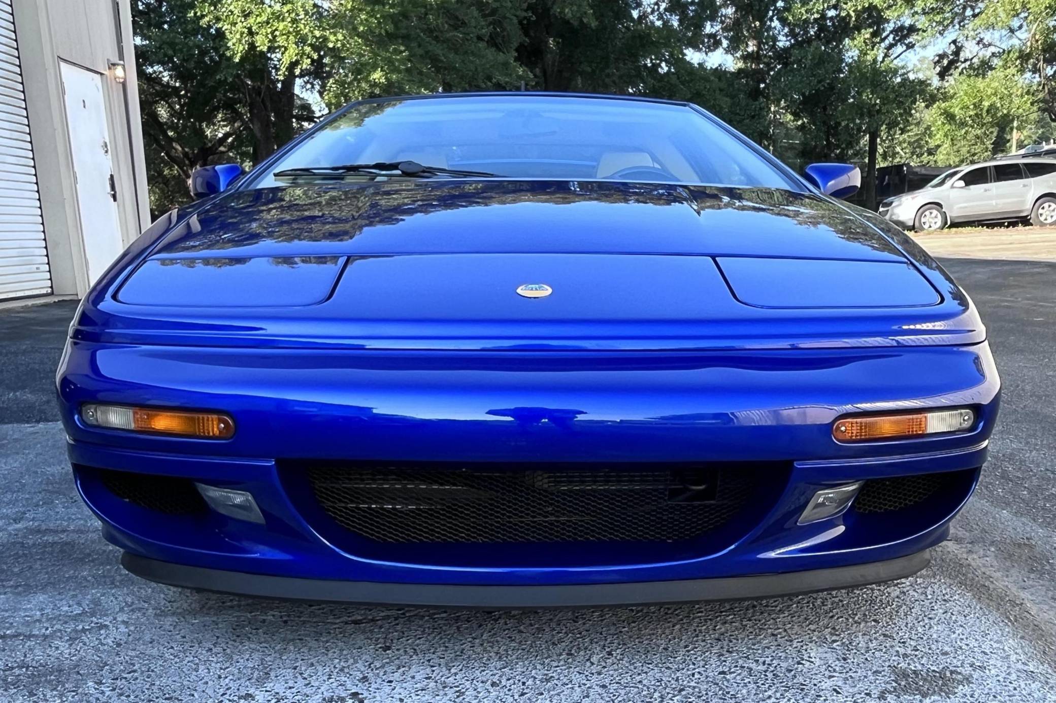 THIS. . . is a 1999 Lotus Esprit V8, finished in blue with a beige interior. Factory equipment includes 17-inch front and 18-inch rear wheels, dual fuel tanks, pop-up headlights, a rear wing, a glass roof panel, leather upholstery, blue piping on the seats, and air conditioning. The only modifications reported by the seller are a Wizard Cooling aluminum radiator and that the mufflers have been removed from the exhaust system. Lotus released the Esprit in 1976 and made numerous design and mechanical updates to the model over the next 28 years. Peter Stevens gave it a less angular exterior design in 1988, power steering became standard in 1994, and the 1997 model year brought a twin-turbocharged V8 (the first in the Esprit's history) designed in-house. Production ended in 2004 and only a small handful were sold in America. Power comes from a 3. 5-liter twin-turbocharged V8, rated at 350 horsepower and 295 lb-ft of torque. Mid-mounted, it spins the rear wheels via a 5-speed manual transmission.