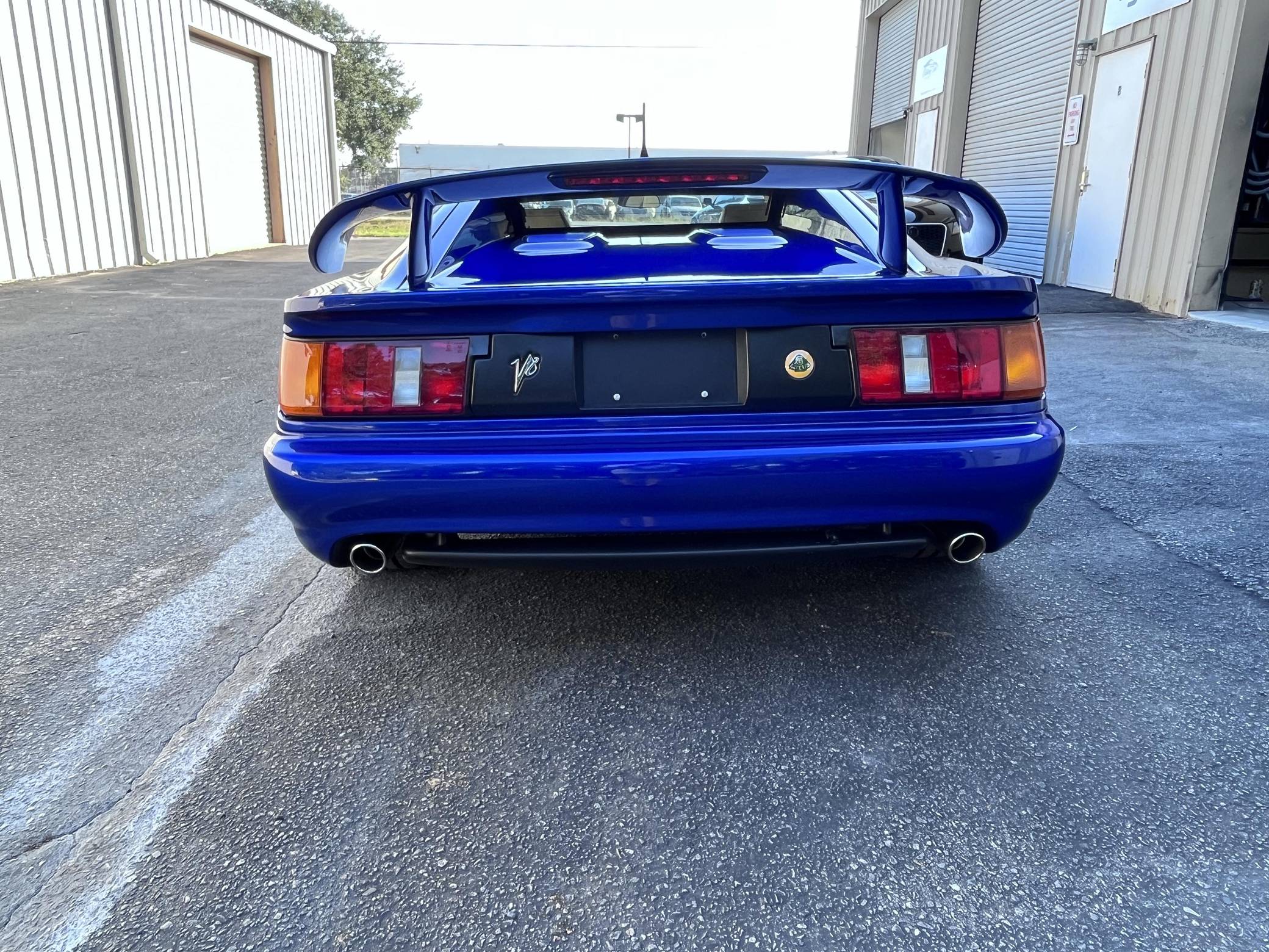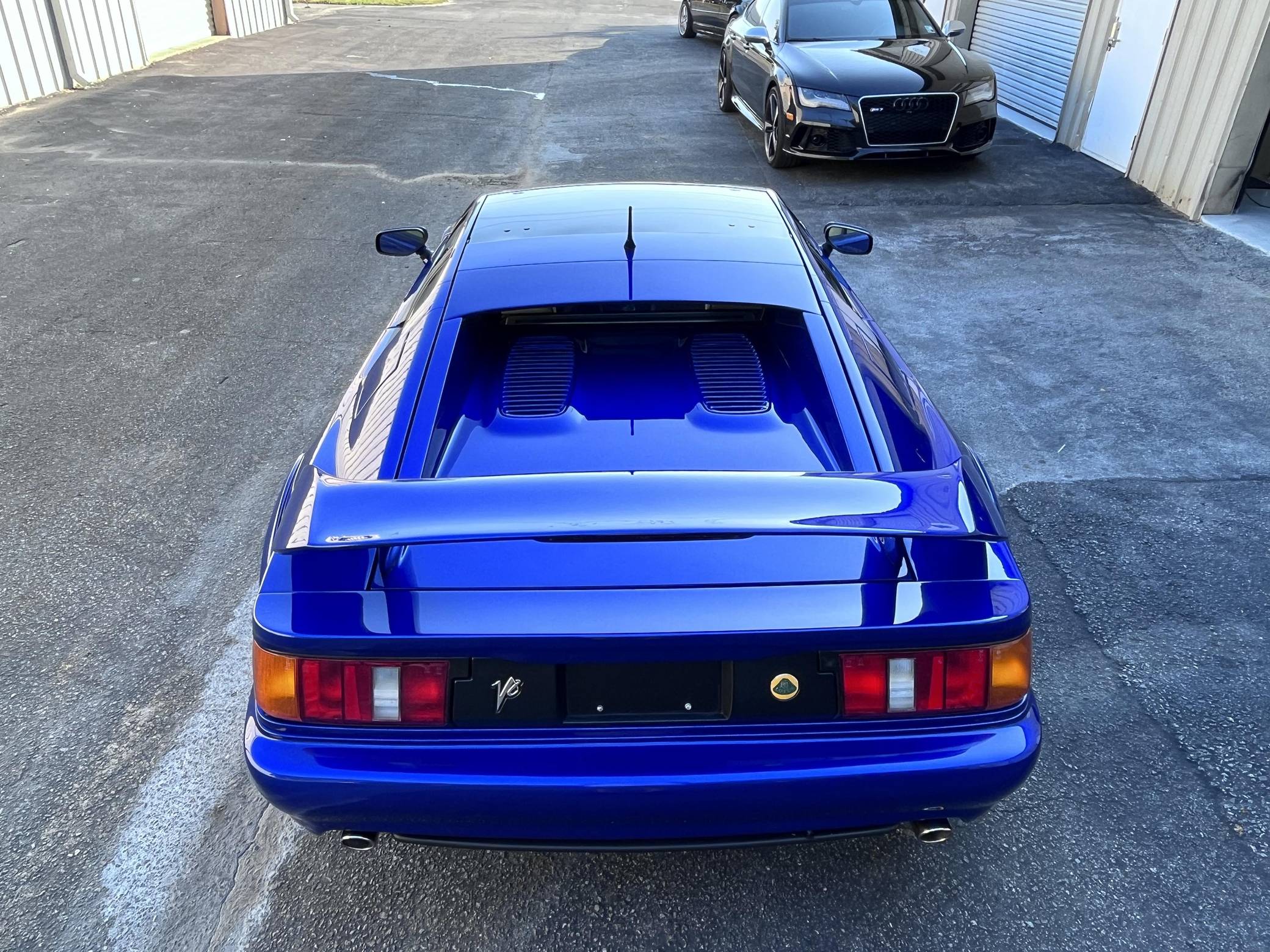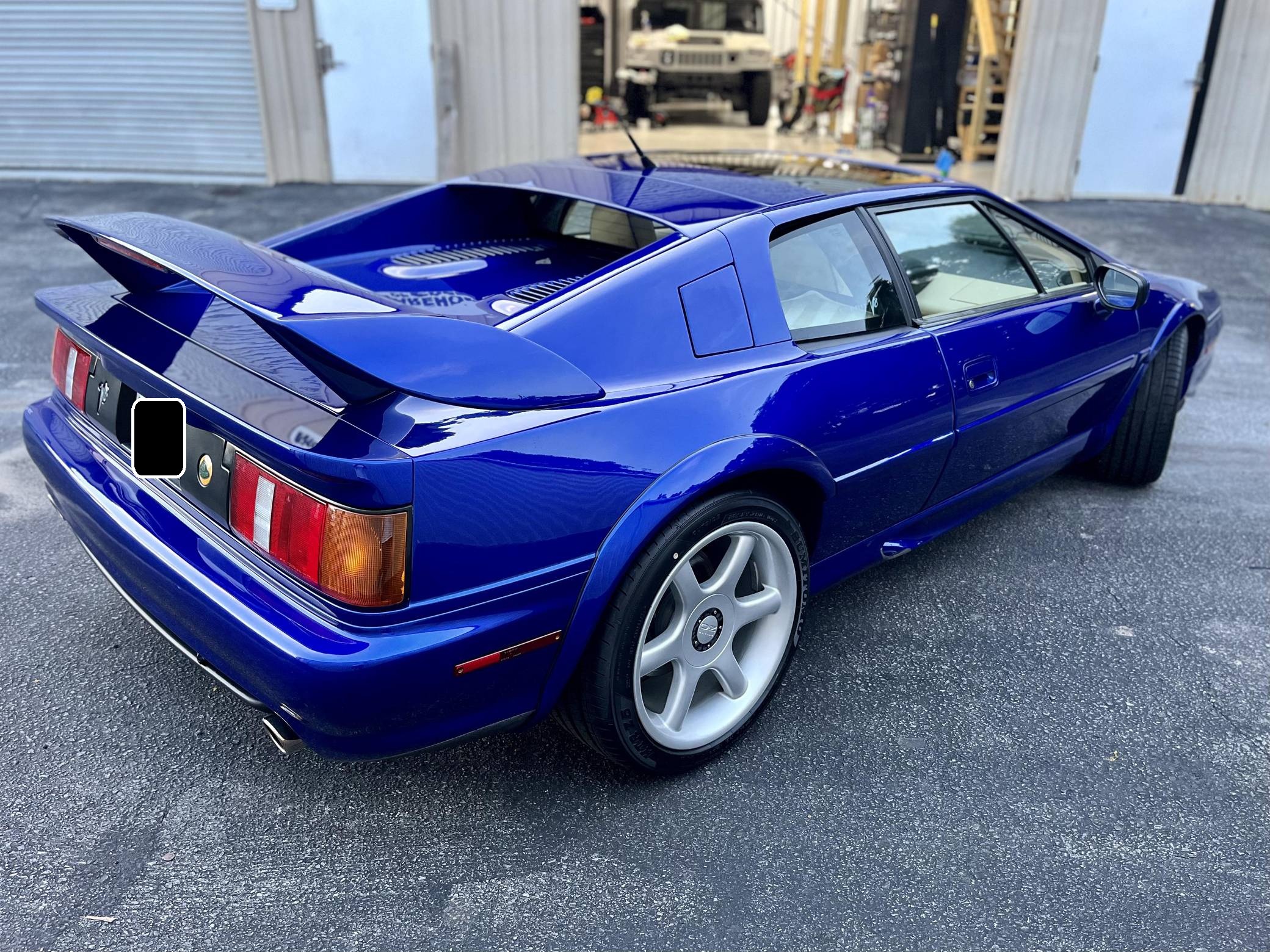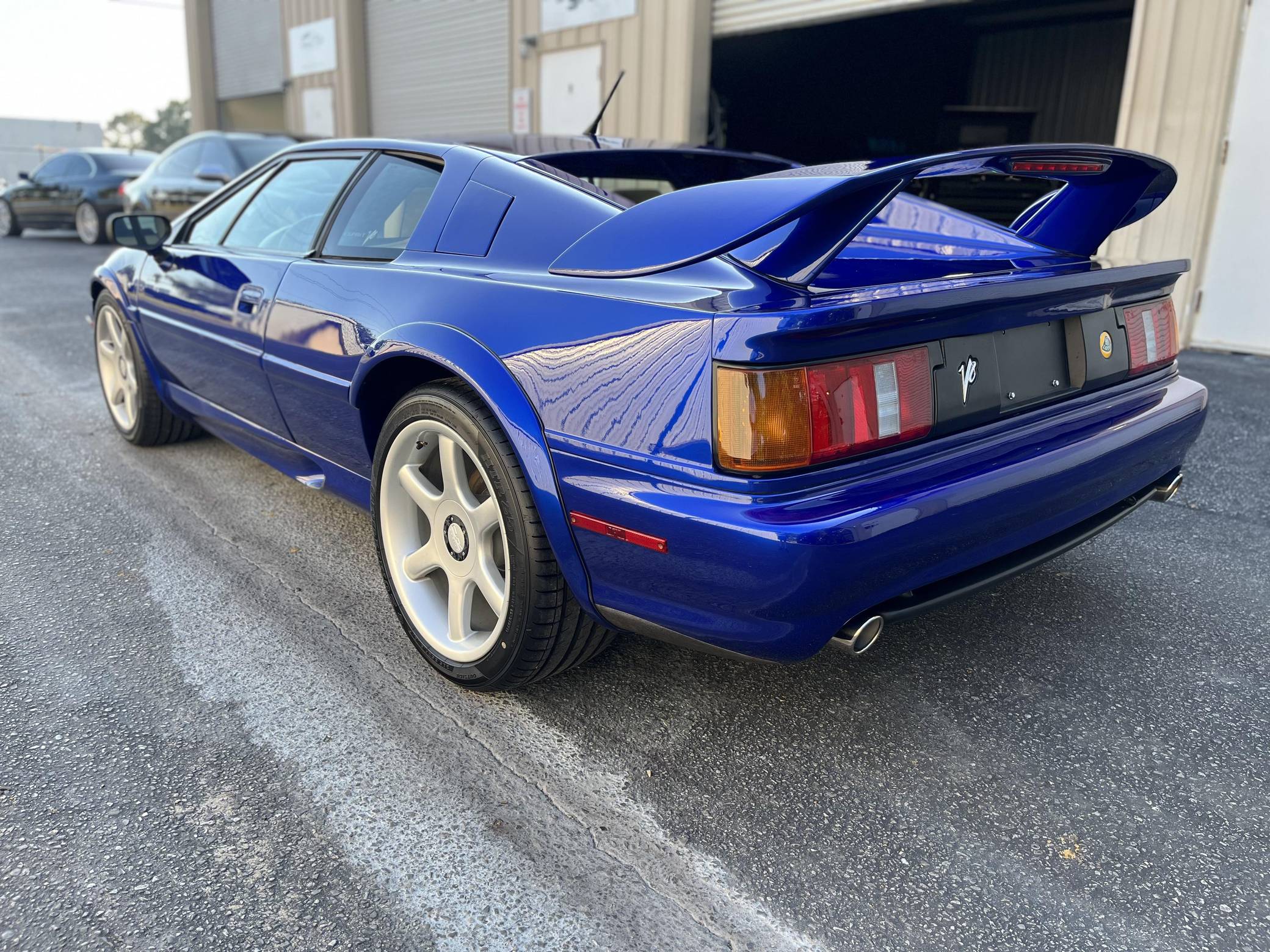 THIS. . . is a 1999 Lotus Esprit V8, finished in blue with a beige interior. Factory equipment includes 17-inch front and 18-inch rear wheels, dual fuel tanks, pop-up headlights, a rear wing, a glass roof panel, leather upholstery, blue piping on the seats, and air conditioning. The only modifications reported by the seller are a Wizard Cooling aluminum radiator and that the mufflers have been removed from the exhaust system. Lotus released the Esprit in 1976 and made numerous design and mechanical updates to the model over the next 28 years. Peter Stevens gave it a less angular exterior design in 1988, power steering became standard in 1994, and the 1997 model year brought a twin-turbocharged V8 (the first in the Esprit's history) designed in-house. Production ended in 2004 and only a small handful were sold in America. Power comes from a 3. 5-liter twin-turbocharged V8, rated at 350 horsepower and 295 lb-ft of torque. Mid-mounted, it spins the rear wheels via a 5-speed manual transmission.