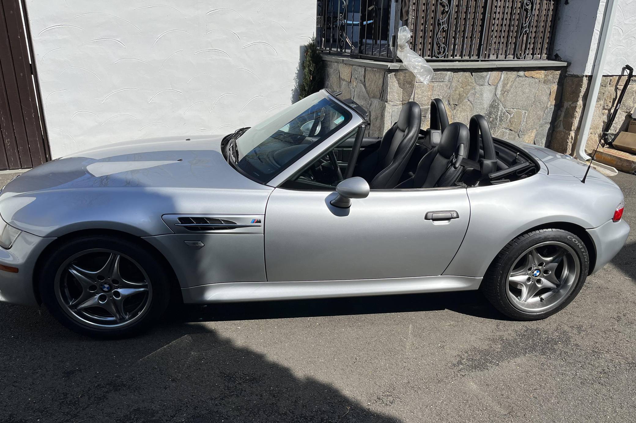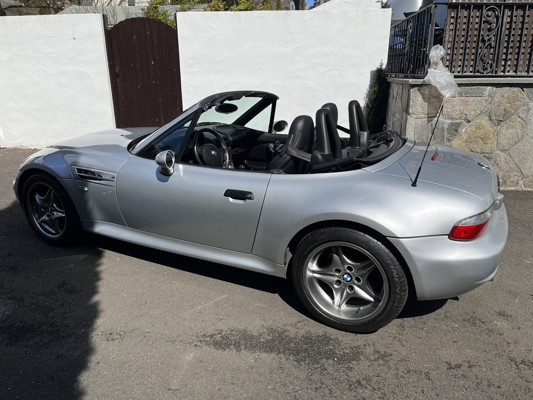 2001 BMW Z3 M Roadster, finished in Titanium Silver Metallic with a black soft top and black interior. The seller mentions no modifications. Based on the Z3, the M Roadster made its debut in 1998 with a more powerful engine shared with the E36 M3, a sportier suspension system, and wider wheel arches, among other changes. It was immediately hailed as one of the best driver's cars on the market. BMW built 8,939 units of the "S52"-powered M Roadster between 1998 and 2000, according to the BMW M Registry. 1,565 additional cars were manufactured from 2001 to 2002 with the newer "S54" engine, bringing the total to 10,504 units. Power for this Z3 M Roadster comes from a 3. 2-liter "S54" inline-6, rated at 315 horsepower and 251 lb-ft of torque. Output is sent to the rear wheels via a 5-speed manual transmission.