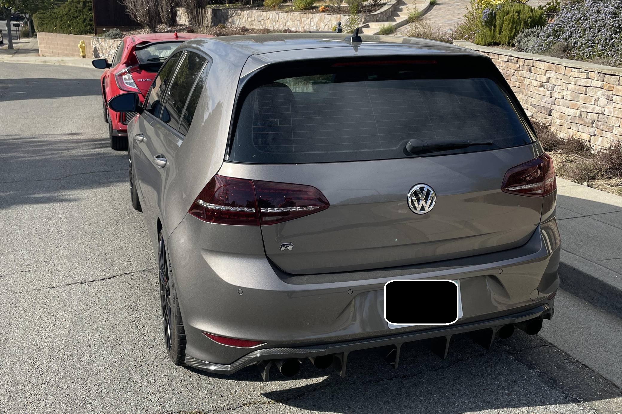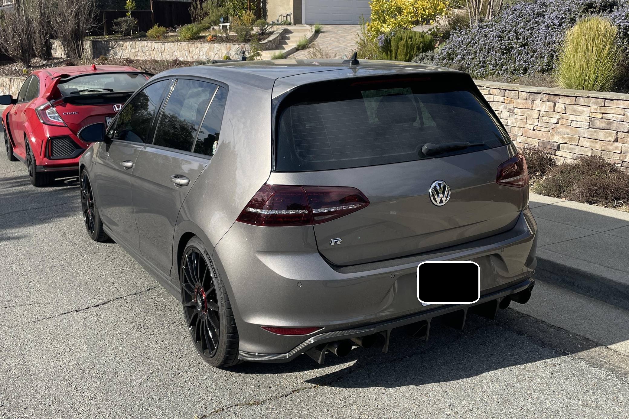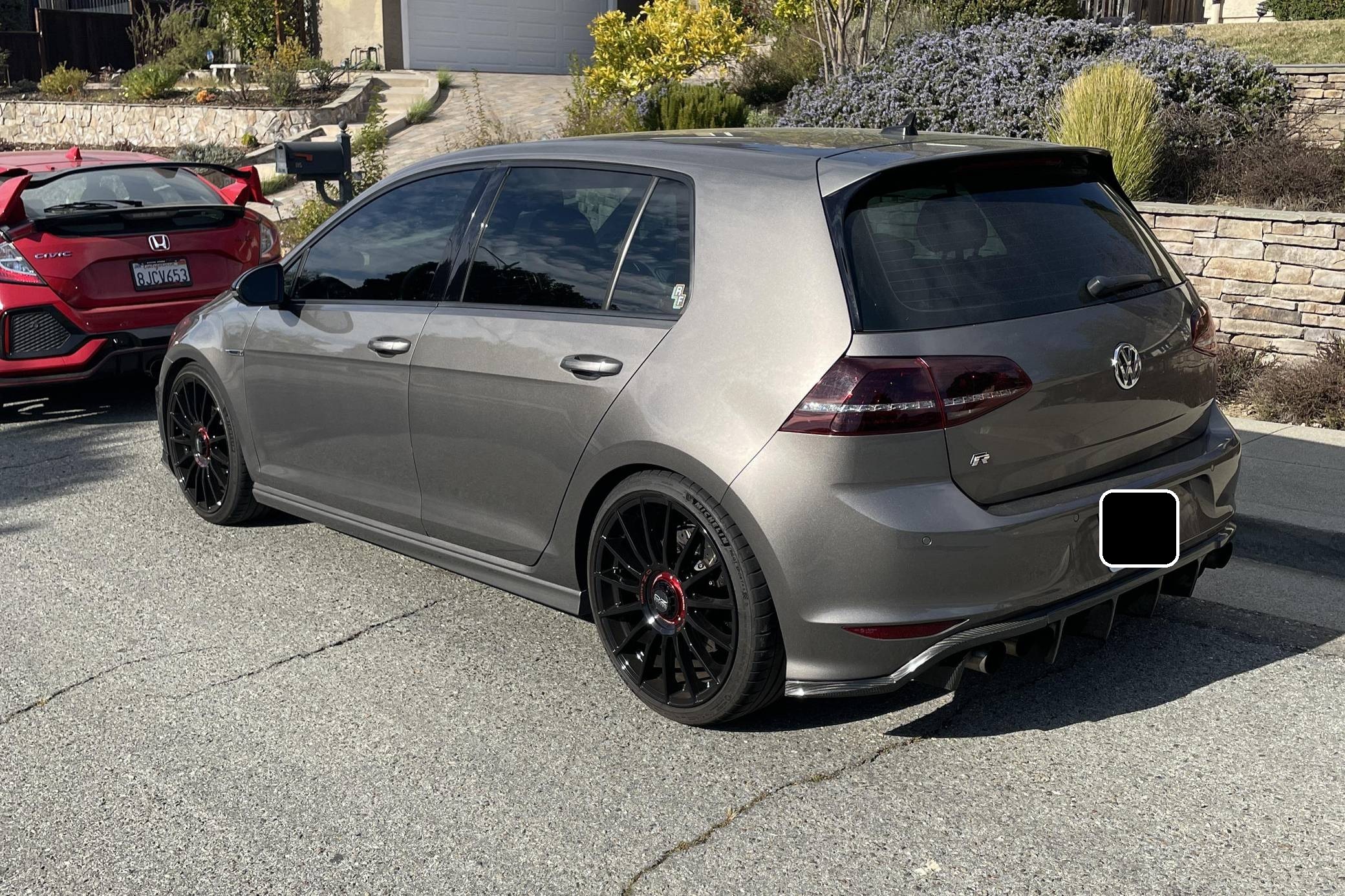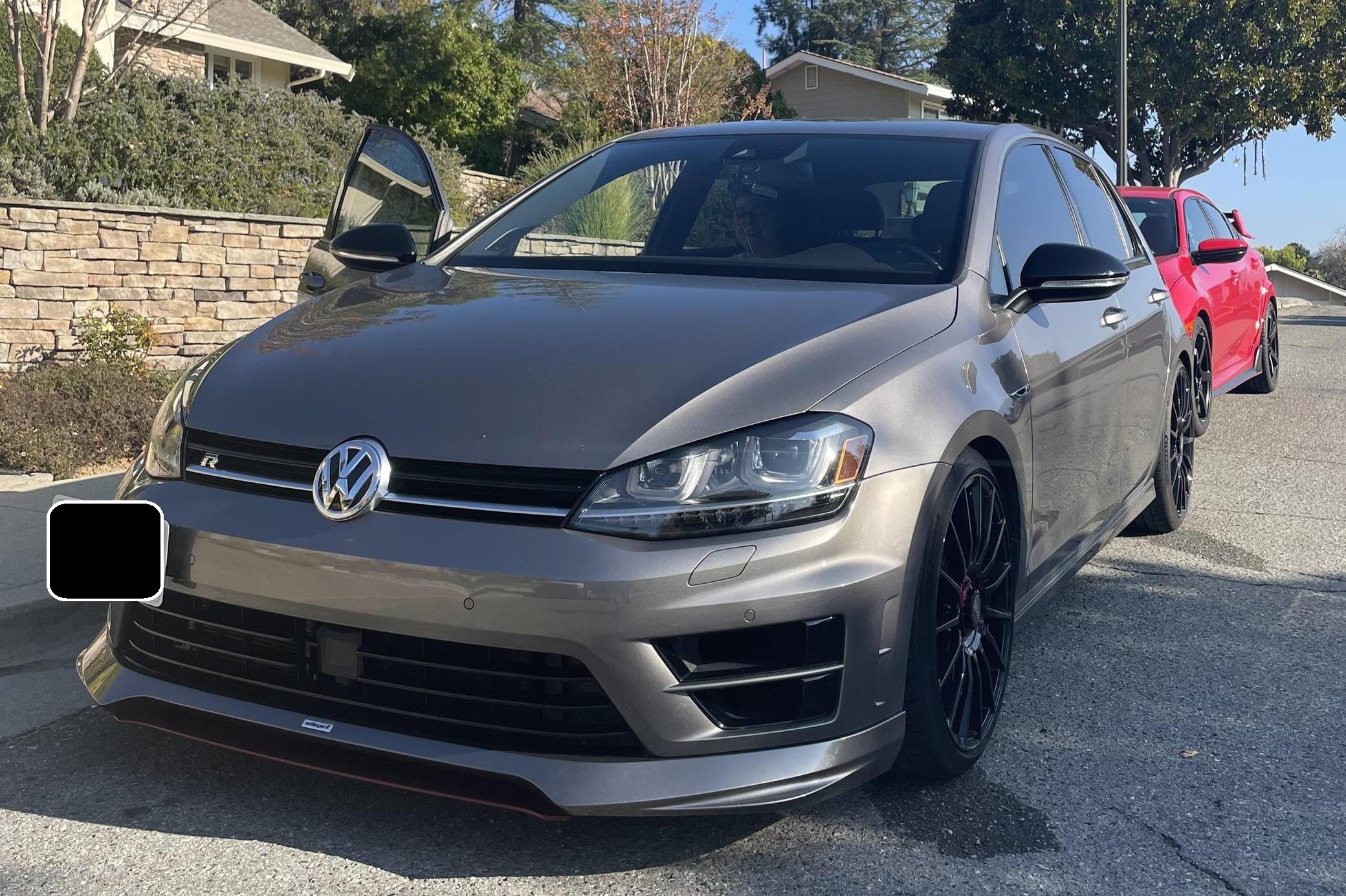2016 Volkswagen Golf R, finished in Limestone Grey Metallic with a Titan Black interior. Factory equipment includes the Driver Assistance Package, leather upholstery, heated and power-adjustable front sport seats, a Fender sound system, and a 6. 5-inch touchscreen for the infotainment system, among other features. Modifications reported by the seller are extensive, and include 19-inch OZ Superturismo wheels, 034Motorsport lowering springs, ECS Tuning 2-piece slotted and drilled rotors, a Milltek non-resonated exhaust kit, and an Integrated Engineering ECU and TCU tune. A full list of modifications is included below. Volkswagen introduced the second-generation Golf R for the 2015 model year as the quickest and most powerful series-produced evolution of the seventh-generation Golf. Putting a powerful engine and all-wheel-drive in a humble Golf was a formula that enthusiasts loved. R owners enjoyed impressive performance, sharp handling, and the versatility of a hatchback with split-folding rear seats. Power for this Golf R comes from a turbocharged 2. 0-liter, 4-cylinder engine, rated at 292 horsepower and 280 lb-ft of torque when left stock. Due to the modifications performed to this Volkswagen, it may produce more power, but a dyno sheet was not provided to confirm. Called "EA888" internally, the engine spins the 4 wheels via a 6-speed DSG transmission and Volkswagen's permanent 4Motion all-wheel-drive system.