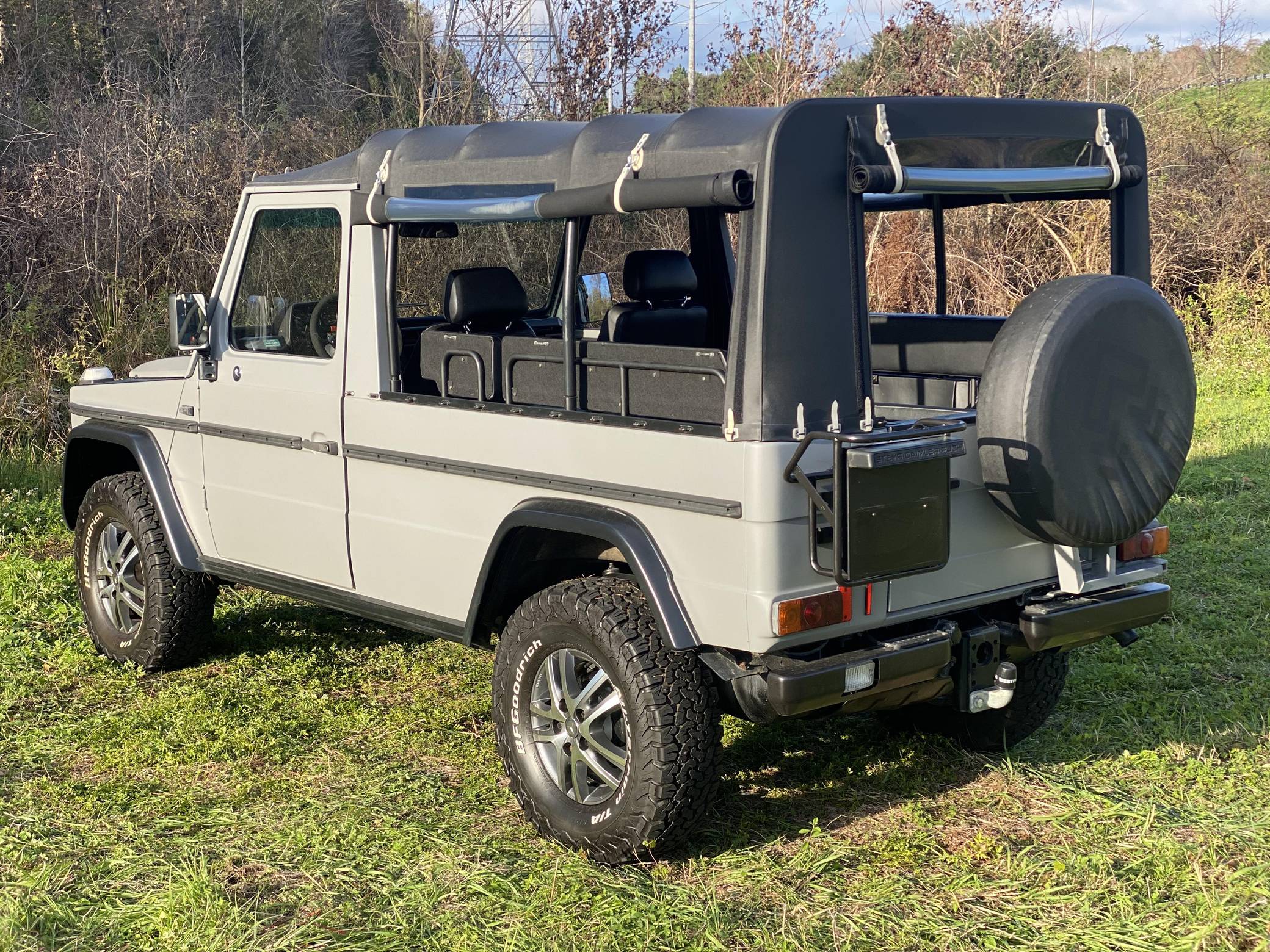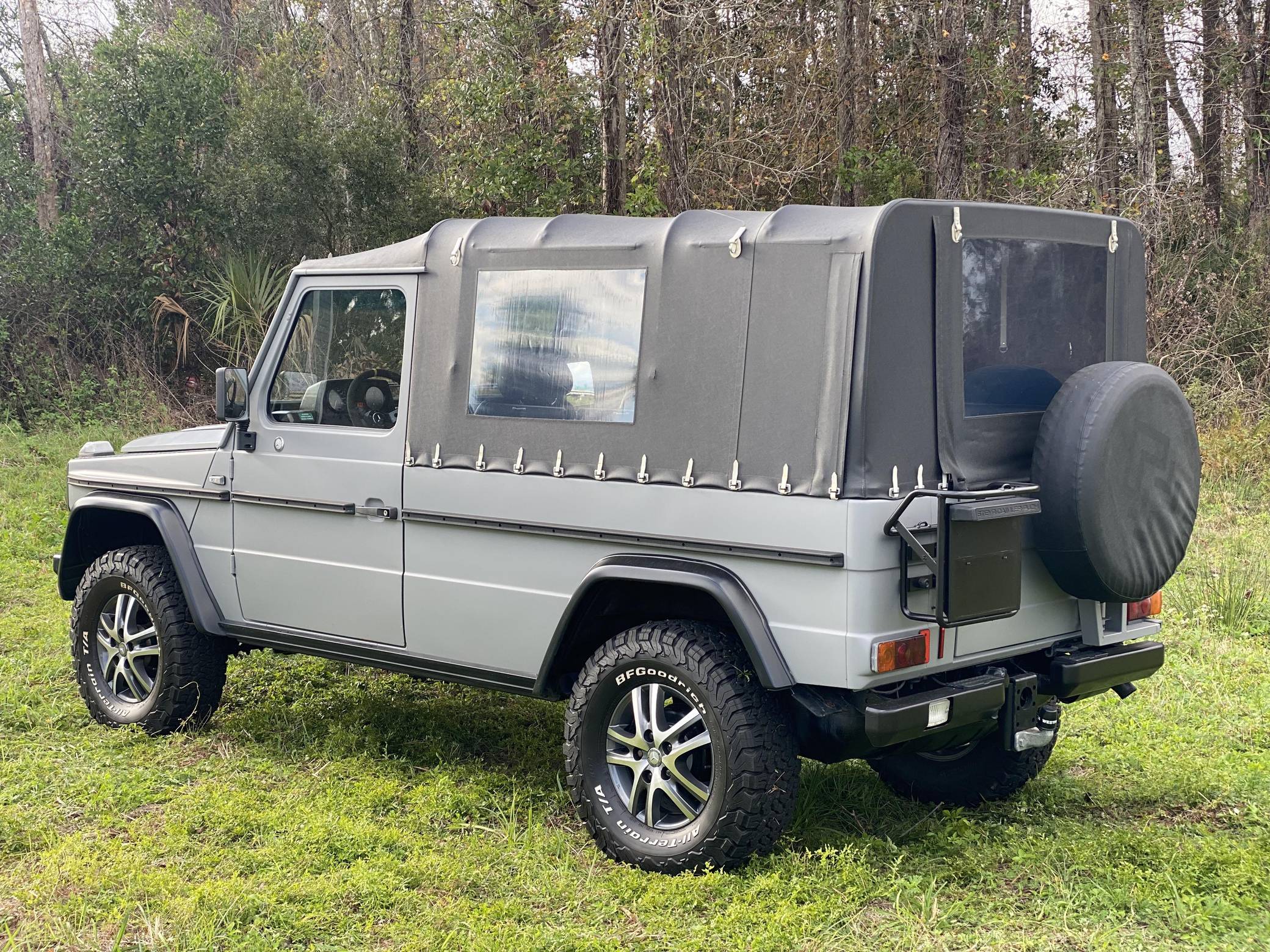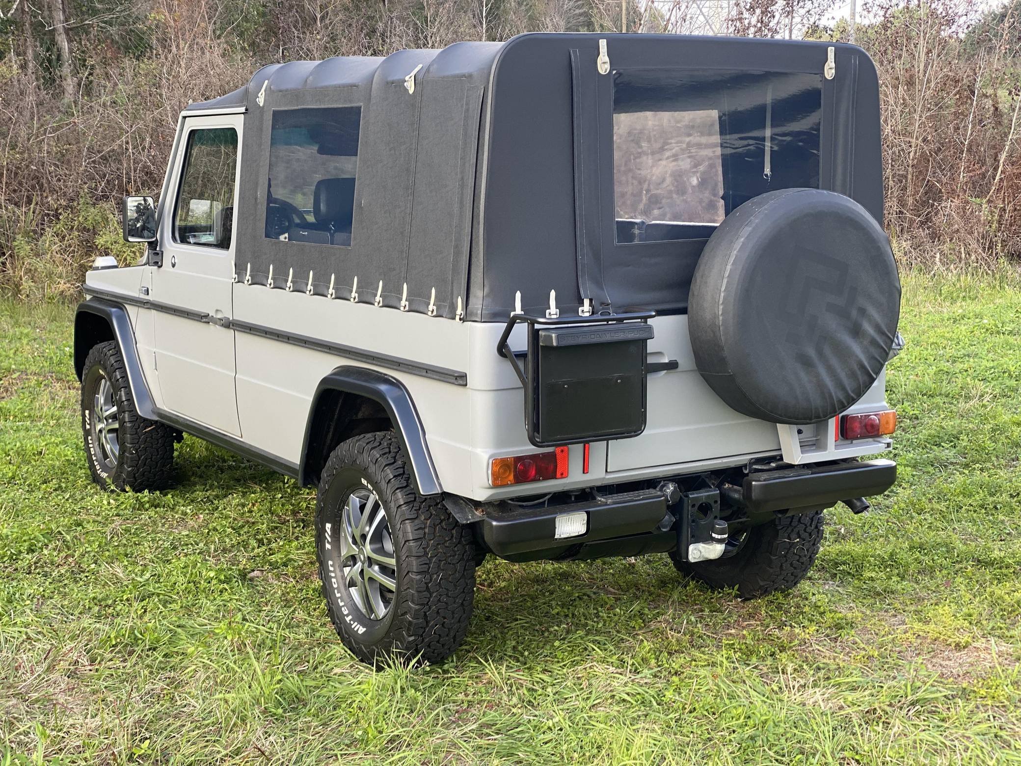 1995 Puch 230GE, finished in matte gray with a black soft top and a black interior. Factory equipment includes a locking rear differential, a dual-range transfer case, a trailer plug socket, metal bumpers, manual windows, and more as listed below. According to the seller, this 230GE underwent a recent restoration, including a full body repaint in matte gray, a front Mercedes grille badge, an interior retrim with vinyl upholstery, new inner door panels, and more as detailed below. A vehicle market value appraisal report in German from 2019 is included in the photo gallery. The “W461” G entered production in 1992 as a utilitarian model designed specifically for use by military and public authorities. It shared the same powertrains with the civilian “W463” that was introduced a few years earlier, but retained the body of the previous “W460”. The Puch G was the exact same truck as the Mercedes G-Class and it was offered only in certain markets as part of a deal between Mercedes and Steyr. Power comes from a 2. 3-liter inline-4 engine, rated at 114 horsepower and 139 lb-ft of torque. Output is sent to all four wheels via a 4-speed automatic transmission and a dual-range transfer case.
