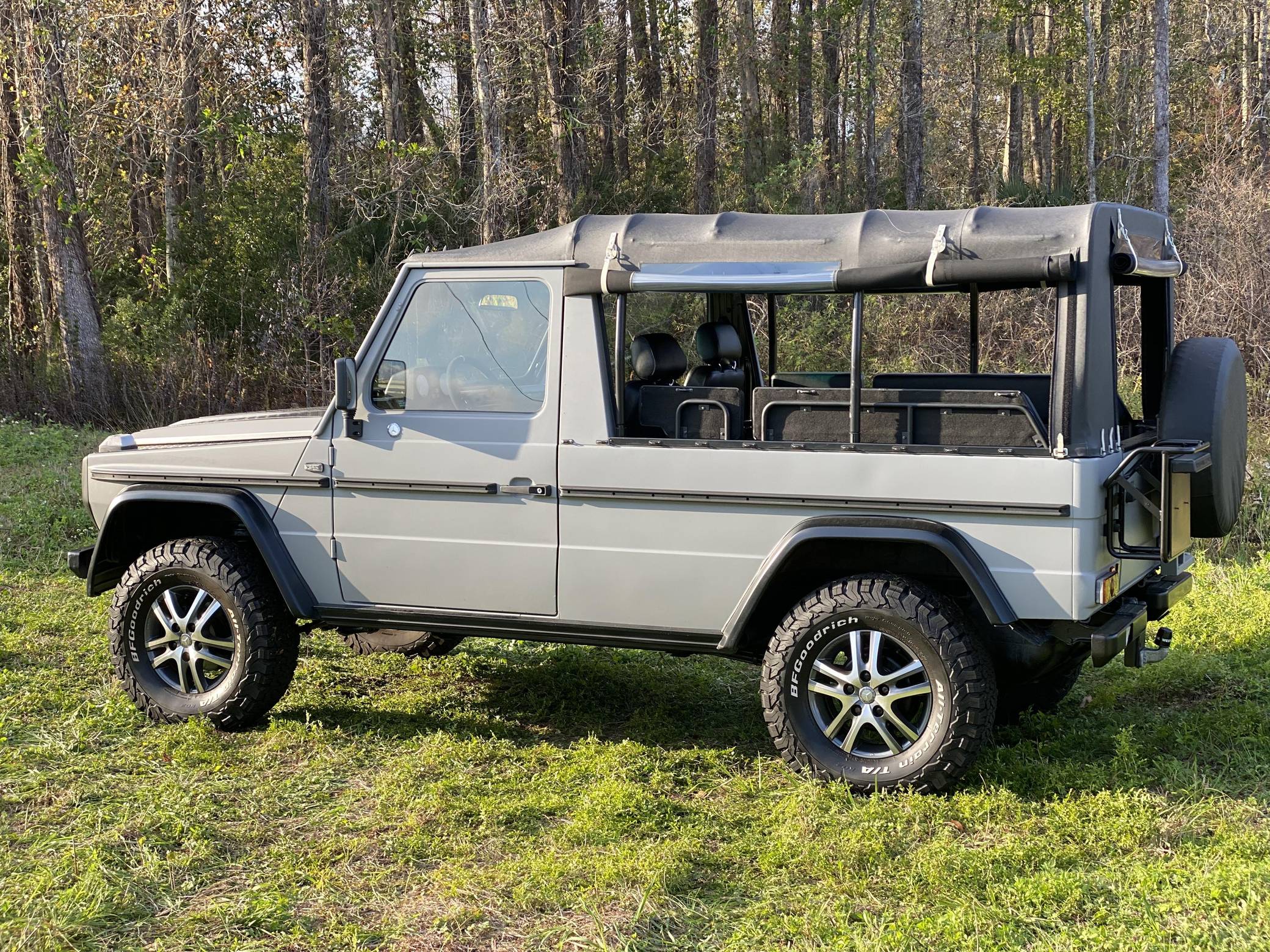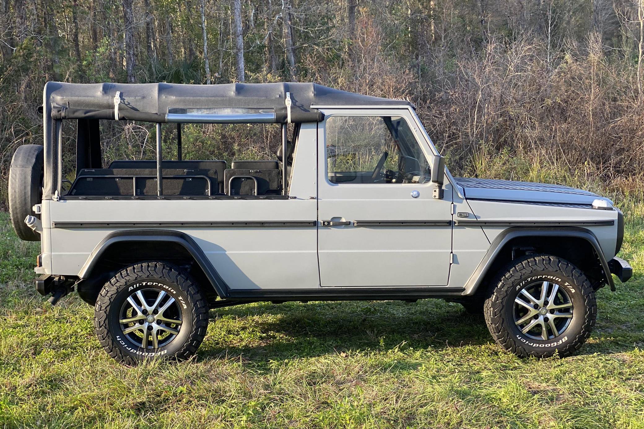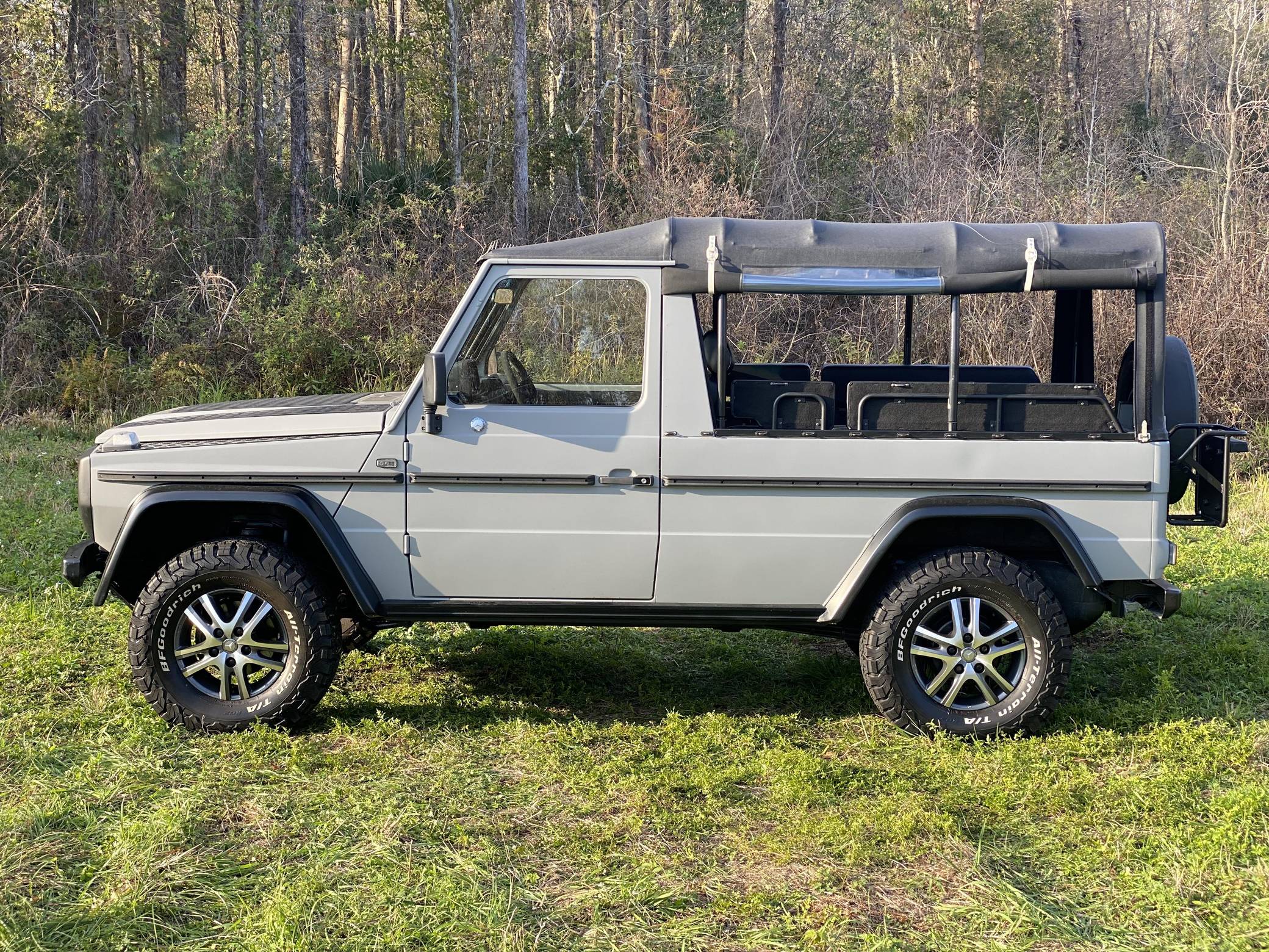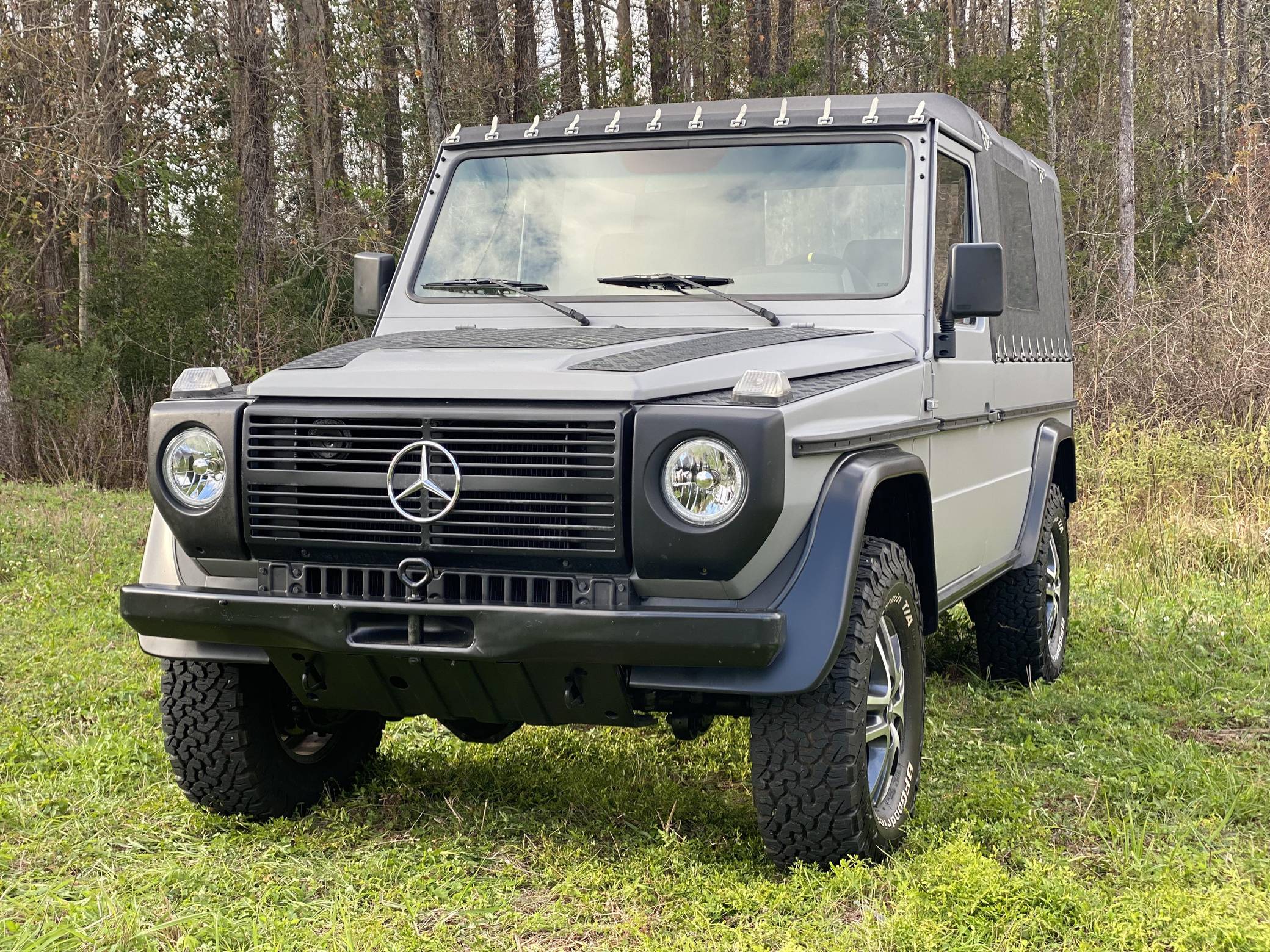 1995 Puch 230GE, finished in matte gray with a black soft top and a black interior. Factory equipment includes a locking rear differential, a dual-range transfer case, a trailer plug socket, metal bumpers, manual windows, and more as listed below. According to the seller, this 230GE underwent a recent restoration, including a full body repaint in matte gray, a front Mercedes grille badge, an interior retrim with vinyl upholstery, new inner door panels, and more as detailed below. A vehicle market value appraisal report in German from 2019 is included in the photo gallery. The “W461” G entered production in 1992 as a utilitarian model designed specifically for use by military and public authorities. It shared the same powertrains with the civilian “W463” that was introduced a few years earlier, but retained the body of the previous “W460”. The Puch G was the exact same truck as the Mercedes G-Class and it was offered only in certain markets as part of a deal between Mercedes and Steyr. Power comes from a 2. 3-liter inline-4 engine, rated at 114 horsepower and 139 lb-ft of torque. Output is sent to all four wheels via a 4-speed automatic transmission and a dual-range transfer case.