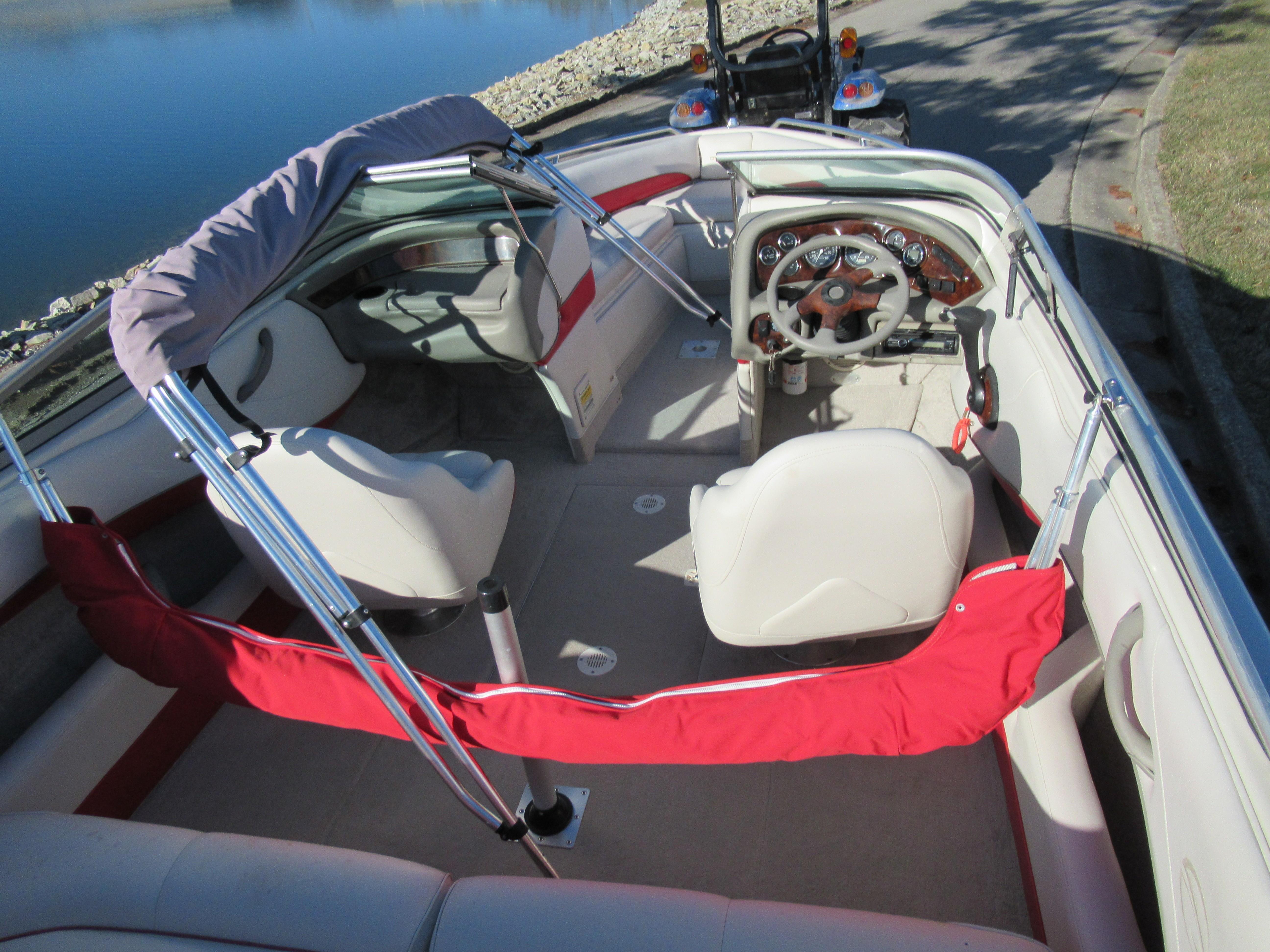 If you are looking for a family fun boat that can go through the challenges of kids getting older, or a family that just loves all water sports, this is a great boat. At only 20 feet in length, it gives a great ride and is easy to maneuver on both land and water. BR, Bimini Top, In-Floor Storage, Tilt-Wheel, Stereo/CD/Sat radio, Sun Deck, CD Player, Fuel Gauge, Navigation Lights, Running Lights, and much more.