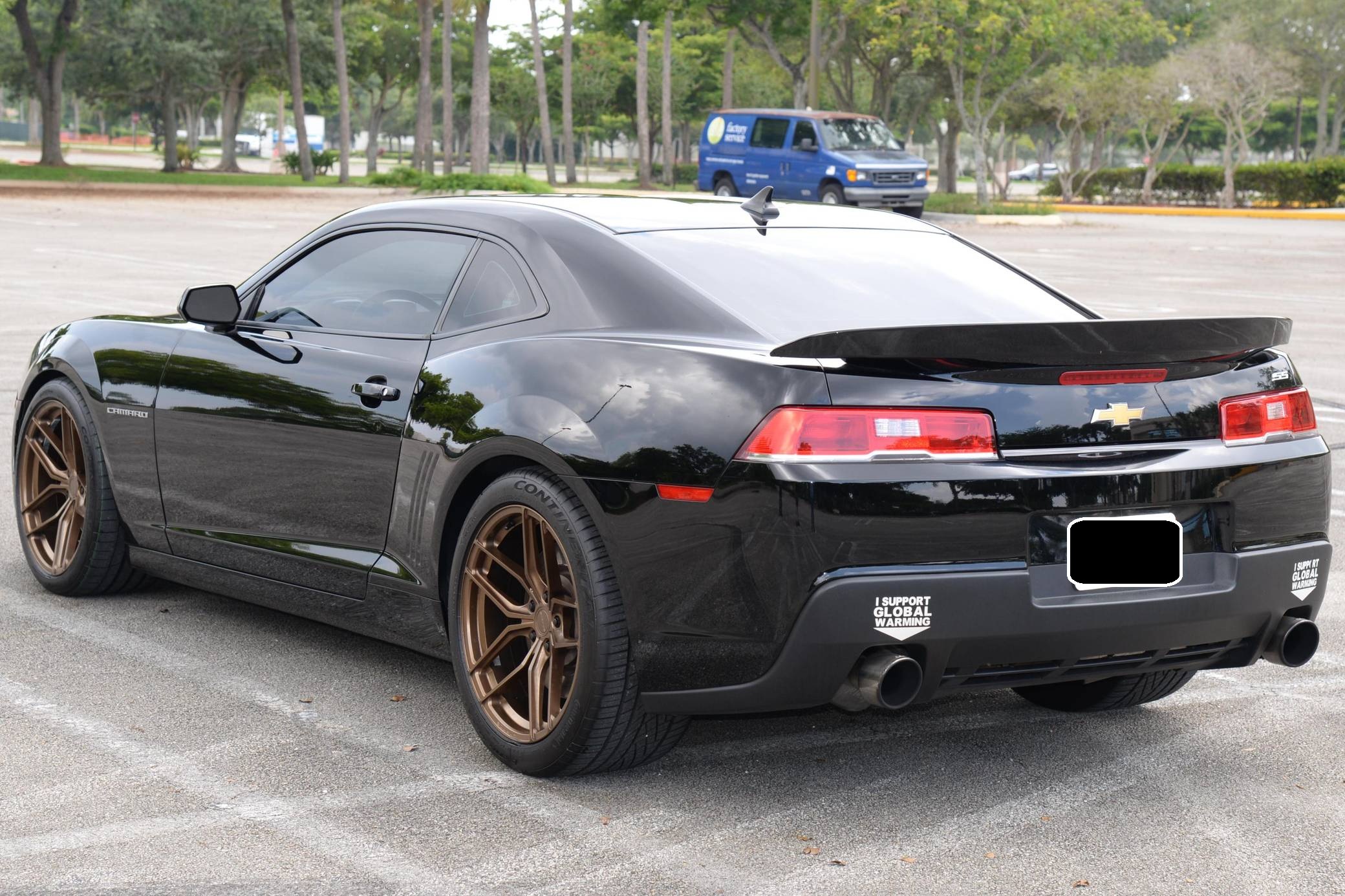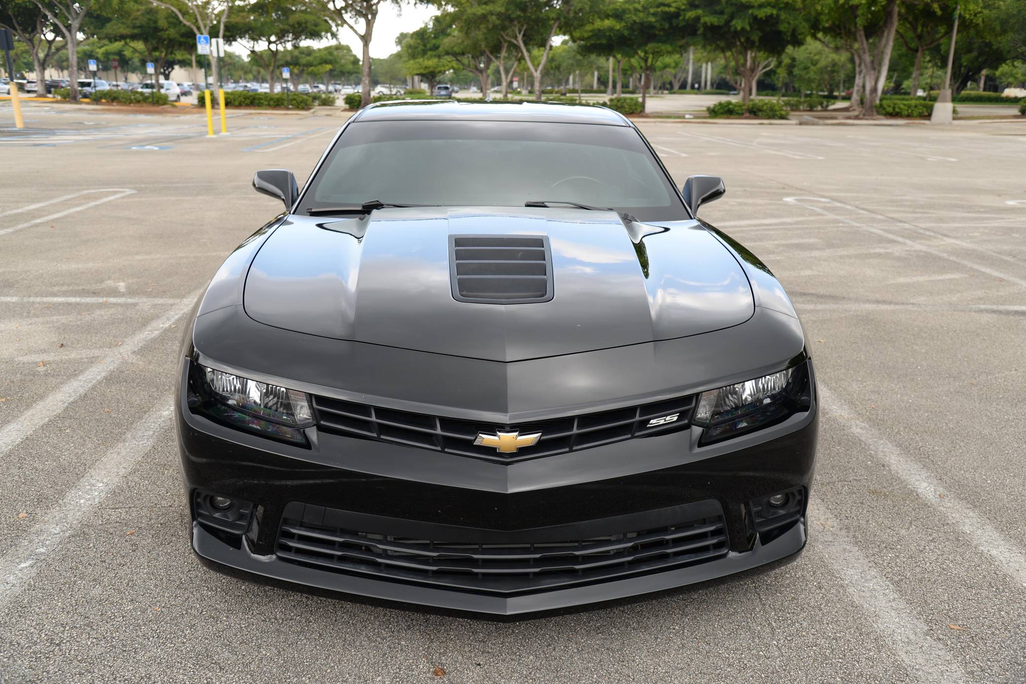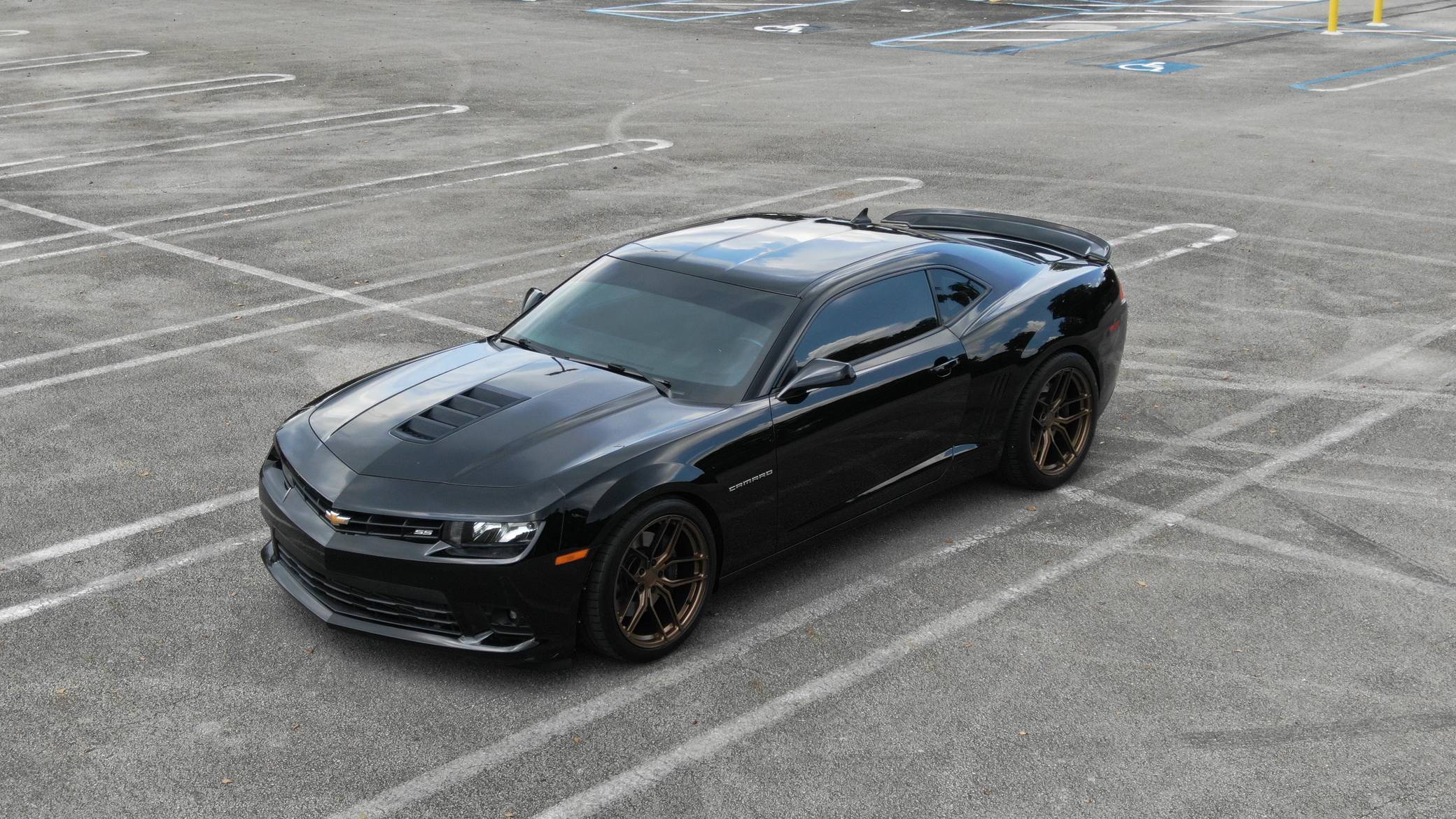 2015 Chevrolet Camaro SS Coupe, finished in black with a black interior. This Camaro features the desirable 6-speed manual transmission, and its odometer indicates approximately 26,700 miles. A partial list of notable equipment includes Brembo brakes, a performance-tuned suspension, a leather-wrapped shifter, and a Chevrolet MyLink infotainment system with Bluetooth. Modifications to this Camaro are extensive, and the full list is detailed below. include an ECS supercharger kit, a custom tune, Texas Speed long-tube headers, a Borla ATAK exhaust system, and 20-inch Stance wheels. When the fifth-generation Chevy Camaro came out for the 2010 model year, it marked the return of an American icon after an eight-year hiatus. It employed a muscular, retro-inspired design that was very similar to popular preceding Camaro concept cars. Power comes from an "LS3" 6. 2-liter V8 engine, which produces up to 692 horsepower and 581 lb-ft of torque at the wheels according to a dyno sheet in the photo gallery. Output is sent to the rear wheels via a 6-speed manual transmission.