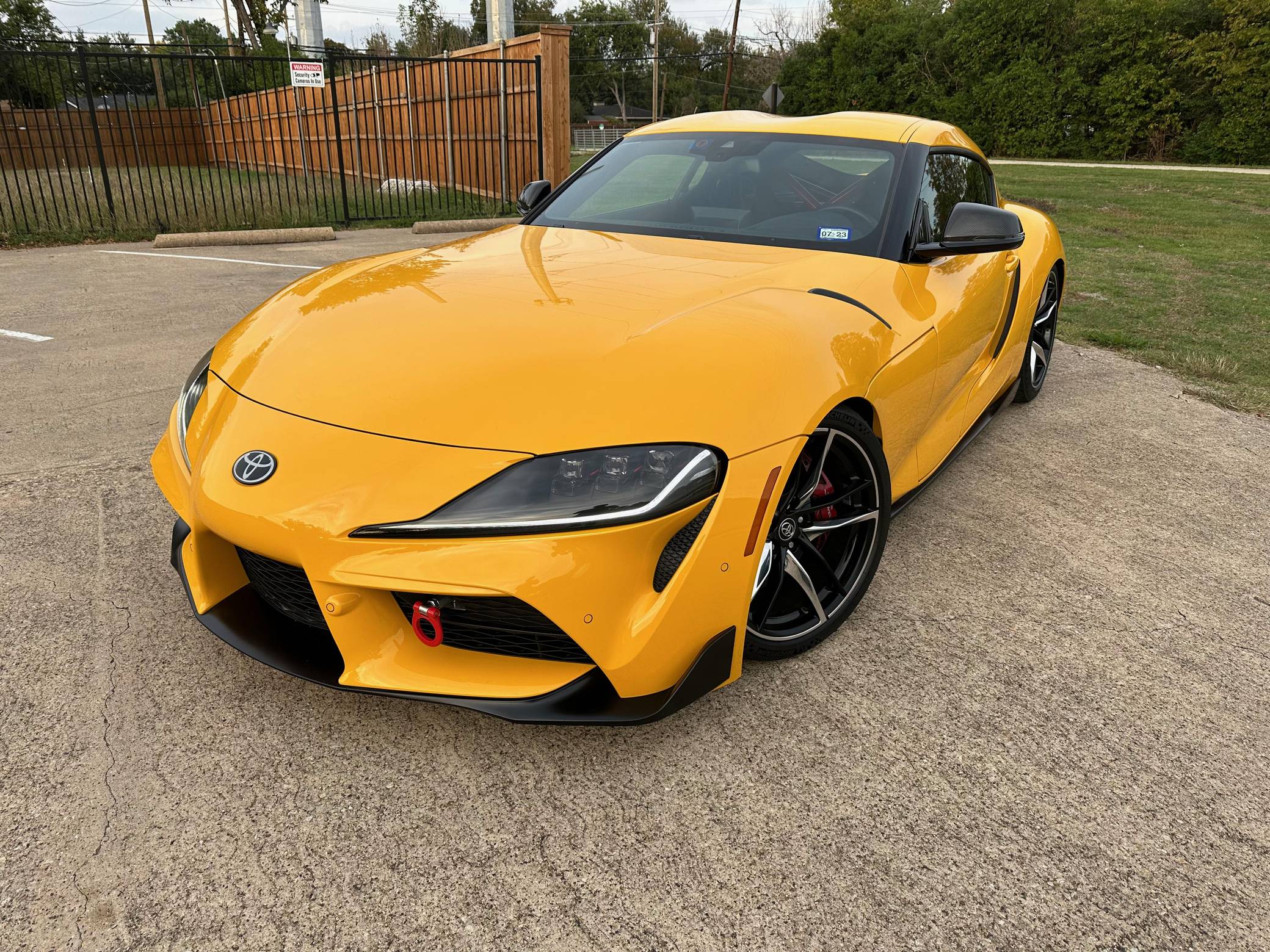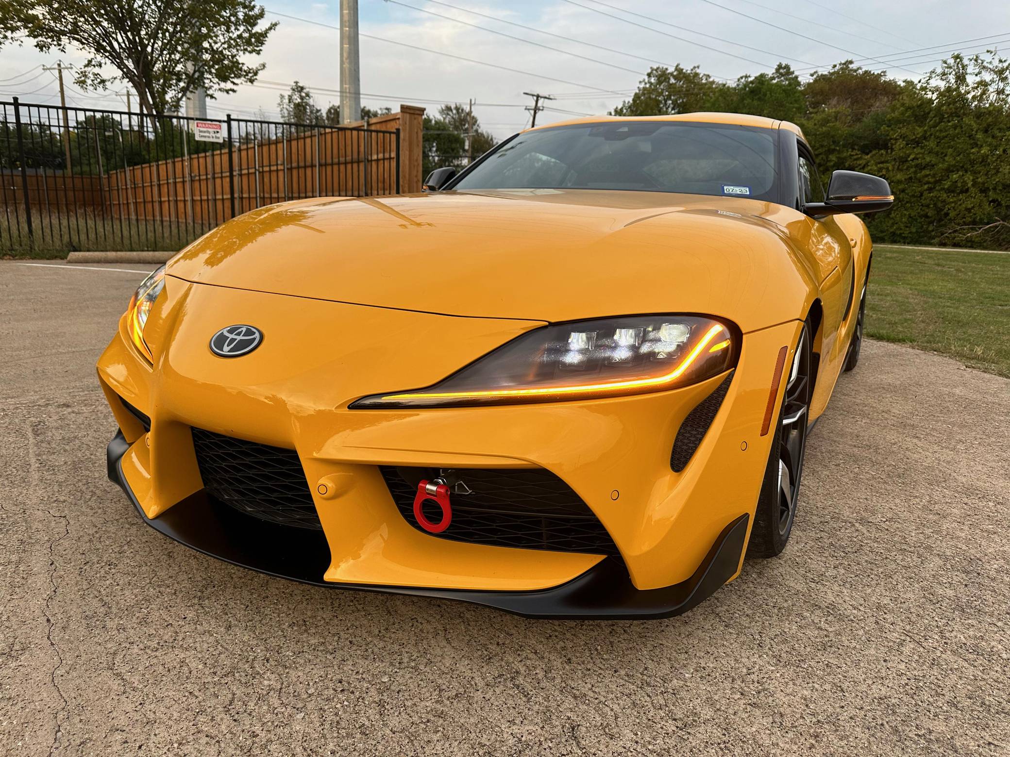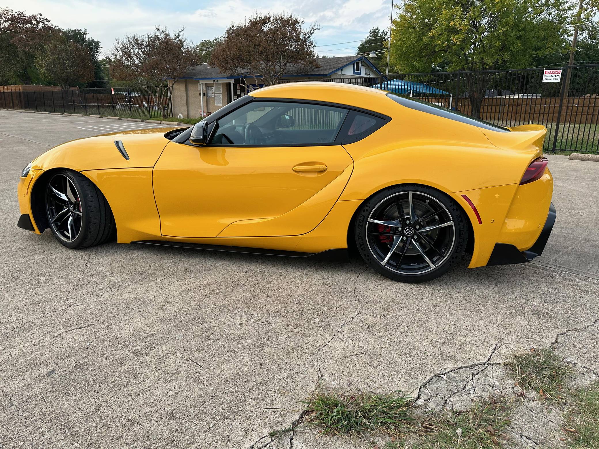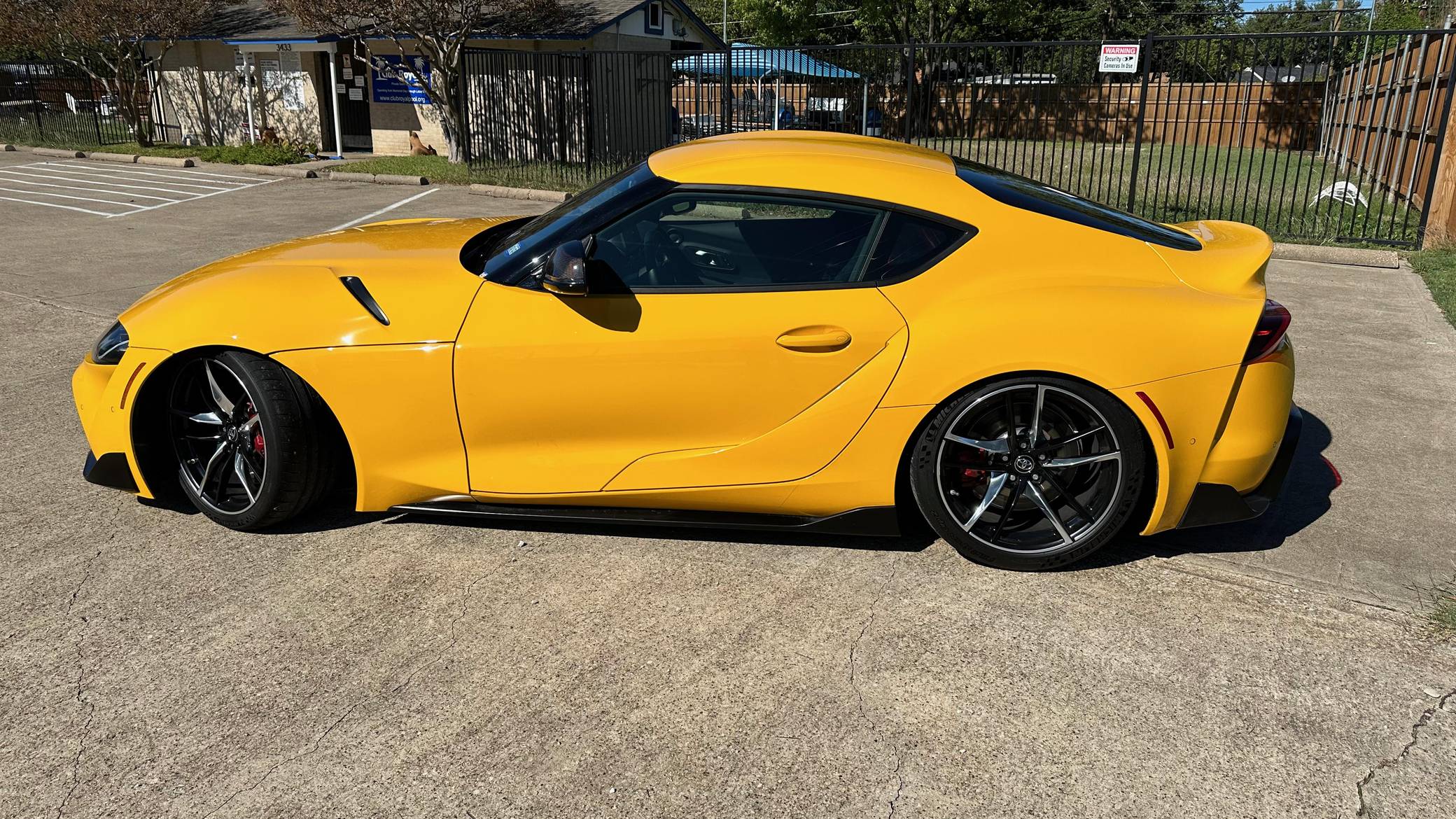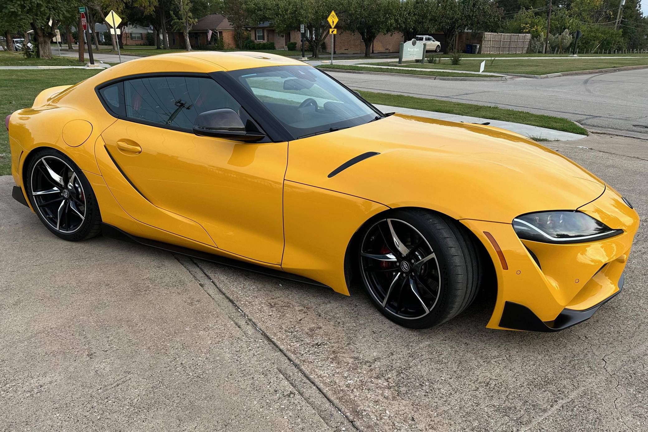 THIS. . . is a 2021 Toyota Supra 3. 0 Premium, finished in Nitro Yellow with a black interior. Modifications reported by the seller include a KW 2-way adjustable coilover suspension, a StudioRSR bolt-in roll cage, a set of Sparco EVO L bucket seats, and more as listed below. After a nearly two-decade absence, the Supra was revived as part of a major partnership with BMW. With turbocharged 4- or 6-cylinder power, the Graz, Austria-built Supra went on sale in mid-2019. Changes for 2021 included a hefty bump in power and numerous chassis tweaks. Power comes from a "B58" 3. 0-liter turbocharged inline-6, rated at 382 horsepower and 368 lb-ft of torque. Output is sent to the rear wheels via an 8-speed automatic transmission.