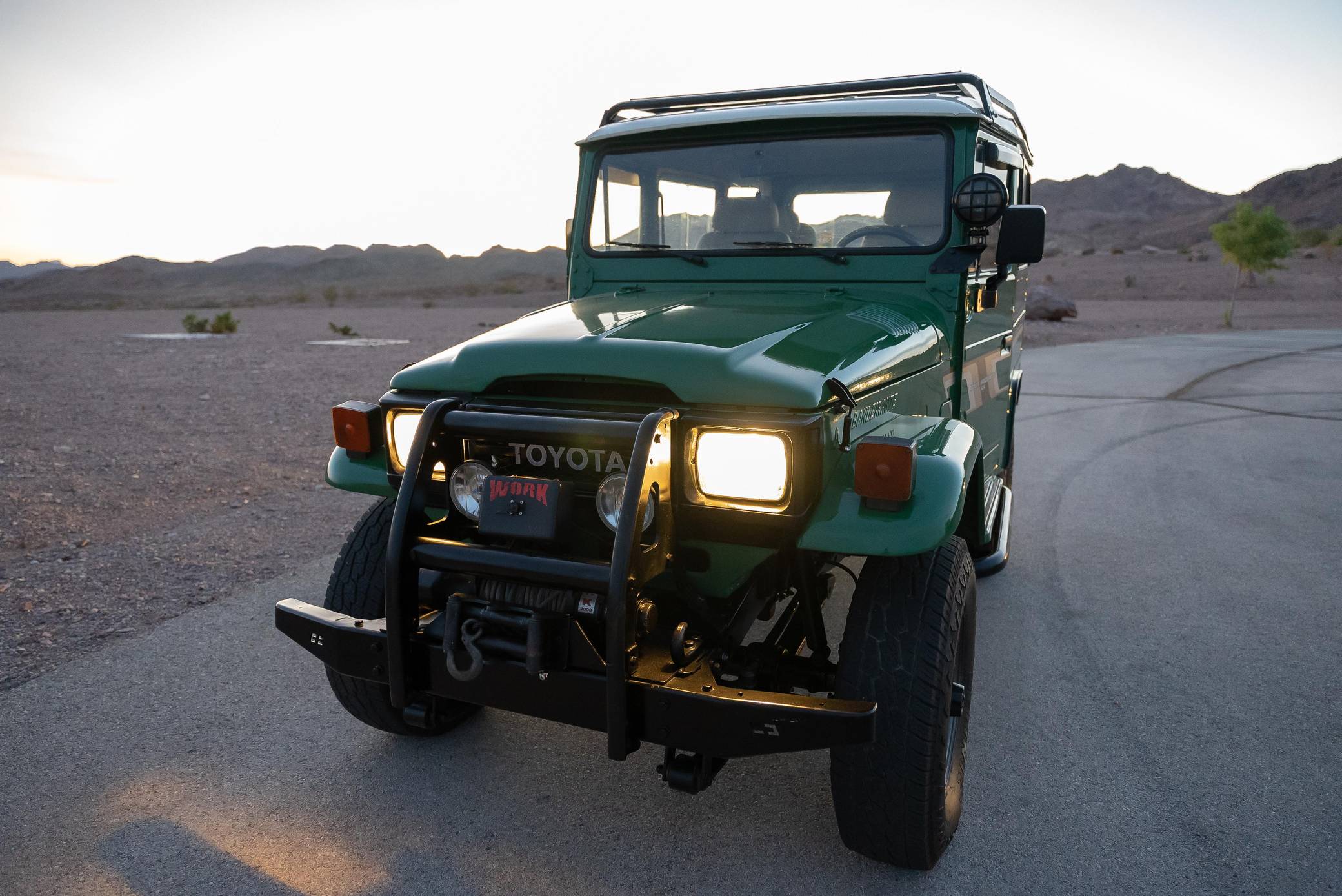 1990 Toyota Bandeirante, finished in green with a cream interior. This Bandeirante is a left-hand-drive SUV equipped with a 4-speed manual transmission and. Said to be imported in 2019, it's equipped with a metric instrument cluster, and the odometer shows about 43,900 kilometers, which represents approximately 27,300 miles. Equipment includes hand-crank windows and sliding quarter windows. A partial list of modifications reported by the seller includes 16-inch wheels, an aftermarket front bumper and brush guard, auxiliary lighting, a winch, roof rack, custom leather upholstery, power-adjustable front seats, an aftermarket steering wheel, and a Pioneer head unit. Toyota's Brazilian division started making the Land Cruiser locally in 1958. Later renamed Bandeirante, the truck featured several market-specific modifications such as a Mercedes-Benz-sourced diesel engine installed in the name of fuel economy. Additional mechanical updates (including newer Mercedes-Benz engines) and a handful of visual tweaks were made to the Bandeirante until production ended in 2001. Power comes from a 4. 0-liter diesel inline-4, rated at approximately 90 horsepower and 235 lb-ft of torque. Output is directed to the rear or all four wheels through a 4-speed manual transmission and a 2-speed transfer case.