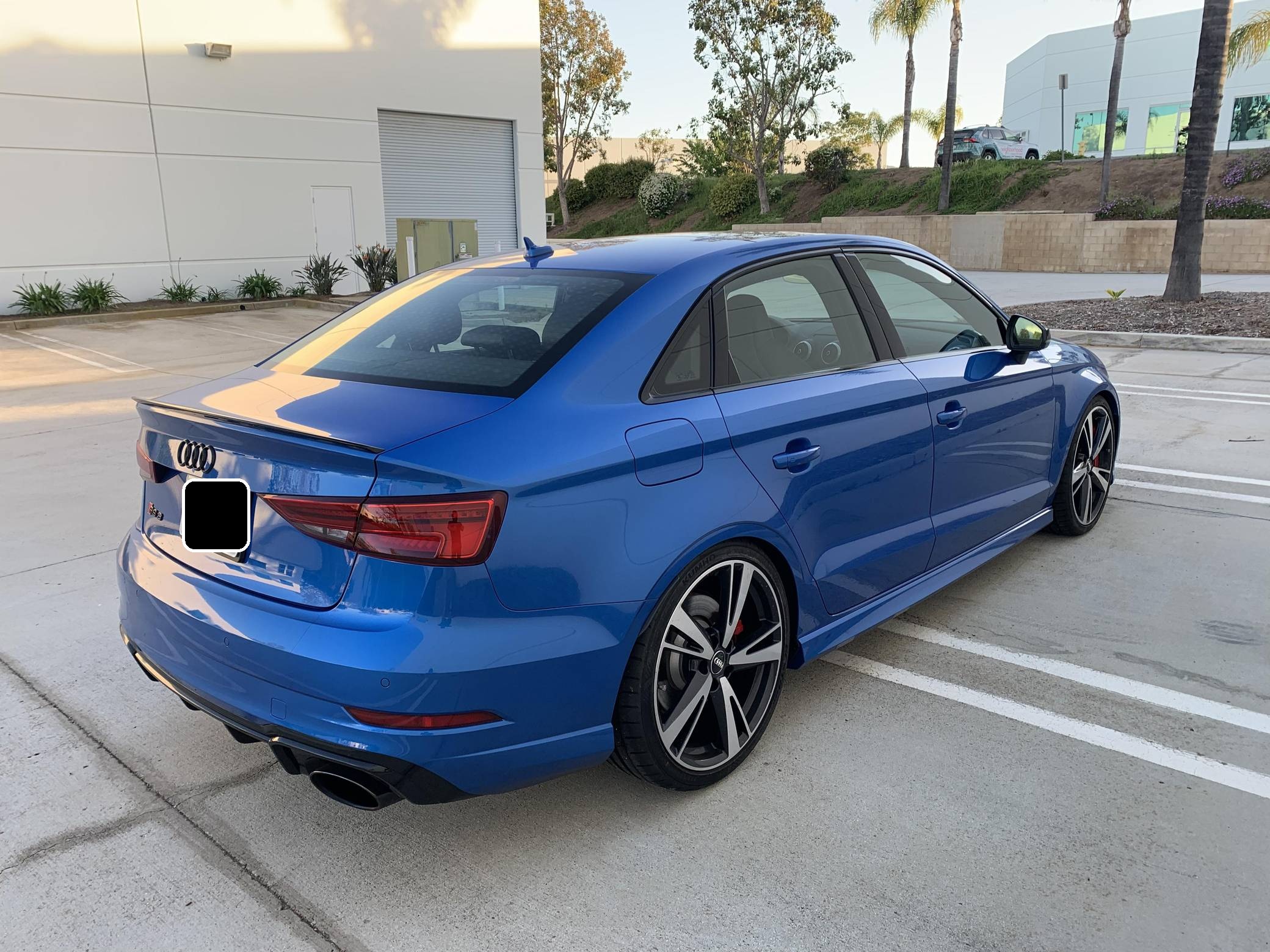 THIS. . . is a 2018 Audi RS3, finished in Ara Blue with a black interior. Some notable features include the Technology, Dynamic, and Black Optic packages as well as contrasting Rock Gray stitching and RS carbon decorative inlays. Modifications reported by the seller include a downpipe, catted midpipes, 4-inch turbo inlet, front mount intercooler, a "Stage 2" engine tune, and a transmission tune, all from APR. A full list of modifications is detailed below. Introduced in 2012, the third generation "8V" A3 was intended to compete with Mercedes-Benz's CLA-Class and featured a revised suspension and improved technology over its predecessor. The RS3 model was released in 2015 in Europe as a Sportback and was the high-performance variant of the A3 lineup. It came equipped with a larger displacement 5-cylinder engine, tuned magnetic ride suspension, tuned progressive steering, and model-specific interior trim. The sedan version was added for the world market in 2017. Power comes from a 2. 5-liter turbocharged inline-5, rated at 400 horsepower and 354 lb-ft of torque when stock. Due to the modifications performed to this RS3, it may produce more power, but a dyno sheet was not provided to confirm. The engine spins all four wheels via a 7-speed "S tronic" automatic transmission and Audi's Quattro all-wheel-drive system.