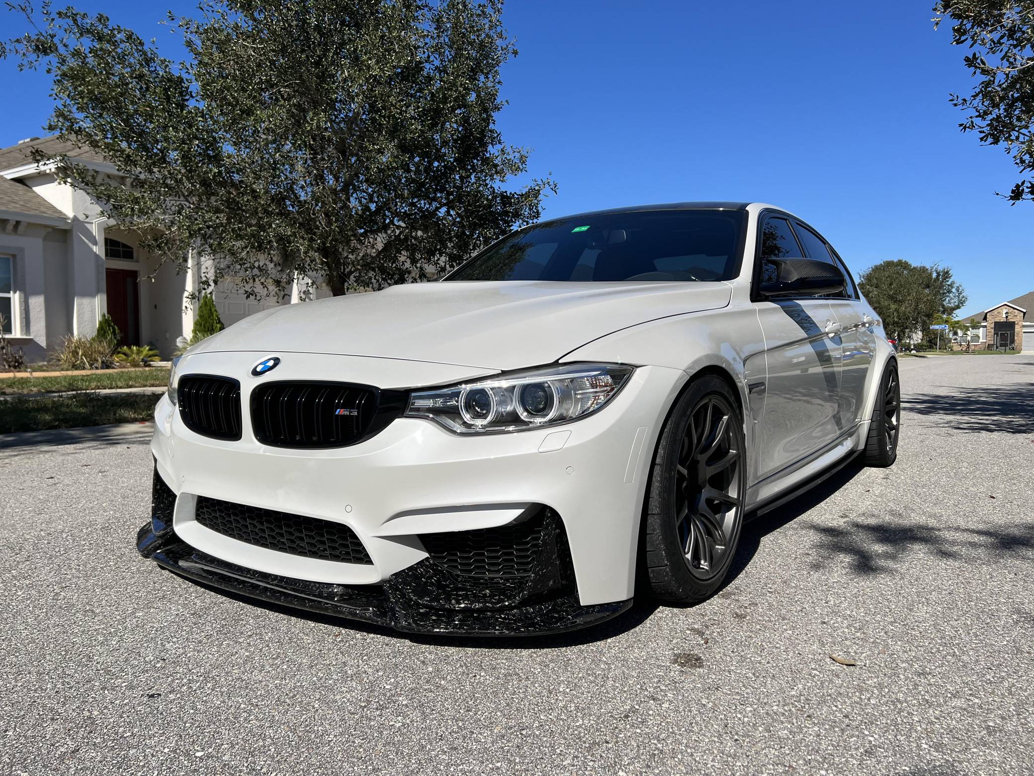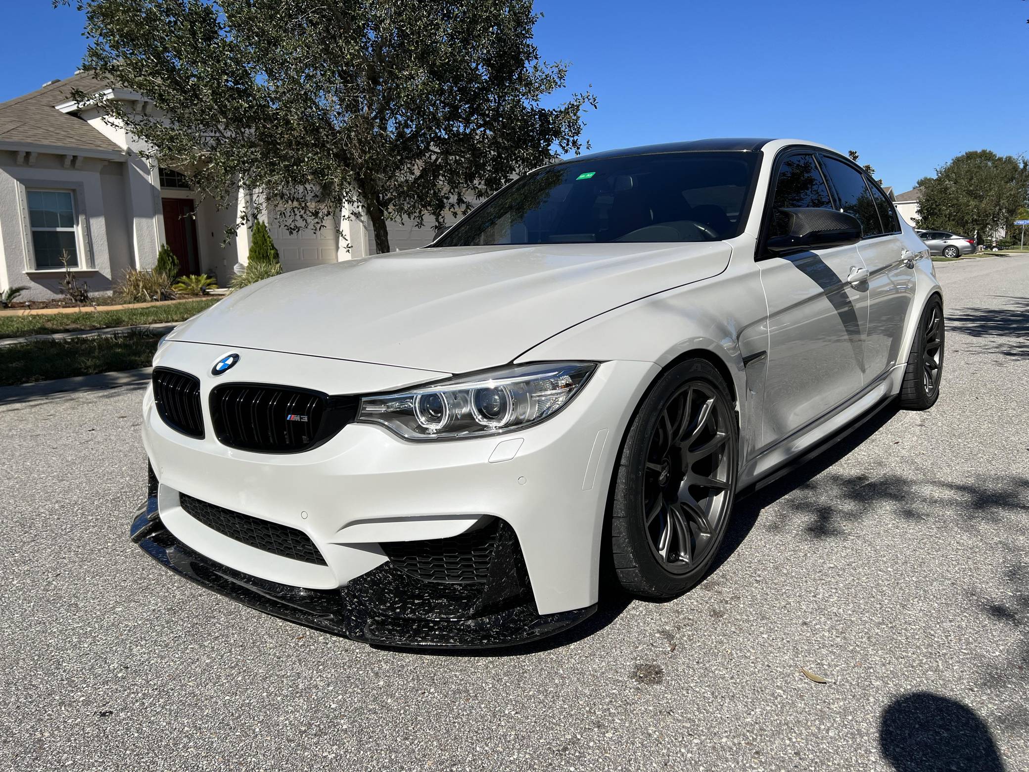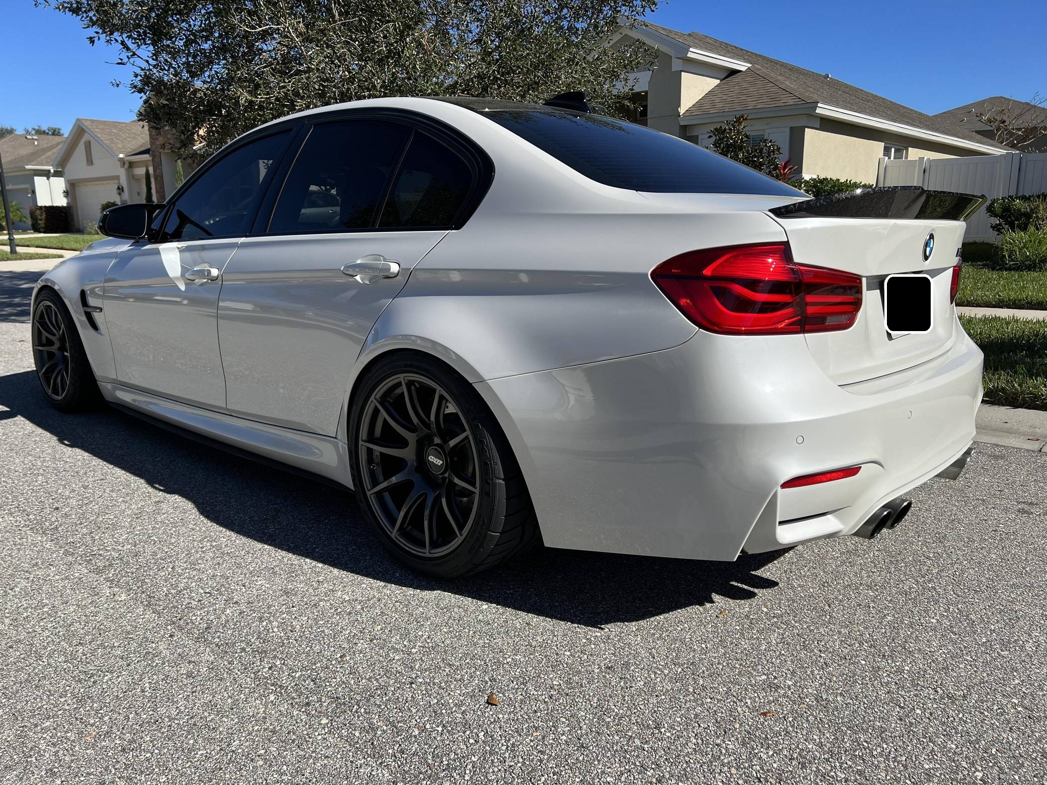 THIS… is a 2016 BMW M3, finished in Mineral White Metallic with a Sakhir Orange interior. This M3 features the desirable 6-speed manual transmission. A build sheet is provided in the photo gallery, and a partial list of notable equipment includes the Executive Package, a carbon fiber roof panel, Merino leather upholstery, heated front and rear seats, carbon fiber interior trim, and more as detailed below. Modifications reported by the seller include 18-inch Apex wheels, Dinan 10-mm wheel spacers, Emmanuele design lowering springs, VRSF catless downpipes, RW Carbon forged carbon fiber exterior trim, and "LCI" tail lights. BMW's fifth-generation M3 went on sale for the 2015 model year. Based on the "F30" 3 Series, and called "F80" internally, it swapped its predecessor's V8 for a turbocharged straight-6 and picked up more horsepower and a lot more torque along the way. It wore a muscular-looking exterior design, and M added a carbon fiber roof panel to keep weight in check. Production ended in 2018. Power comes from an "S55" 3. 0-liter twin-turbocharged inline-6, rated at 425 horsepower and 406 lb-ft of torque when stock. Due to the modifications performed to this M3, it may produce more power, but a dyno sheet was not provided to confirm. Output is sent to the rear wheels via a 6-speed manual transmission.
