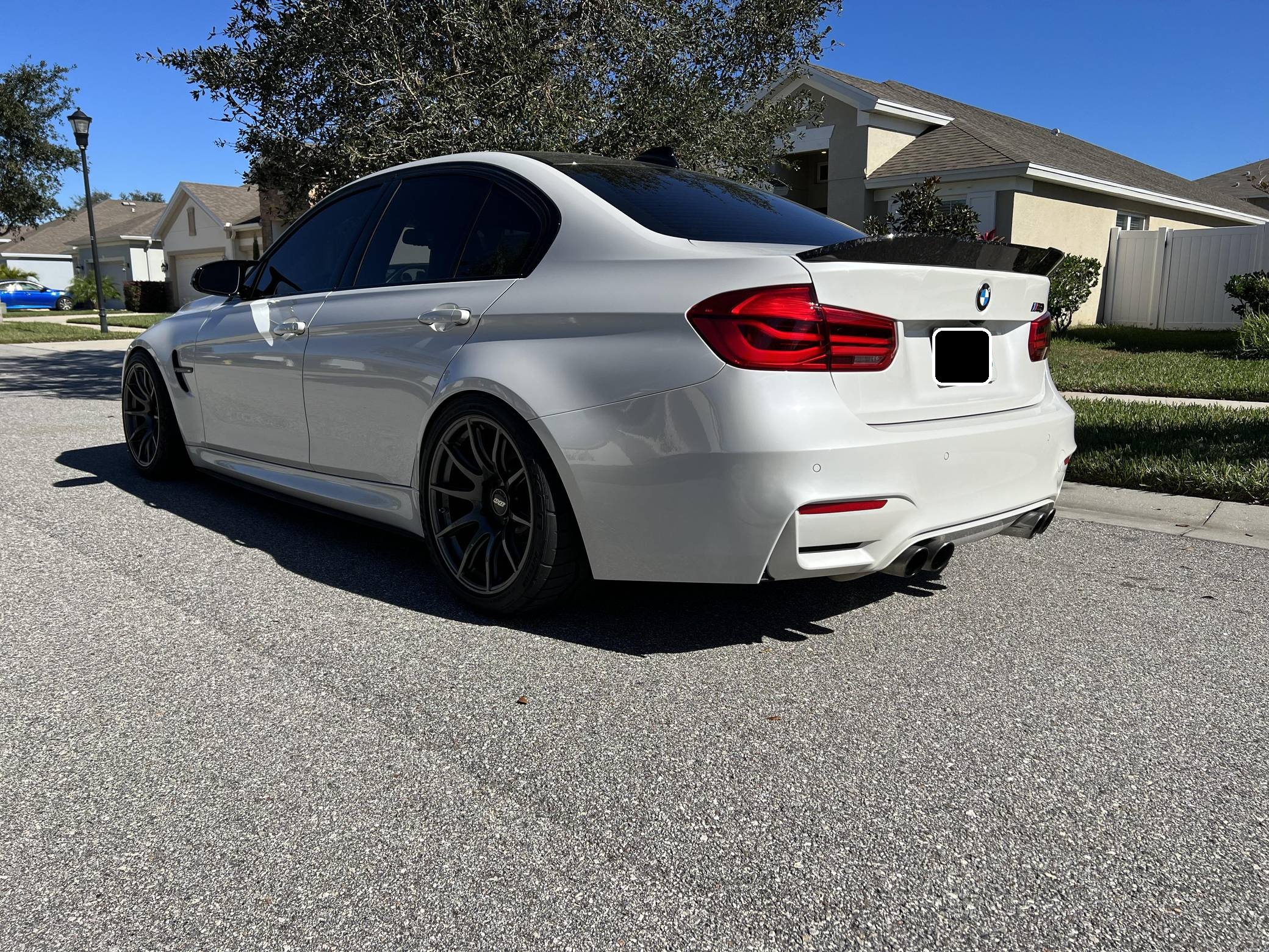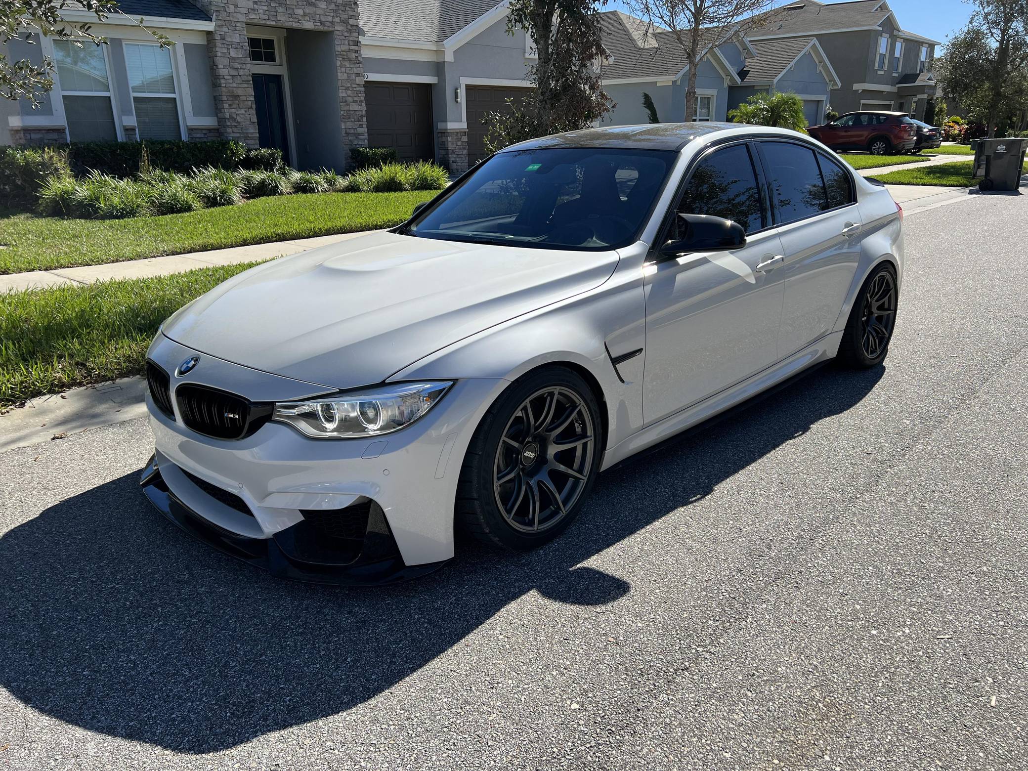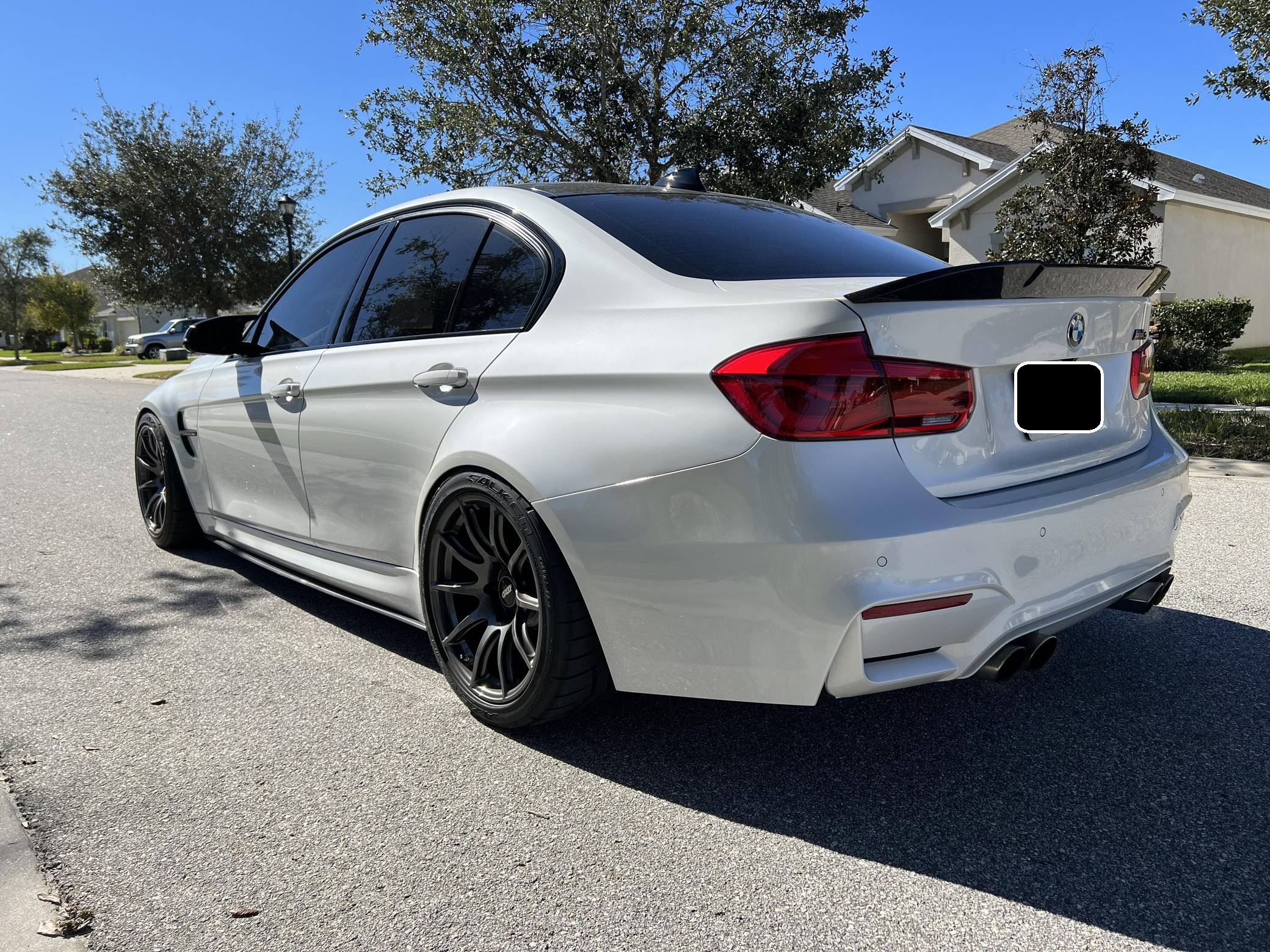 THIS… is a 2016 BMW M3, finished in Mineral White Metallic with a Sakhir Orange interior. This M3 features the desirable 6-speed manual transmission. A build sheet is provided in the photo gallery, and a partial list of notable equipment includes the Executive Package, a carbon fiber roof panel, Merino leather upholstery, heated front and rear seats, carbon fiber interior trim, and more as detailed below. Modifications reported by the seller include 18-inch Apex wheels, Dinan 10-mm wheel spacers, Emmanuele design lowering springs, VRSF catless downpipes, RW Carbon forged carbon fiber exterior trim, and "LCI" tail lights. BMW's fifth-generation M3 went on sale for the 2015 model year. Based on the "F30" 3 Series, and called "F80" internally, it swapped its predecessor's V8 for a turbocharged straight-6 and picked up more horsepower and a lot more torque along the way. It wore a muscular-looking exterior design, and M added a carbon fiber roof panel to keep weight in check. Production ended in 2018. Power comes from an "S55" 3. 0-liter twin-turbocharged inline-6, rated at 425 horsepower and 406 lb-ft of torque when stock. Due to the modifications performed to this M3, it may produce more power, but a dyno sheet was not provided to confirm. Output is sent to the rear wheels via a 6-speed manual transmission.