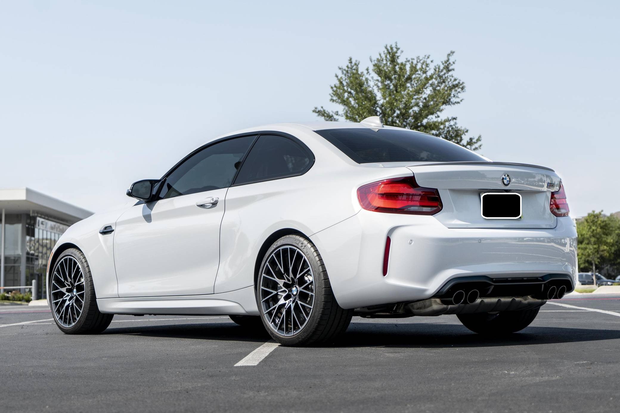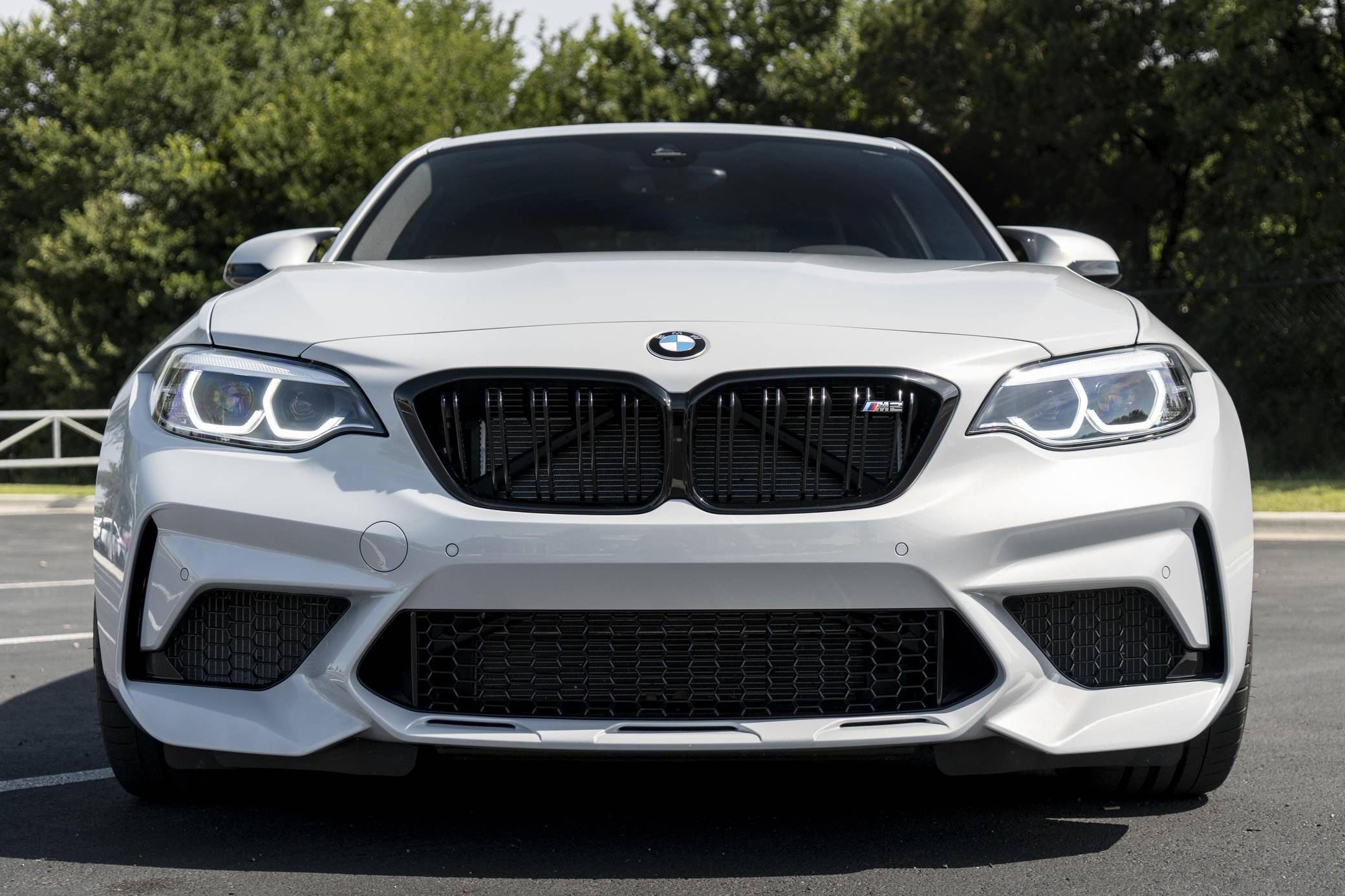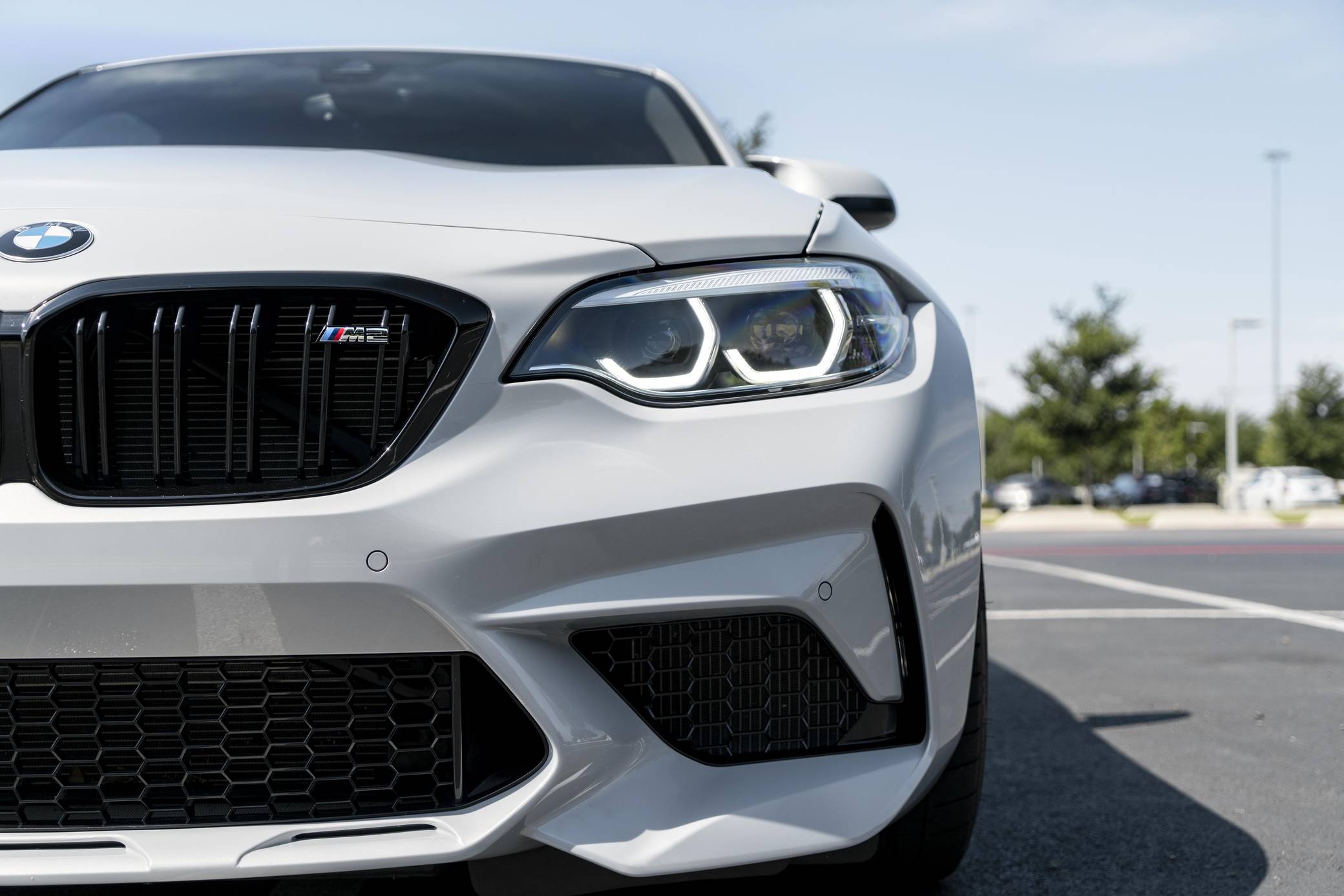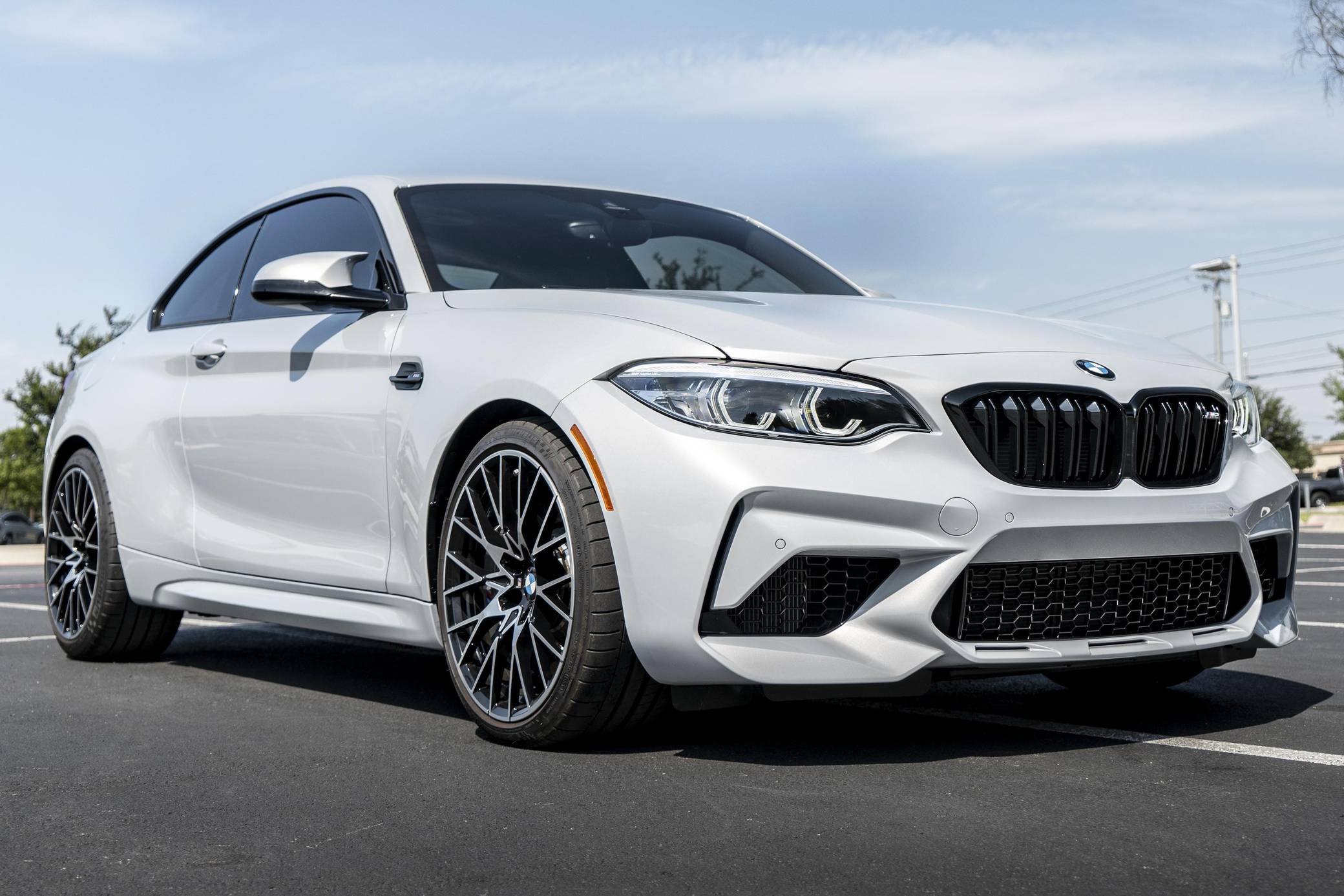 2021 BMW M2 Competition, finished in Hockenheim Silver Metallic with a black interior with blue stitching. This M2 is equipped with the desirable 6-speed manual transmission, and its odometer displays approximately 2,500 miles. Modifications are limited to a paint protection film applied to the front surfaces and rocker panels. BMW introduced the "F87" M2 for the 2016 model year as a high-performance evolution of the "F22"-generation 2 Series. Developed to replace the vaunted 1 Series M Coupe, it was celebrated as one of BMW M's greatest modern hits. It stood out from the standard 2 Series thanks to a more powerful engine, a revised chassis, an M-specific suspension system with aluminum components, and a more muscular-looking exterior design. BMW released the more hardcore Competition evolution of the M2 for 2019 with a more powerful engine and performance parts borrowed from the bigger M3/M4 duo. It notably received the M4 Competition's cooling system and a carbon fiber strut brace. Power comes from an "S55" twin-turbocharged 3. 0-liter inline-6, rated at 405 horsepower and 406 lb-ft of torque. Output is sent to the rear wheels via a 6-speed manual transmission.