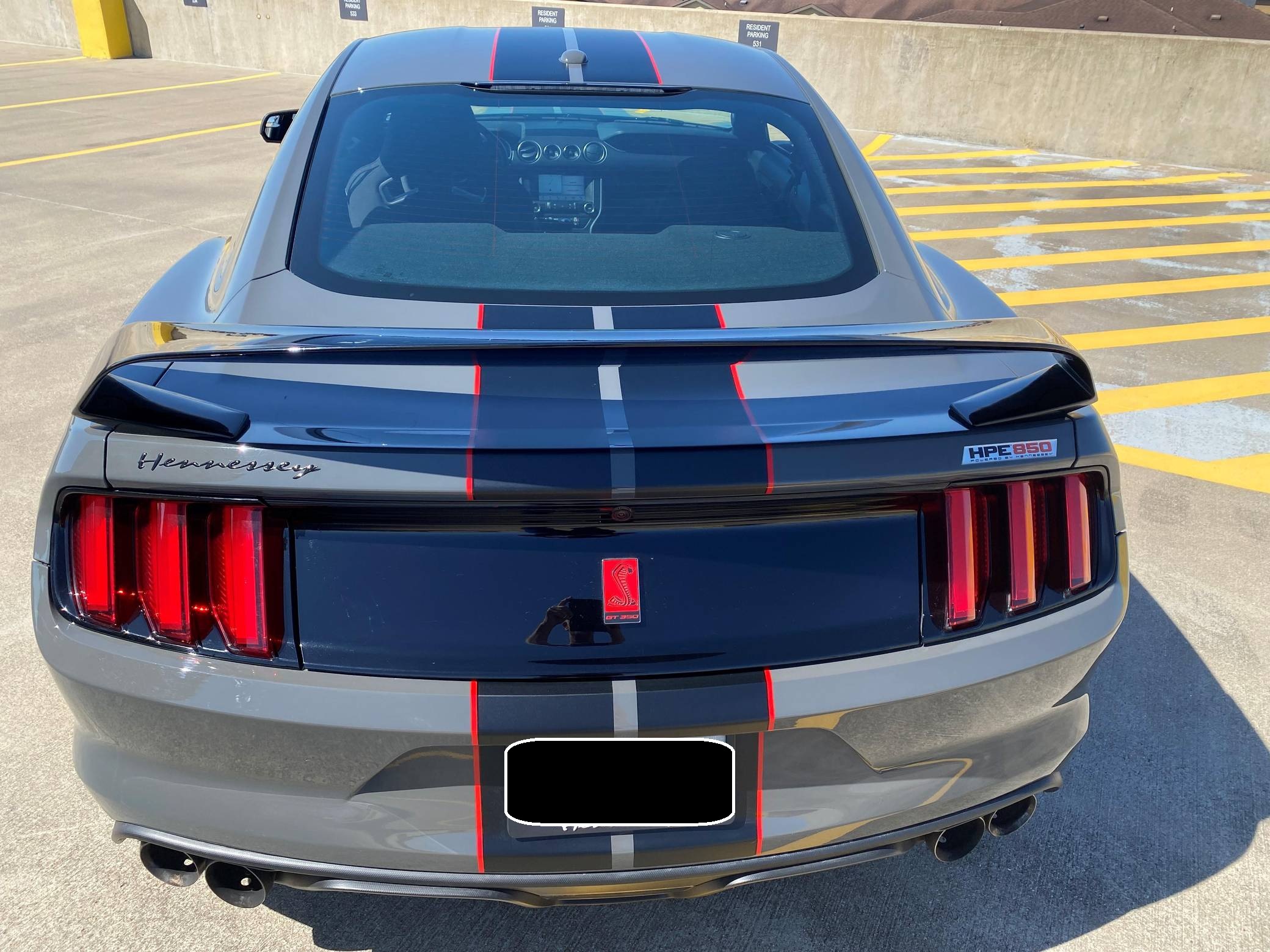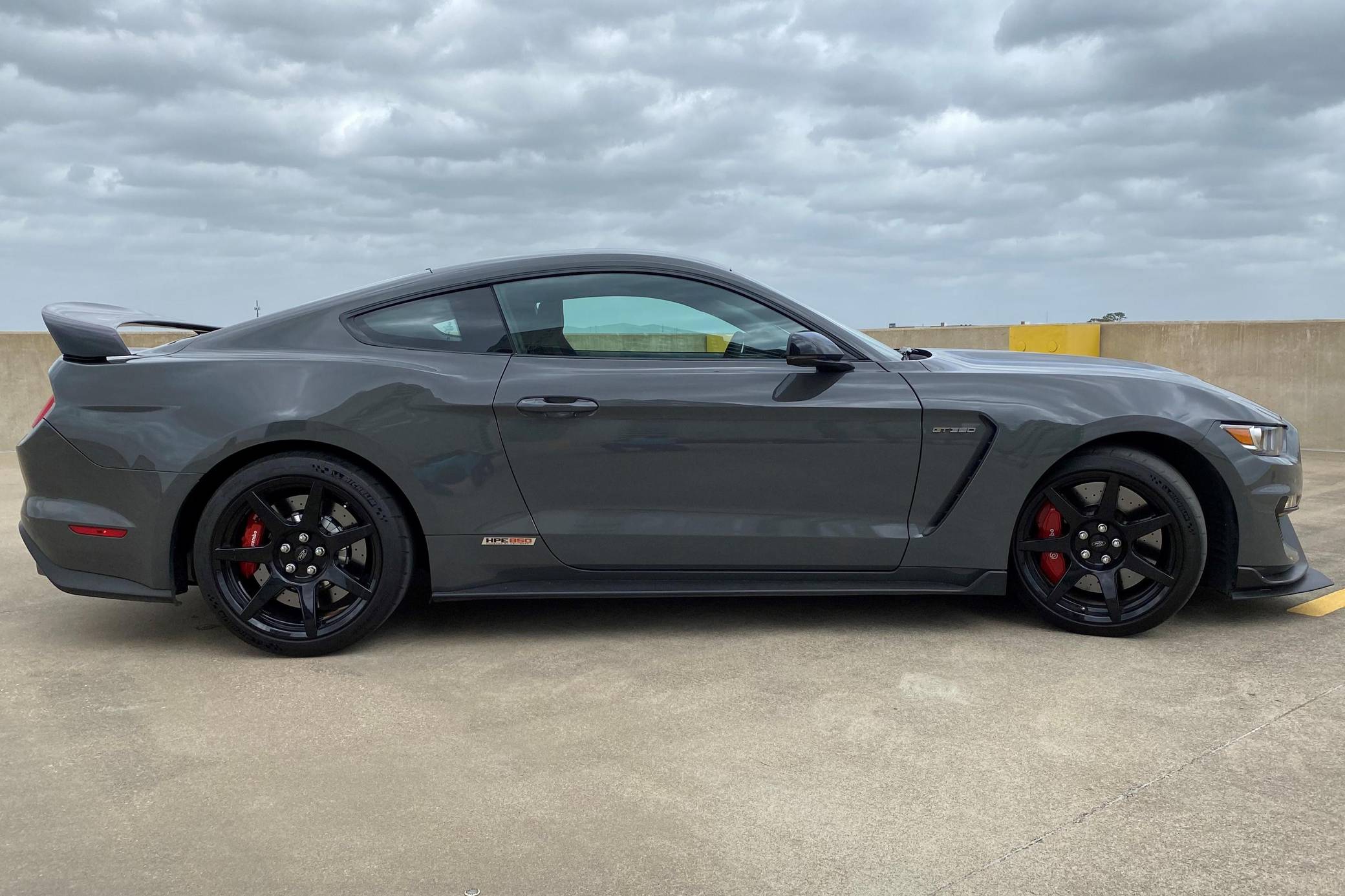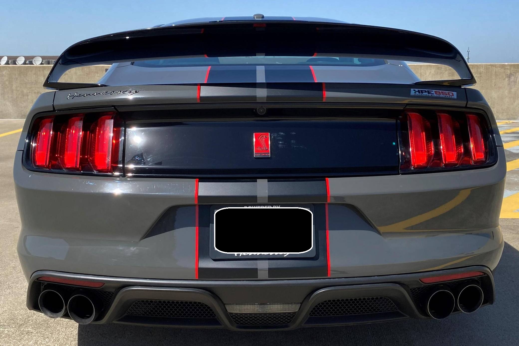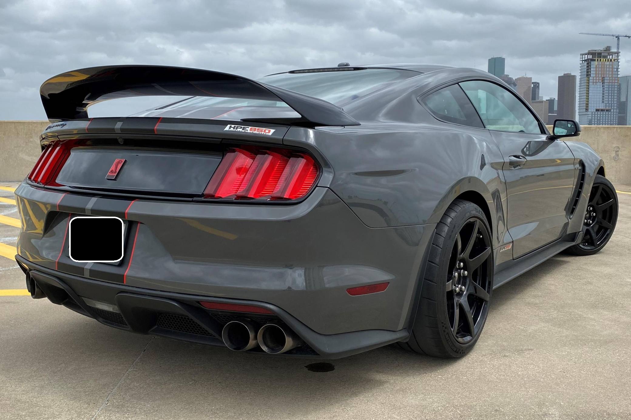 2018 Ford Mustang Shelby GT350R, finished in Lead Foot Gray with an Ebony interior. This GT350R features the 6-speed manual transmission, and its odometer currently indicates approximately 11,800 miles. Equipped with Equipment Group 920A (19-inch carbon fiber wheels, wheel lock kit, carbon fiber wing), the R-Electronics Package (dual-zone automatic climate control, SYNC 3 infotainment system with 8-inch touch screen, navigation system, 9-speaker sound system, rear-view camera, auxiliary gauges), a MagneRide damping system, Brembo brakes, over-the-top racing stripes, Recaro front sport seats, an Alcantara-wrapped steering wheel, launch control, and more as detailed below. Modifications reported by the seller are limited to the Hennessey Performance HPE850 kit (2. 9L supercharger system, high-flow throttle body, high-flow fuel injectors, high-flow heat exchanger, high-flow air induction system, Hennessey exterior badging, serial numbered engine bay plaque) and a dealer-installed security system. The Shelby GT350R variant of the "S550" Ford Mustang is a track-focused performance car benchmarked against competitors like the Chevrolet Camaro Z/28 and the Porsche 911 GT3. Compared to the standard GT350, it has improved grip, less weight, a more aggressive aerodynamic body kit, and it's the first mass-produced road car to come stock with carbon fiber wheels, resulting in a highly competent muscle car for the track. Power comes from a flat-plane-crank "Voodoo" 5. 2-liter V8 engine, rated at 526 horsepower and 429 lb-ft of torque in stock form. According to Hennessey, the HPE850 kit increases those figures to 858 and 673, and a dyno sheet pictured in the gallery indicates 760 horsepower and 512 lb-ft of torque at the wheels. Output is sent to the rear wheels via a 6-speed manual transmission.