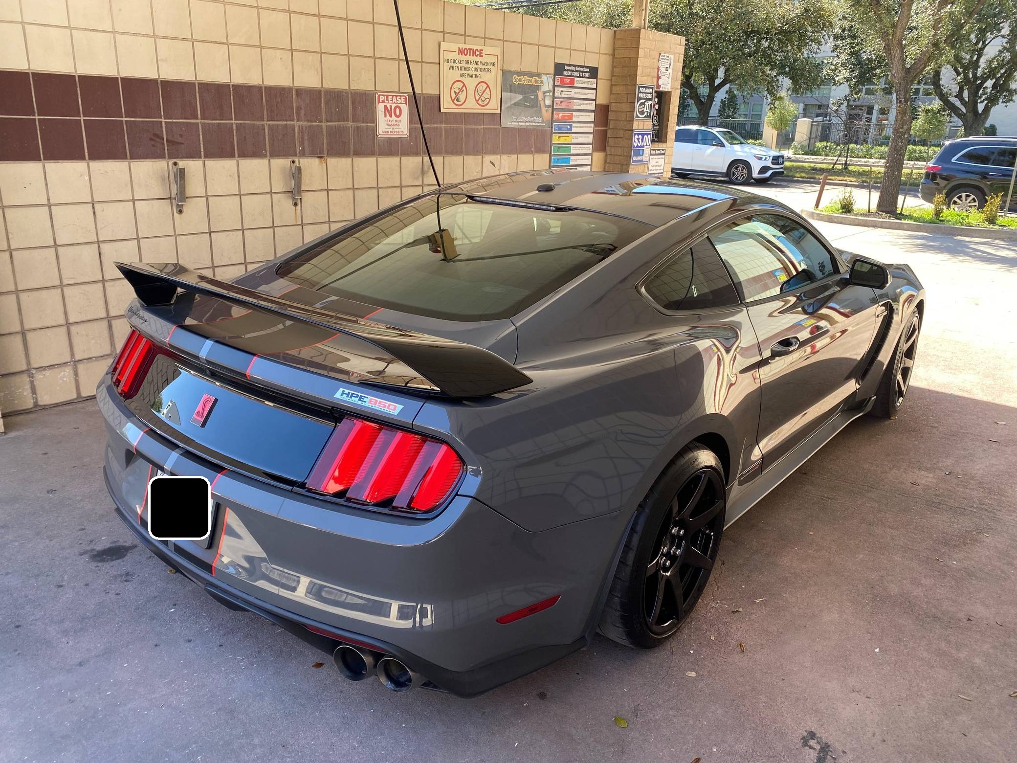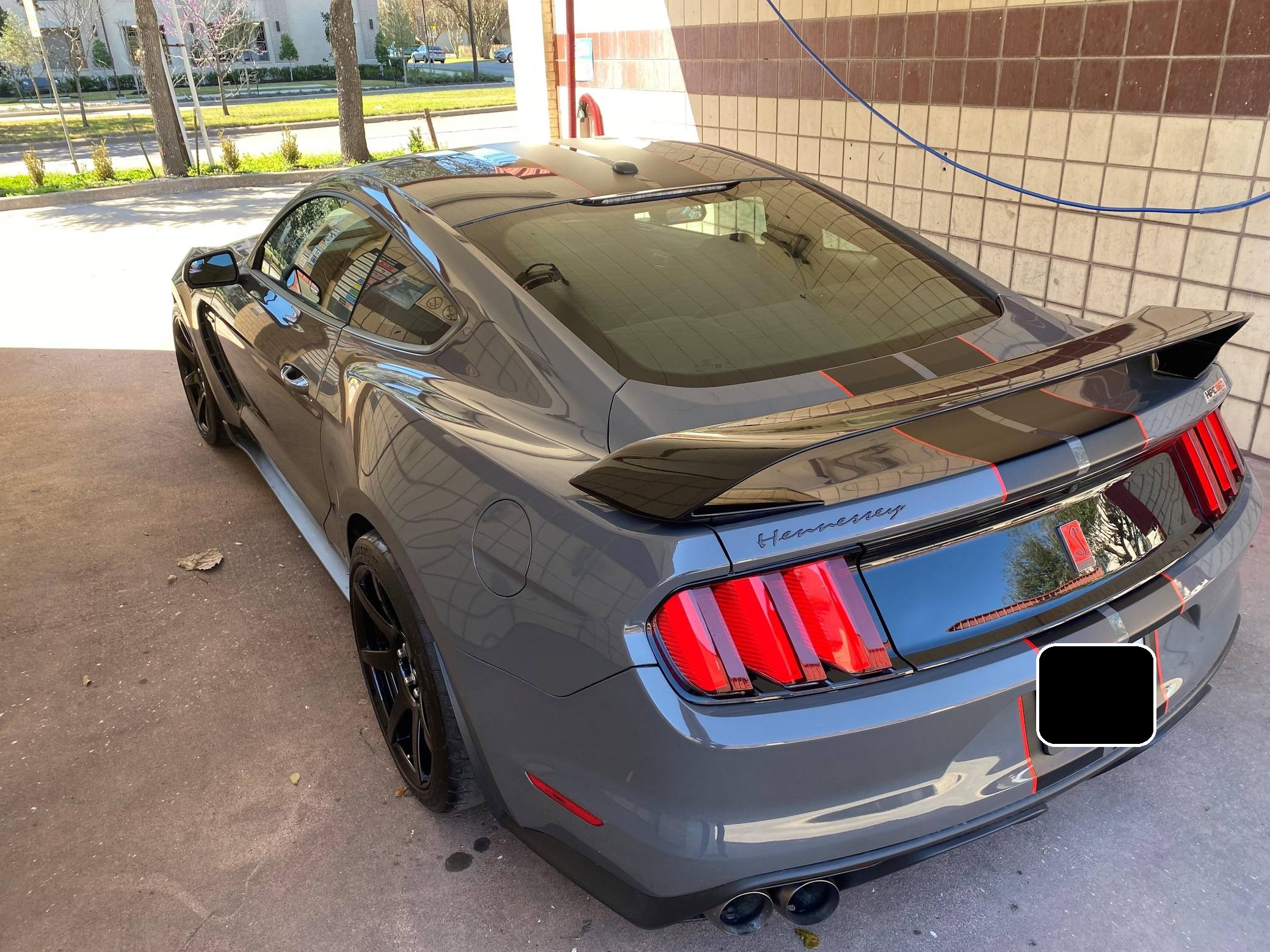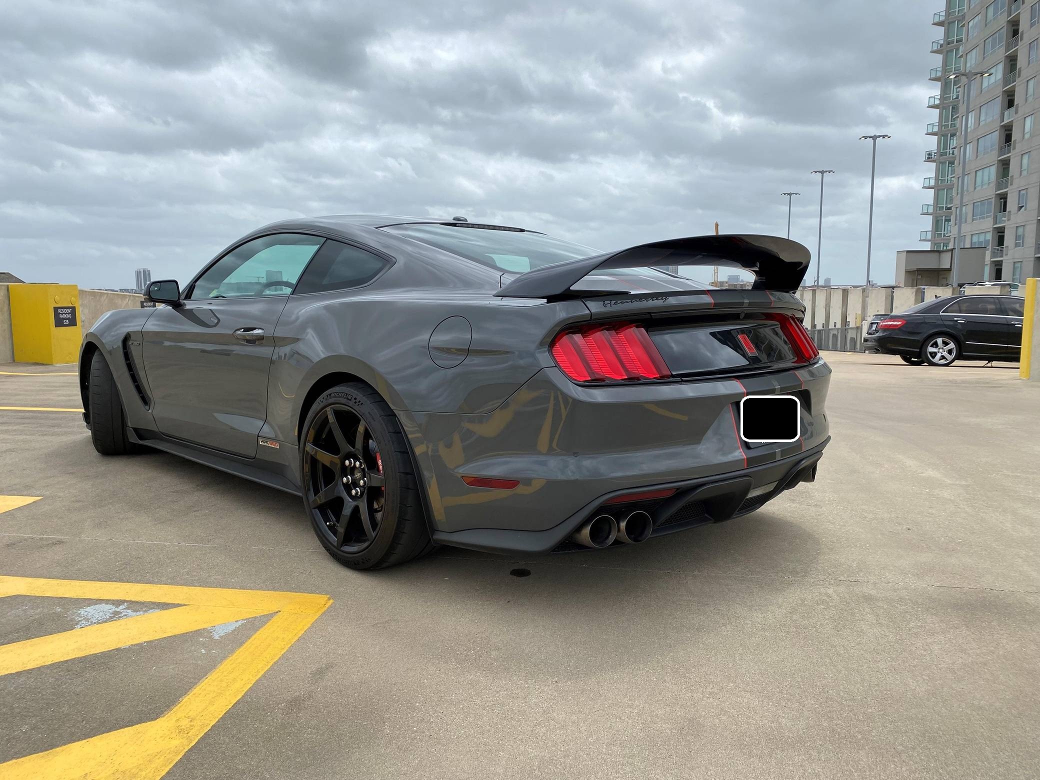 2018 Ford Mustang Shelby GT350R, finished in Lead Foot Gray with an Ebony interior. This GT350R features the 6-speed manual transmission, and its odometer currently indicates approximately 11,800 miles. Equipped with Equipment Group 920A (19-inch carbon fiber wheels, wheel lock kit, carbon fiber wing), the R-Electronics Package (dual-zone automatic climate control, SYNC 3 infotainment system with 8-inch touch screen, navigation system, 9-speaker sound system, rear-view camera, auxiliary gauges), a MagneRide damping system, Brembo brakes, over-the-top racing stripes, Recaro front sport seats, an Alcantara-wrapped steering wheel, launch control, and more as detailed below. Modifications reported by the seller are limited to the Hennessey Performance HPE850 kit (2. 9L supercharger system, high-flow throttle body, high-flow fuel injectors, high-flow heat exchanger, high-flow air induction system, Hennessey exterior badging, serial numbered engine bay plaque) and a dealer-installed security system. The Shelby GT350R variant of the "S550" Ford Mustang is a track-focused performance car benchmarked against competitors like the Chevrolet Camaro Z/28 and the Porsche 911 GT3. Compared to the standard GT350, it has improved grip, less weight, a more aggressive aerodynamic body kit, and it's the first mass-produced road car to come stock with carbon fiber wheels, resulting in a highly competent muscle car for the track. Power comes from a flat-plane-crank "Voodoo" 5. 2-liter V8 engine, rated at 526 horsepower and 429 lb-ft of torque in stock form. According to Hennessey, the HPE850 kit increases those figures to 858 and 673, and a dyno sheet pictured in the gallery indicates 760 horsepower and 512 lb-ft of torque at the wheels. Output is sent to the rear wheels via a 6-speed manual transmission.