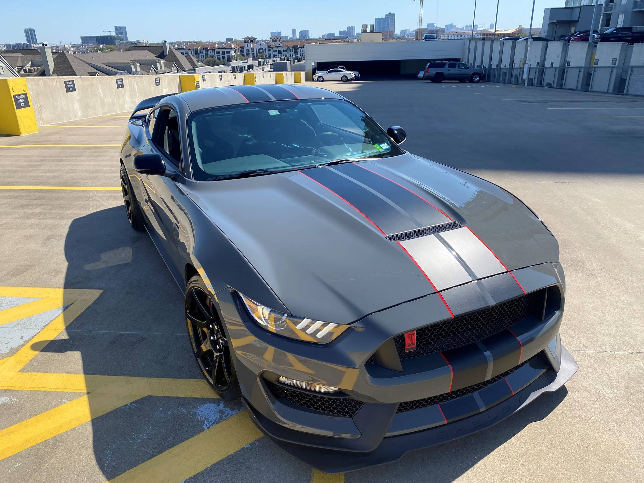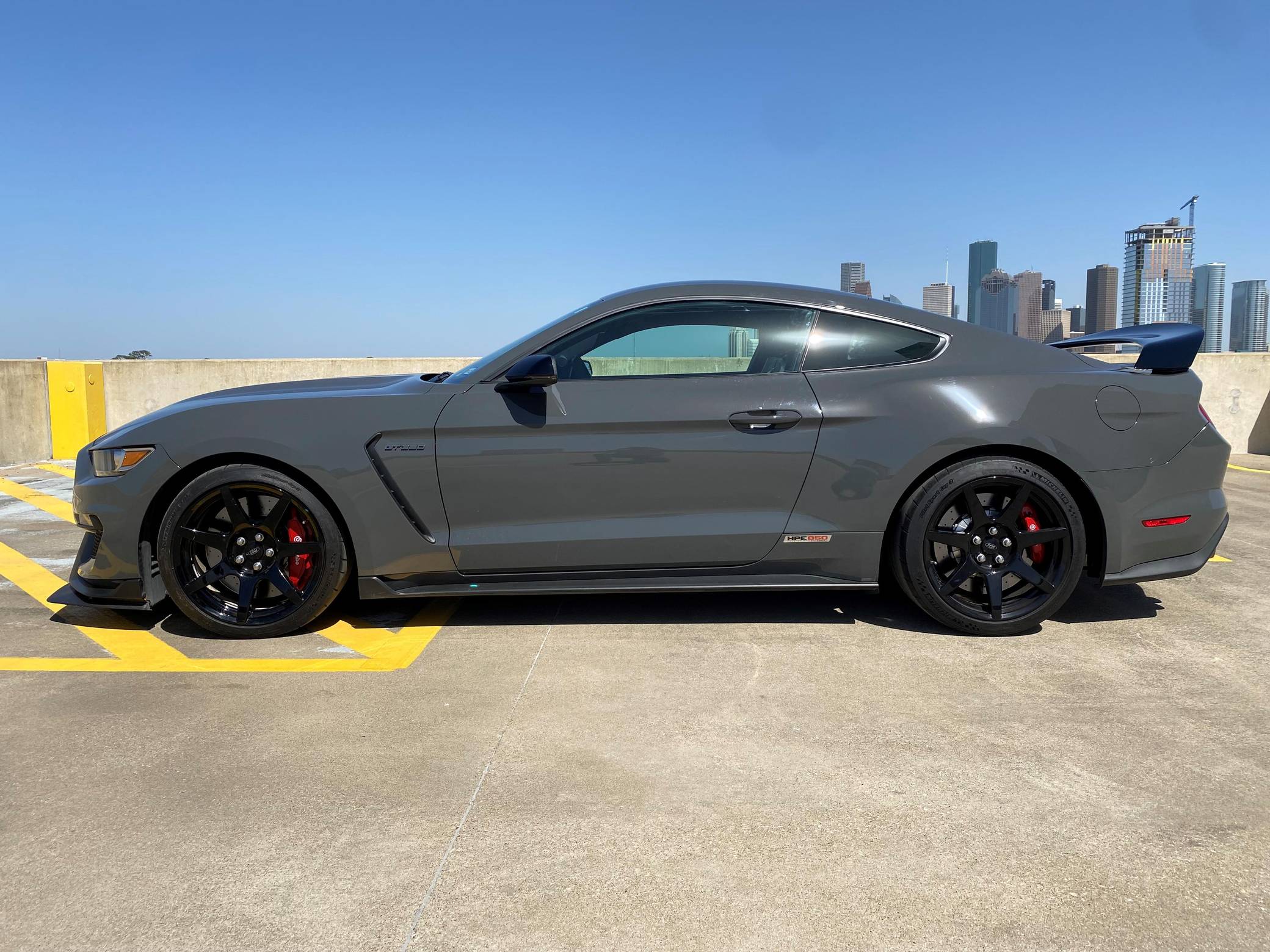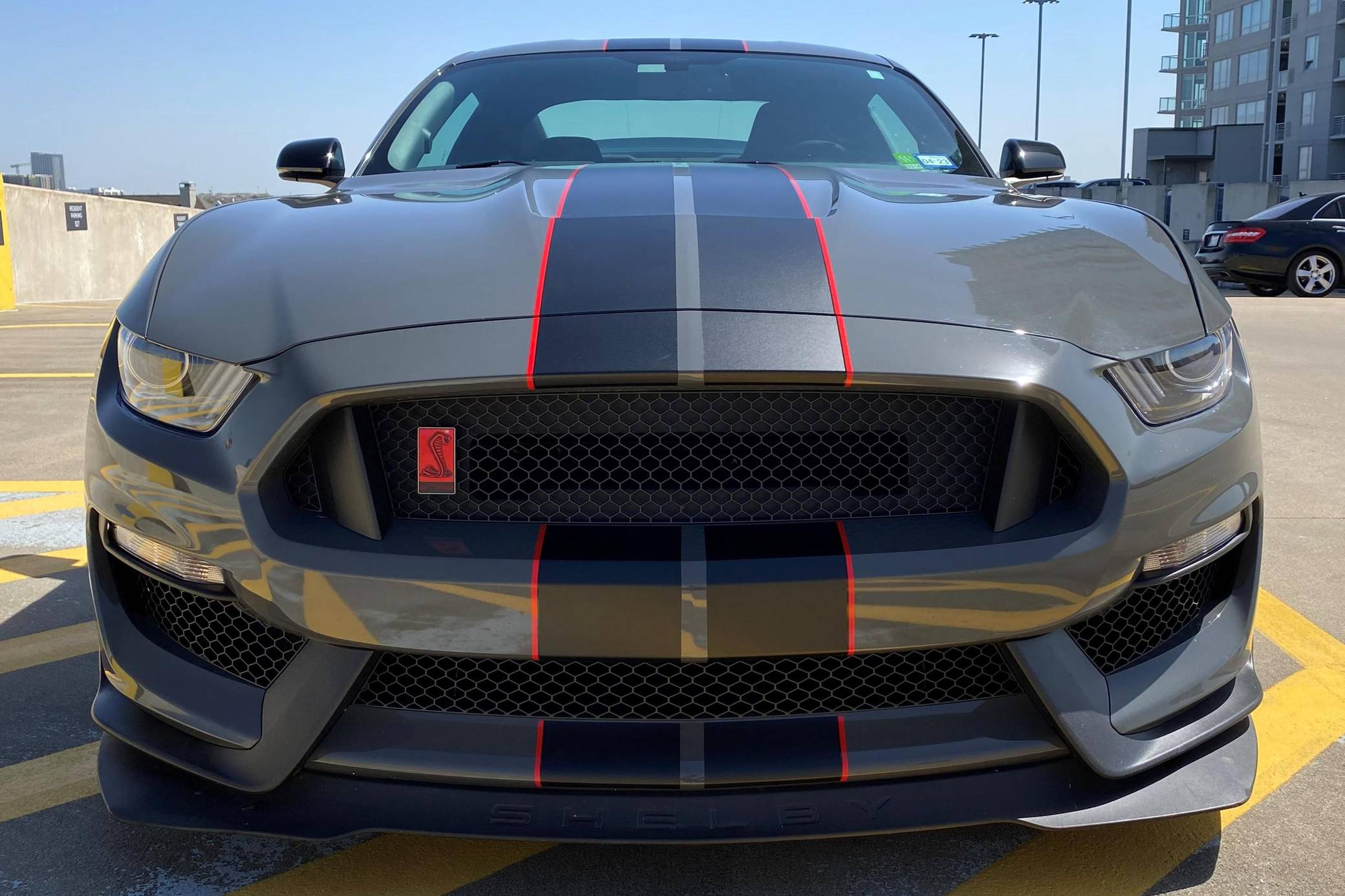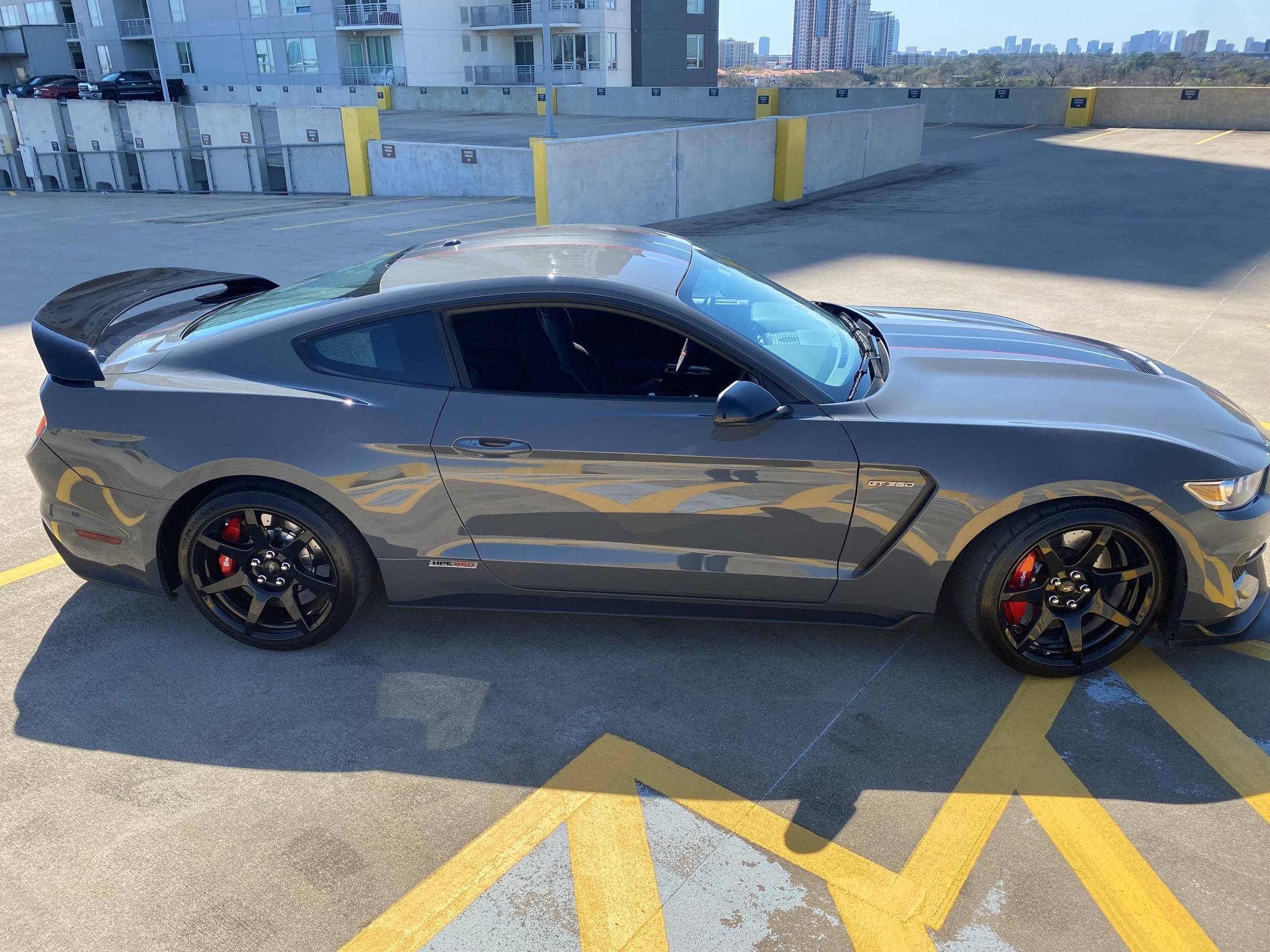 2018 Ford Mustang Shelby GT350R, finished in Lead Foot Gray with an Ebony interior. This GT350R features the 6-speed manual transmission, and its odometer currently indicates approximately 11,800 miles. Equipped with Equipment Group 920A (19-inch carbon fiber wheels, wheel lock kit, carbon fiber wing), the R-Electronics Package (dual-zone automatic climate control, SYNC 3 infotainment system with 8-inch touch screen, navigation system, 9-speaker sound system, rear-view camera, auxiliary gauges), a MagneRide damping system, Brembo brakes, over-the-top racing stripes, Recaro front sport seats, an Alcantara-wrapped steering wheel, launch control, and more as detailed below. Modifications reported by the seller are limited to the Hennessey Performance HPE850 kit (2. 9L supercharger system, high-flow throttle body, high-flow fuel injectors, high-flow heat exchanger, high-flow air induction system, Hennessey exterior badging, serial numbered engine bay plaque) and a dealer-installed security system. The Shelby GT350R variant of the "S550" Ford Mustang is a track-focused performance car benchmarked against competitors like the Chevrolet Camaro Z/28 and the Porsche 911 GT3. Compared to the standard GT350, it has improved grip, less weight, a more aggressive aerodynamic body kit, and it's the first mass-produced road car to come stock with carbon fiber wheels, resulting in a highly competent muscle car for the track. Power comes from a flat-plane-crank "Voodoo" 5. 2-liter V8 engine, rated at 526 horsepower and 429 lb-ft of torque in stock form. According to Hennessey, the HPE850 kit increases those figures to 858 and 673, and a dyno sheet pictured in the gallery indicates 760 horsepower and 512 lb-ft of torque at the wheels. Output is sent to the rear wheels via a 6-speed manual transmission.