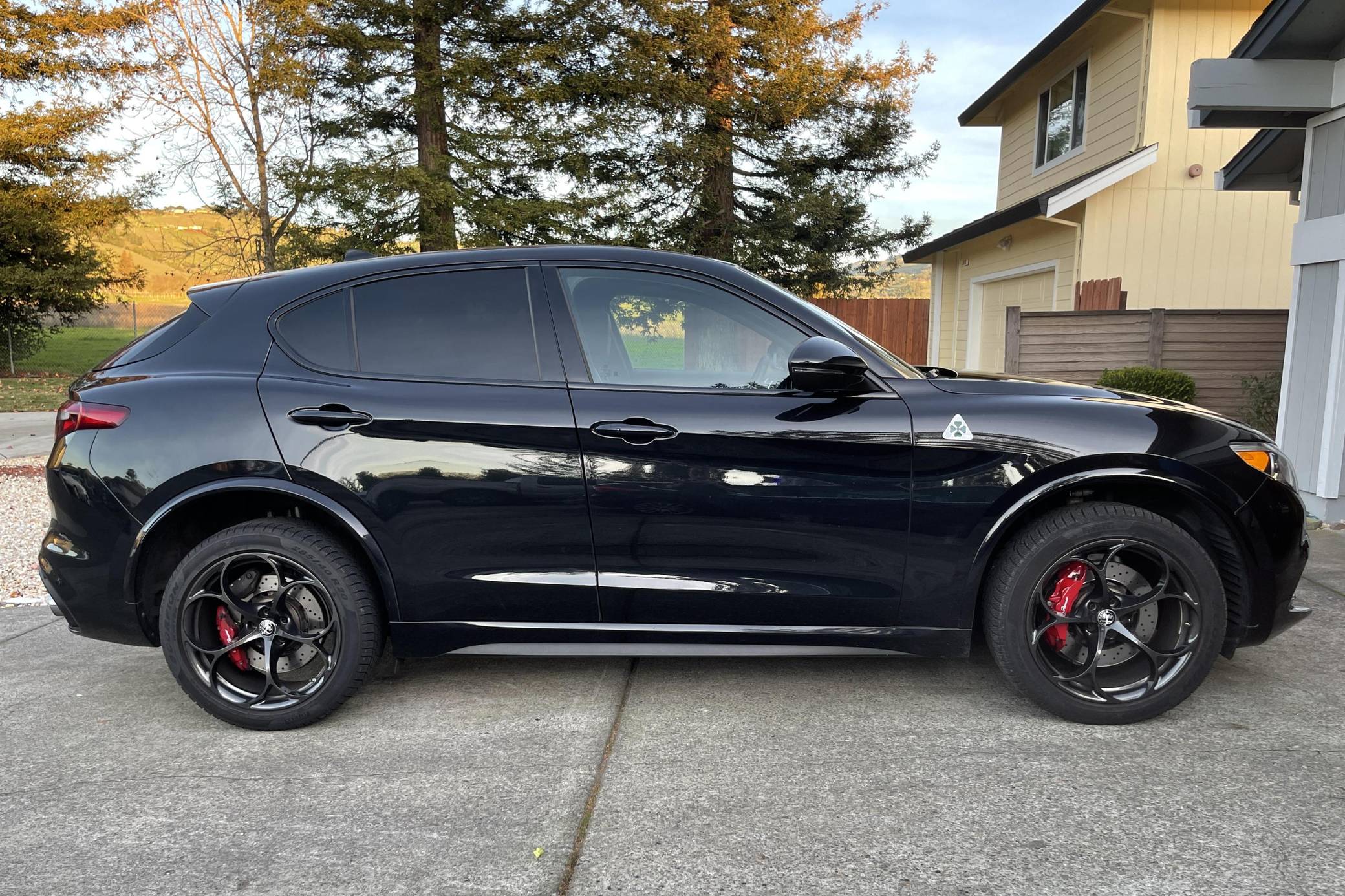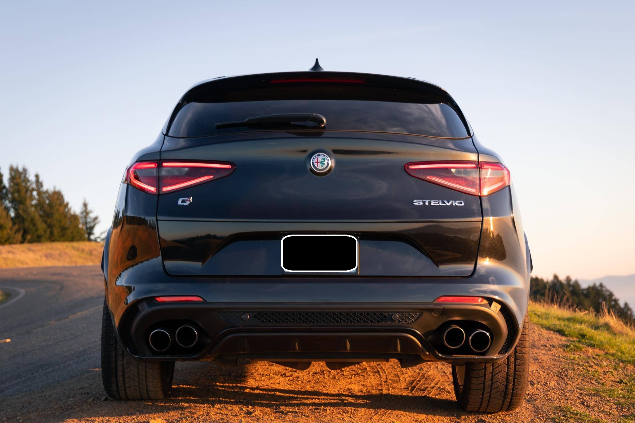 THIS… is a 2018 Alfa Romeo Stelvio Quadrifoglio, finished in Vulcano Black Metallic with a black and red interior. Equipment includes the Driver Assist Dynamic and Convenience packages, 20-inch alloy wheels, red-painted Brembo brakes, a dual-mode quad exhaust system, bi-xenon headlamps, a dual-pane sunroof, leather and Alcantara upholstery, a Quadrifoglio carbon fiber steering wheel, a Harmon/Kardon sound system, and more as detailed below. The seller reports no modifications. The Stelvio was Alfa Romeo's answer to a booming SUV market in North America. It's built on the same Giorgio platform as the Giulia with slight modifications as well as a bump in ride height. The Quadrifoglio — or "four-leaf clover" in Italian — represented the high-performance version of the SUV, powered by a twin-turbo engine developed by Ferrari and related to the automaker's own V8. Power comes from a Ferrari-derived "F154" 2. 9-liter twin-turbocharged V6, rated at 505 horsepower and 443 lb-ft of torque. Output is sent to all 4 wheels via an 8-speed automatic transmission.