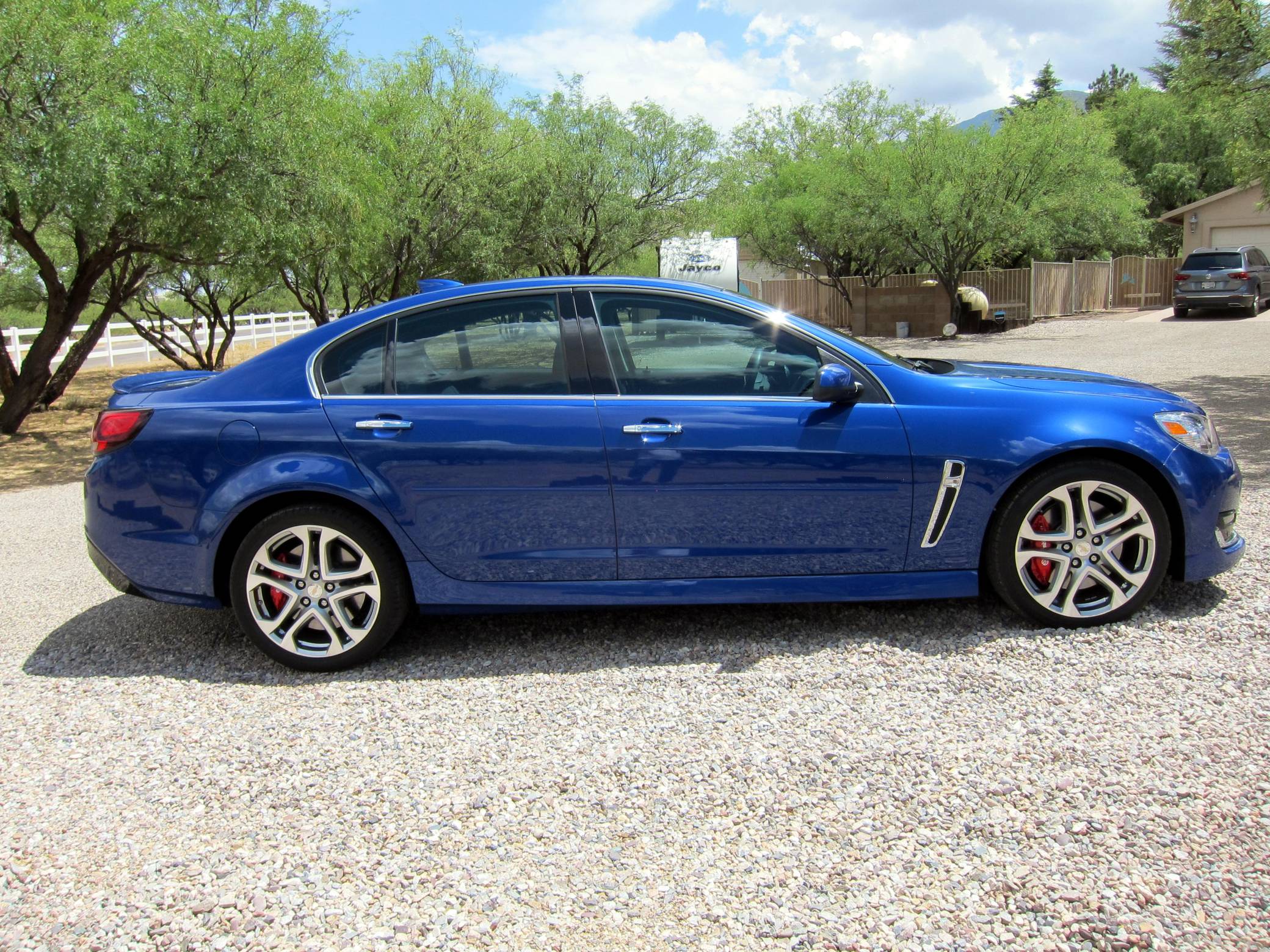 2017 Chevrolet SS, finished in Slipstream Blue Metallic with a Jet Black interior. The odometer on this SS indicates about 4,800 miles. A partial list of notable equipment includes 19-inch wheels, Brembo brakes, Magnetic Ride Control, dual-mode exhaust, sunroof, a head-up display, navigation system, and automatic parking assist. The seller reports no modifications. Released as a captive import of the Holden Commodore, the Chevrolet SS is the spiritual successor of the Pontiac G8. When it came out in 2014, the SS was the first rear-wheel drive, V8-powered Chevy sedan available in the United States since the "B-Body" Caprice and Impala SS were discontinued in 1996. With modern trends going in favor of forced induction, the Chevrolet SS represents one of the last "old-school" performance sedans. Chevrolet gave the SS a minor face-lift for 2016, which brought revised front-end lighting, a dual-mode exhaust, red Brembo brake calipers, and an updated wheel design. Approximately 12,906 units of the SS were sent to the United States between the 2014 and the 2017 model years, though a handful were sold in 2018. Power for this SS comes from a 6. 2-liter "LS3" V8, which produces 415 horsepower and 415 lb-ft of torque. Output is sent to the rear wheels via a 6-speed automatic transmission.