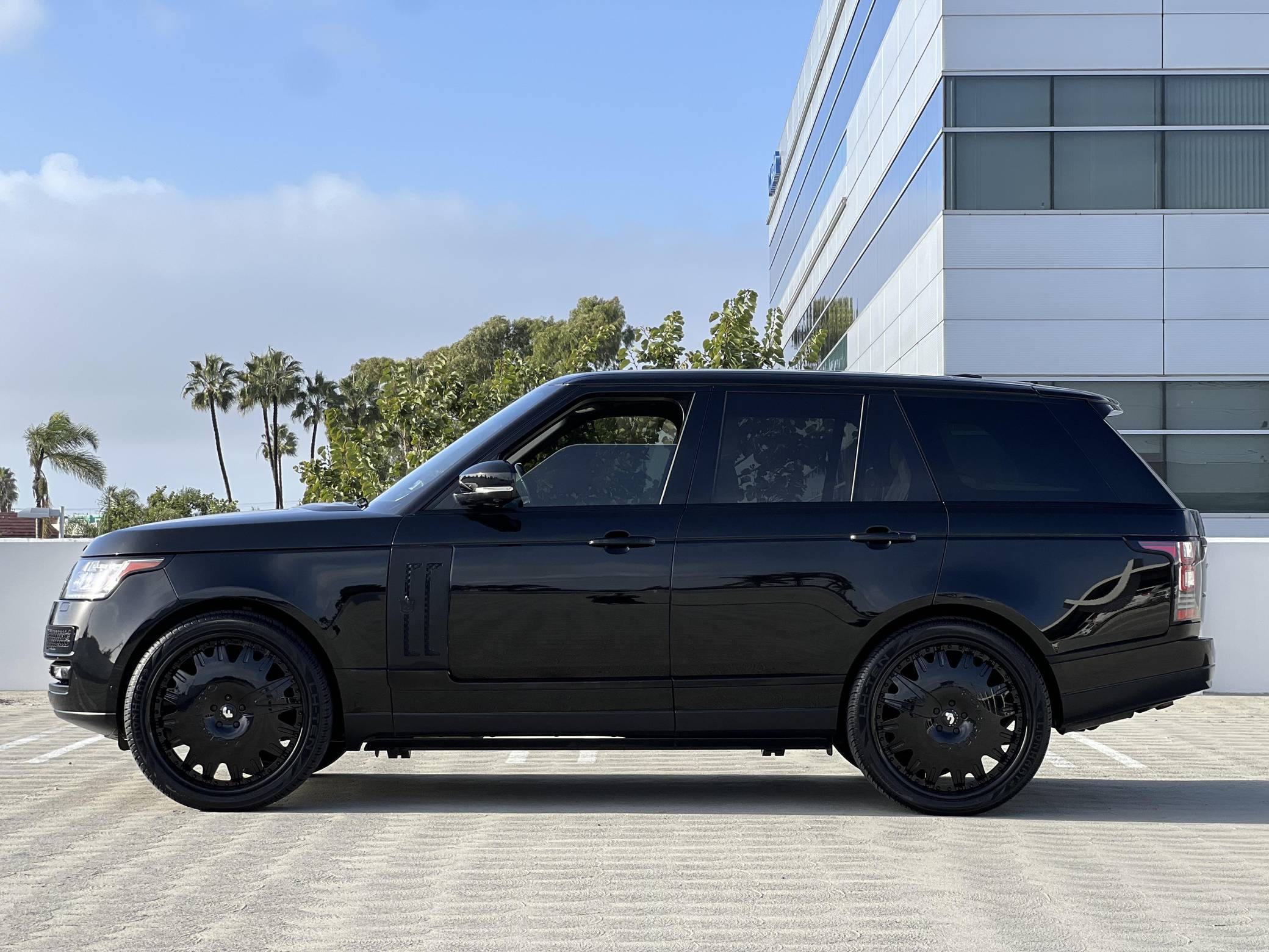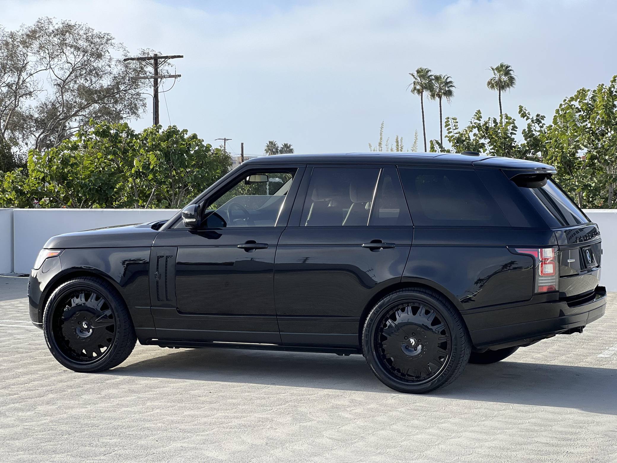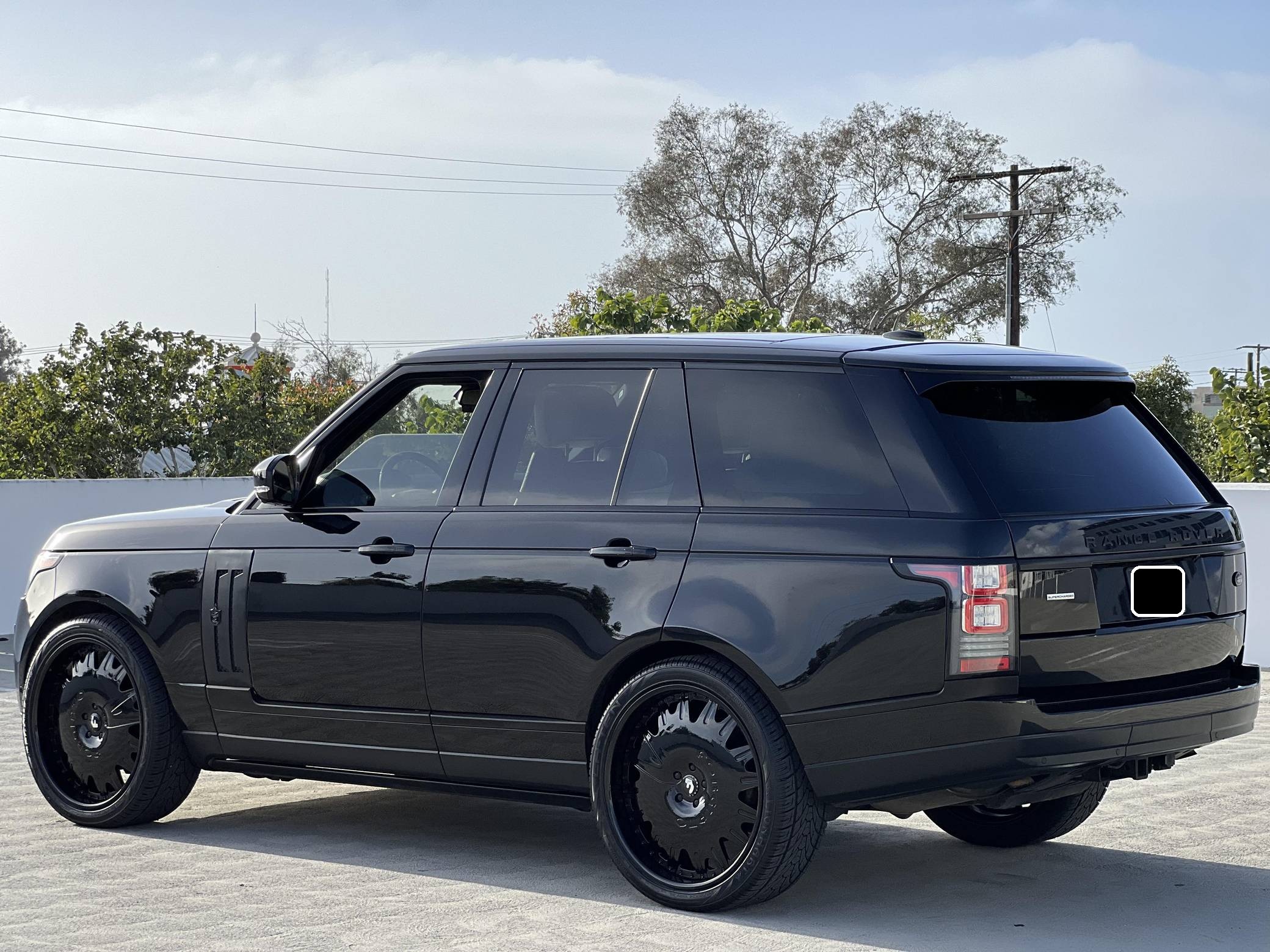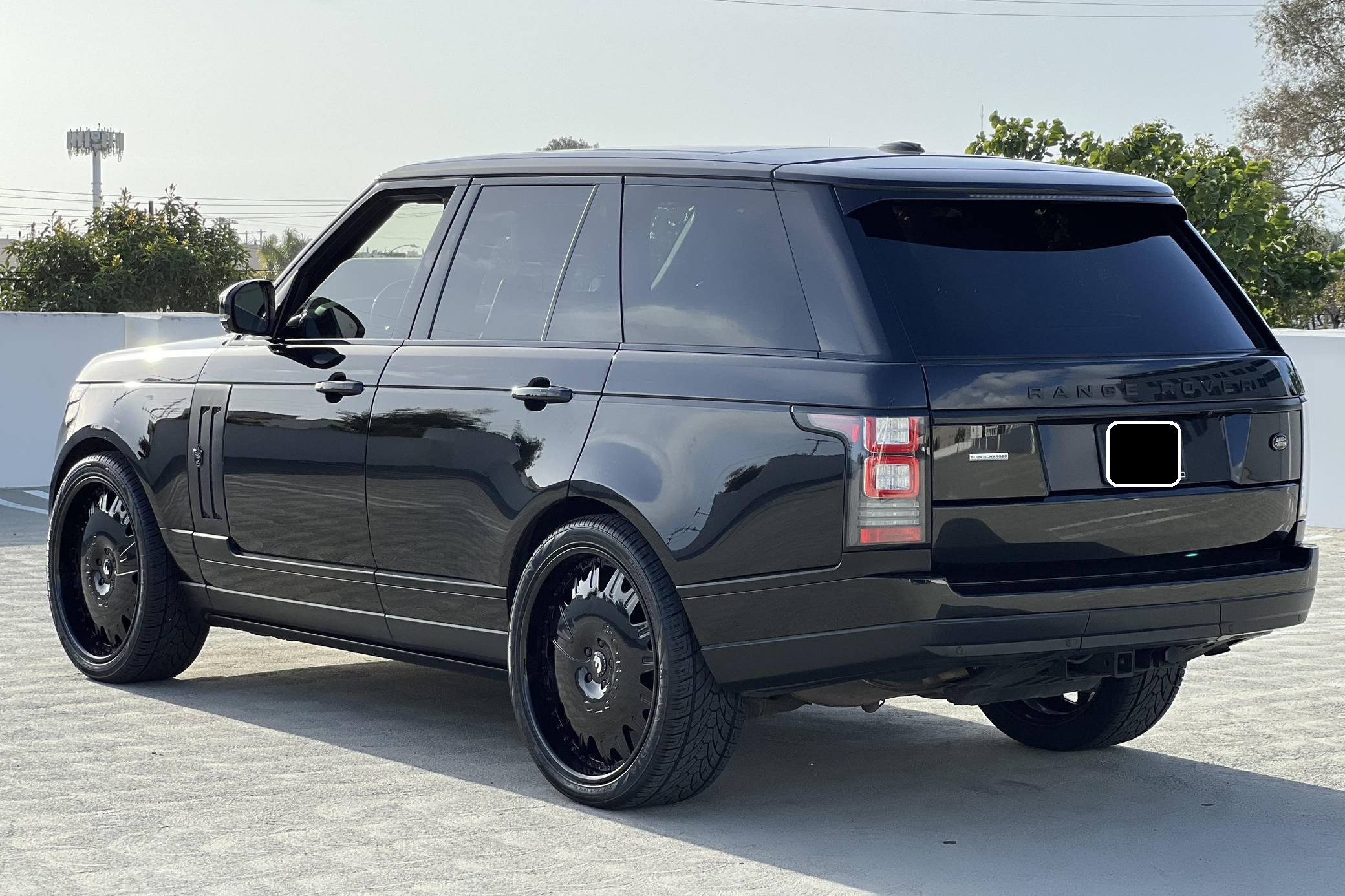 THIS…is a 2014 Range Rover Supercharged, finished in black with an Ebony/Cirrus interior. Factory equipment includes adaptive air suspension, a sunroof, Oxford leather upholstery, power-adjustable heated and ventilated front and rear seats, a navigation system, a rear-seat entertainment system, a Meridian sound system, and more as listed below. Modifications reported by the seller include 24-inch Forgiato wheels, Tiarra front and side grilles, black Range Rover badges, and paint protection film on the front end. New for the 2013 model year, the "L405" Range Rover boasts an aluminum body that artfully blends the brand's heritage with a sleek, modern look and significantly reduced weight despite its bigger footprint. Power comes from a supercharged 5. 0-liter V8 engine rated at 510 horsepower and 461 lb-ft of torque. Output is sent to all four wheels via an 8-speed automatic transmission and a 2-speed transfer case.