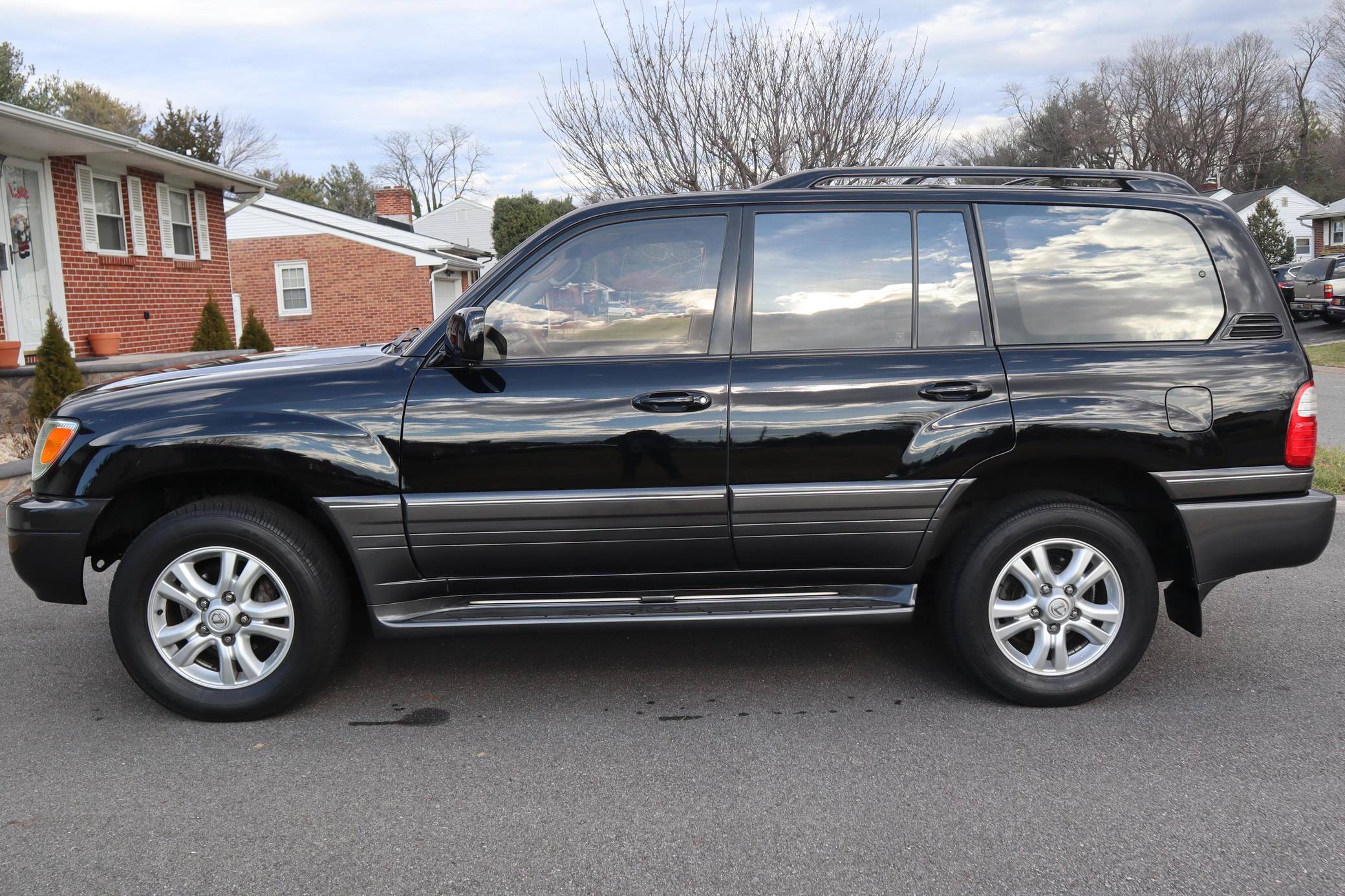 THIS. . . is a 2003 Lexus LX 470, finished in black with an Ivory interior. Factory equipment includes 18-inch wheels, a locking center differential, an Adjustable Height Control system, a power sunroof, leather upholstery, heated and power-adjustable front seats, third-row seats, automatic climate control, and a rear-seat entertainment system. The seller reports no modifications. Lexus introduced the second-generation LX for the 1998 model year. Like its predecessor, the LX 470 was a more upmarket evolution of the Toyota Land Cruiser that offered a well-balanced blend of on-road comfort and off-road capacity, plus brand-specific exterior styling cues (like quad headlights) and a more luxurious interior. It remained in production until 2007. Power comes from a "2UZ-FE" 4. 7-liter V8, rated at 235 horsepower and 320 lb-ft of torque. Output is sent to all 4 wheels via a 5-speed automatic transmission and a permanent four-wheel drive system.