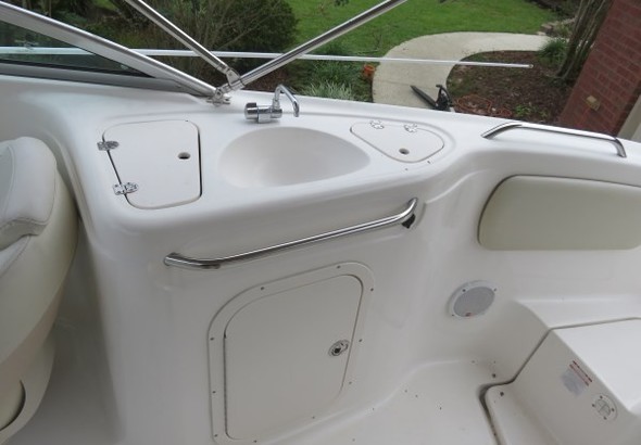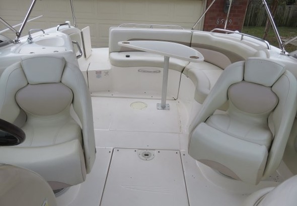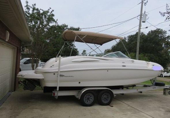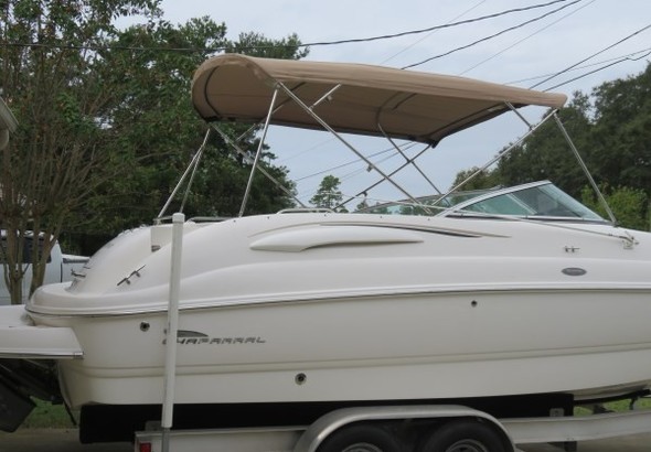 2004 Chaparral Sunesta 254. Very clean. Has bow and stern freshwater and topside sink. Stainless Duo-prop. The foot was recently inspected and found to be in good working order. Under helm porta-potty. Snap-in floor carpets. A small table and extended cushion included. Garmin model 54CV Chart plotter with Sonar and Garmin radio. Volvo-Penta outdrives in great shape. The boat has less than 30 hours on complete repower 350 hp in 2019. New mooring covers bow and cockpit. Large bimini top with boot cover. 2018 Aluminum trailer with LED sealed lighting. This boat is amazing to own! It runs great.