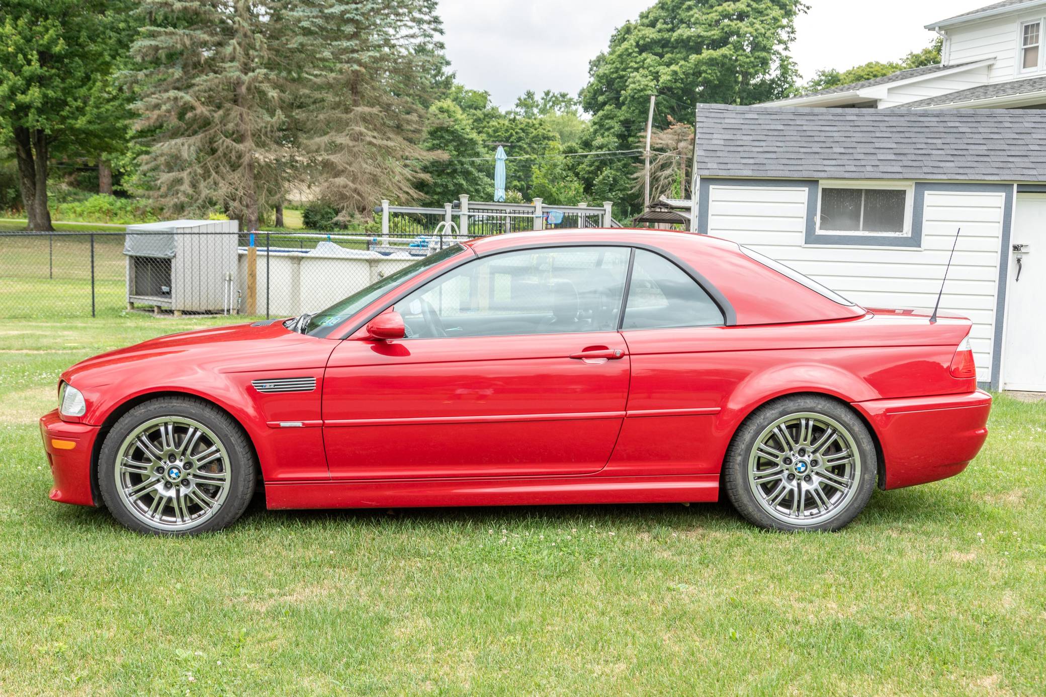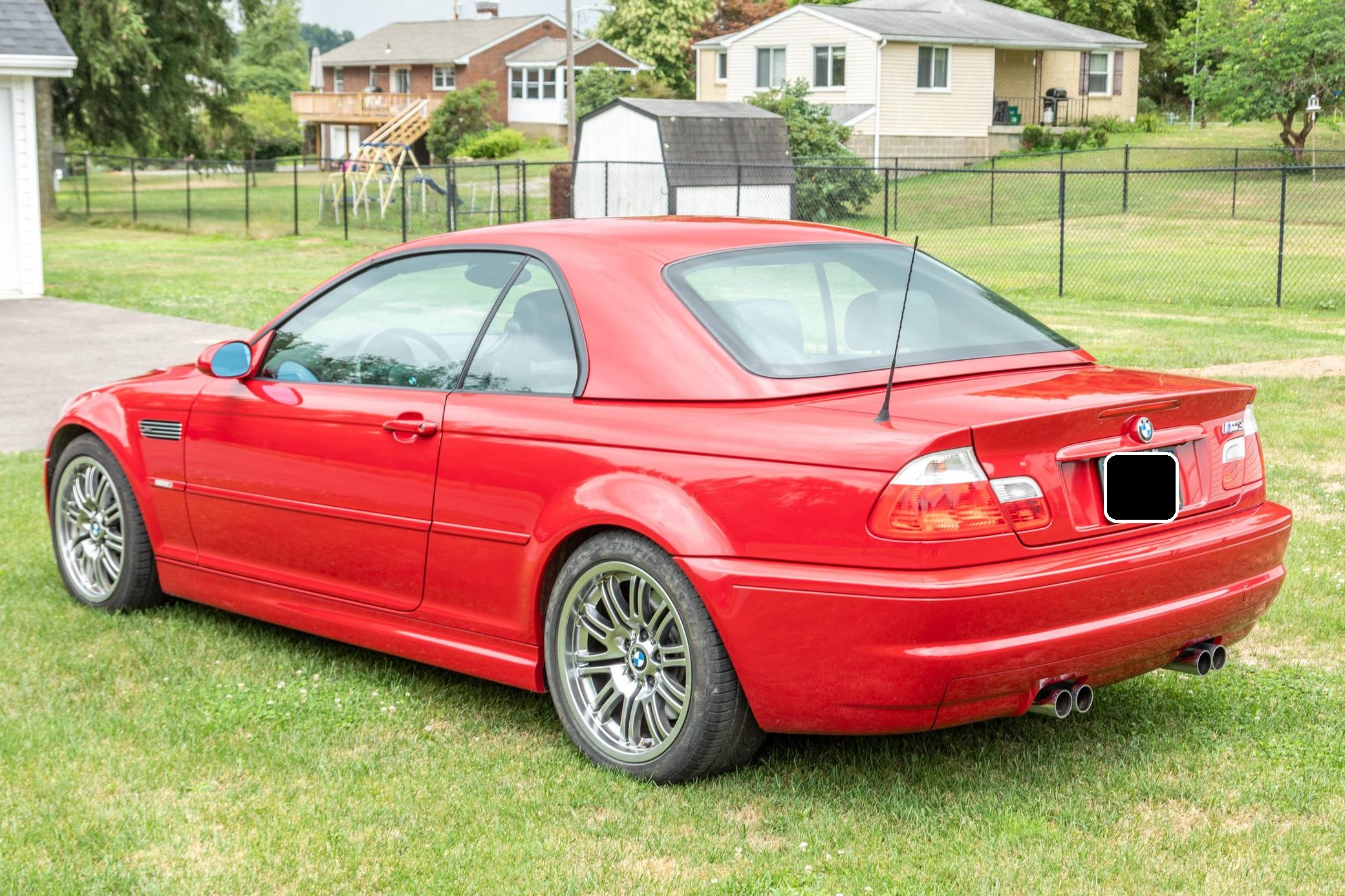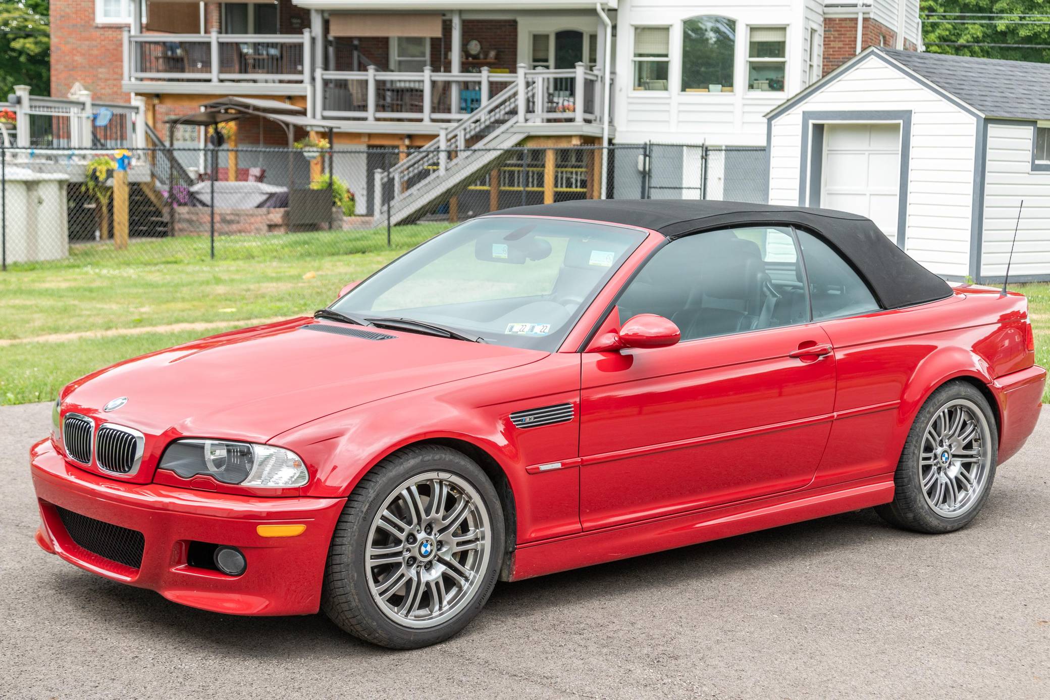 2001 BMW M3 Convertible, finished in Imola Red with a color-matched hardtop, a black soft top, and a black interior. This M3 is equipped with the desirable 6-speed manual transmission, and its odometer currently displays approximately 12,300 miles. The seller reports no modifications. The third-generation M3 made its debut for the 2000 model year as the quickest and most powerful evolution of the E46 3 Series. Offered as a coupe and as a convertible, it received a high-revving straight-6 engine, suspension improvements, and a muscular-looking exterior design. Production ended in 2006. Power comes from a 3. 2-liter "S54" straight-6 engine, rated at 333 horsepower and 262 lb-ft of torque. It spins the rear wheels via a 6-speed manual transmission.