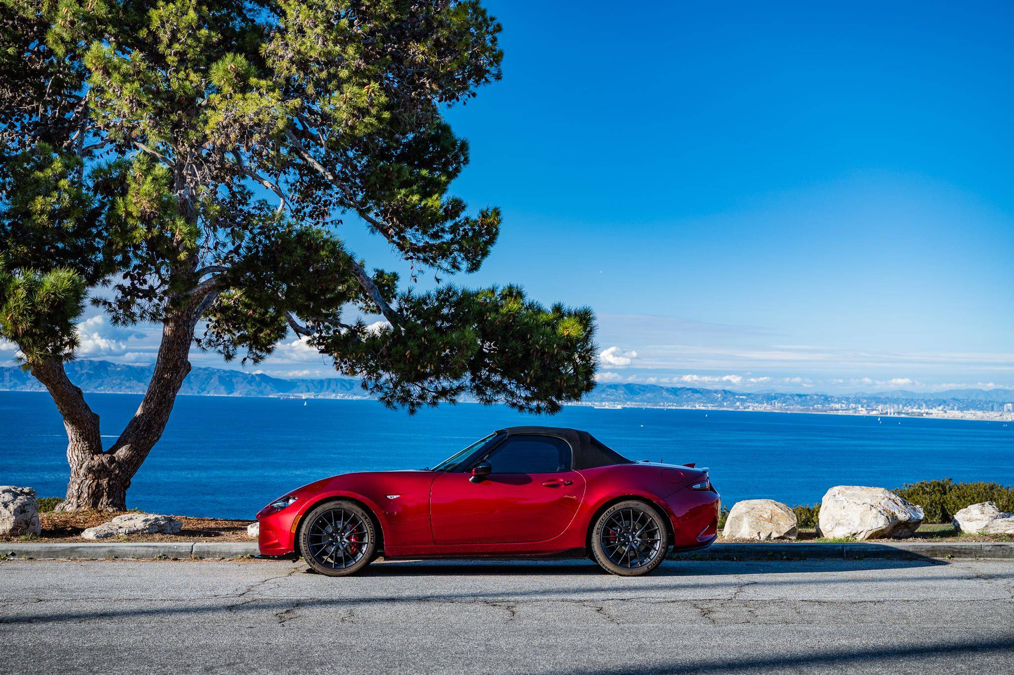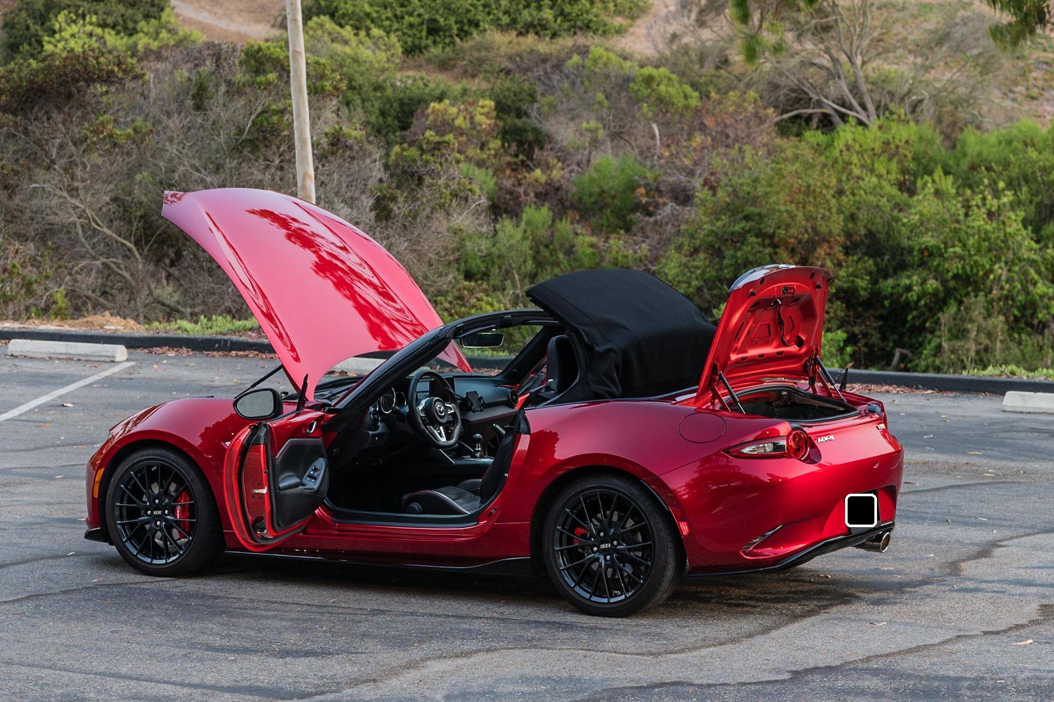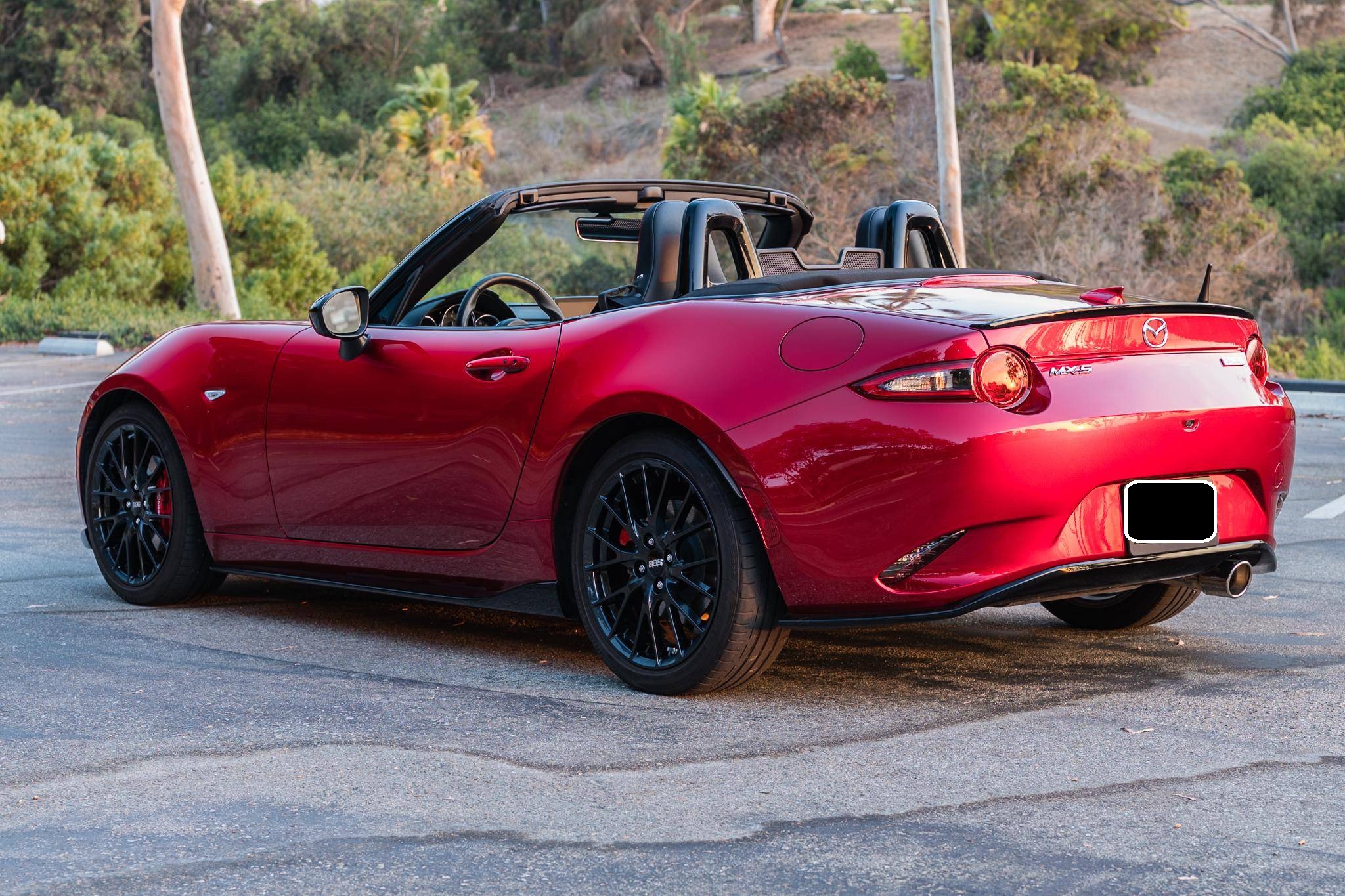 THIS. . . is a 2019 Mazda MX-5 Miata Club, finished in Soul Red Crystal with a black interior. This Miata features the desirable 6-speed manual transmission. Factory equipment includes the Appearance Package for Club, the Brembo/BBS/Recaro Package, a sport-tuned suspension, LED headlights, leather and Alcantara upholstery, air conditioning, rearview camera, and a Bose sound system, among others listed below. Modifications reported by the seller include a RoadsterSport Super-Q exhaust, Progress Technology lowering springs, Progress Technology front and rear sway bars, a Spyder front grille, window tint on front windows, a rearview mirror with auto-dimming and Homelink functionality, a Kenstyle steering wheel, and Dynamat in the trunk area and cubby shelf. The "ND" Miata debuted for the 2016 model year, and it strikes a balance as a modern, nicely-appointed roadster that still maintains the intended nature of a Miata as a fun, uncomplicated, lightweight sports car at an accessible price. The "ND2" model debuted for the 2019 model year and included revisions to the engine with more power and a higher redline, a telescoping steering column, revised seat controls, a new cupholder, a reverse camera, and a redesigned door handle mechanism. Power comes from a 2. 0-liter inline-4, rated at 181 horsepower and 151 lb-ft of torque. Output is sent to the rear wheels via a 6-speed manual transmission.