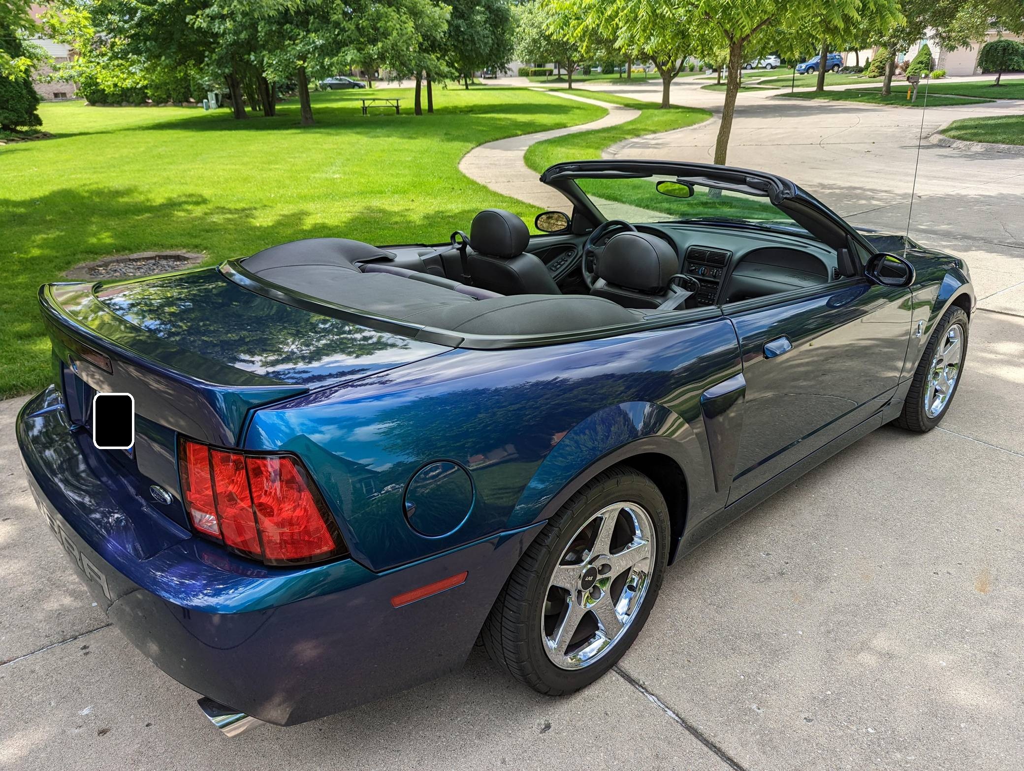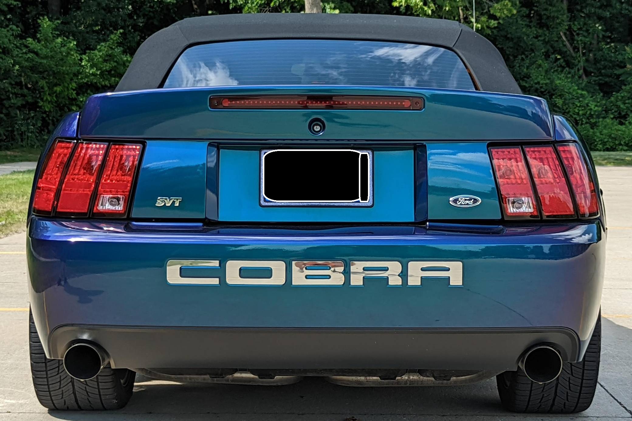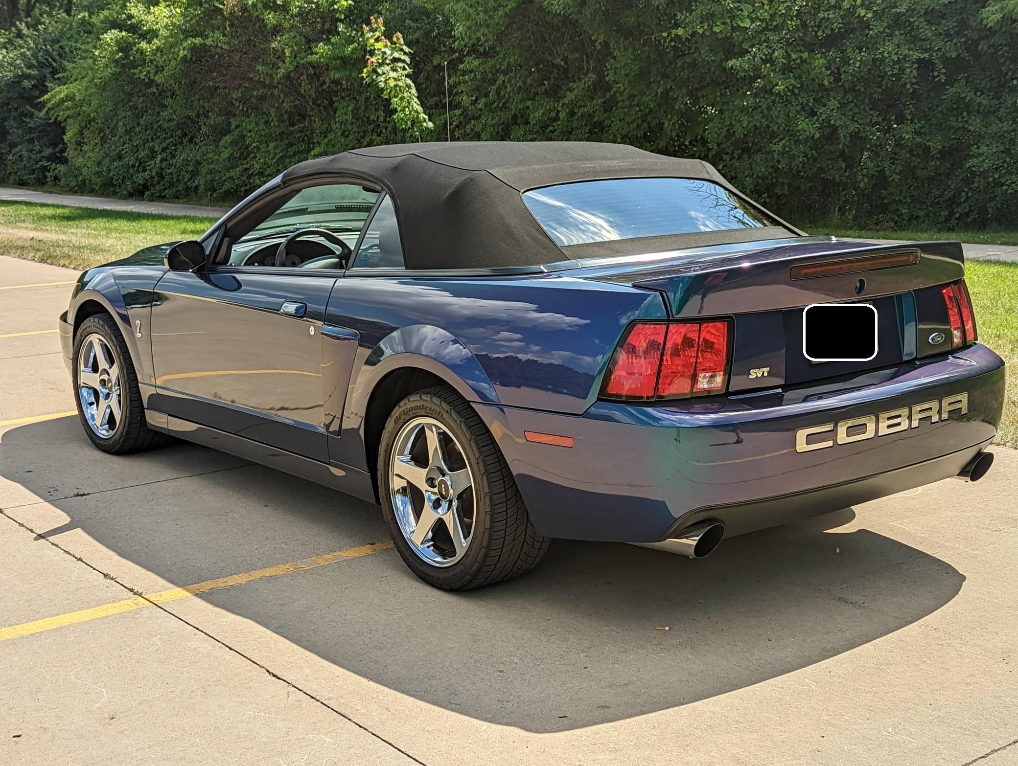 THIS. . . is a 2004 Ford Mustang SVT Cobra Convertible, finished in Mystichrome with a black convertible top and Mystichrome and Dark Charcoal interior. This Mustang is equipped with a 6-speed manual transmission, and its odometer indicates about 15,500 miles. Factory equipment includes an SVT-tuned independent rear suspension, 17-inch chrome wheels, a power convertible top, leather upholstery with Mystichrome seat inserts, and a Mach audio system with a 6-disc CD changer. Modifications to this Mustang are limited to an aftermarket shifter, a Cobra grille emblem, and a Bassani exhaust system with high-flow catalytic converters. The SVT Cobra was built on the facelifted "New Edge" version of the SN-95-generation Mustang. It featured a mandatory 6-speed manual, an independent rear suspension, 17-inch alloy wheels, special bodywork, and bolstered seats, in addition to the supercharged version of Ford's 4. 6-liter V8. Of the total production run, just 495 were Mystichrome convertibles, according to Ford's archives department. Power comes from a supercharged 4. 6-liter "Terminator" V8, rated at 390 horsepower and 390 lb-ft of torque. Output is sent to the rear wheels through a 6-speed manual transmission.