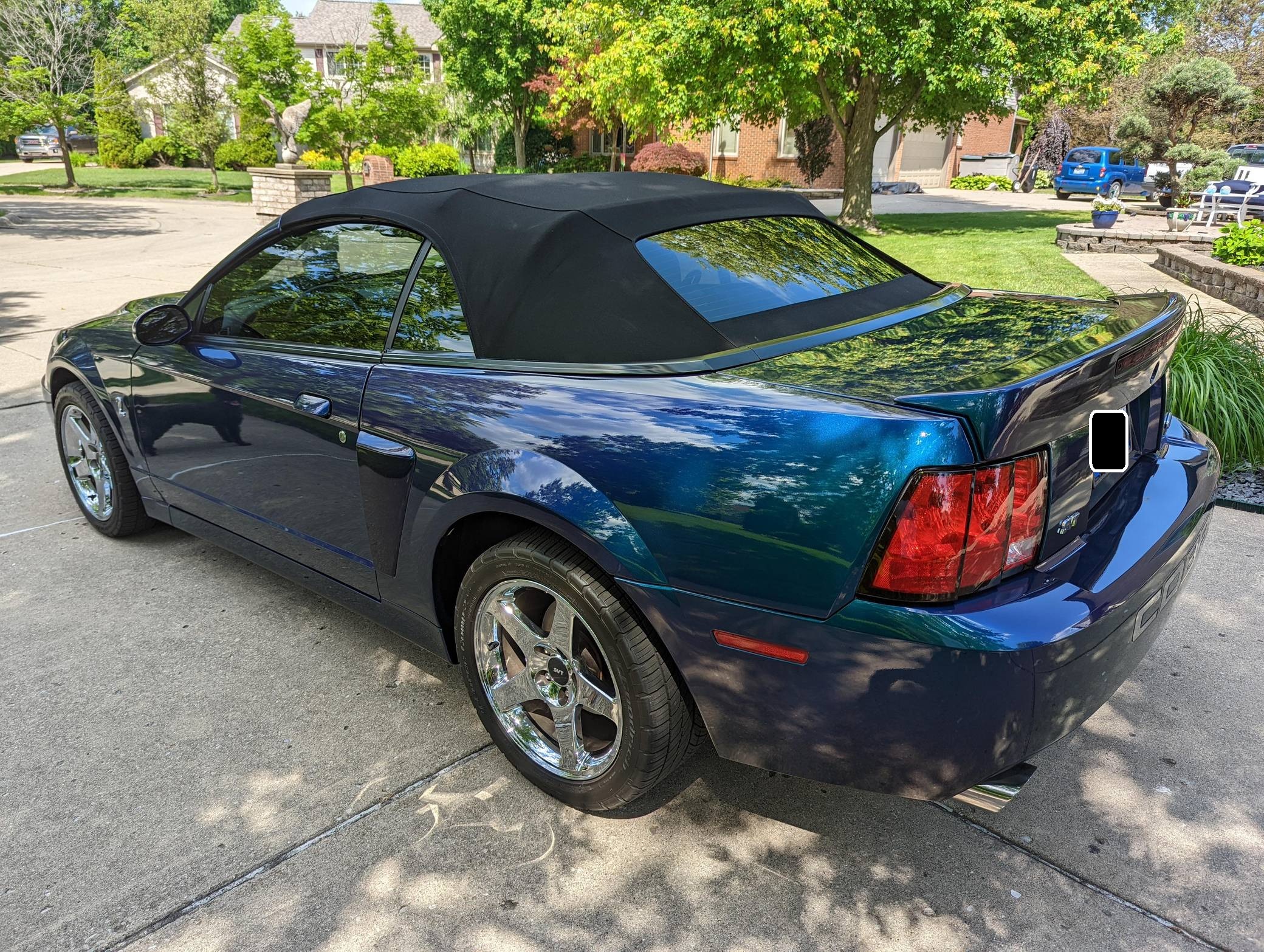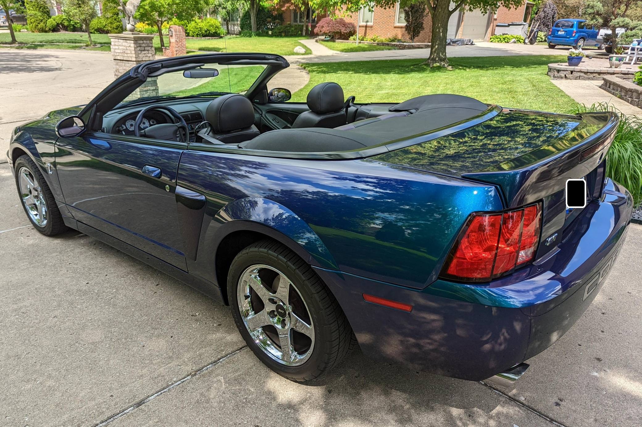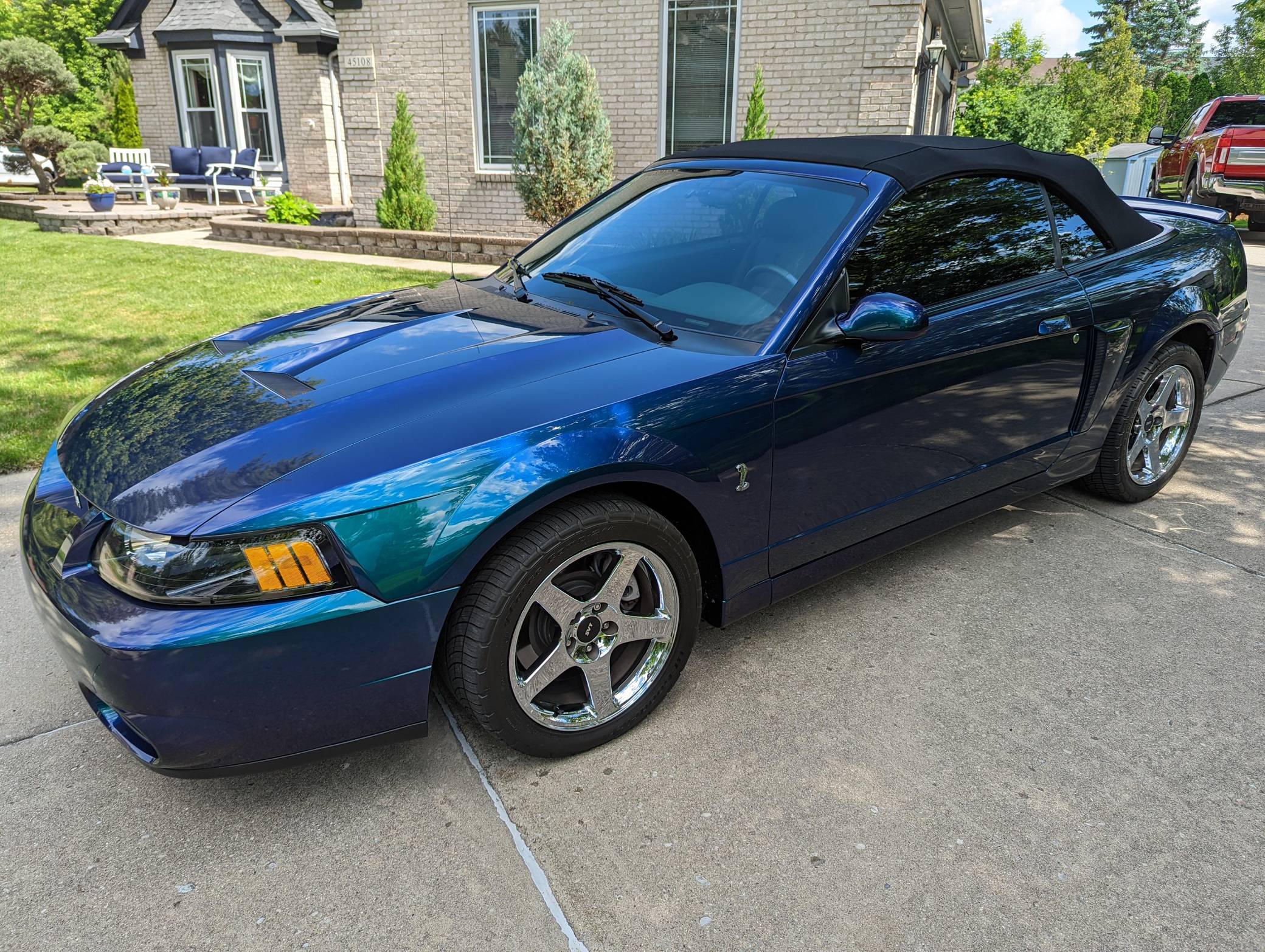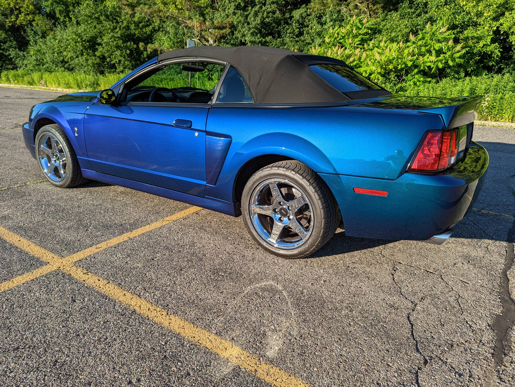 THIS. . . is a 2004 Ford Mustang SVT Cobra Convertible, finished in Mystichrome with a black convertible top and Mystichrome and Dark Charcoal interior. This Mustang is equipped with a 6-speed manual transmission, and its odometer indicates about 15,500 miles. Factory equipment includes an SVT-tuned independent rear suspension, 17-inch chrome wheels, a power convertible top, leather upholstery with Mystichrome seat inserts, and a Mach audio system with a 6-disc CD changer. Modifications to this Mustang are limited to an aftermarket shifter, a Cobra grille emblem, and a Bassani exhaust system with high-flow catalytic converters. The SVT Cobra was built on the facelifted "New Edge" version of the SN-95-generation Mustang. It featured a mandatory 6-speed manual, an independent rear suspension, 17-inch alloy wheels, special bodywork, and bolstered seats, in addition to the supercharged version of Ford's 4. 6-liter V8. Of the total production run, just 495 were Mystichrome convertibles, according to Ford's archives department. Power comes from a supercharged 4. 6-liter "Terminator" V8, rated at 390 horsepower and 390 lb-ft of torque. Output is sent to the rear wheels through a 6-speed manual transmission.