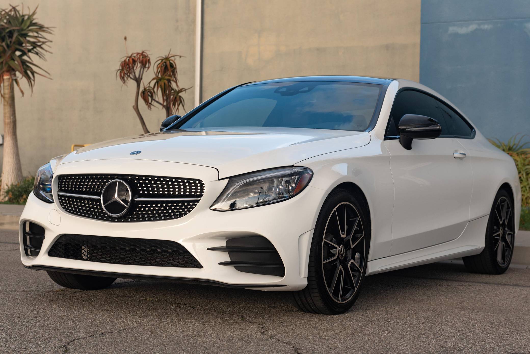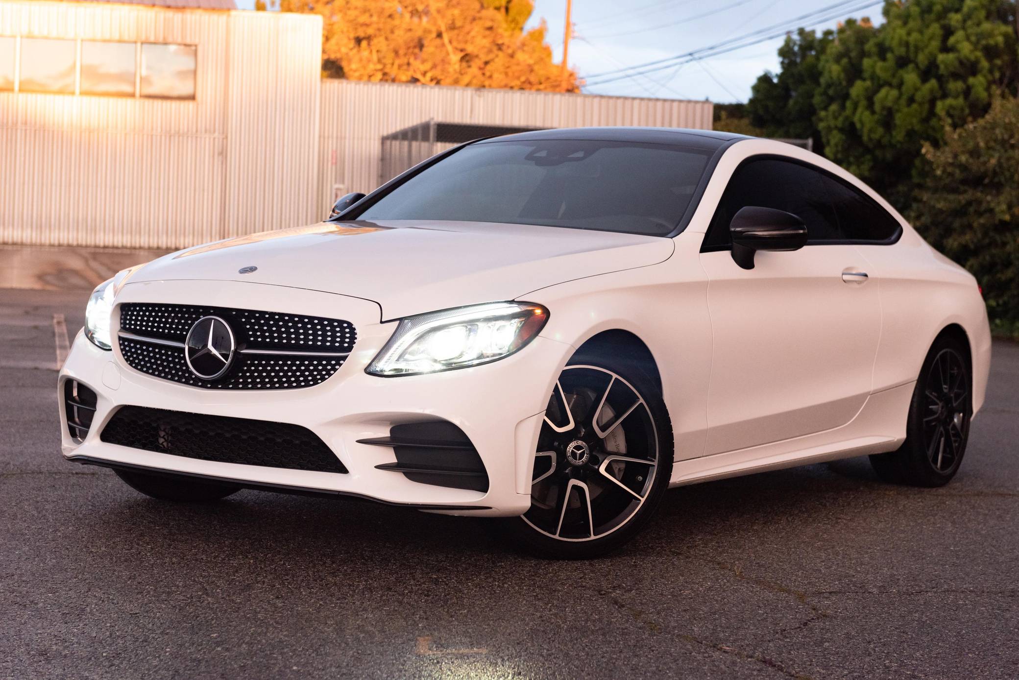2019 Mercedes-Benz C300 Coupe, finished in Polar White with a Magma Grey interior. According to the build sheet provided in the gallery, this C300 Coupe comes highly equipped with the AMG Line, Driver Assistance, Premium, Multimedia, Leather Seating, Exterior Lighting, and Night packages. Additional equipment includes 19-inch AMG twin 5-spoke wheels, a power sunroof, open-pore walnut wood trim, power-adjustable heated and ventilated front seats, a 12. 3-inch digital instrument cluster, and more as detailed below. Modifications are limited to tinted windows. Launched for the 2015 model year, the fourth-generation "C205" C-Class Coupe debuted with new, more mature exterior and interior styling inspired by the contemporary S-Class Coupe. The first C-Class to use Mercedes-Benz's then-new Modular Rear Architecture (MRA) platform, the C205 managed to increase rigidity while lowering weight compared to its predecessor. This generation C-Class was available in a range of trims, from the understated C300 up to the fire-breathing C63 AMG, and a cabriolet model was introduced to the C-Class range for the first time. Power comes from a 2. 0-liter turbocharged inline 4-cylinder engine, rated at 255 horsepower and 273 lb-ft of torque. The engine spins the rear wheels via a 9-speed automatic transmission.