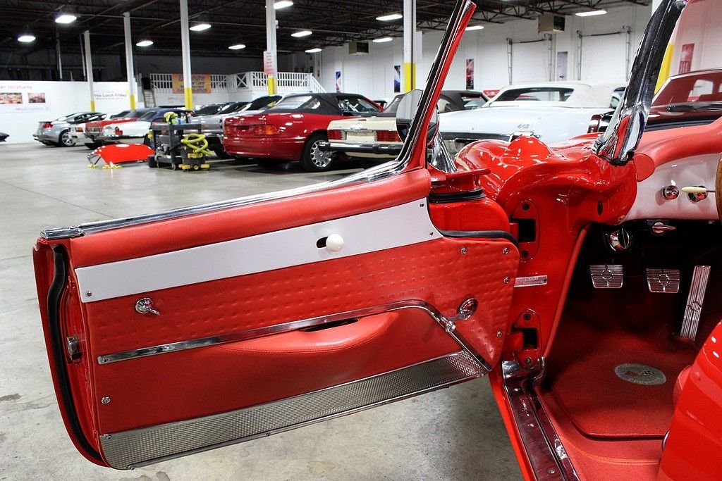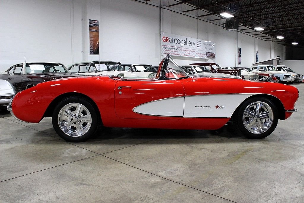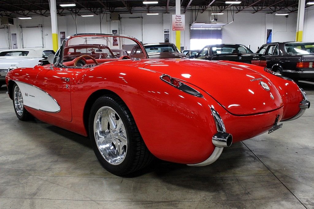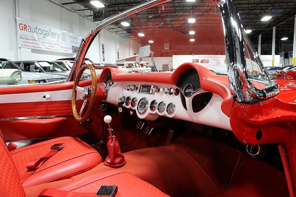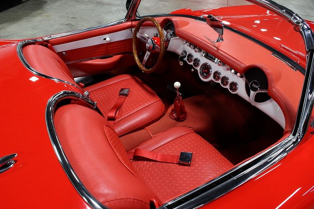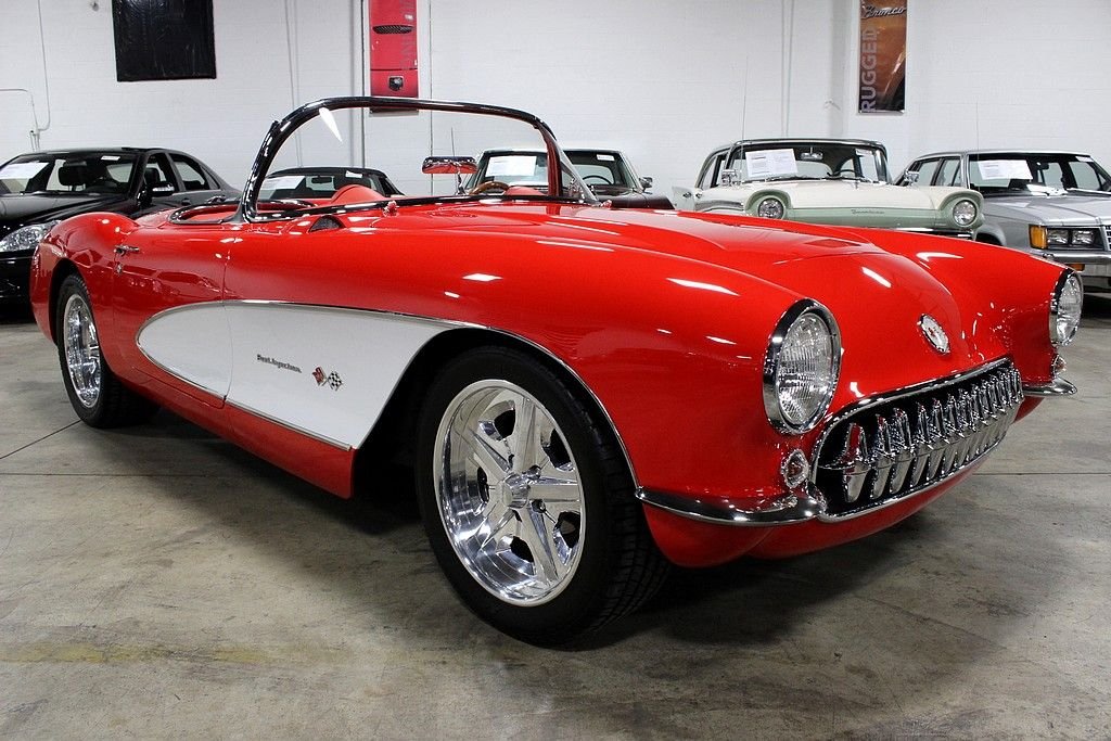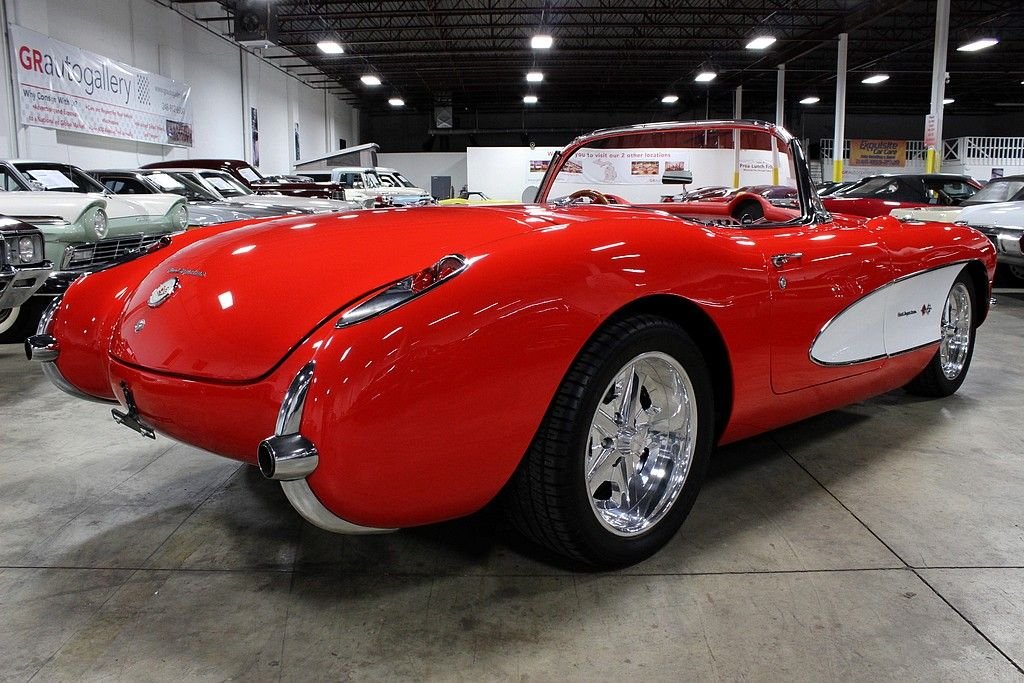 The Chevrolet Corvette (C1) is the first generation of Chevrolets sports car division of General Motors and was introduced late in the 1953 model year and produced through 1962. It is often known as the "solid-axle" generation, as the independent rear suspension did not appear until the 1963 Sting Ray. There was no doubt Chevrolet was in the sports car business with the release of the 1956 model. It featured a new body that has turned heads since its inception and cannot be compared to many of that generation. The volume was 3,167, a low number by any contemporary standard and still less than 1954's 3,640, meaning this was the third lowest-volume model in Corvette history. This fine example of classic design meeting with contemporary power is a wonderfully, professionally done example with every extra wanted (and some). Starting with the exterior you will find a paint that is of concourse quality, all chrome and stainless steel completely re-chromed or polished, all new rubber trim as well as window fuzzes and a perfectly fit removable hardtop to match. The interior is equally as impressive, done by Al Knoch which included newly added retro-styled seats, carpet, door panels, dash and trunk. Auto Meter gauges in the stock locations with vintage air conditioning and heat added to complete its comfort level, there isn't a bit of worry that you will enjoy this whenever you please. This model has not only been loved inside and out, it has been shown appreciation with the 5.7L LS1 matched with a 6-speed manual transmission that is powering this beautiful vehicle. A 9” Ford rear end with 4-link system, pan hard bar, power rack and pinion steering upgrade, four wheel disc brakes with dual master cylinder calipers, Mustang II front suspension with QA1 rear and front coil overs, upgraded Be-Cool aluminum radiator and the dual Flow Master exhaust system, this mechanically sound vehicle offers the best of both worlds! Tasteful custom 17” Bonspeed chrome wheels with 235/40/17 and 275/45/17 BF Goodrich TA's all well done within the last 126 miles of driving, this vehicle is ready to be loved and adored by its next proud owner!