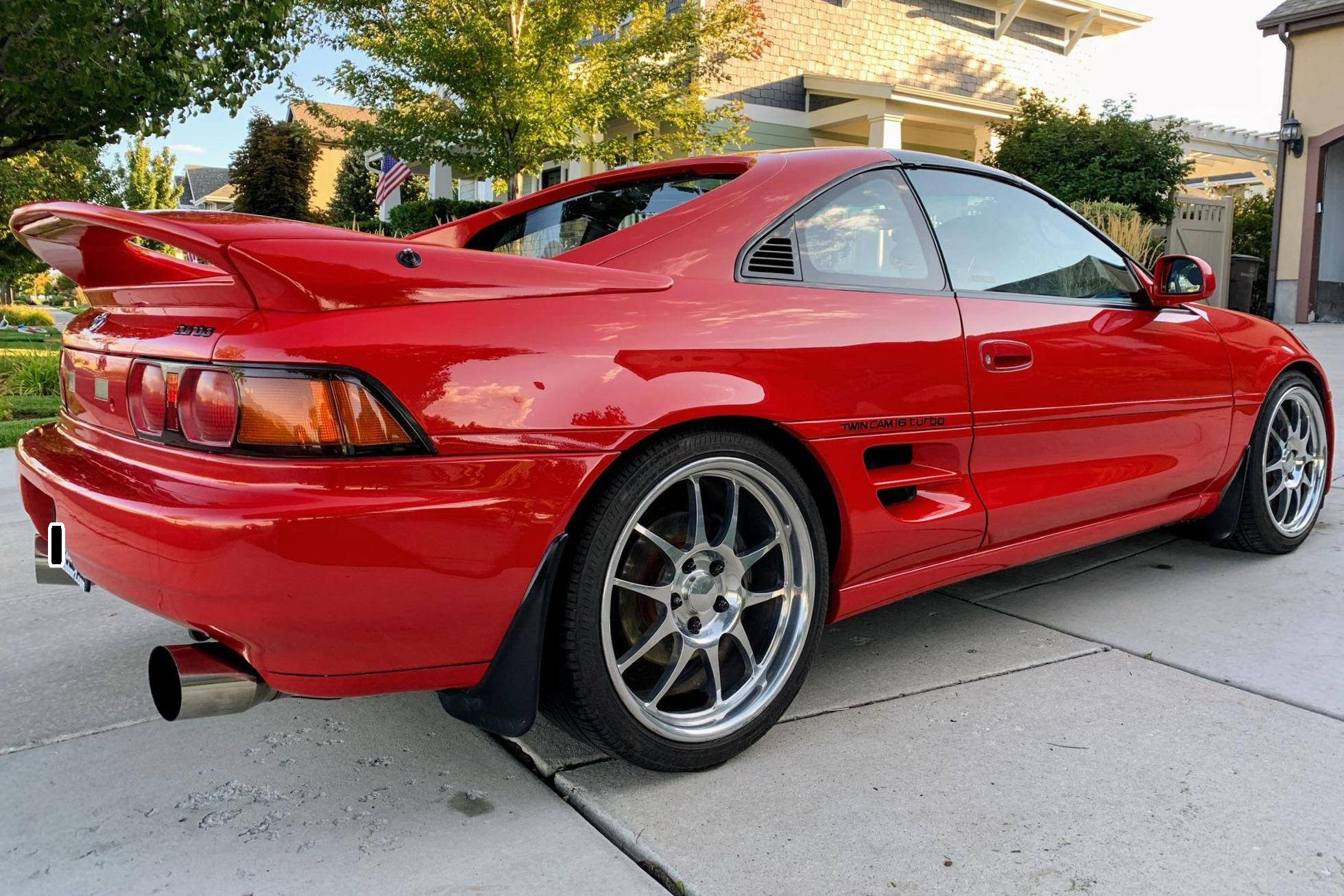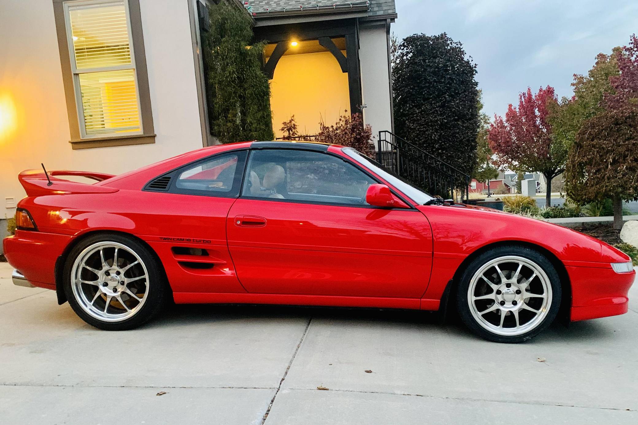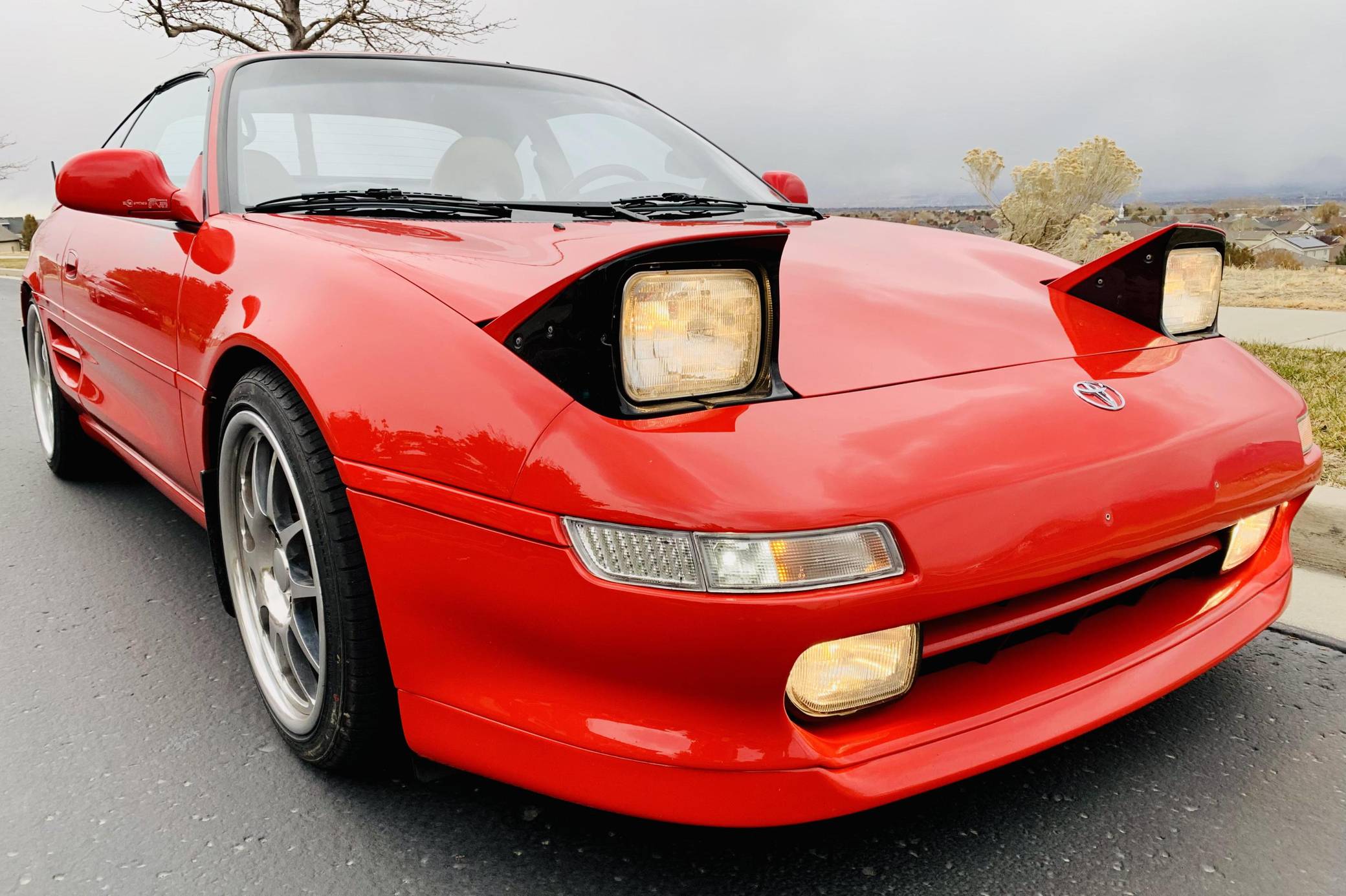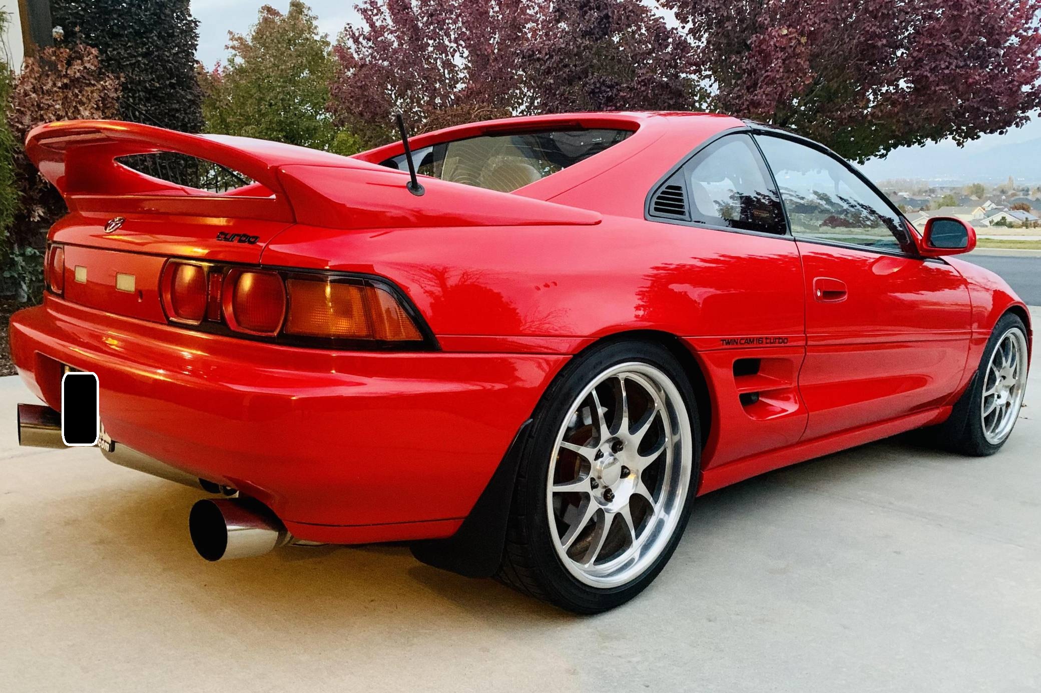 THIS. . . is a 1993 Toyota MR2 Turbo, finished in Super Red with a black and tan interior. This MR2 is equipped with a 5-speed manual transmission. Modifications reported by the seller include a JDM "3S-GTE" engine, a GReddy turbocharger, a TCS Motorsports exhaust, a South Bend Stage 2 clutch, JIC adjustable coilovers, 17-inch front and 18-inch rear wheels, an Aeroware rear spoiler, reupholstered factory leather seats, a factory Toyota steering wheel, a Racer X shift knob, a Kenwood head unit with CD player, and a PLX digital Multi Gauge. Factory equipment includes 4-wheel independent suspension, pop-up headlights, removable glass roof panels, power windows, mirrors, and locks, and air conditioning. The second-generation of Toyota's MR2 (which stood for Midship Rear-drive 2-seater) arrived for the 1991 model year in base and Turbo form, and it was sold until 1995. The 1993 and later models benefitted from a revised suspension to mitigate lift-throttle oversteer, larger brakes, and an optional limited-slip differential. Power comes from a mid-mounted, turbocharged "3S-GTE" 2. 0-liter twin-cam inline-4, rated at 241 horsepower and 224 lb-ft of torque in stock form. According to the dyno sheet in the photo gallery, the modifications increase those figures to 308 horsepower and 285 lb-ft of torque at the wheels. Output is sent to the rear wheels via a 5-speed manual transmission.