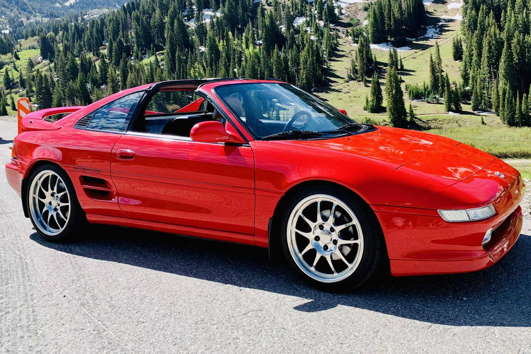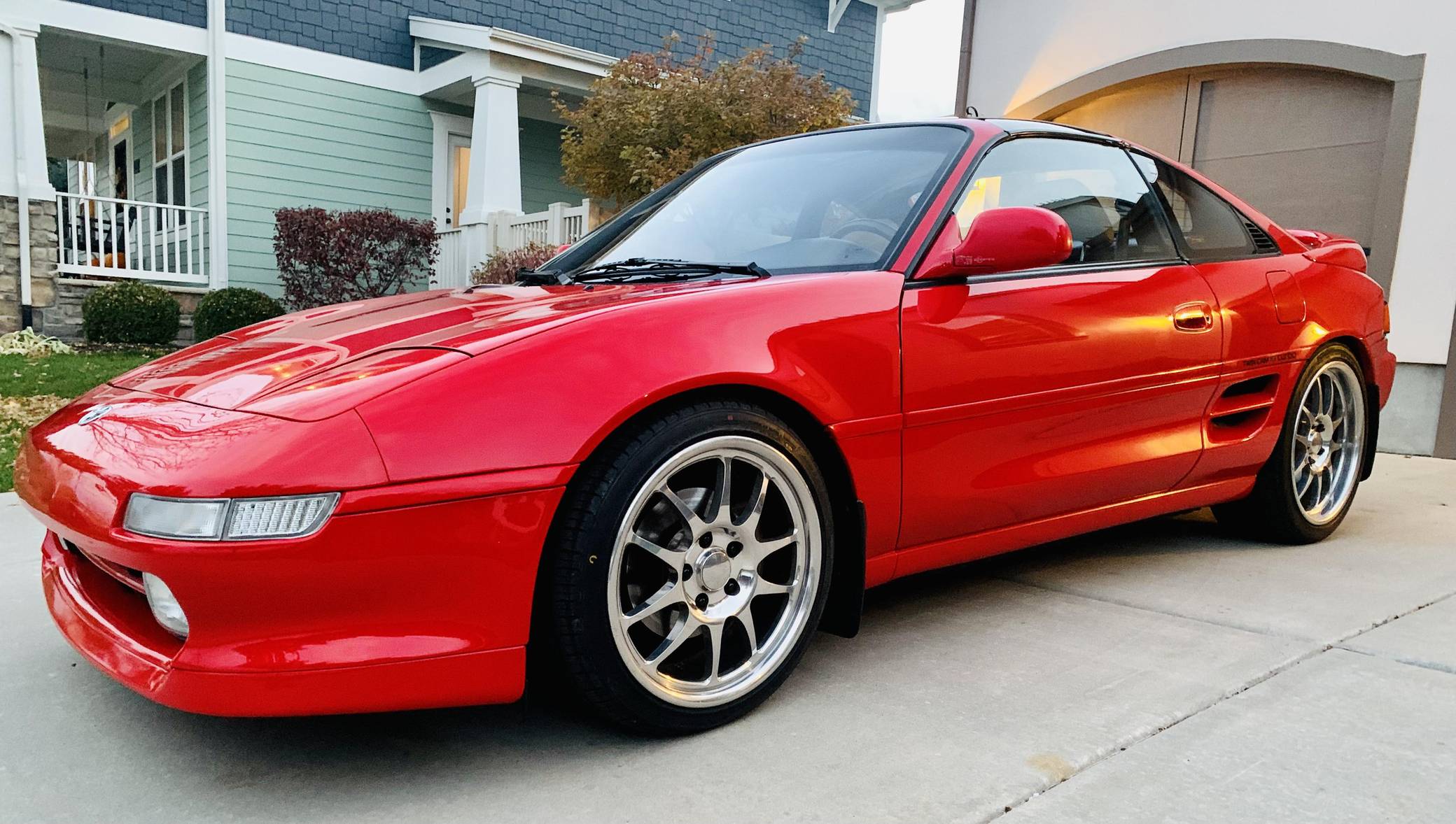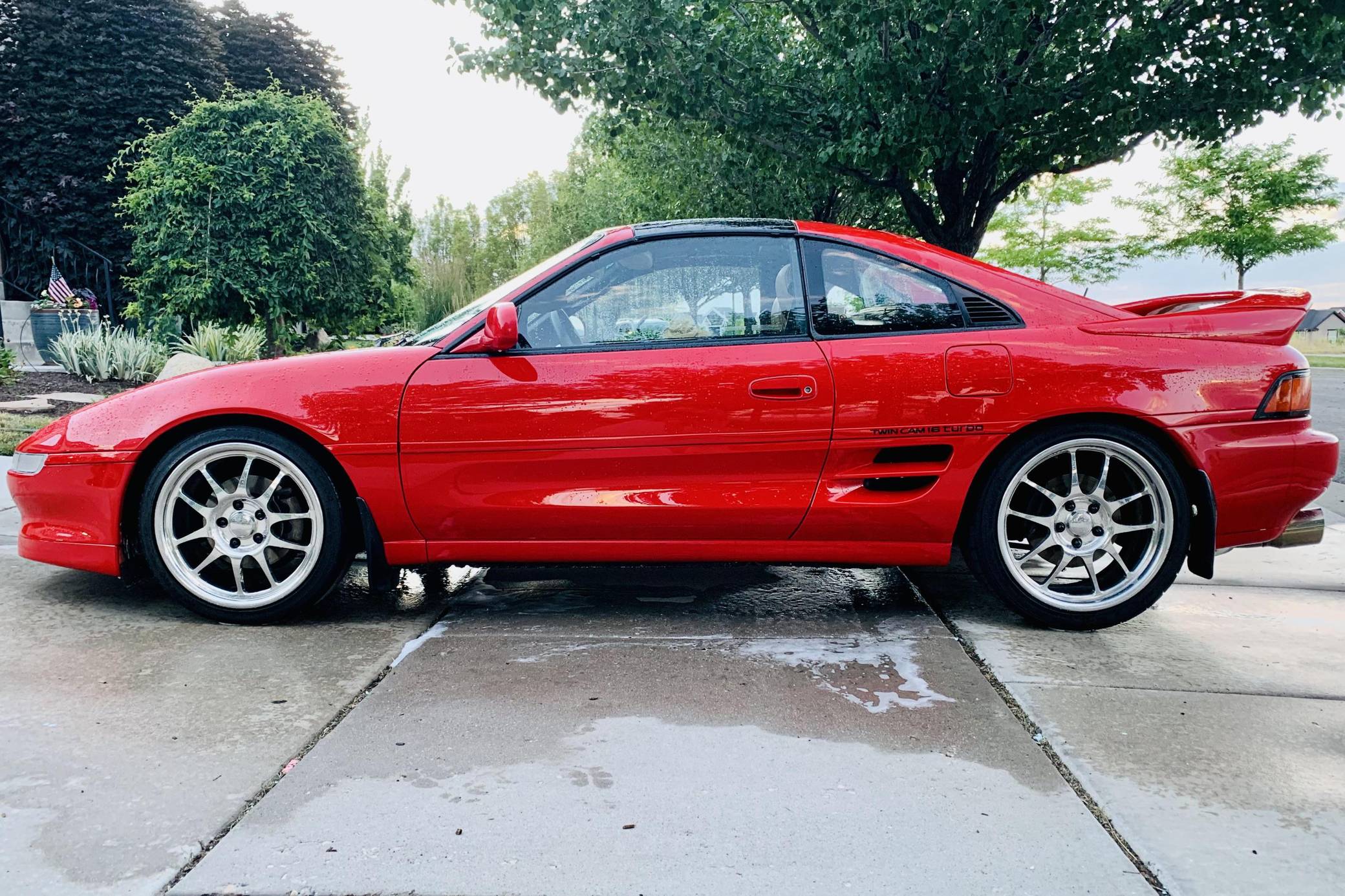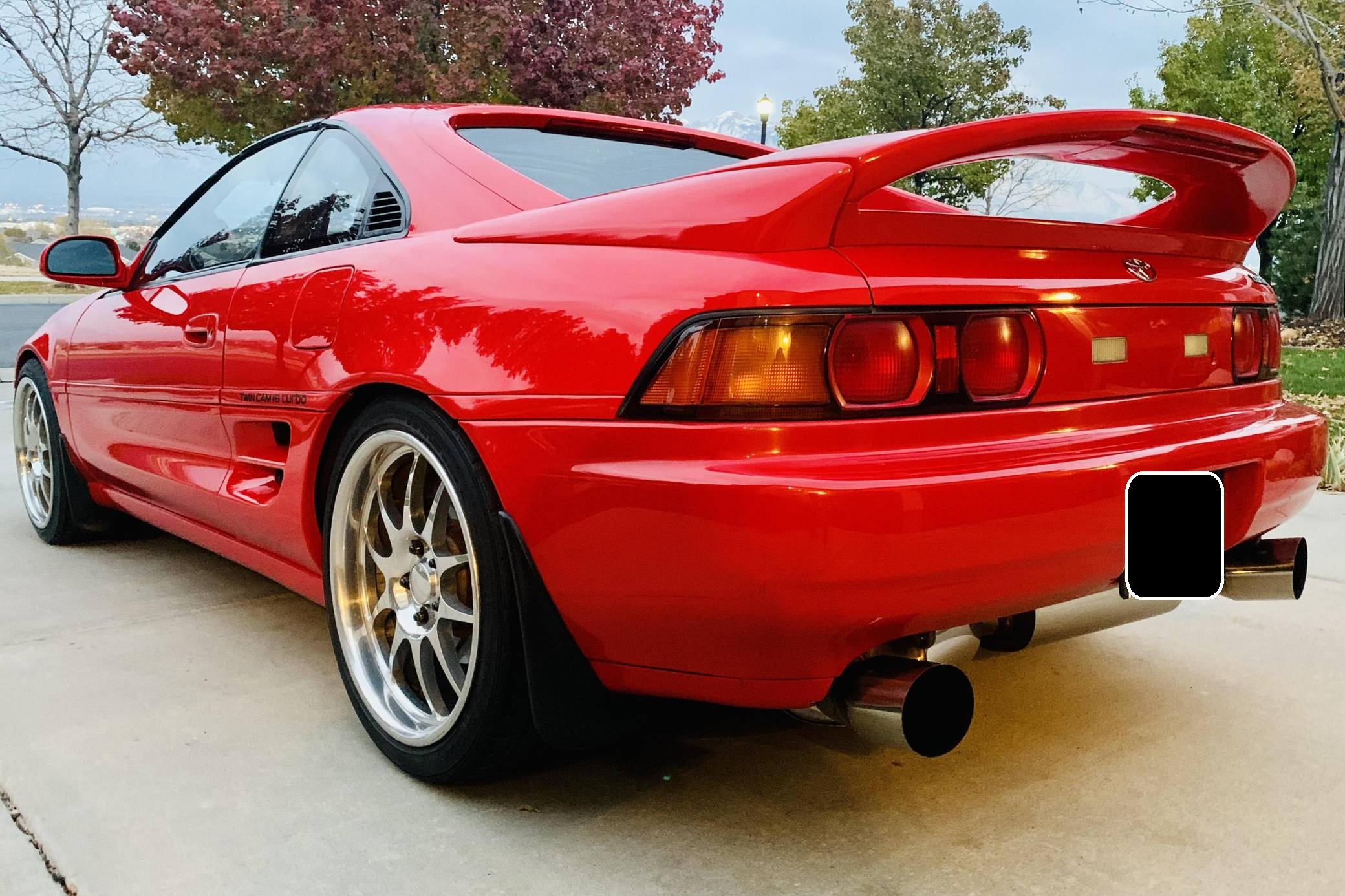 THIS. . . is a 1993 Toyota MR2 Turbo, finished in Super Red with a black and tan interior. This MR2 is equipped with a 5-speed manual transmission. Modifications reported by the seller include a JDM "3S-GTE" engine, a GReddy turbocharger, a TCS Motorsports exhaust, a South Bend Stage 2 clutch, JIC adjustable coilovers, 17-inch front and 18-inch rear wheels, an Aeroware rear spoiler, reupholstered factory leather seats, a factory Toyota steering wheel, a Racer X shift knob, a Kenwood head unit with CD player, and a PLX digital Multi Gauge. Factory equipment includes 4-wheel independent suspension, pop-up headlights, removable glass roof panels, power windows, mirrors, and locks, and air conditioning. The second-generation of Toyota's MR2 (which stood for Midship Rear-drive 2-seater) arrived for the 1991 model year in base and Turbo form, and it was sold until 1995. The 1993 and later models benefitted from a revised suspension to mitigate lift-throttle oversteer, larger brakes, and an optional limited-slip differential. Power comes from a mid-mounted, turbocharged "3S-GTE" 2. 0-liter twin-cam inline-4, rated at 241 horsepower and 224 lb-ft of torque in stock form. According to the dyno sheet in the photo gallery, the modifications increase those figures to 308 horsepower and 285 lb-ft of torque at the wheels. Output is sent to the rear wheels via a 5-speed manual transmission.