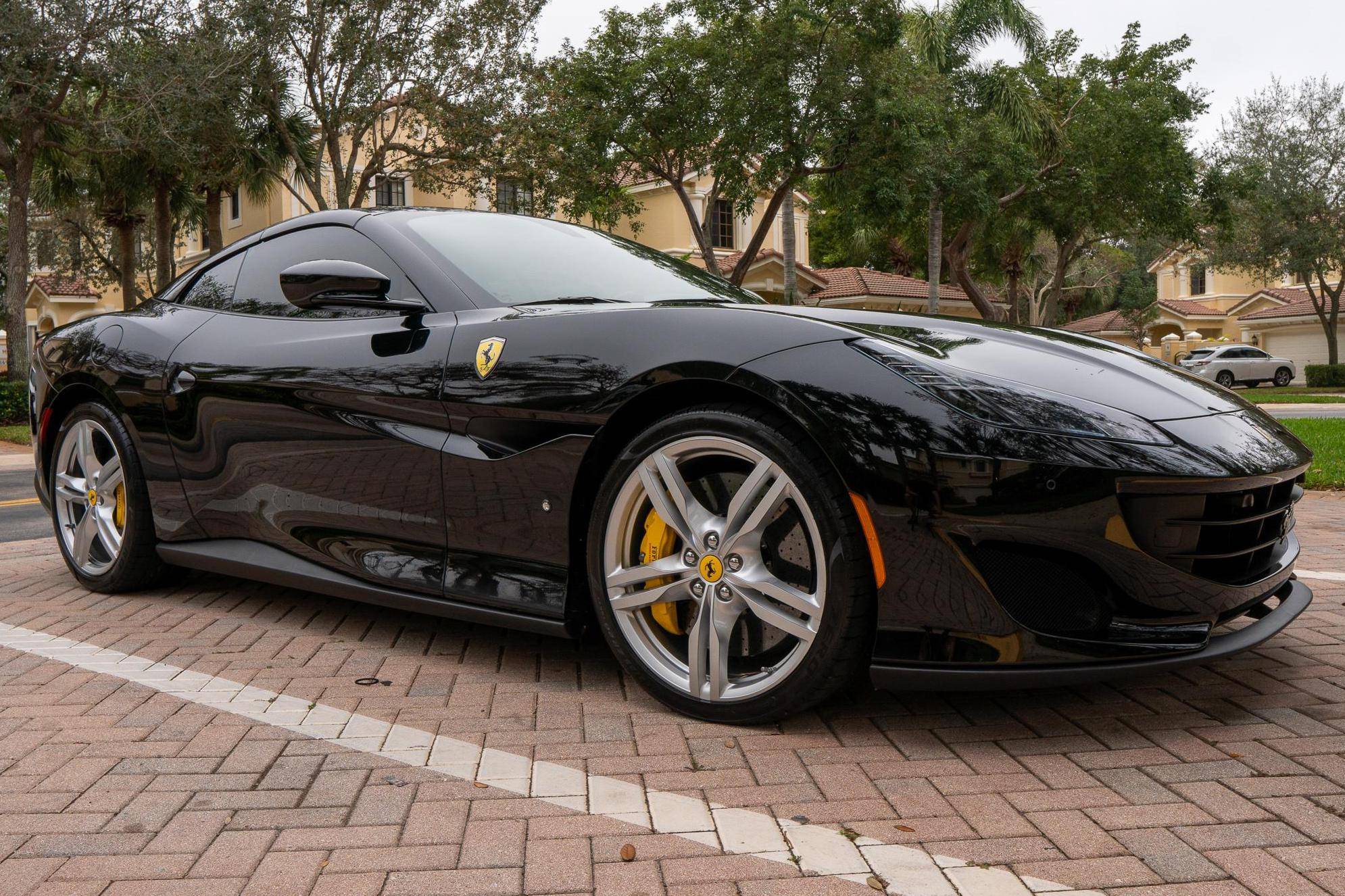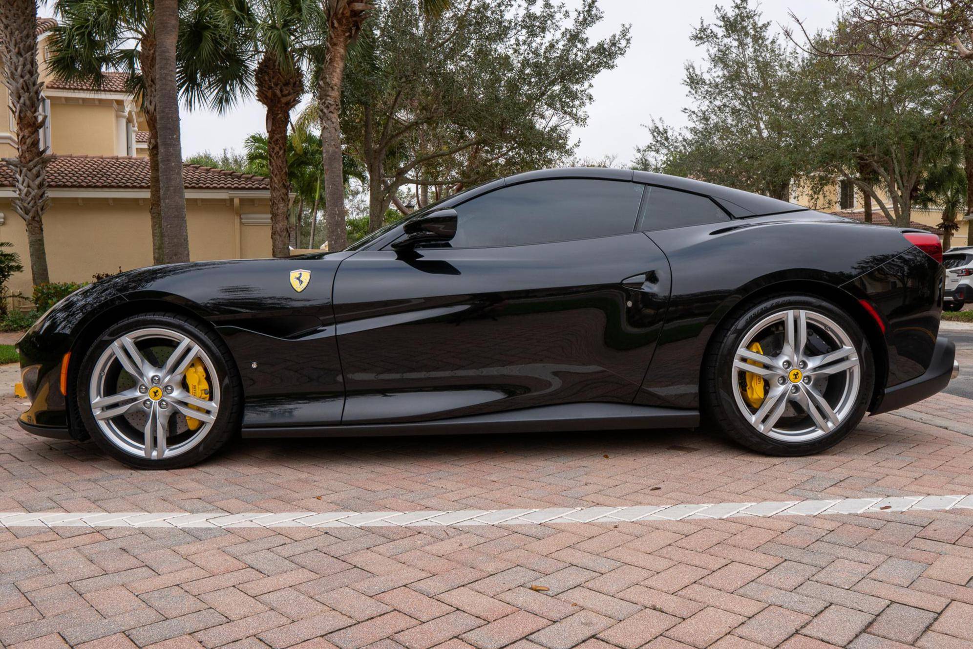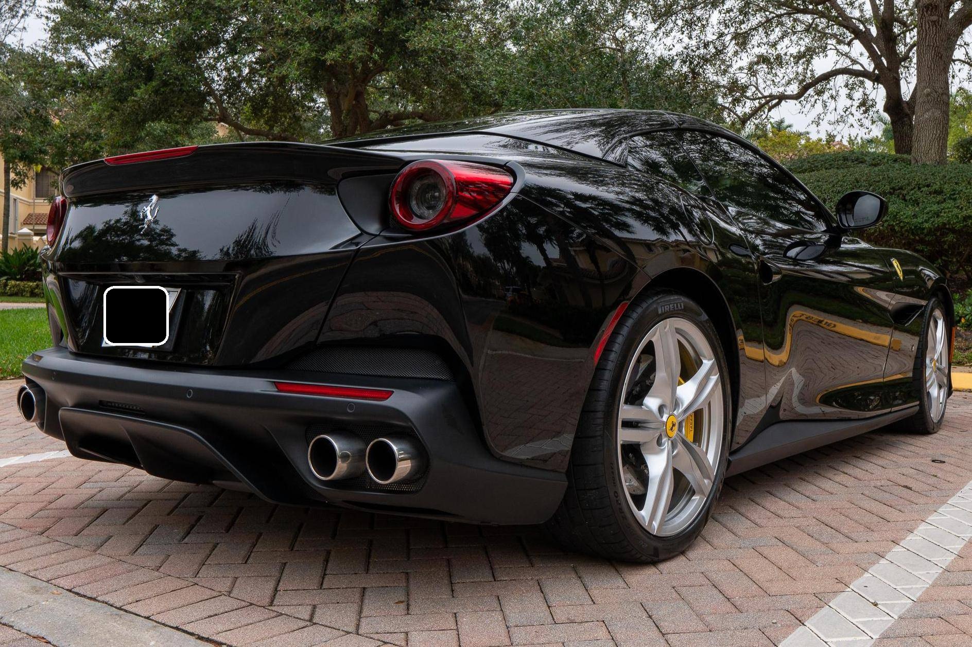 THIS. . . is a 2019 Ferrari Portofino, finished in Nero with a Nero interior. The odometer currently indicates approximately 8,100 miles. Factory equipment includes 20-inch forged alloy wheels, carbon ceramic brakes, yellow brake calipers, LED headlights and taillights, Scuderia shields, leather upholstery, and power-adjustable front seats, among others listed below. The sole modification reported by the seller is a window tint. Introduced in 2017, the Portofino replaced the California T and featured a more powerful V8 engine, updated exterior styling penned by Ferrari Styling Centre, and an improved interior. According to Ferrari, the Portofino can sprint from 0 to 60 mph in 3. 5 seconds on its way to a top speed of 199 mph. Power comes from a twin-turbocharged 3. 9-liter "F154 BE" V8, which produces 591 horsepower and 561 lb-ft of torque. Output is delivered to the rear wheels through a 7-speed F1 dual-clutch transmission.