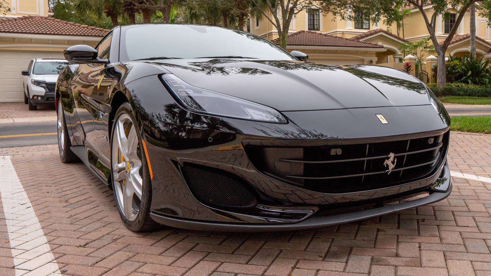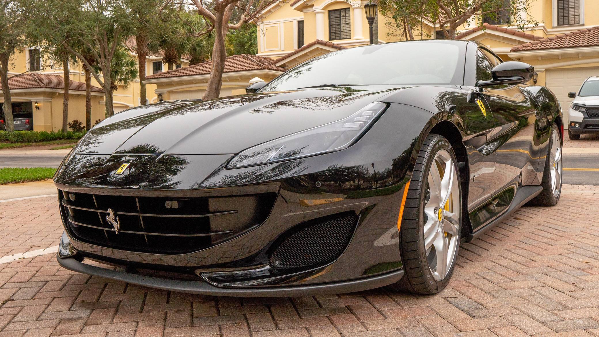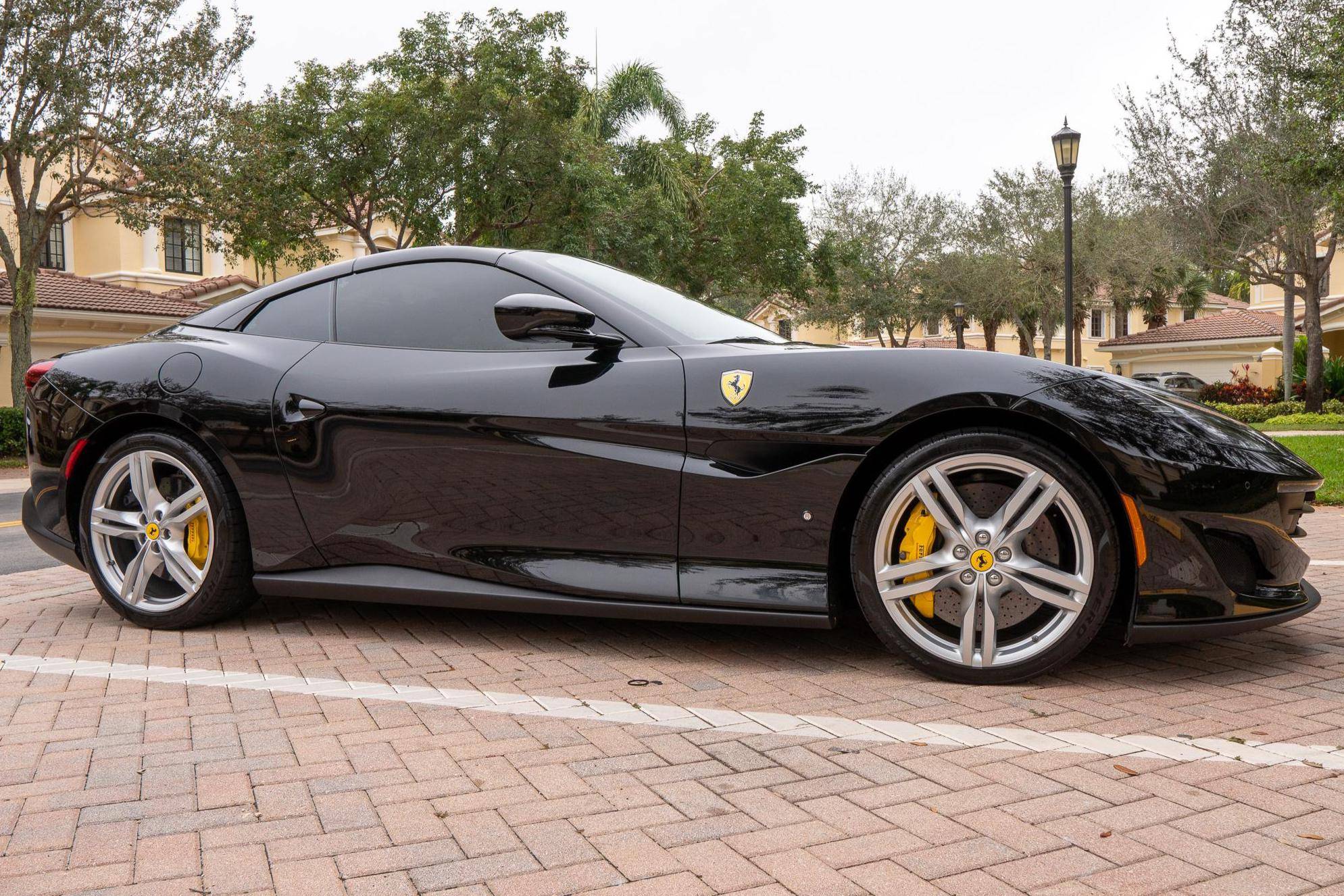 THIS. . . is a 2019 Ferrari Portofino, finished in Nero with a Nero interior. The odometer currently indicates approximately 8,100 miles. Factory equipment includes 20-inch forged alloy wheels, carbon ceramic brakes, yellow brake calipers, LED headlights and taillights, Scuderia shields, leather upholstery, and power-adjustable front seats, among others listed below. The sole modification reported by the seller is a window tint. Introduced in 2017, the Portofino replaced the California T and featured a more powerful V8 engine, updated exterior styling penned by Ferrari Styling Centre, and an improved interior. According to Ferrari, the Portofino can sprint from 0 to 60 mph in 3. 5 seconds on its way to a top speed of 199 mph. Power comes from a twin-turbocharged 3. 9-liter "F154 BE" V8, which produces 591 horsepower and 561 lb-ft of torque. Output is delivered to the rear wheels through a 7-speed F1 dual-clutch transmission.