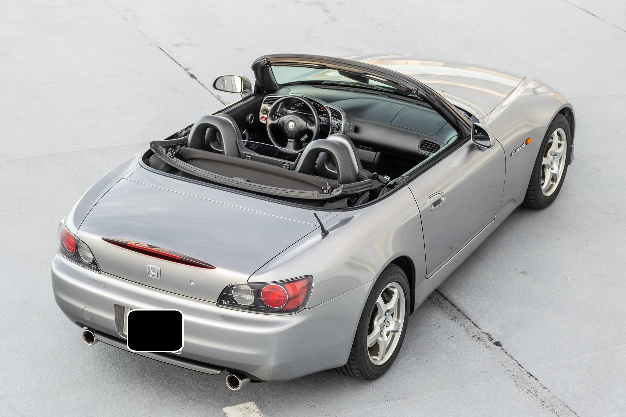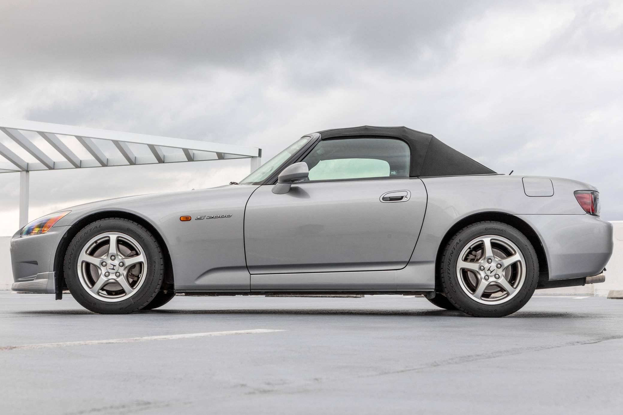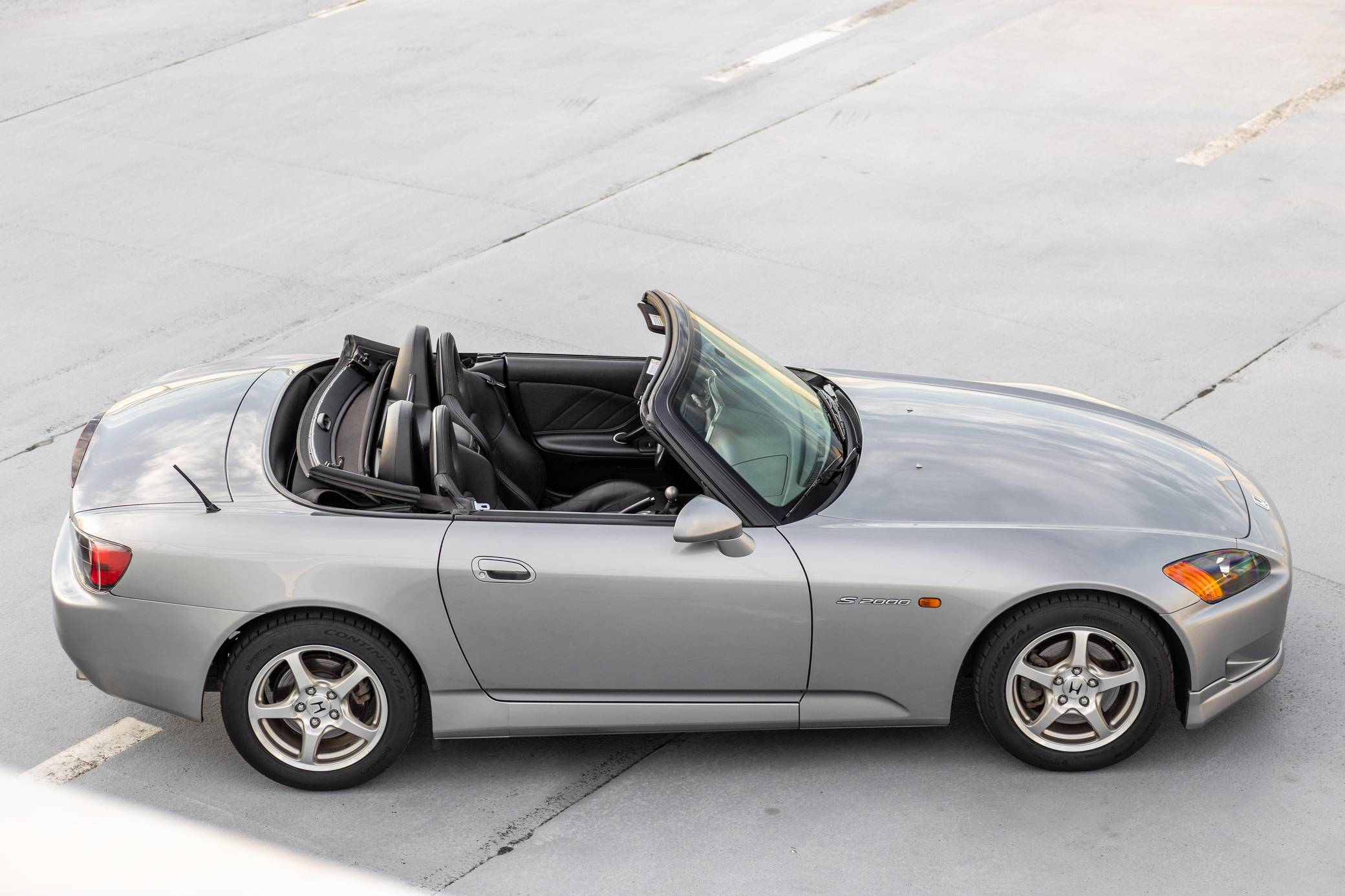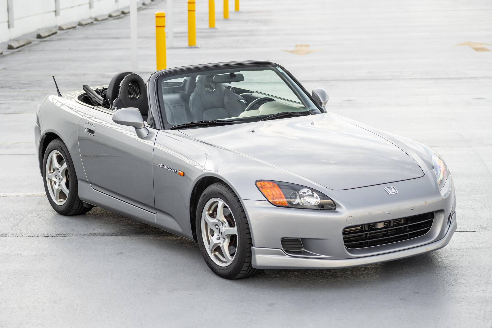 THIS. . . is a 2003 Honda S2000, finished in Silverstone Metallic with a black soft top and a black interior. The odometer shows about 36,500 miles. It also shows Oklahoma and Florida ownership from new. Features on this S2000 include 16-inch wheels, a limited-slip differential, HID headlights, a power-operated soft top, a rear spoiler, leather upholstery, aluminum pedals, a wind deflector, a digital instrument cluster, air conditioning, a CD player, and cruise control. Modifications reported by the seller include a Berk Technology test pipe, a Spoon Sports differential mount kit, a K&N air filter, and a shift knob from an S2000 CR. The Honda S2000 (known as "AP1" internally) was introduced for the 2000 model year. Its model designation references the engine's 2000cc displacement, and its per-liter output was the highest of any naturally aspirated regular-production car. The AP1 also boasted 50/50 weight distribution and independently-sprung, double-wishbone suspension at each corner. Power comes from a 2. 0-liter 4-cylinder engine, rated at 240 horsepower and 153 lb-ft of torque. Output is sent to the rear wheels via a 6-speed manual transmission.