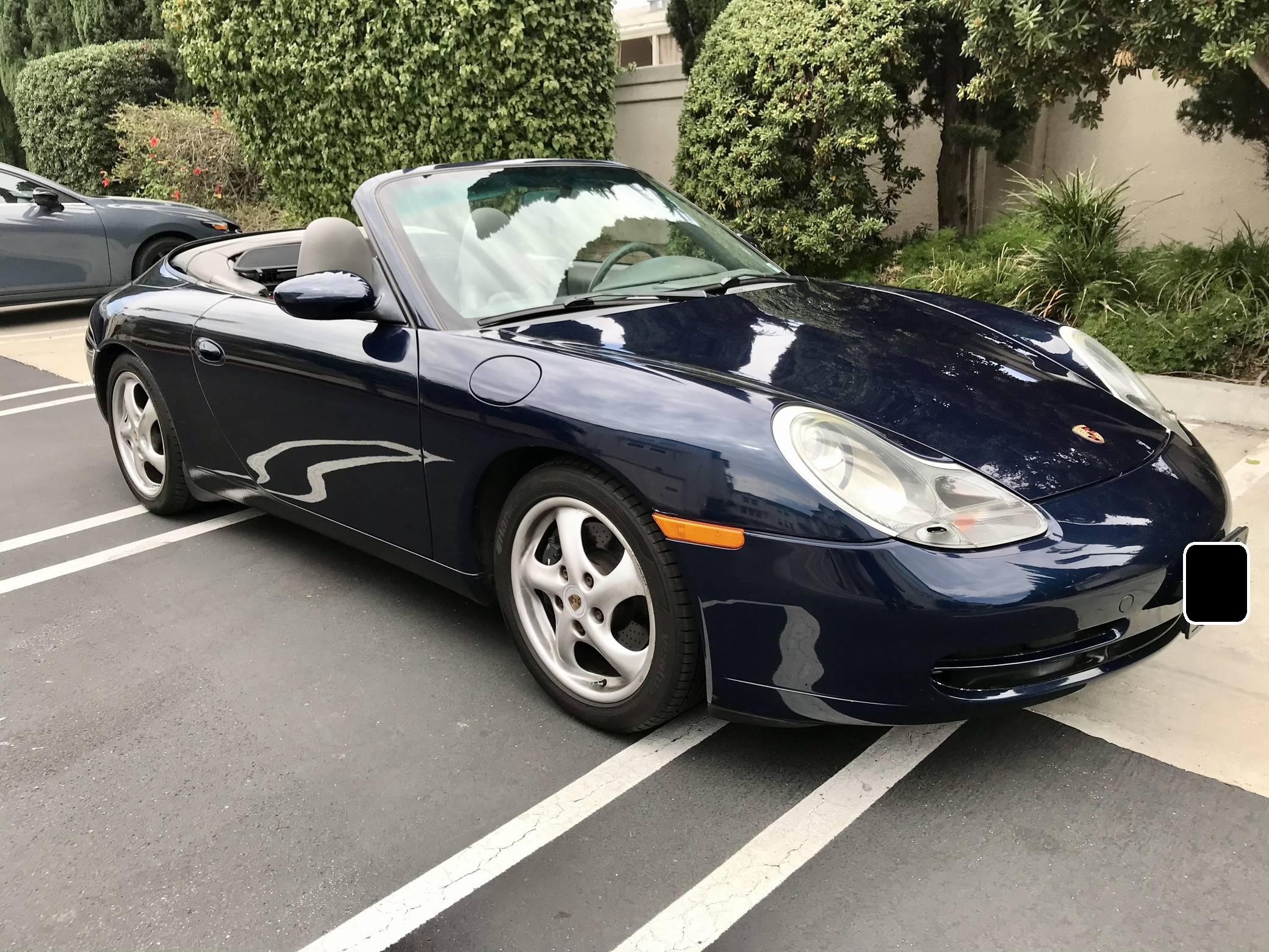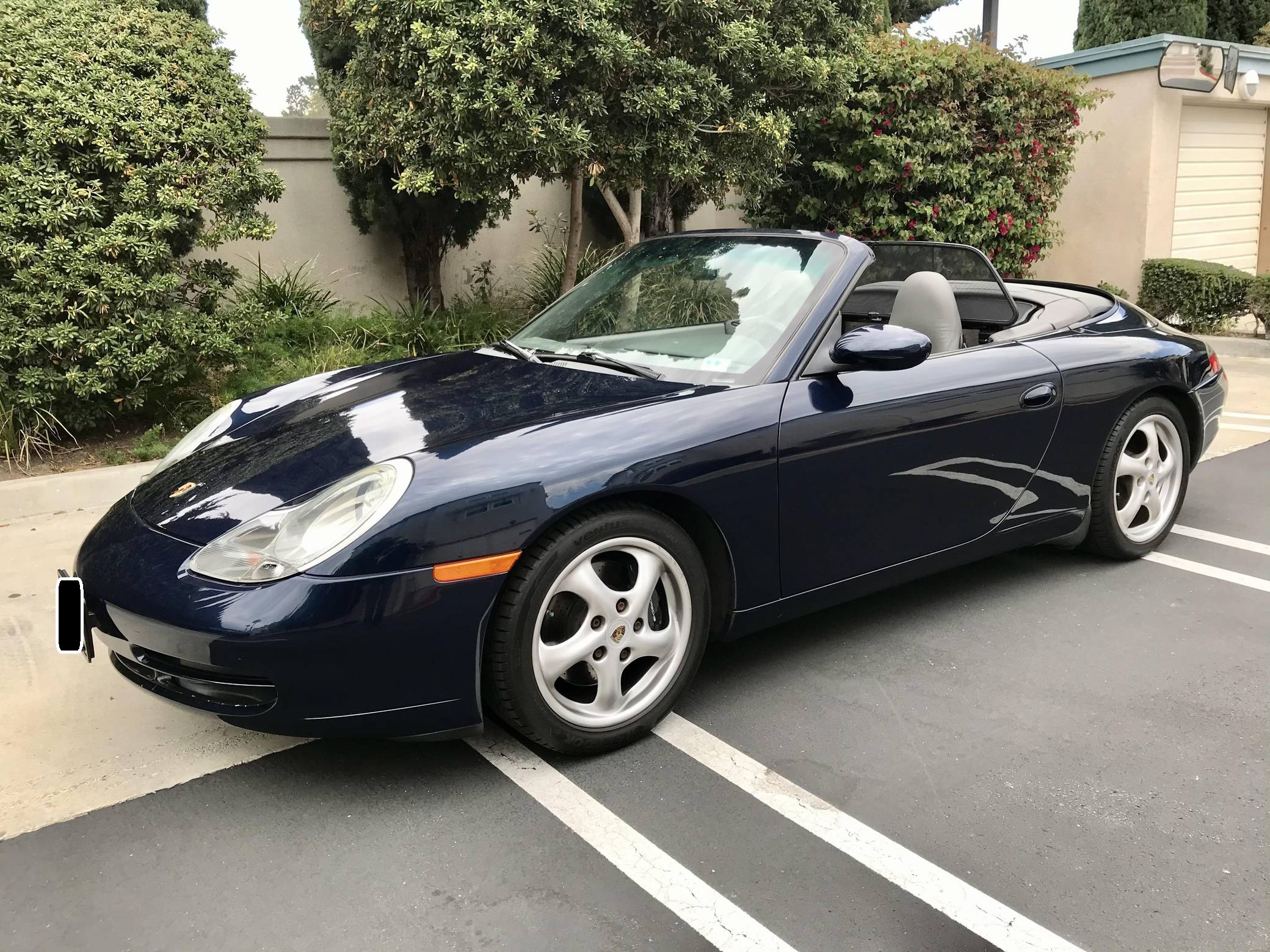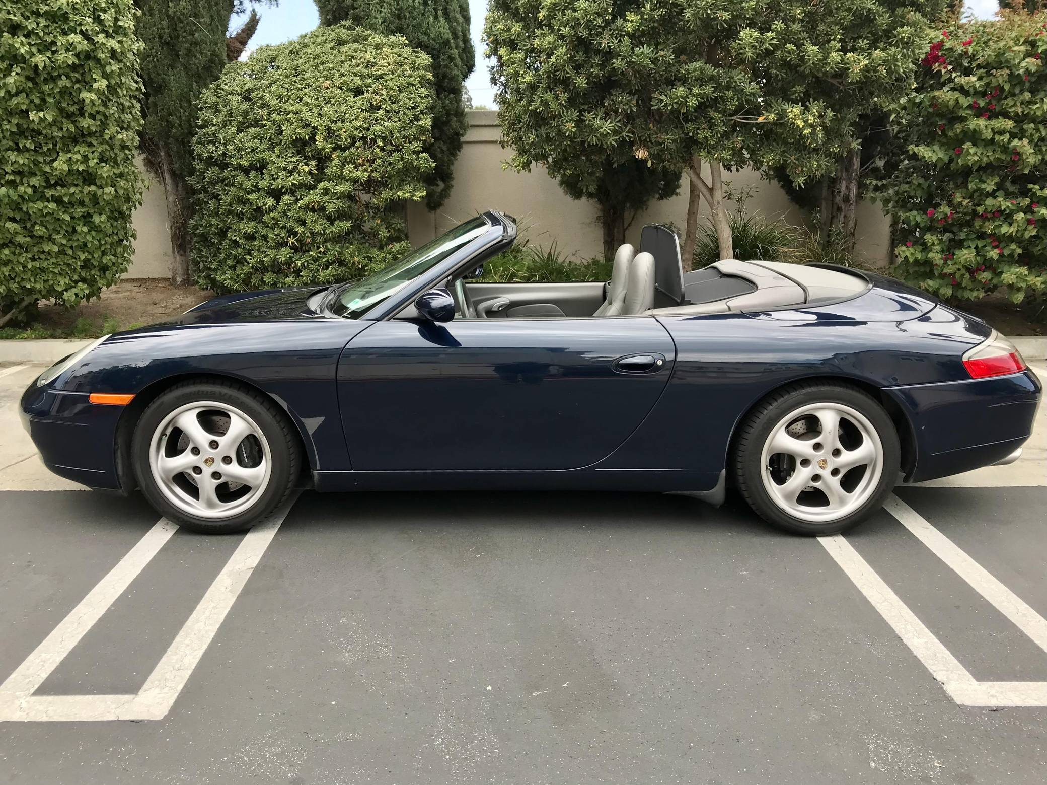 2000 Porsche 911 Carrera Convertible, finished in Ocean Blue Metallic with a factory color-matched hardtop, a gray soft top, and a Graphite Gray interior. This Porsche is equipped with the desirable 6-speed manual transmission. Factory equipment includes 17-inch alloy wheels, a factory color-matched hard top, a power-retractable soft top, power-adjustable front seats, automatic climate control, and more listed below. The seller reports that the IMS bearing was retrofitted with an LN Engineering bearing in December 2016 at 57,221 miles. The fifth-generation "996" 911 was introduced for the 1999 model year and was the first 911 to be completely redesigned from its predecessors. While its water-cooled engine and distinctive headlights irked some Porsche purists, the 996 is appreciated by enthusiasts for providing an analog driving experience compared to later generations and is considered to be the last "affordable" 911. As a result, the 996 and its unique styling has experienced a recent rise in popularity. Power comes from a 3. 4-liter flat-6, rated at 300 horsepower and 258 lb-ft of torque. Output is sent to the rear wheels via a 6-speed manual transmission.