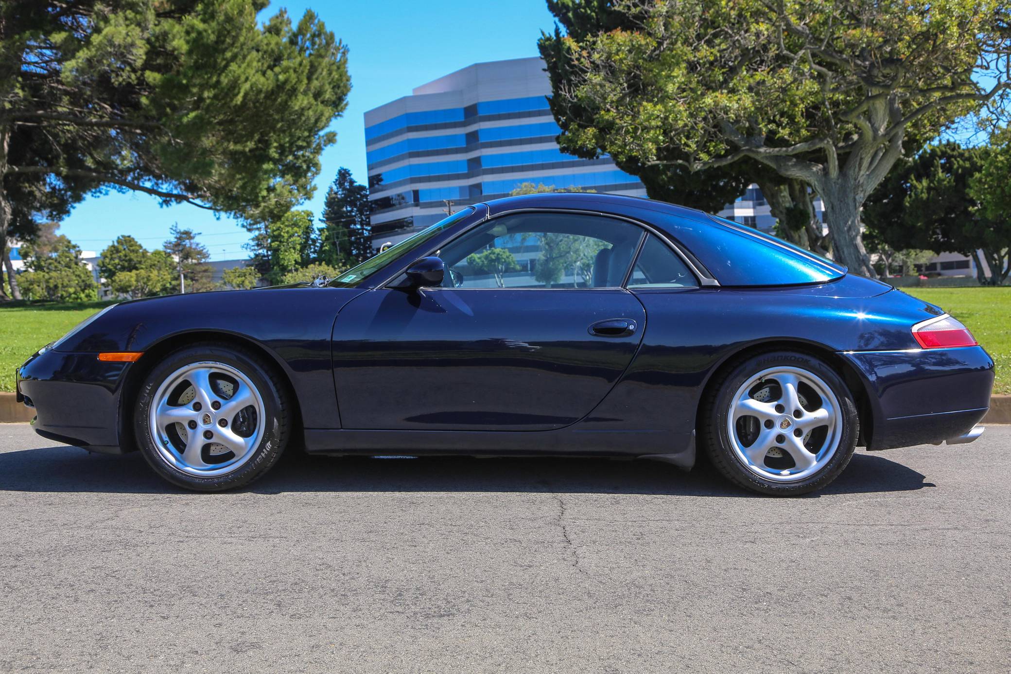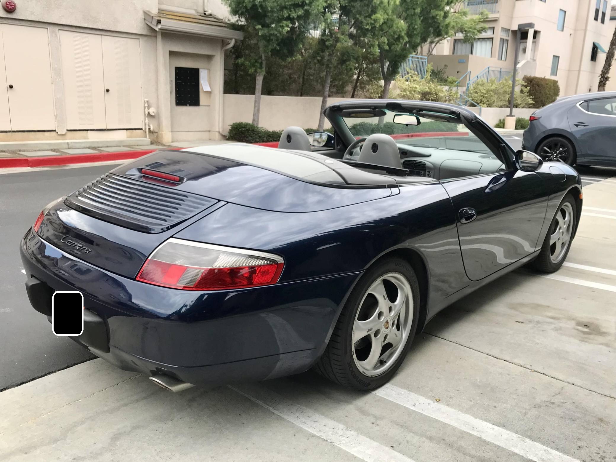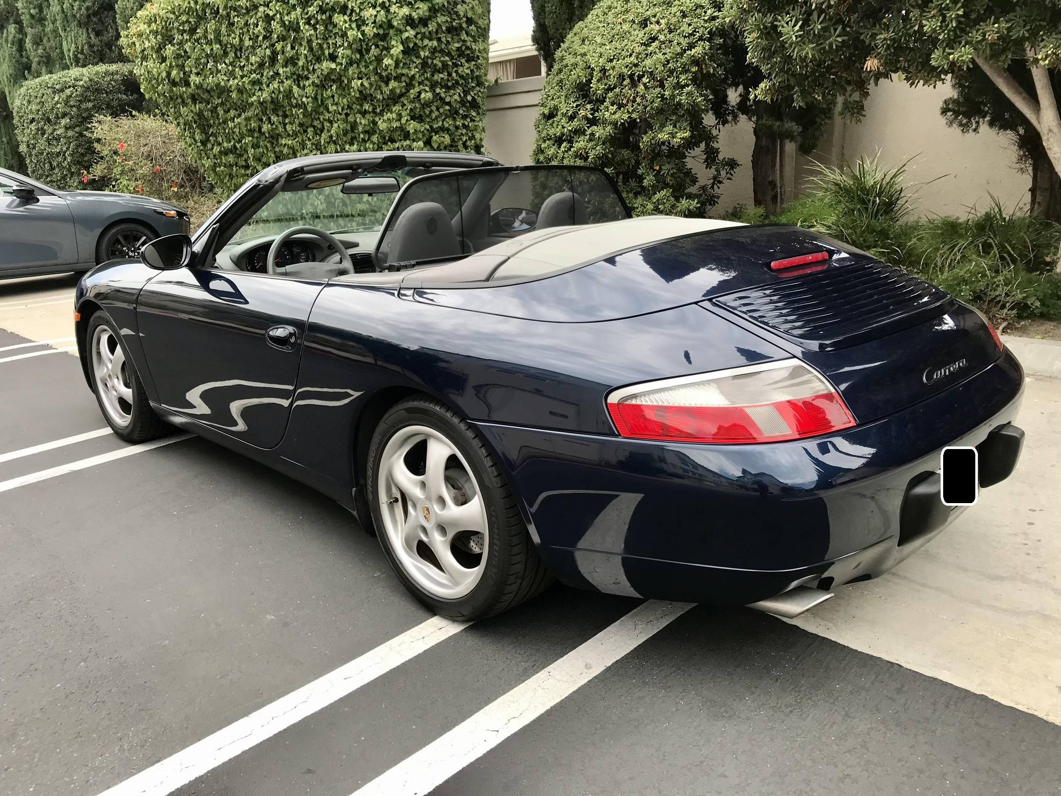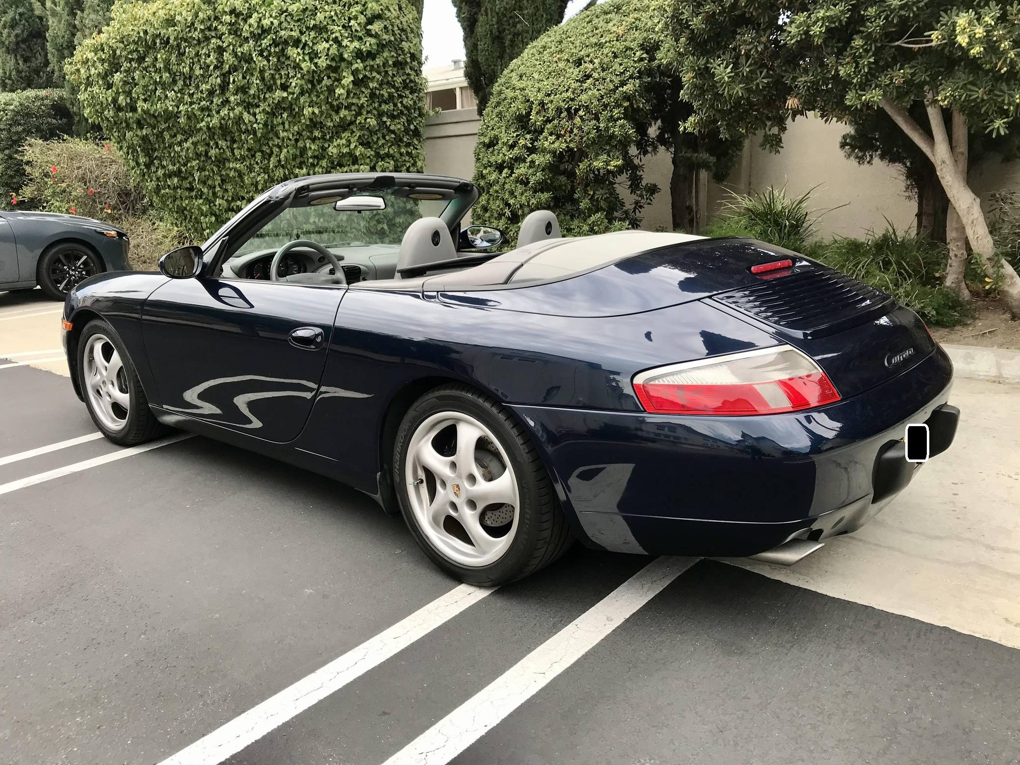 2000 Porsche 911 Carrera Convertible, finished in Ocean Blue Metallic with a factory color-matched hardtop, a gray soft top, and a Graphite Gray interior. This Porsche is equipped with the desirable 6-speed manual transmission. Factory equipment includes 17-inch alloy wheels, a factory color-matched hard top, a power-retractable soft top, power-adjustable front seats, automatic climate control, and more listed below. The seller reports that the IMS bearing was retrofitted with an LN Engineering bearing in December 2016 at 57,221 miles. The fifth-generation "996" 911 was introduced for the 1999 model year and was the first 911 to be completely redesigned from its predecessors. While its water-cooled engine and distinctive headlights irked some Porsche purists, the 996 is appreciated by enthusiasts for providing an analog driving experience compared to later generations and is considered to be the last "affordable" 911. As a result, the 996 and its unique styling has experienced a recent rise in popularity. Power comes from a 3. 4-liter flat-6, rated at 300 horsepower and 258 lb-ft of torque. Output is sent to the rear wheels via a 6-speed manual transmission.