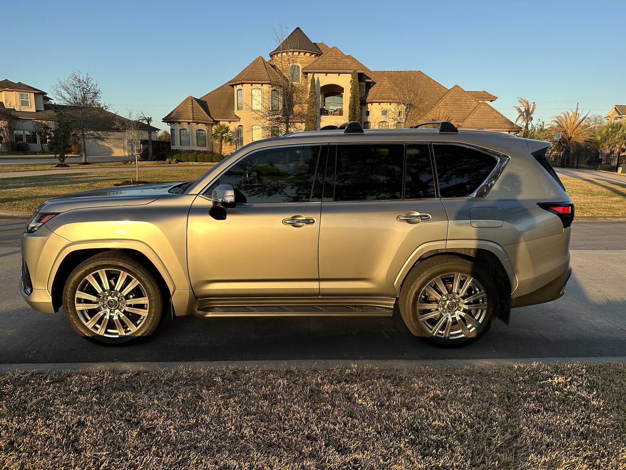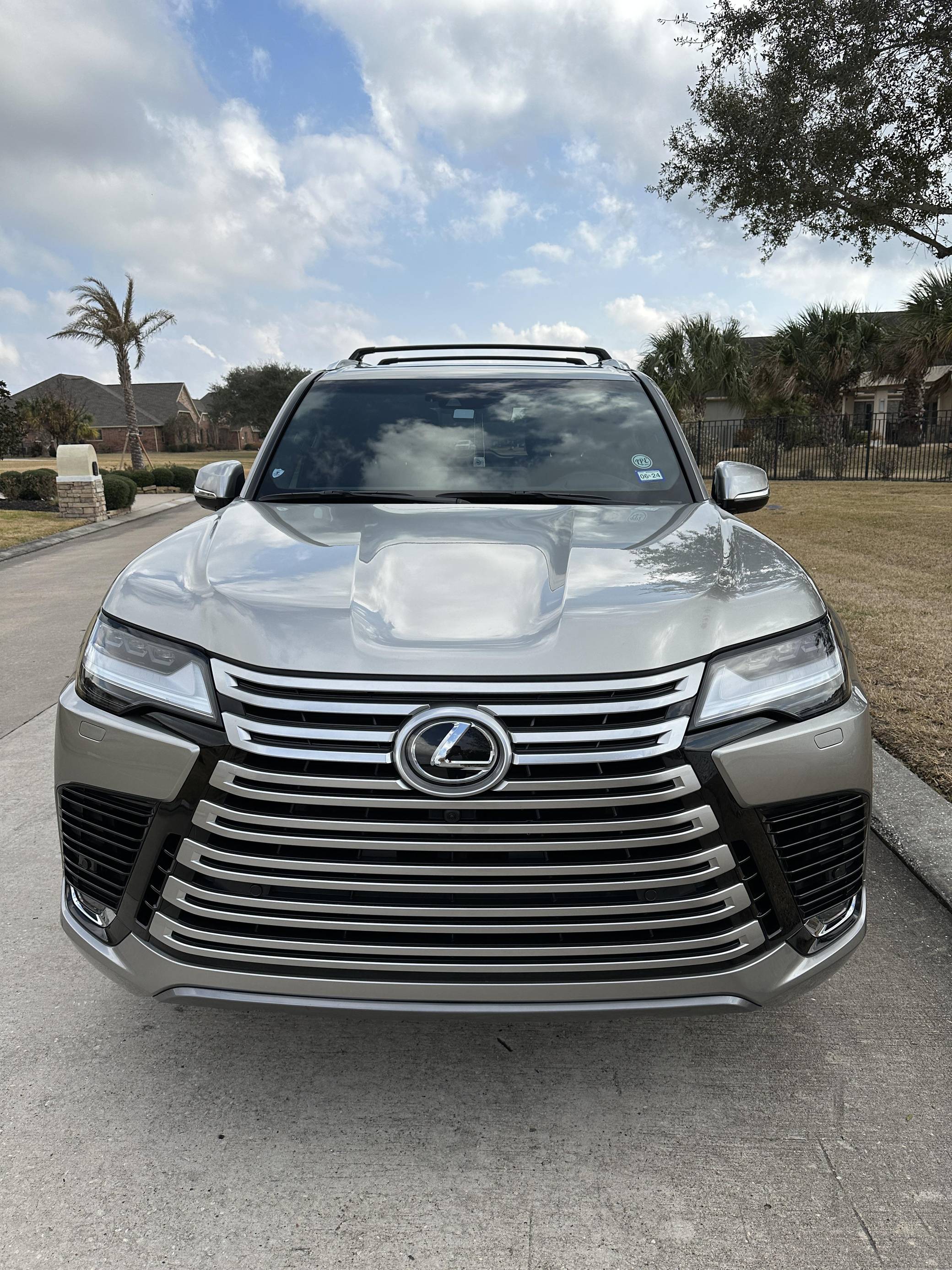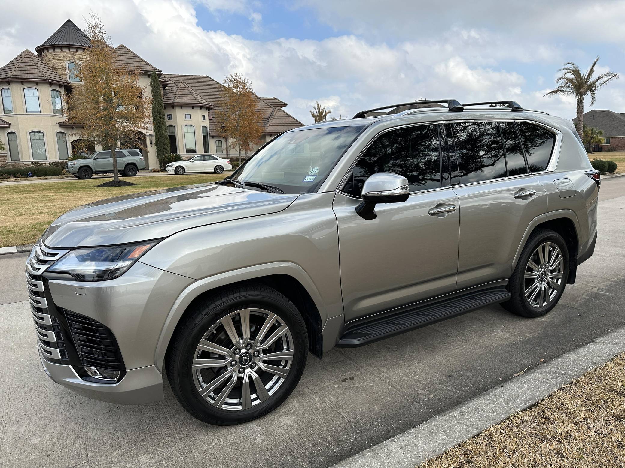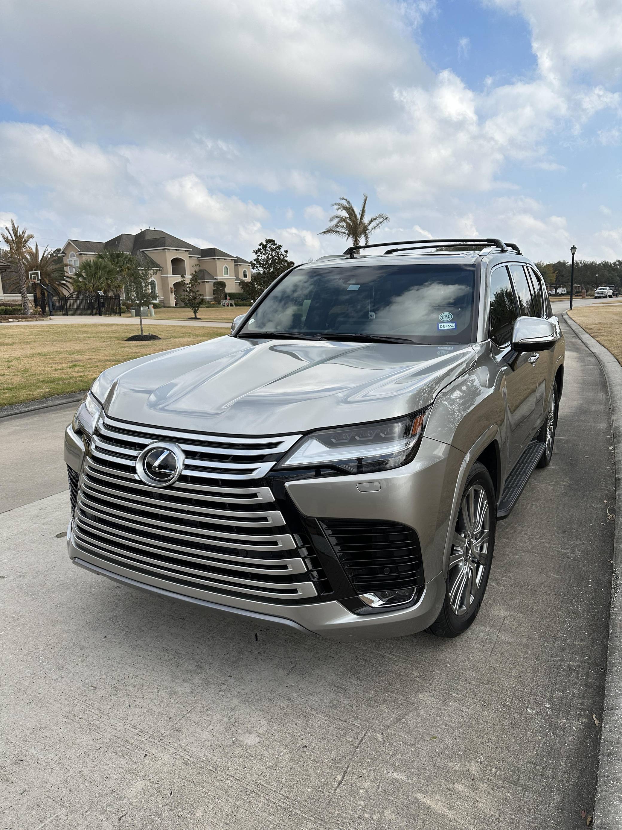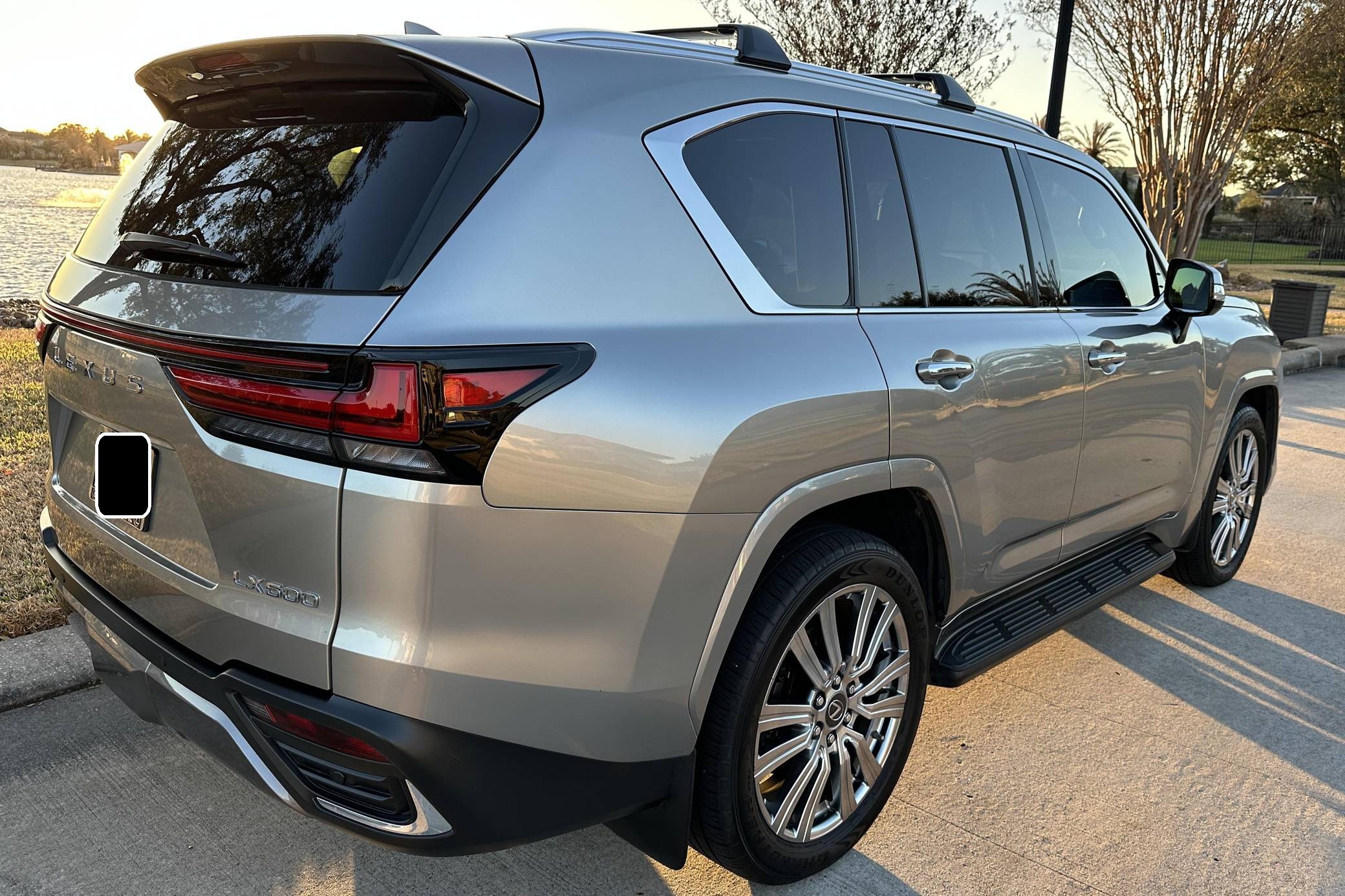 THIS… is a 2022 Lexus LX 600 Ultra Luxury, finished in Atomic Silver with a black interior. Modifications reported by the seller are limited to ceramic tinted windows. New for 2022, the fourth-generation Lexus LX is the only variant of the J300-generation Toyota Land Cruiser that will be sold in the United States. Its evolutionary exterior design hides significant interior updates (especially in terms of comfort and technology), and Lexus replaced the last-generation model's V8 with a twin-turbocharged V6. The LX carries on with body-on-frame construction and four-wheel drive. Power comes from a 3. 5-liter twin-turbocharged V6, rated at 409 horsepower and 479 lb-ft of torque. Output is sent to all four wheels via a 10-speed automatic transmission.