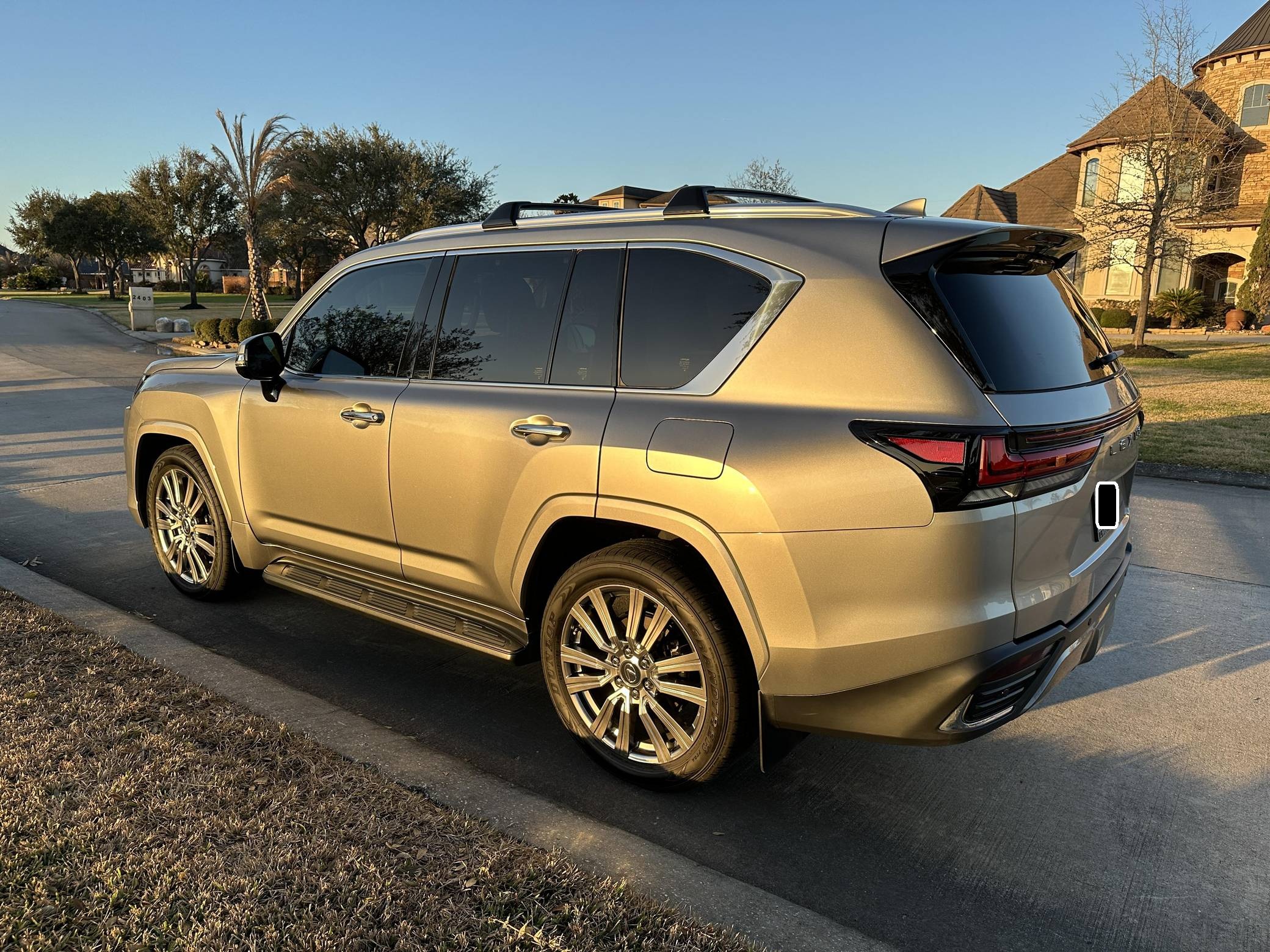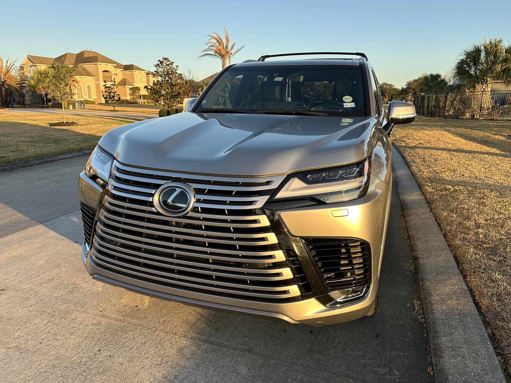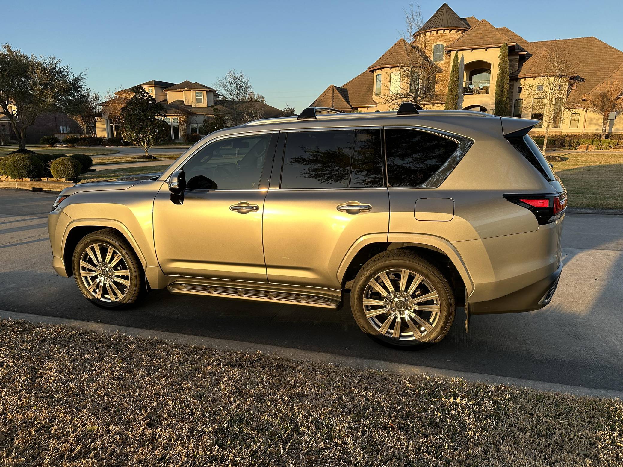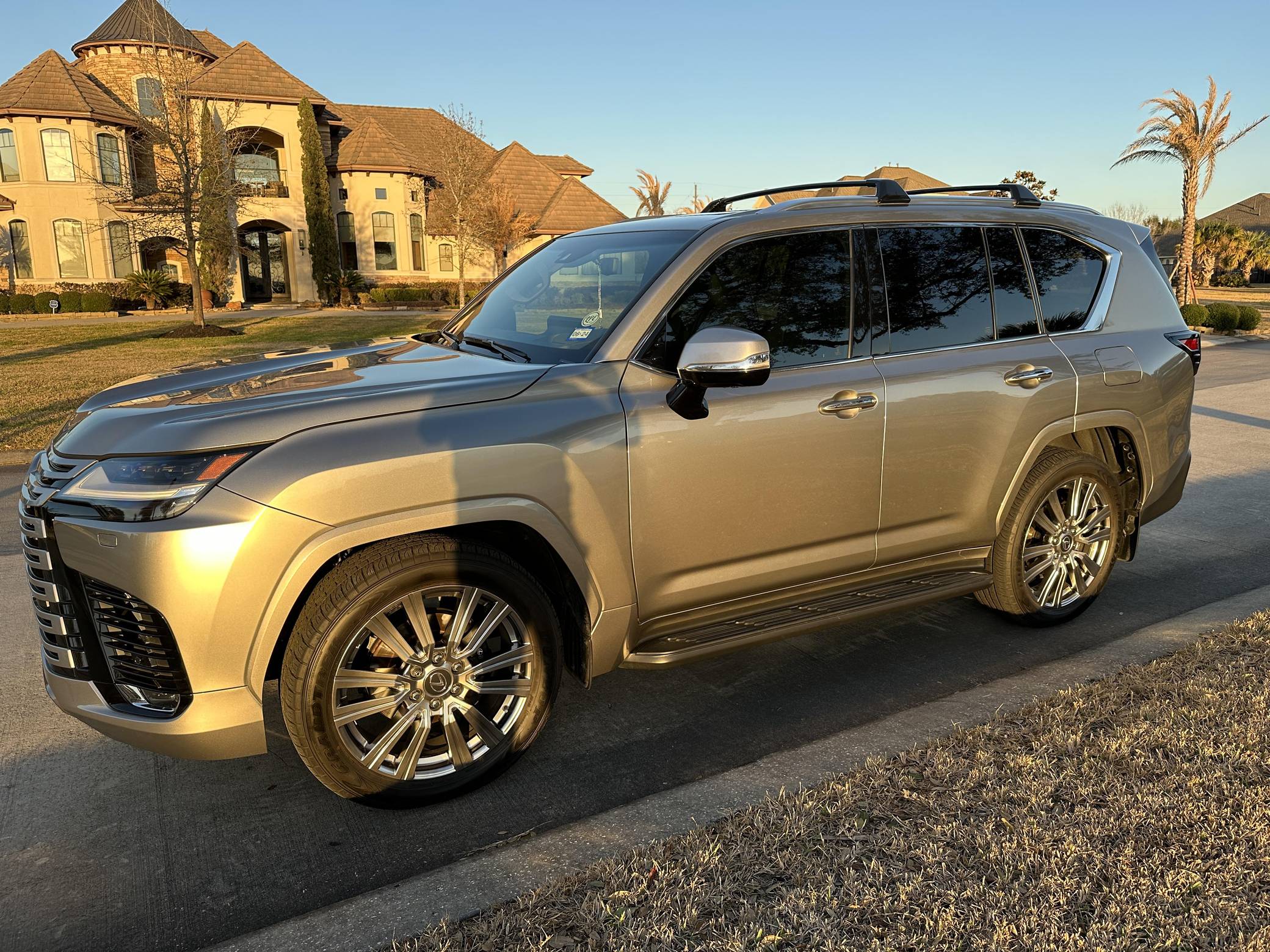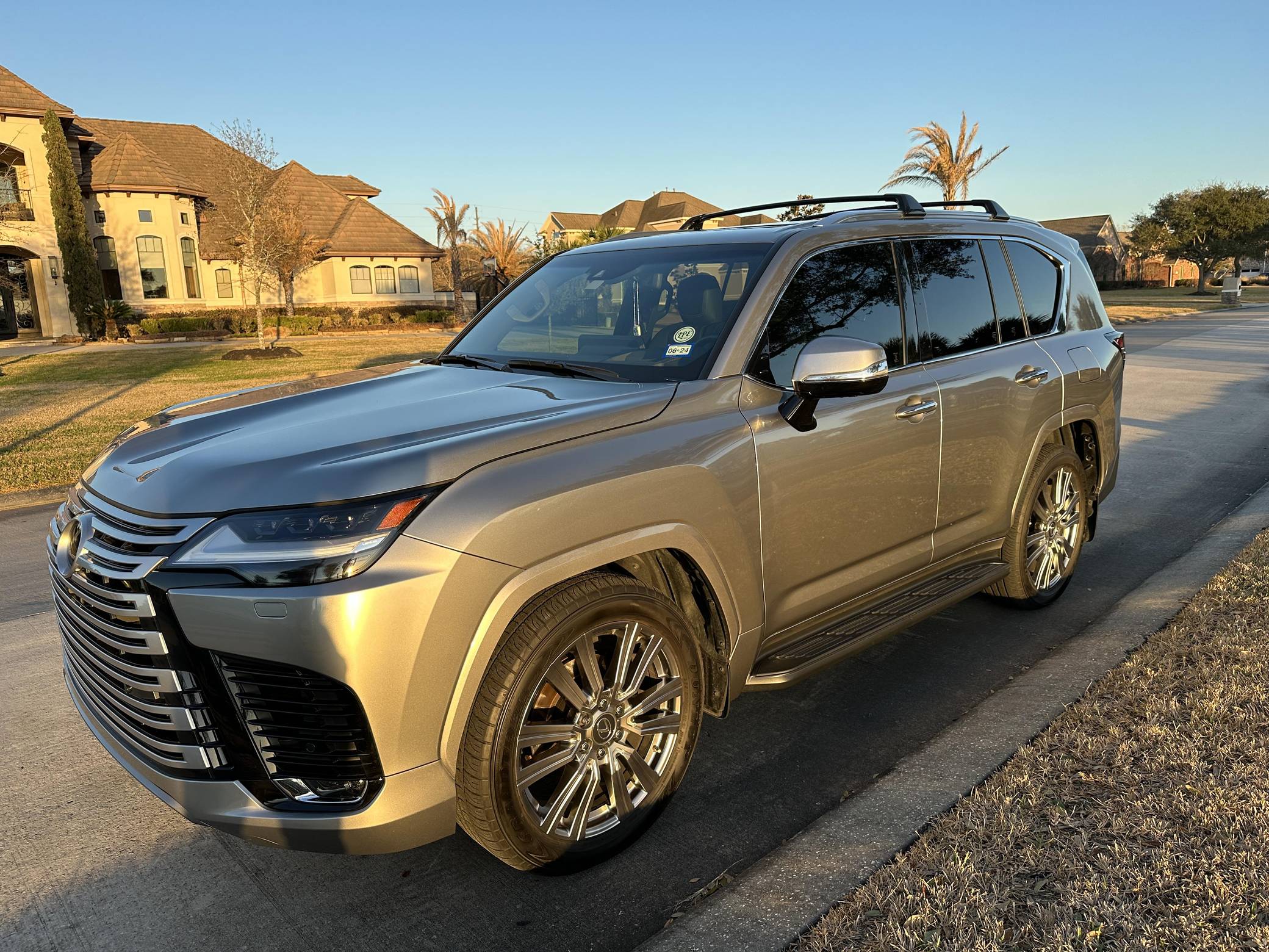 THIS… is a 2022 Lexus LX 600 Ultra Luxury, finished in Atomic Silver with a black interior. Modifications reported by the seller are limited to ceramic tinted windows. New for 2022, the fourth-generation Lexus LX is the only variant of the J300-generation Toyota Land Cruiser that will be sold in the United States. Its evolutionary exterior design hides significant interior updates (especially in terms of comfort and technology), and Lexus replaced the last-generation model's V8 with a twin-turbocharged V6. The LX carries on with body-on-frame construction and four-wheel drive. Power comes from a 3. 5-liter twin-turbocharged V6, rated at 409 horsepower and 479 lb-ft of torque. Output is sent to all four wheels via a 10-speed automatic transmission.