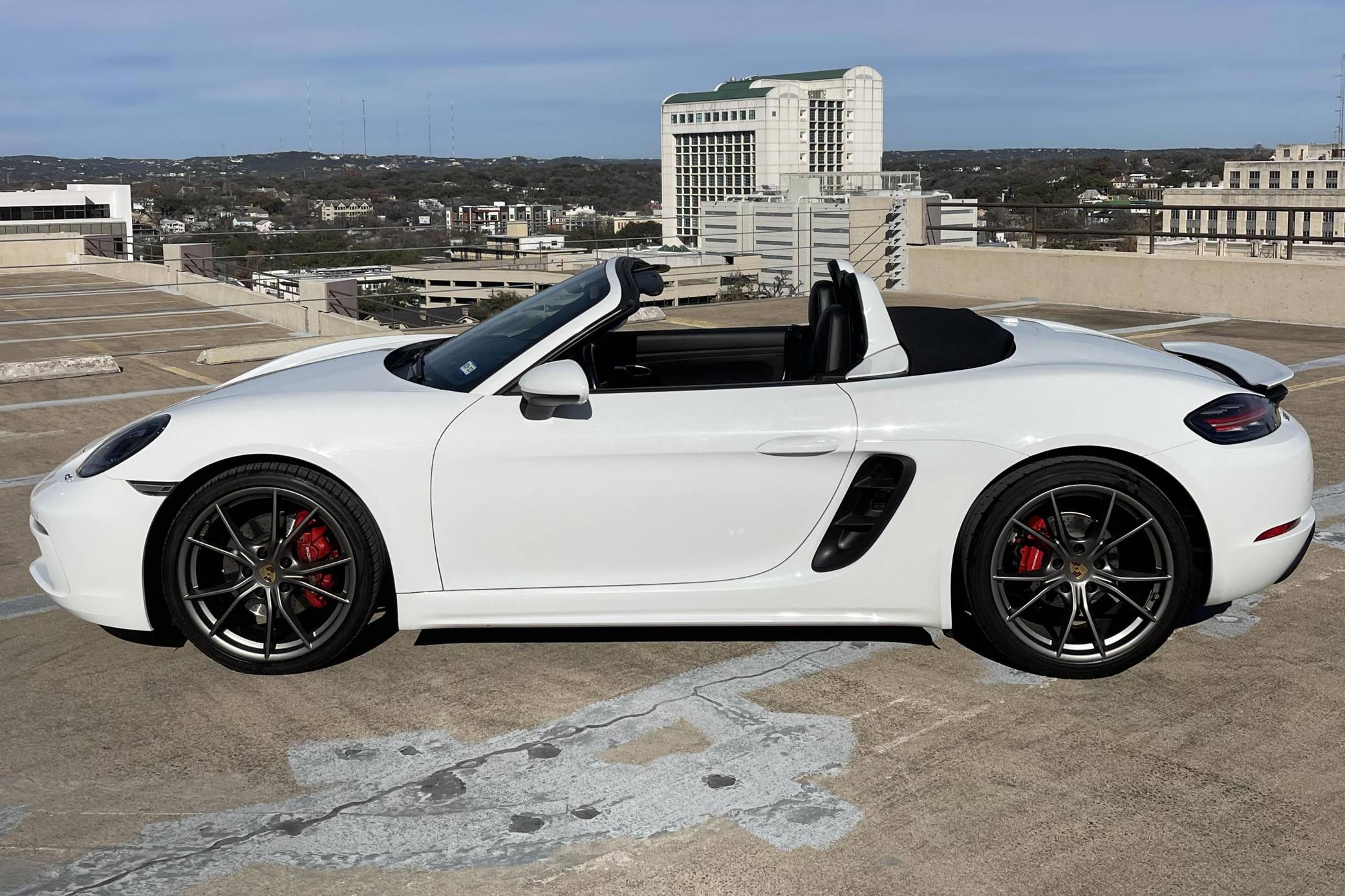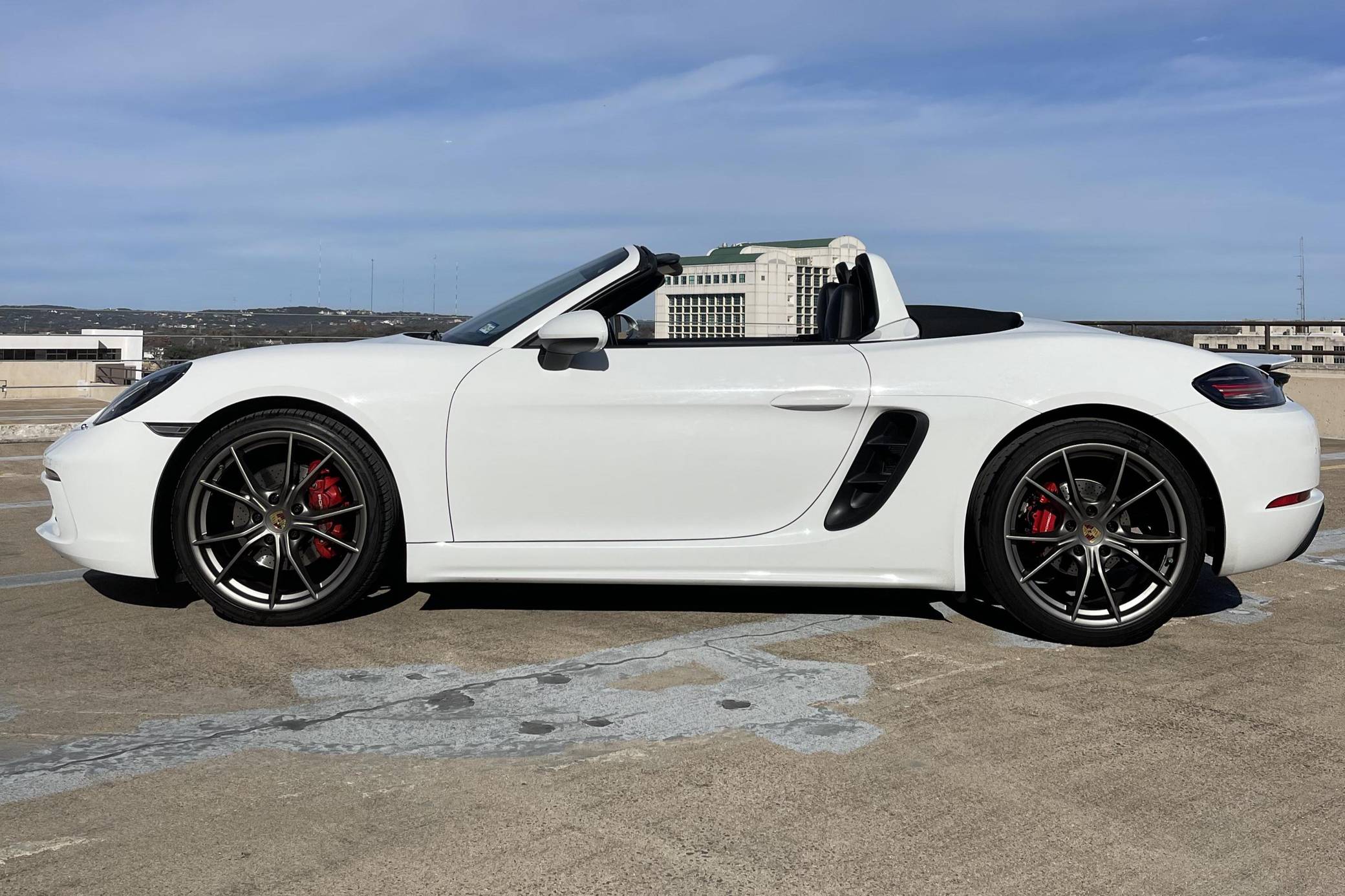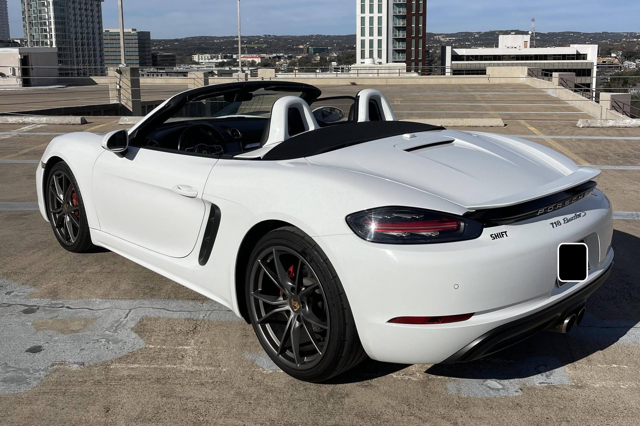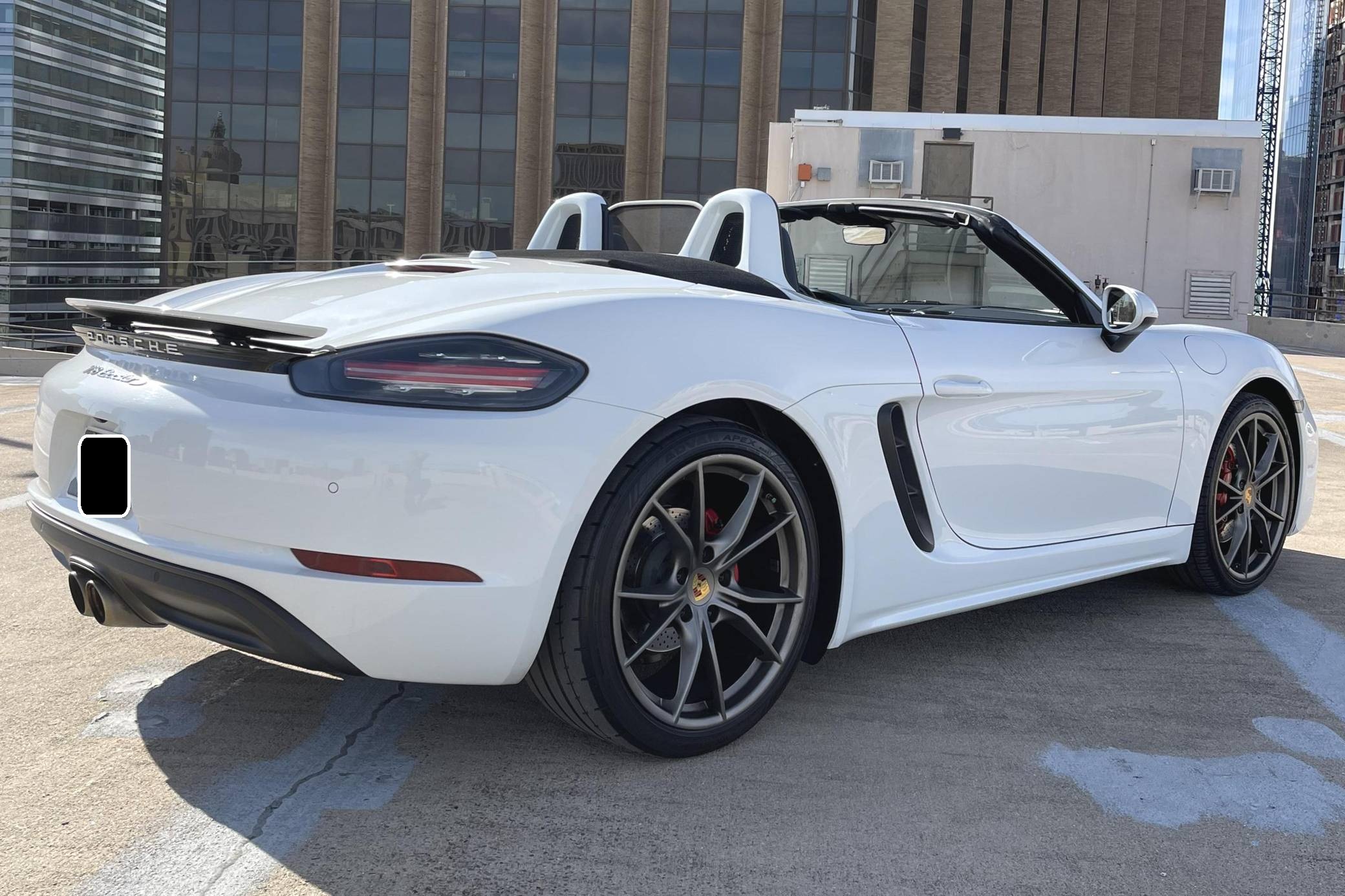 THIS… is a 2017 Porsche 718 Boxster S, finished in white with a black interior. A build sheet is provided in the photo gallery, and a partial list of notable equipment includes the Premium Package Plus, 20-inch Platinum Satin-painted Carrera S wheels, a power-operated soft top, leather upholstery, a Bose surround sound system, a navigation system, and more as detailed below. Modifications are limited to clear side marker lights. The "982" generation 718 Boxster/Cayman debuted for the 2017 model year as an evolution of Porsche's entry-level sports cars, with the "718" designation paying homage to Porsche's 718 race cars from the 1950s. The model's powerplant was updated with a turbocharged 4-cylinder engine, and the result was a more powerful and more efficient car than its predecessor. Power comes from a 2. 5-liter turbocharged flat-4, rated at 350 horsepower and 309 lb-ft of torque. Output is sent to the rear wheels via a 7-speed Porsche Doppelkupplung (PDK) automatic transmission.