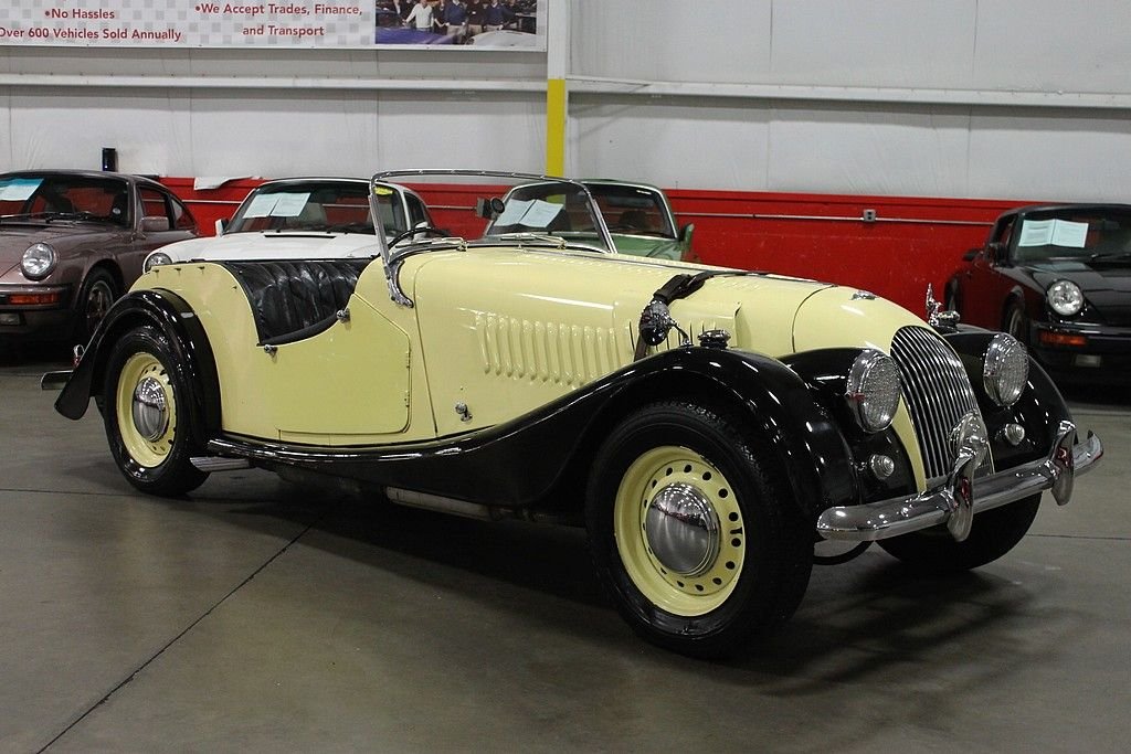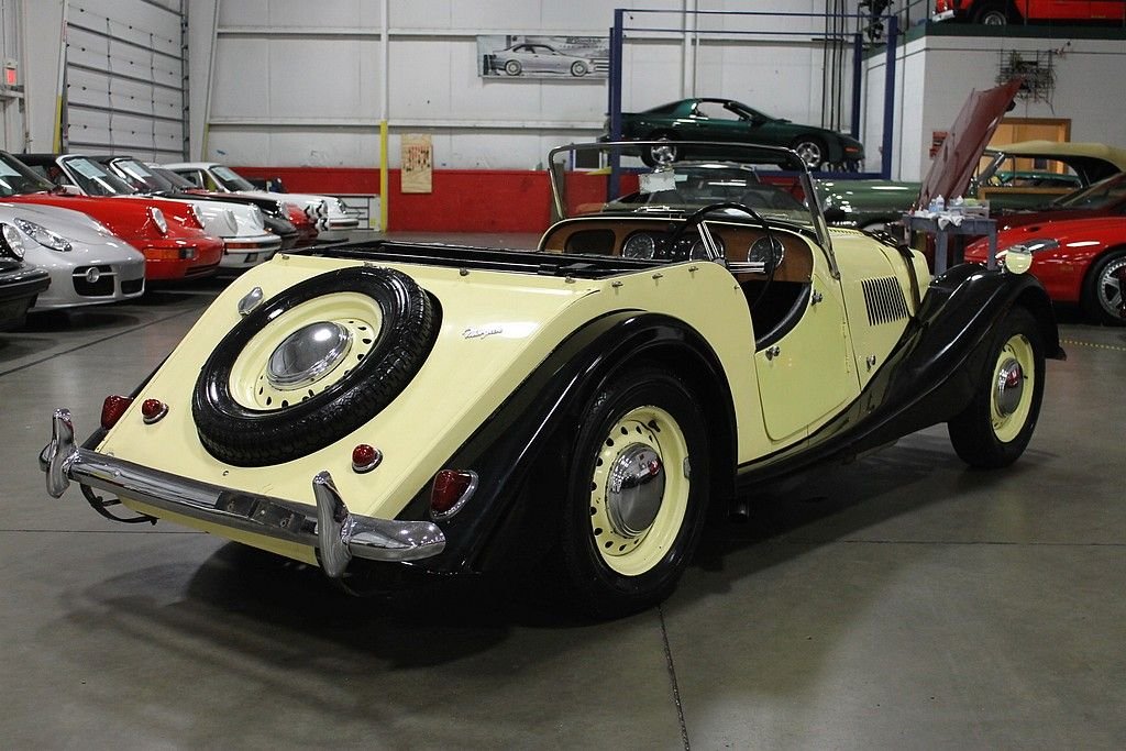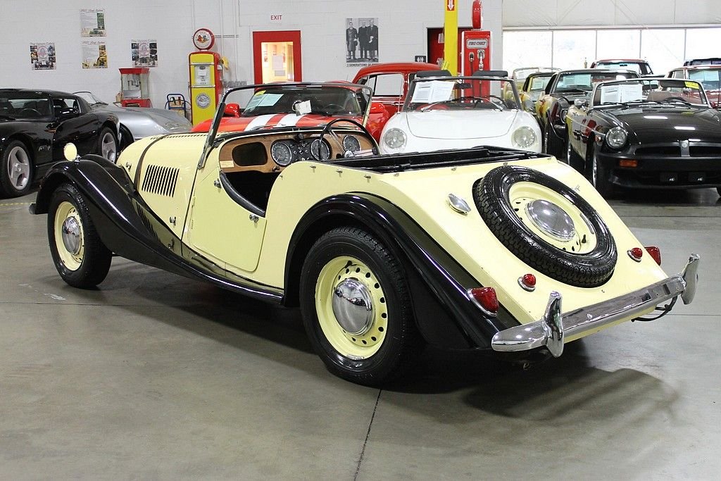 Morgan Motor Company is a British auto manufacturer who got their start producing quick, fun to drive 3-wheeled roadsters. After WWII , Morgan introduced the Plus 4 as a longer and more powerful roadster. Starting in 1962, Morgan's used the drivetrain borrowed from the Triumph TR4 increasing displacement to 2138cc. Many Morgan Plus 4's were used in racing. This one proudly displays a plaque from the Chester Festival Cavalcade of Motoring in 1967. It was imported to Michigan in 1972 and has only had the one American owner since. This car has always been well stored and professionally maintained. It features a new leather strap, yellow paint, dual Stromberg carburetors, and fiberglass fenders. This is a right hand driver, 2138cc 2.1L Straight 4 cylinder engine, with a 4-speed manual transmission. These Morgan's are classics that give the driver the fine British open air motoring experience with great performance to back it up. This is truly a rare find in the United States.