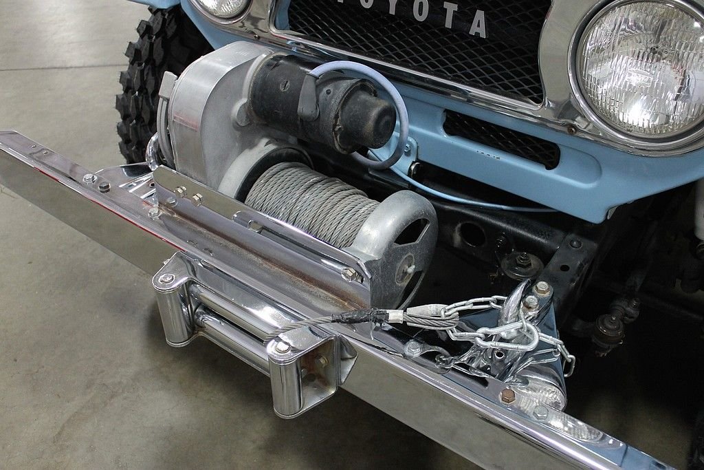 We are proud to present this extremely nice, well preserved and mostly original Toyota FJ40 for your consideration. This truck is a true time capsule from the '70's with a rust free body and retains the classic style as when it was new. It was delivered new Roy Baty out of New Mexico by Desert Motor Company in Las Cruces, New Mexico on March 27th 1971. Car retains the original service log from the first owner that documents, oil changes, tire service, fuel, and anything that he did to it for the first 16years. The truck is finished in Capri Blue which was the original color and received a fresh repaint in 2006. The truck has had extensive work done on it over the past few years and runs and drives very nicely. New front and rear Rancho Shocks were added just recently along with brakes serviced and new fuel pump and fuel tank reconditioned. New battery was just installed with new negative cable. Brand new Dunlop Mud Rover tires were just mounted to brand new factory correct wheels with new center caps. Driver and passenger door seals were installed as well to give the doors a solid fit and minimize wind noise. Plenty of style points are noticeable on this southern vehicle. Includes; PTO Winch, Chrome Front Bumper, Dual Rear Gas Tank Holders, Tow Package, Roll Bar with factory gun rack, Rear Dual Jump Seats, Factory Manuals, Factory Jack, Full set of Tools and much more. With prices climbing rapidly on vintage 4x4's this one should be on your list for purchase. Rust free, unaltered FJ's are either significant projects or priced so high that they are unattainable for many people. This is a great bargain at a fair price.