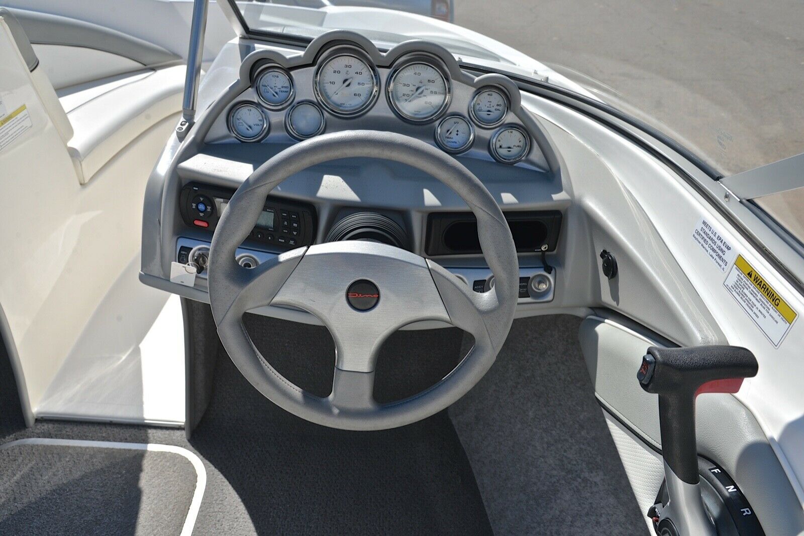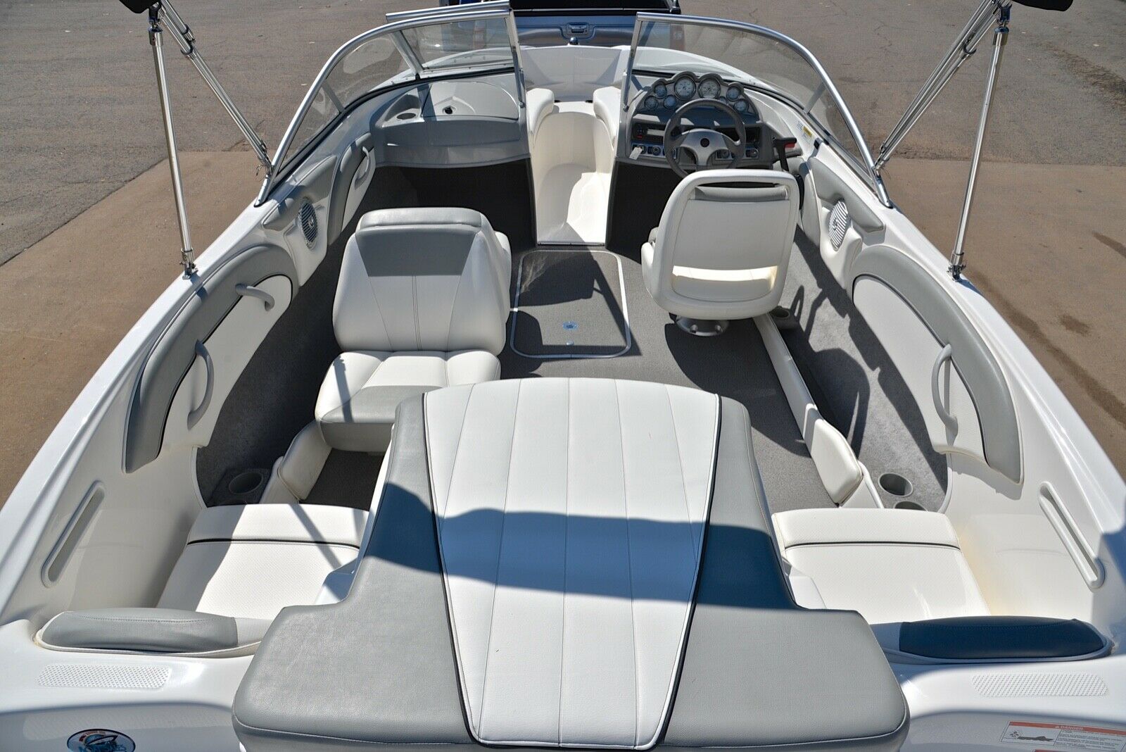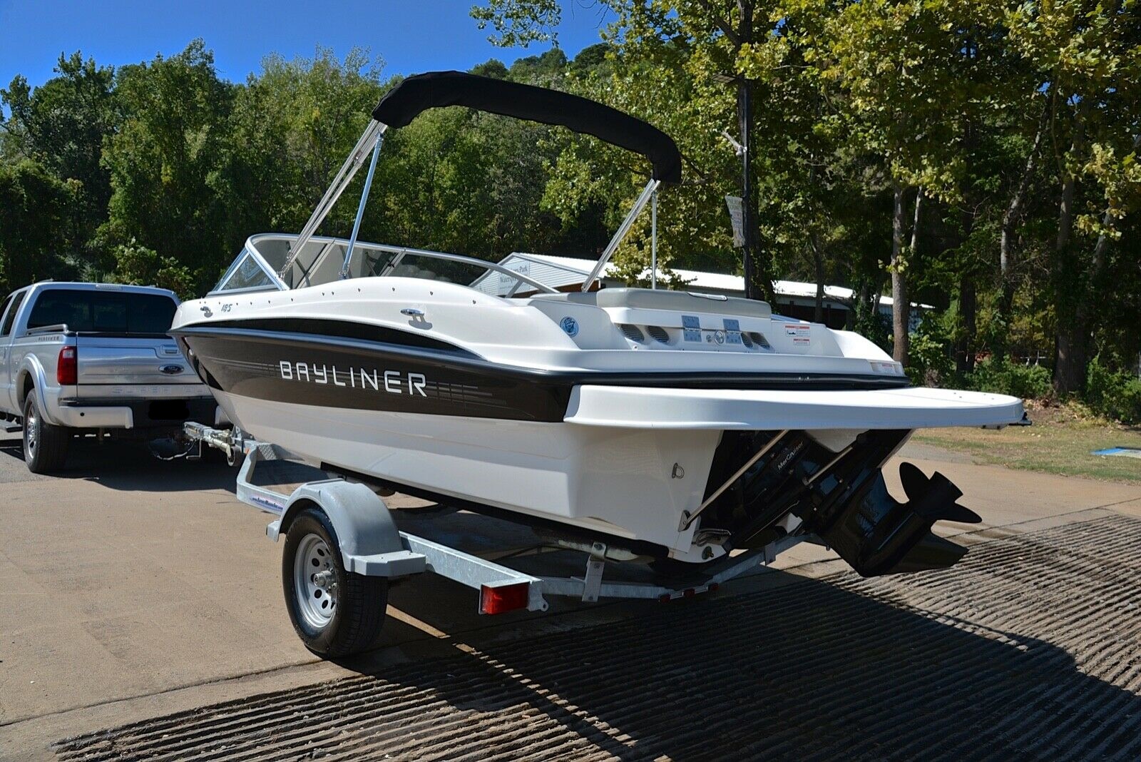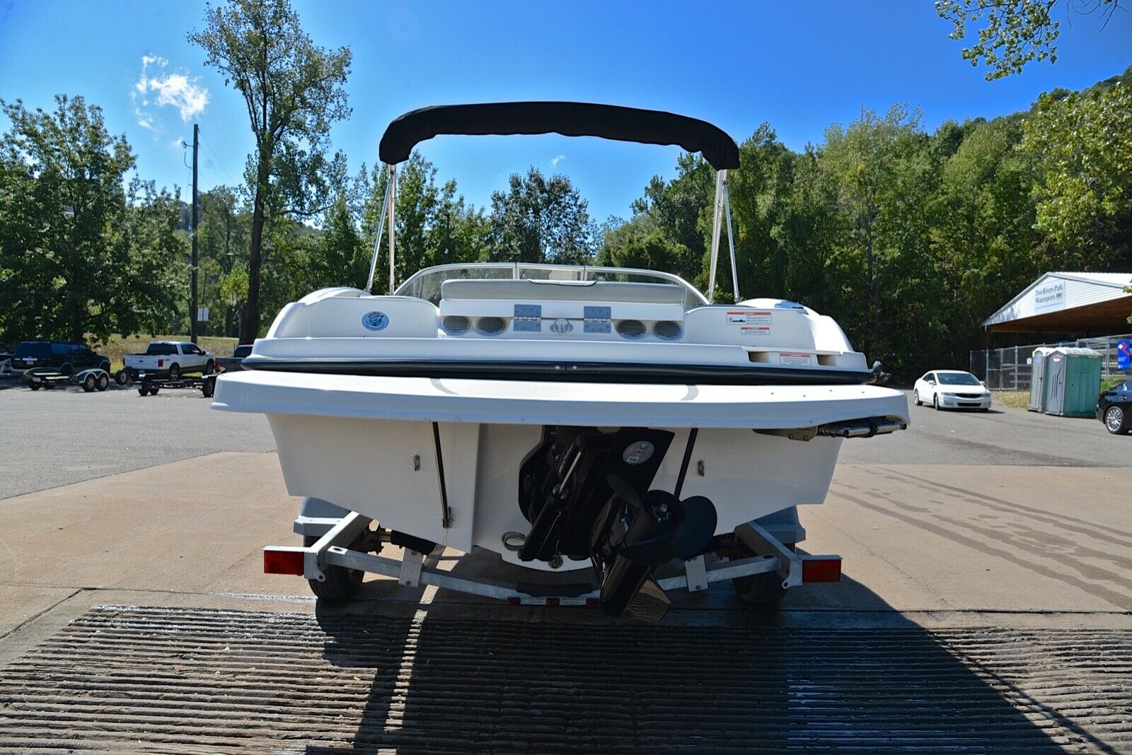 This boat is in excellent condition with minimal signs of use. The boat has been kept in dry storage. Overall appears to be in excellent condition without any signs of fading or oxidation. The gel coat maintains a very high gloss. There are a few very minor signs of docking. The rub rail is clean. This boat was upgraded to a black-colored hull with a graphics package. The keel is clean with minor signs of beaching. There is an extended swim platform with a boarding ladder. The upholstery shows to be in excellent condition without any rips, stains, or any seams coming apart. The colors are vibrant and the vinyl soft. The carpet is in very good condition without any stains or tears. The dash features upgraded stainless gauges and switches all in excellent condition and fully functional. The gray panel has some mild crackling in the center (very common in this year's model). Dash has a marine stereo with cockpit speakers. There is a premium Bimini top and custom bow and cockpit covers. Everything works accordingly. The engine, lower unit, and 3-Blade Prop are in excellent condition. The custom single axle trailer is in Excellent condition with minimal signs of use. The trailer has a folding tongue for those of you looking to store indoors. There are oversized wheels with Radial tires in good condition. The carpet and bunks are in excellent condition. Bearings were inspected. Lights work. Brakes work. Boat and trailer tow great on the road.