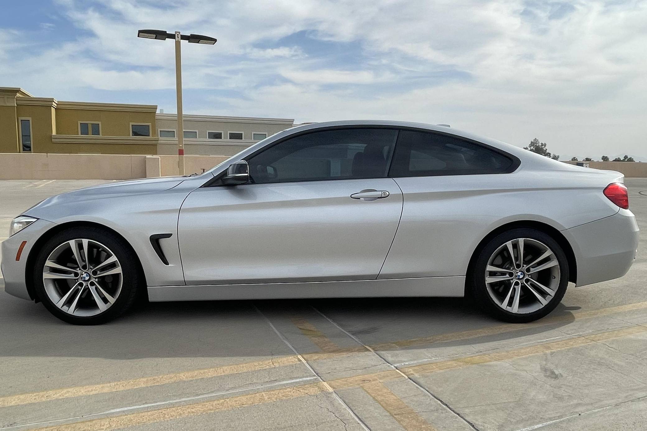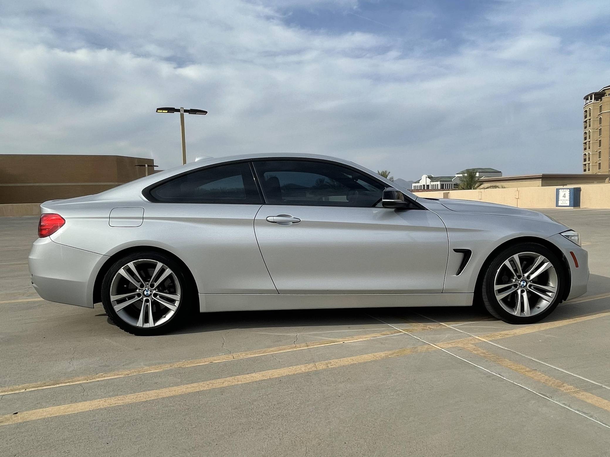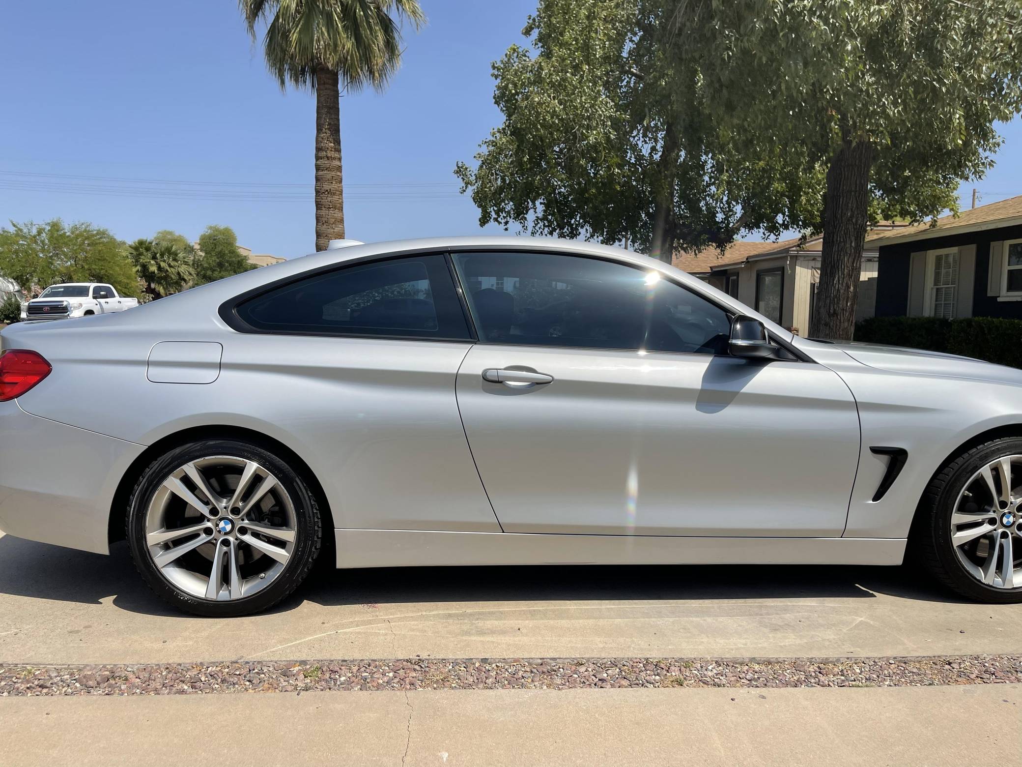 2014 BMW 435i, finished in Glacier Silver Metallic with a Coral Red interior. This 435i features the desirable 6-speed manual transmission. Modifications are limited to ceramic window tint. BMW released the first 4 Series (F32) for the 2014 model year to replace the two-door 3 Series. Turning the coupe into a standalone model allowed engineers to make it lower and wider than the F30-generation 3 Series it was related to while fitting a sportier suspension system. At launch, the range included two models called 428i and 435i, respectively. Power comes from a 3. 0-liter turbocharged straight-6, rated at 300 horsepower and 300 lb-ft of torque. Output is sent to the rear wheels via a 6-speed manual transmission