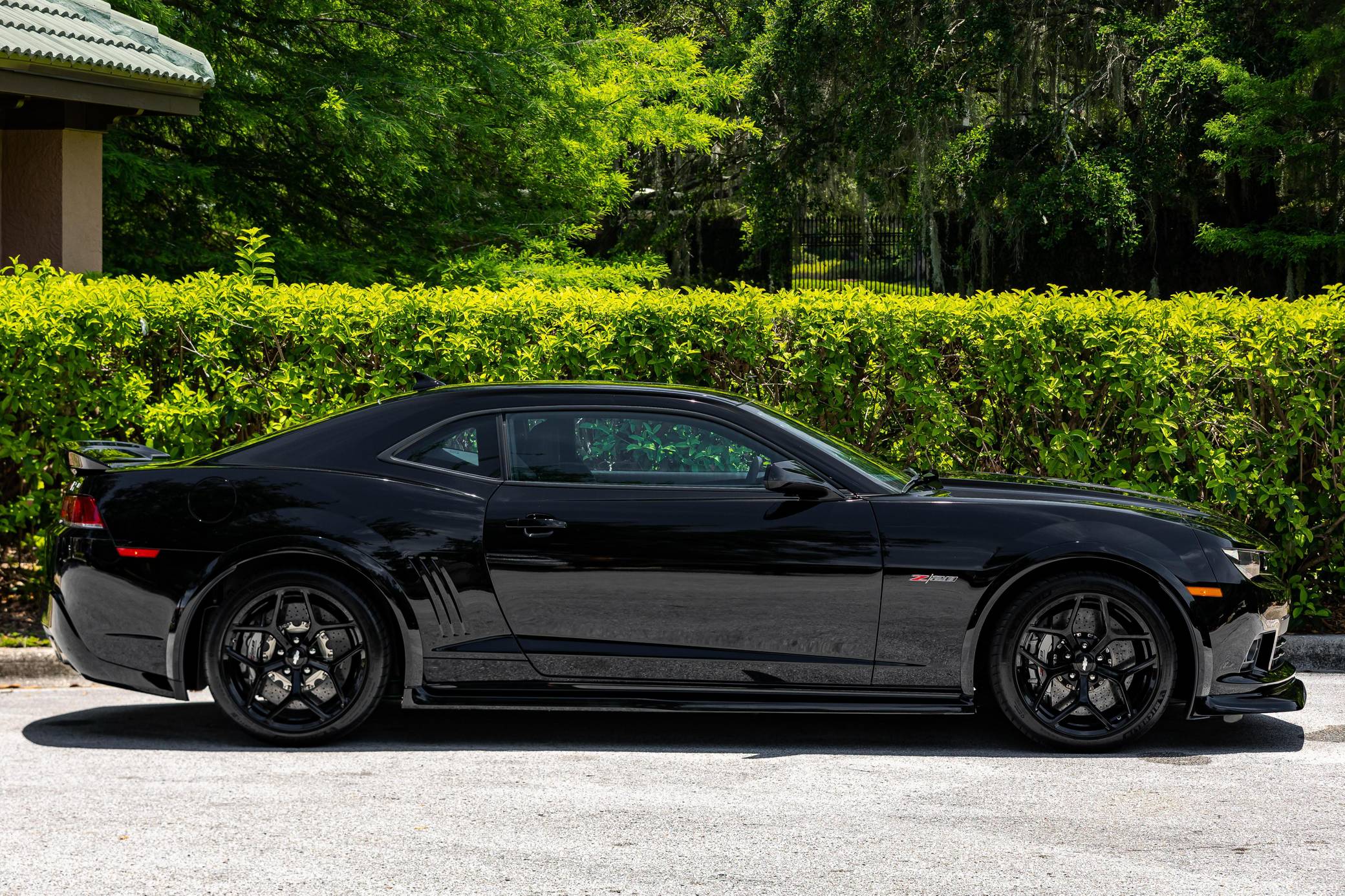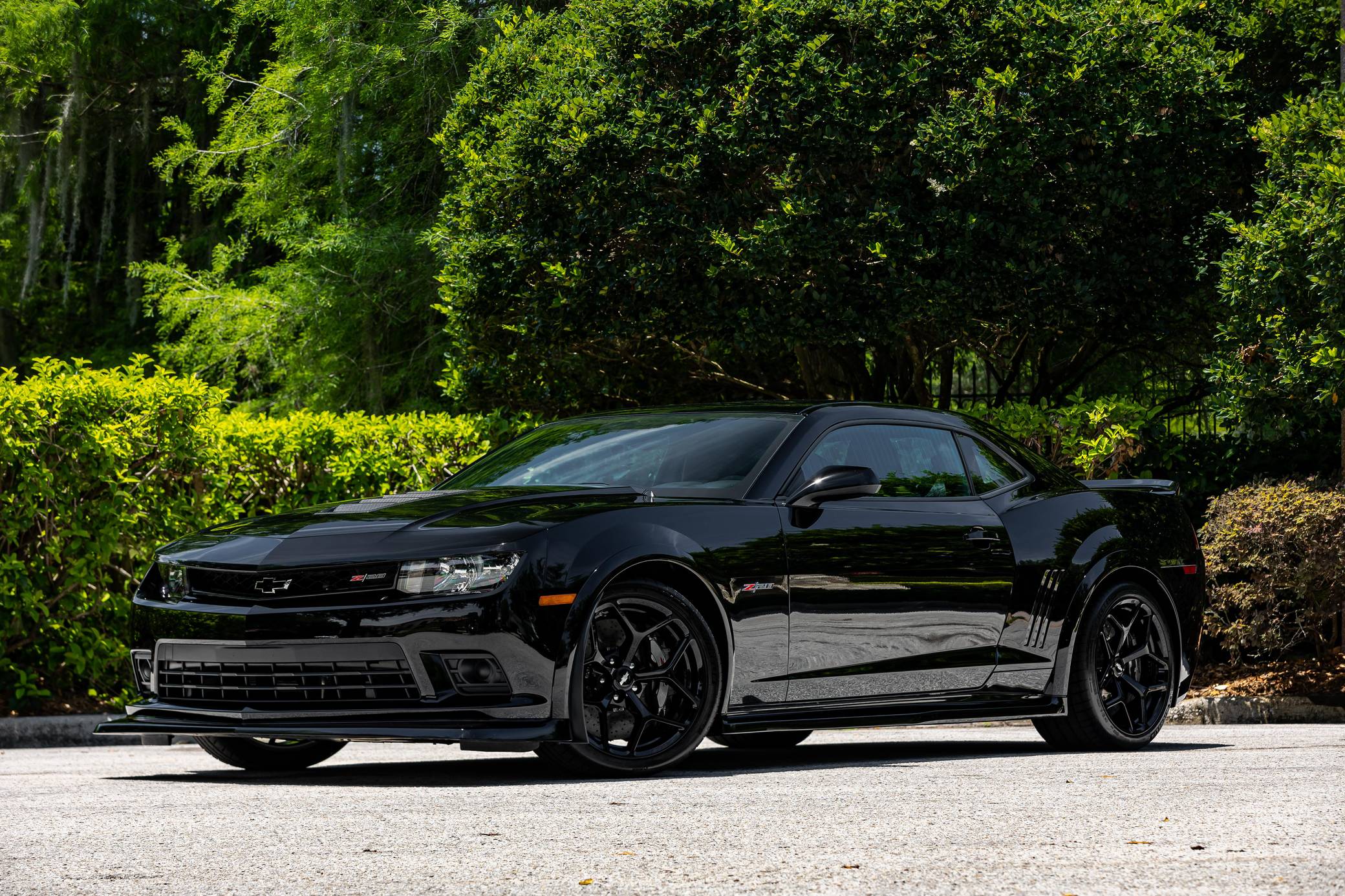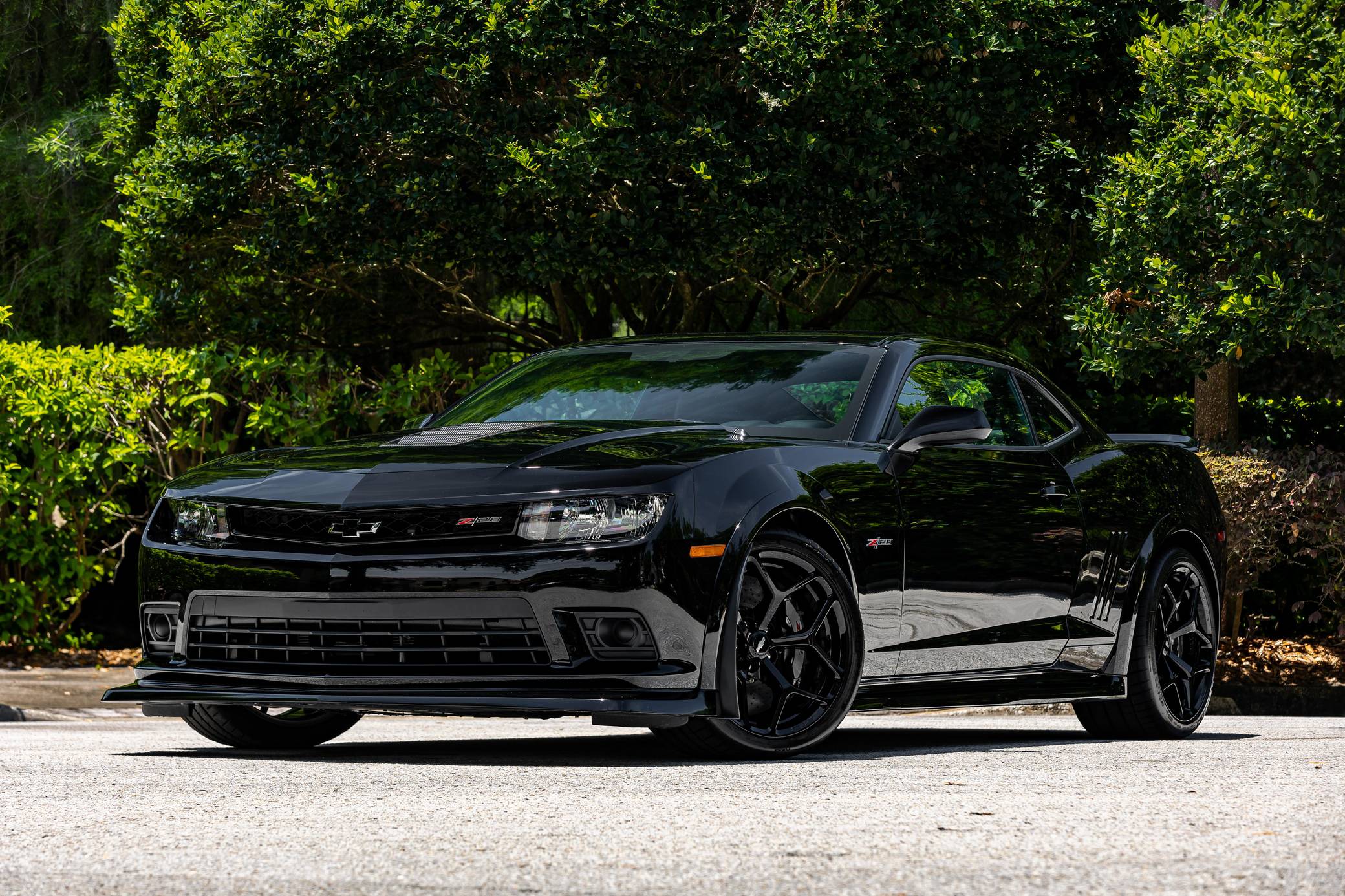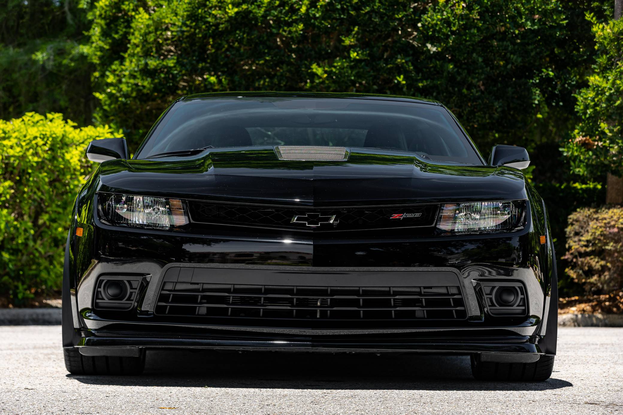 2015 Chevrolet Camaro Z28, finished in black with a black interior. This coupe's odometer displays about 1,800 miles. It's equipped with the Air Conditioning and Audio Package, 19-inch wheels, a rear differential cooler, a Z28-specific body kit, Recaro front seats, and a CD player, among other features. The seller reports no modifications. Launched for 2015, the Z28 was a track-ready evolution of the fifth-generation Camaro. It gained a number of competition-derived parts, including a belly pan that reduces front-end lift, a firmer suspension system, and a massive V8 bolted to a six-speed manual transmission. Chevrolet also made the Z28 lighter by removing some of the sound-deadening material, among other parts, and fitting a thinner rear window. Most historians agree that less than 2,000 units of the Z28 were built. Power comes from a 7. 0-liter "LS7" V8, rated at 505 horsepower and 481 lb-ft of torque. It spins the rear wheels via a 6-speed manual transmission and a limited-slip differential.