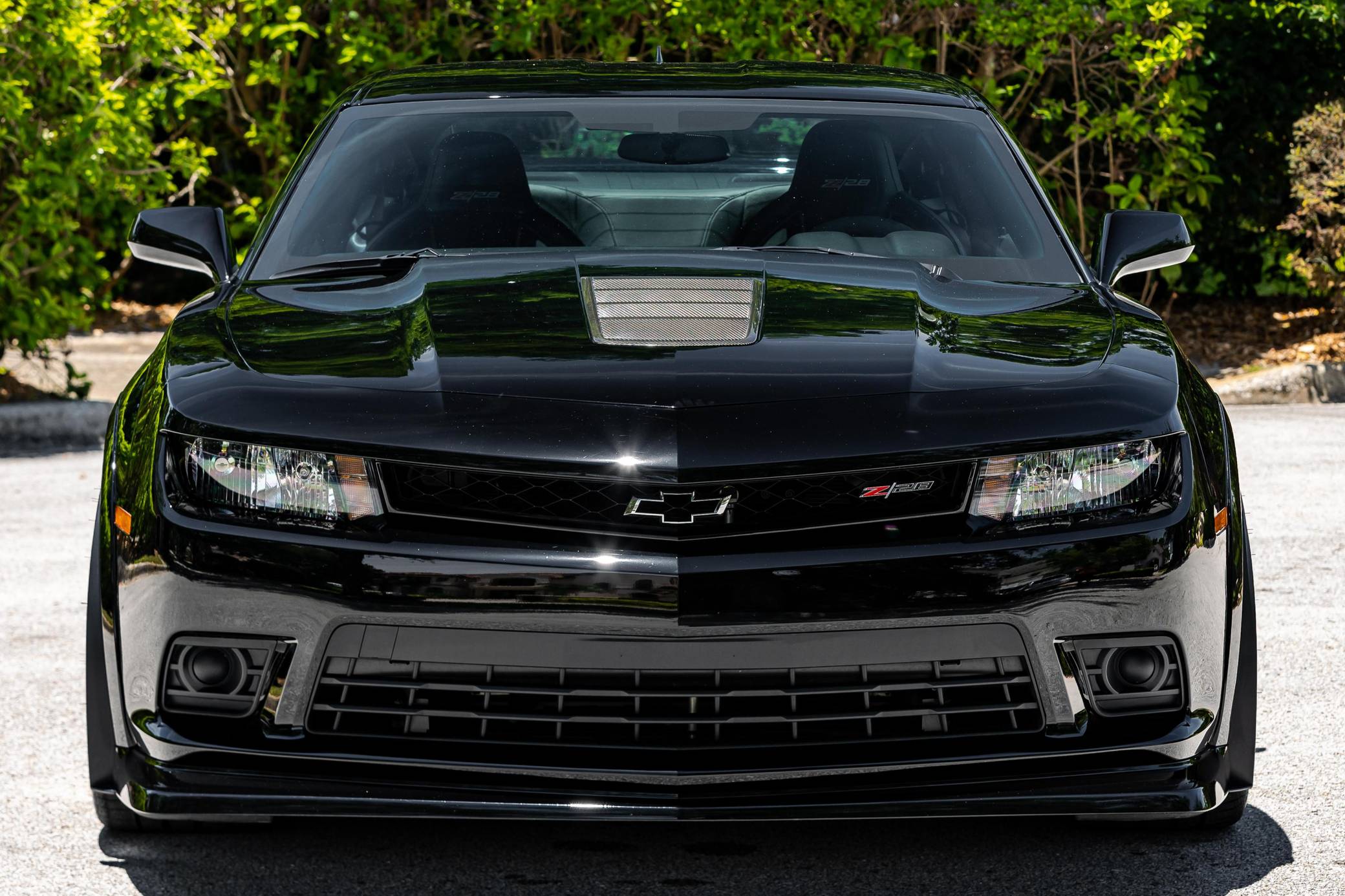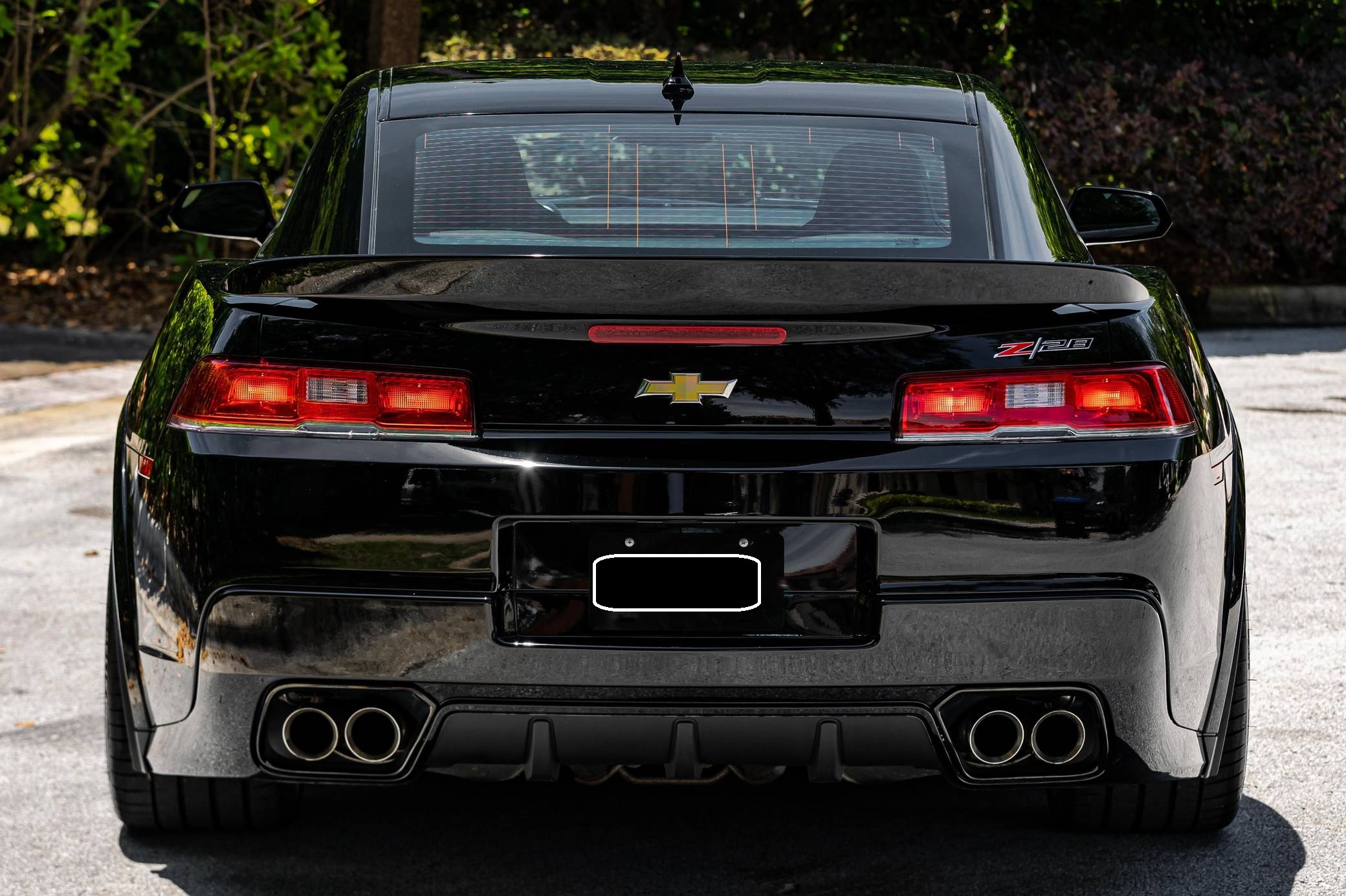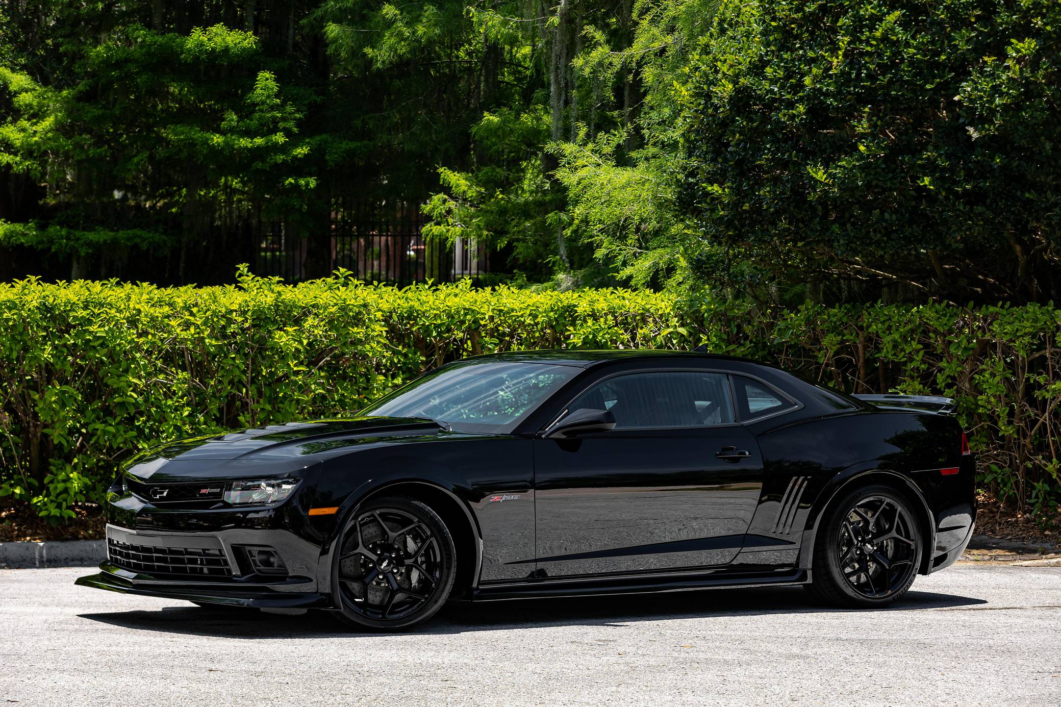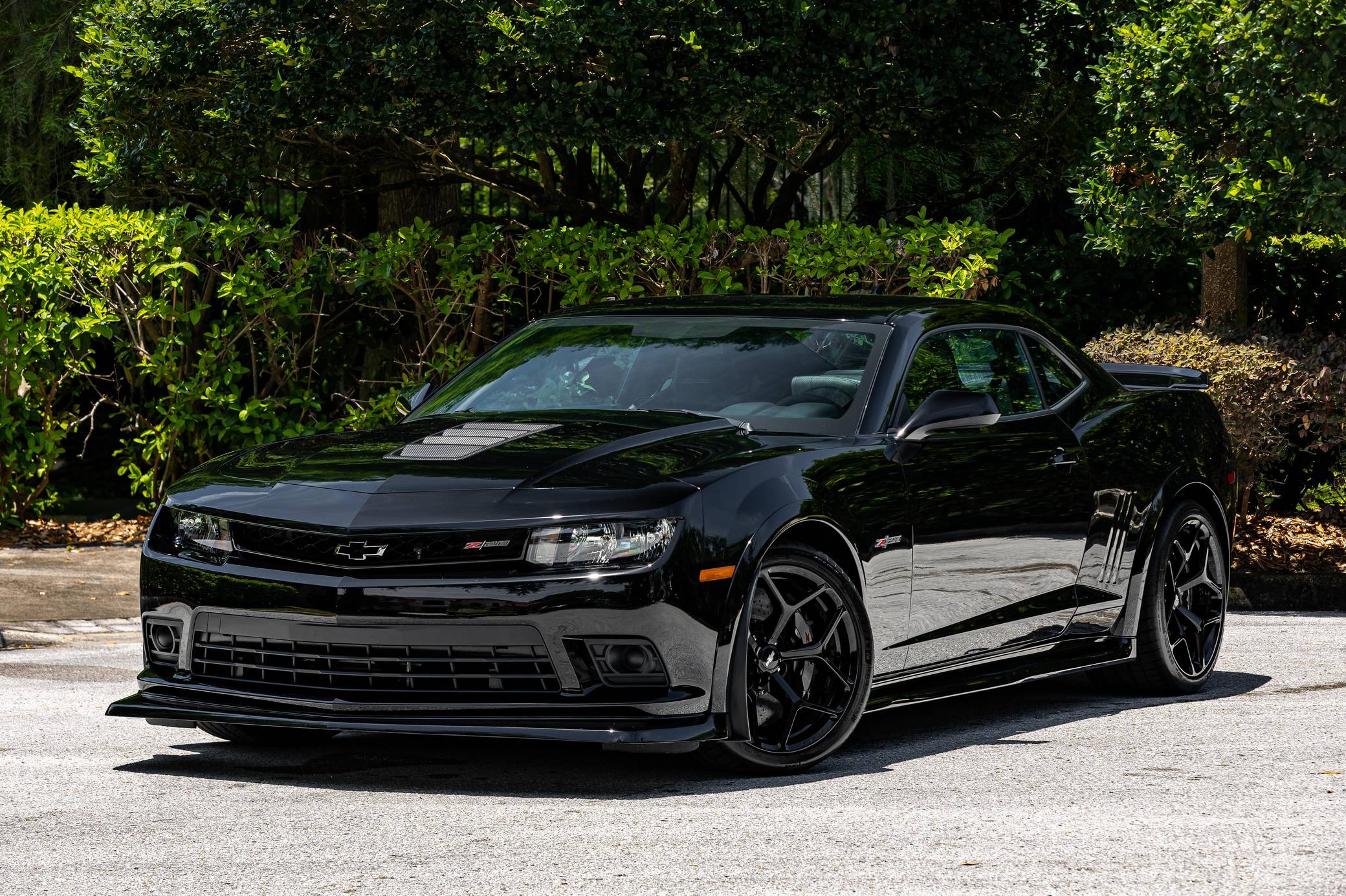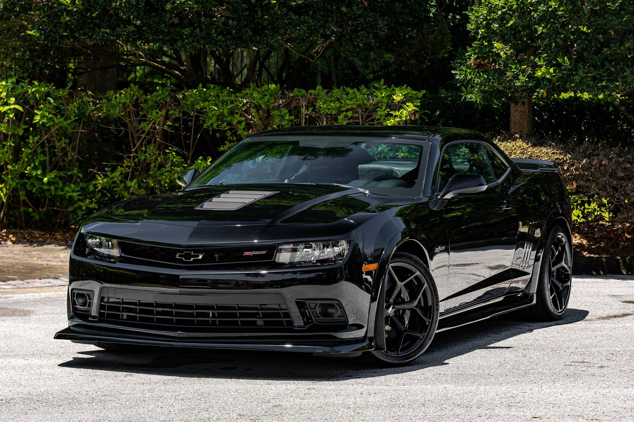 2015 Chevrolet Camaro Z28, finished in black with a black interior. This coupe's odometer displays about 1,800 miles. It's equipped with the Air Conditioning and Audio Package, 19-inch wheels, a rear differential cooler, a Z28-specific body kit, Recaro front seats, and a CD player, among other features. The seller reports no modifications. Launched for 2015, the Z28 was a track-ready evolution of the fifth-generation Camaro. It gained a number of competition-derived parts, including a belly pan that reduces front-end lift, a firmer suspension system, and a massive V8 bolted to a six-speed manual transmission. Chevrolet also made the Z28 lighter by removing some of the sound-deadening material, among other parts, and fitting a thinner rear window. Most historians agree that less than 2,000 units of the Z28 were built. Power comes from a 7. 0-liter "LS7" V8, rated at 505 horsepower and 481 lb-ft of torque. It spins the rear wheels via a 6-speed manual transmission and a limited-slip differential.